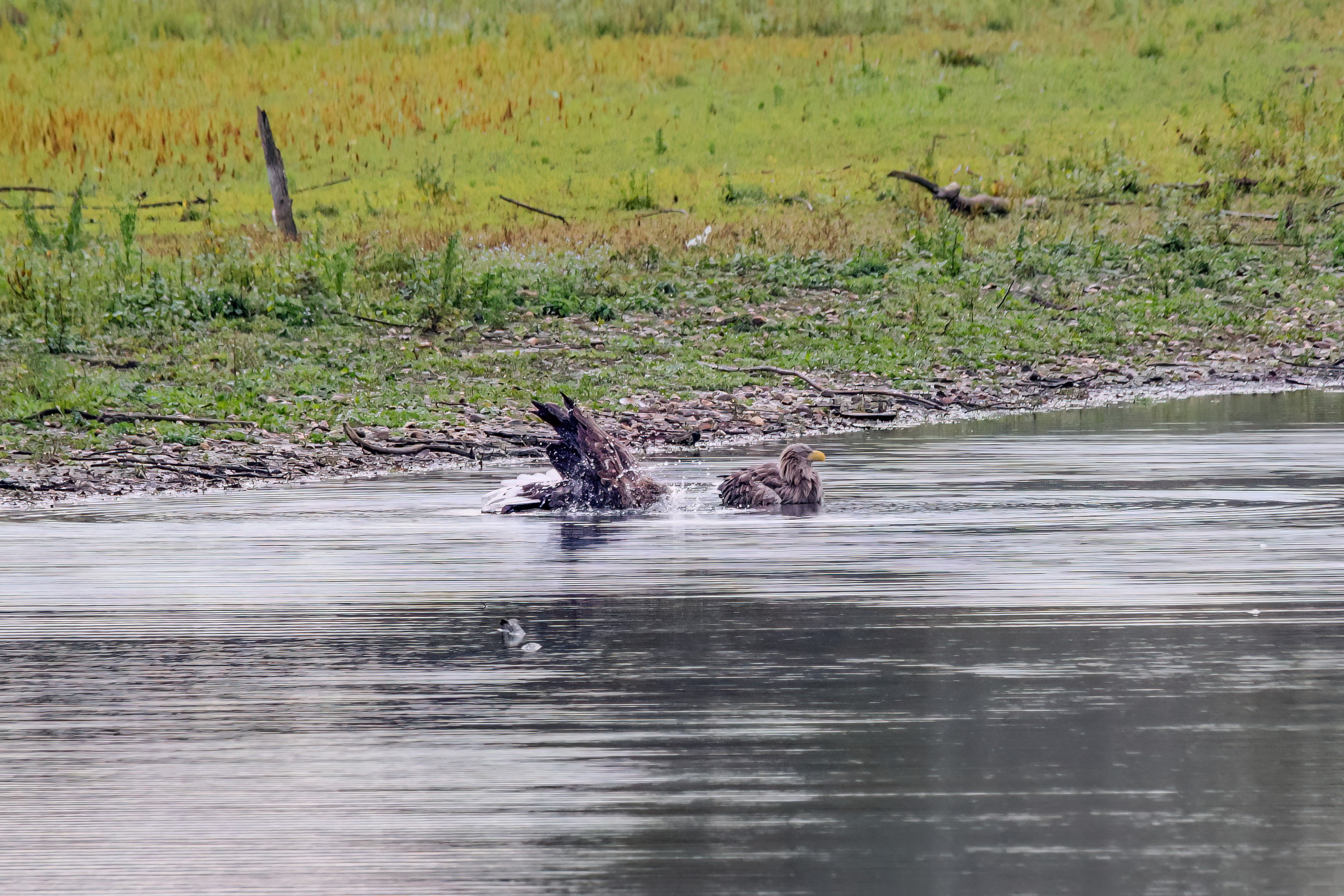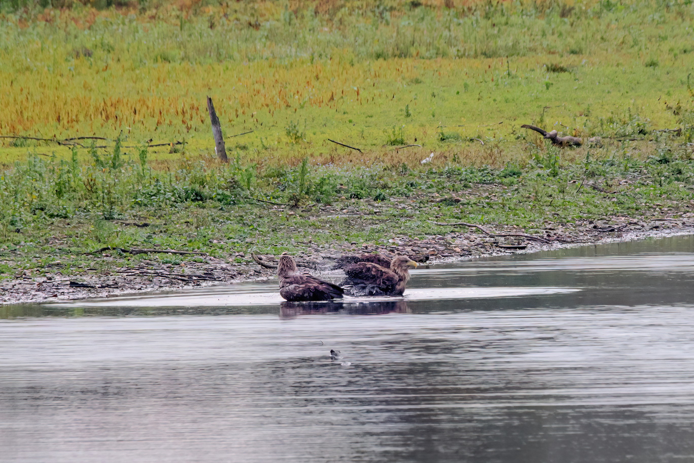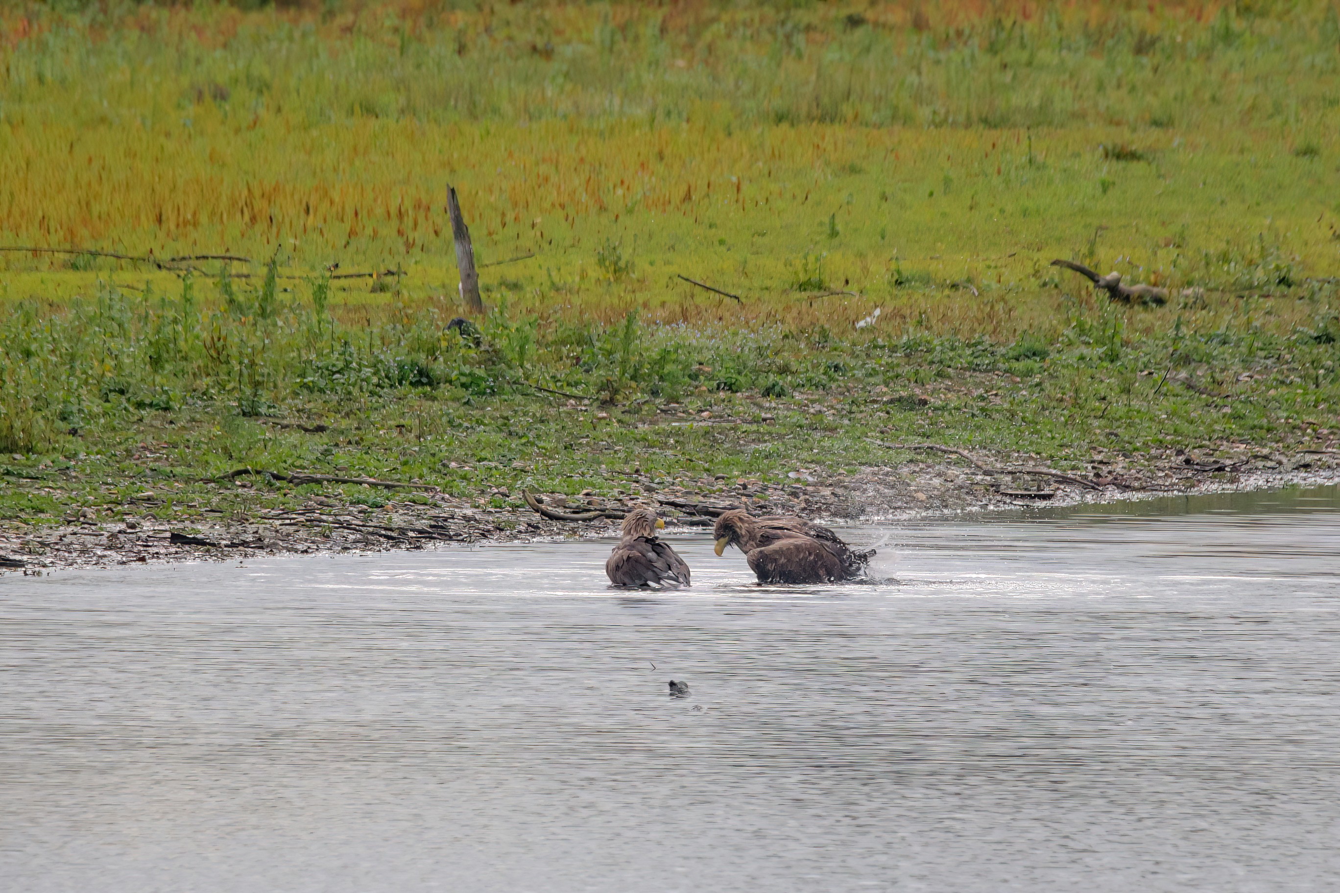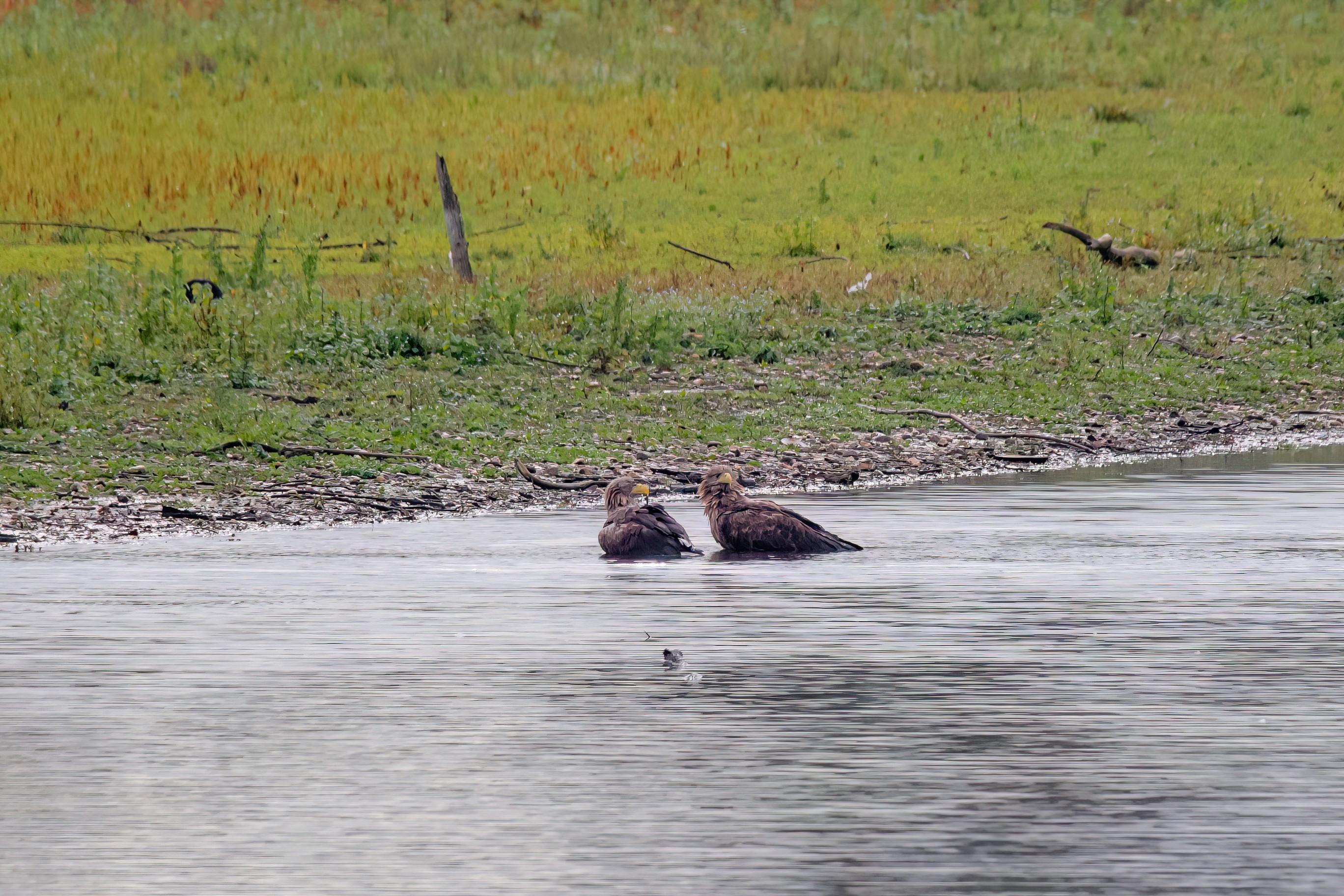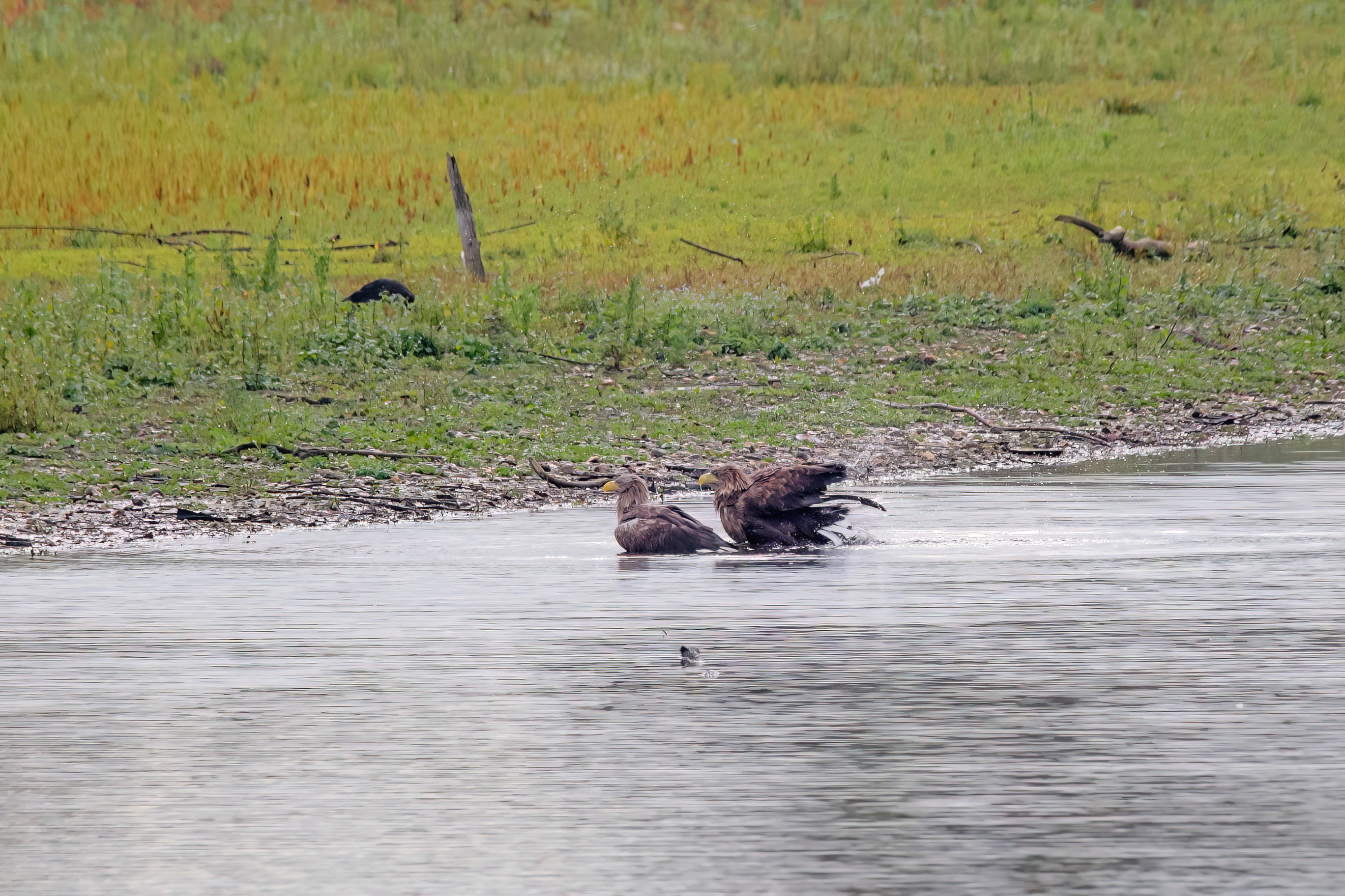 Gemeinsames Badevergnügen des Seeadlerpaares