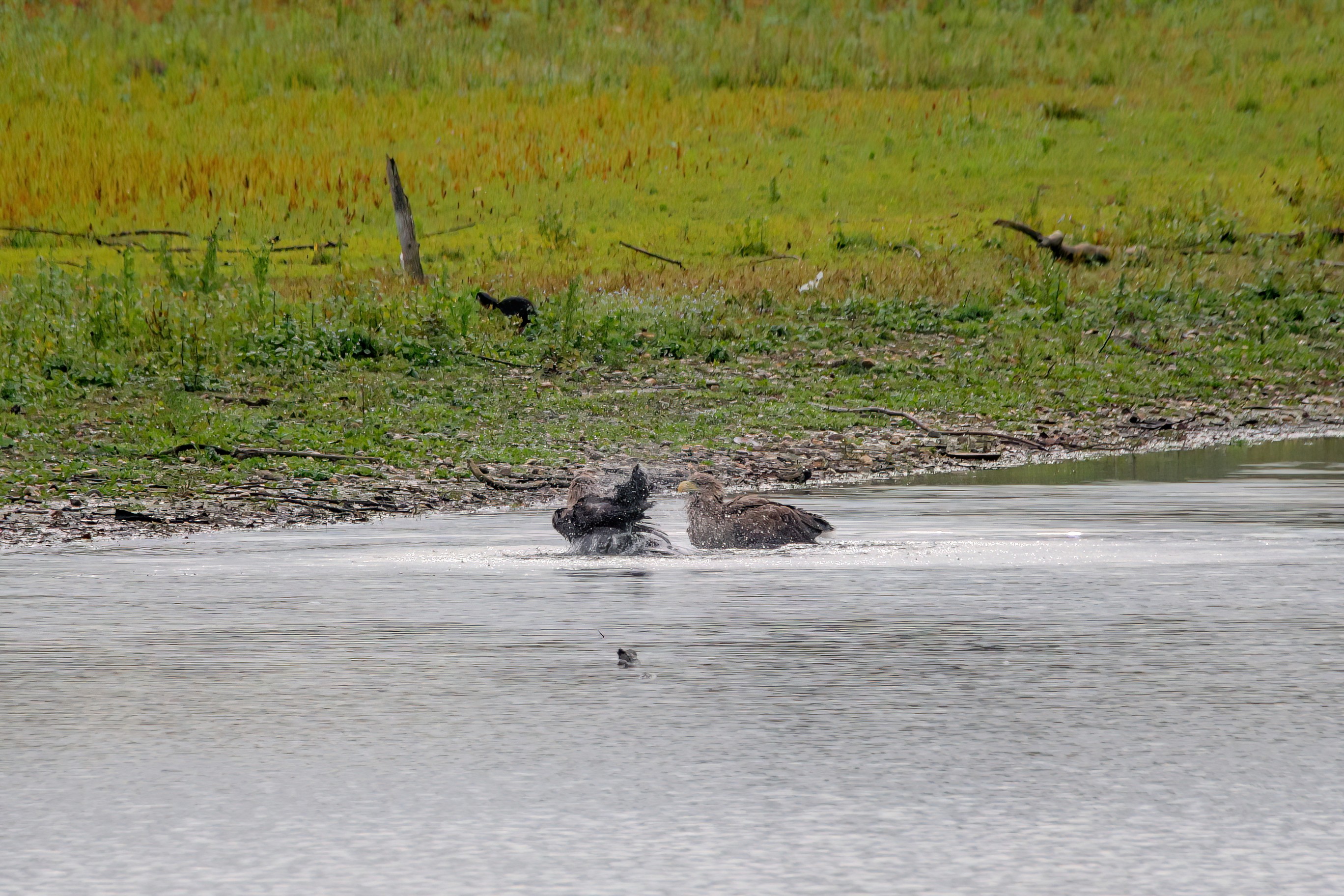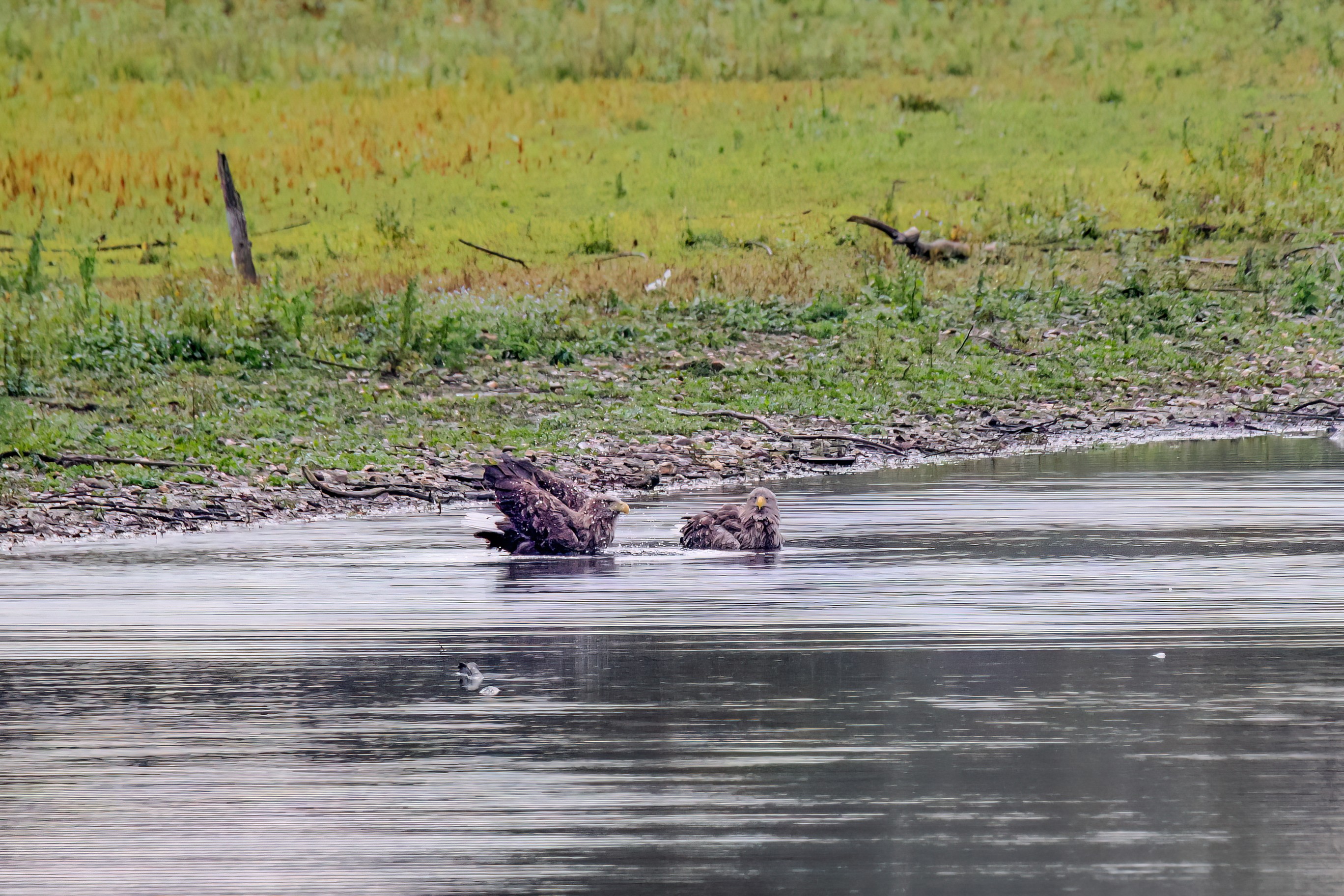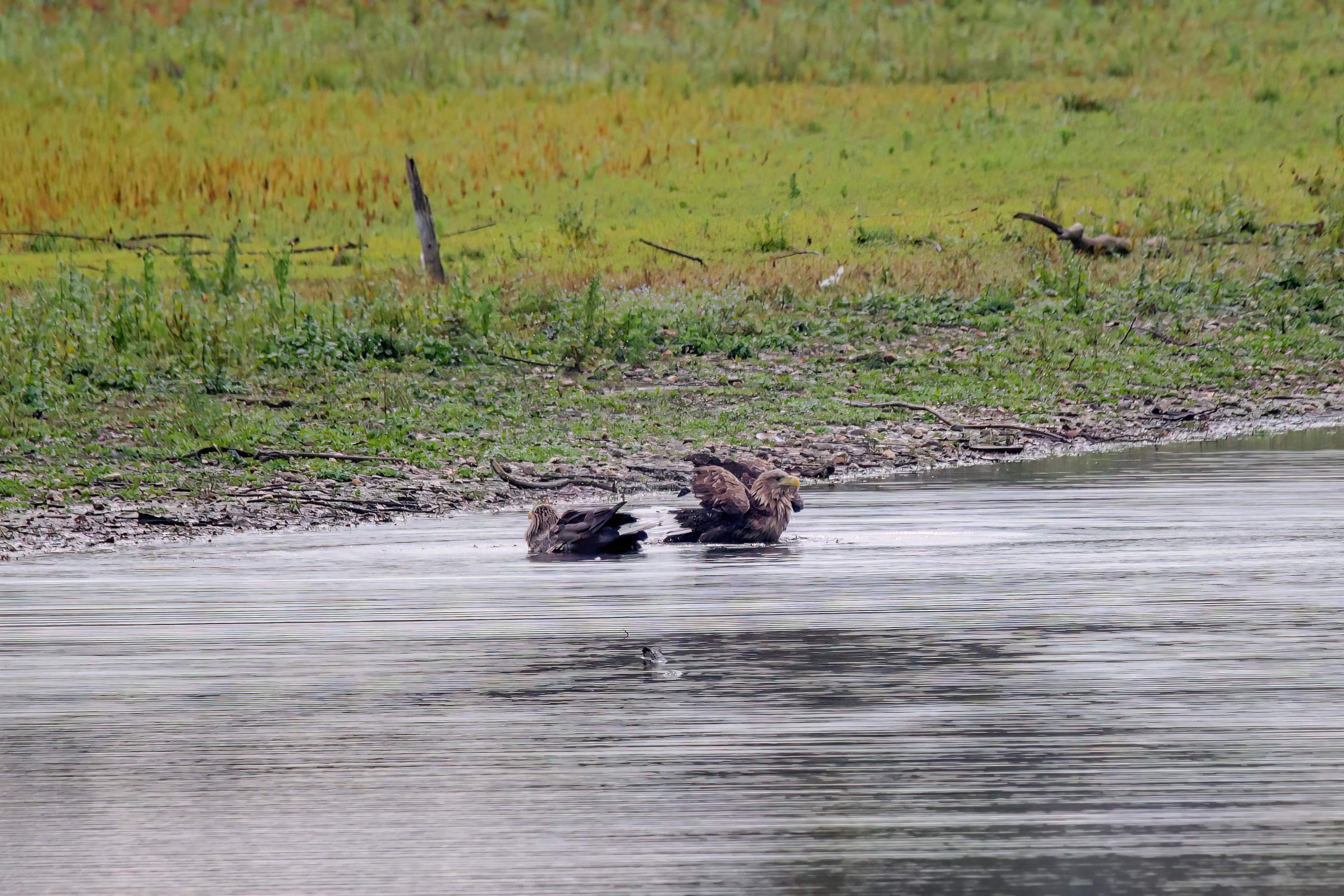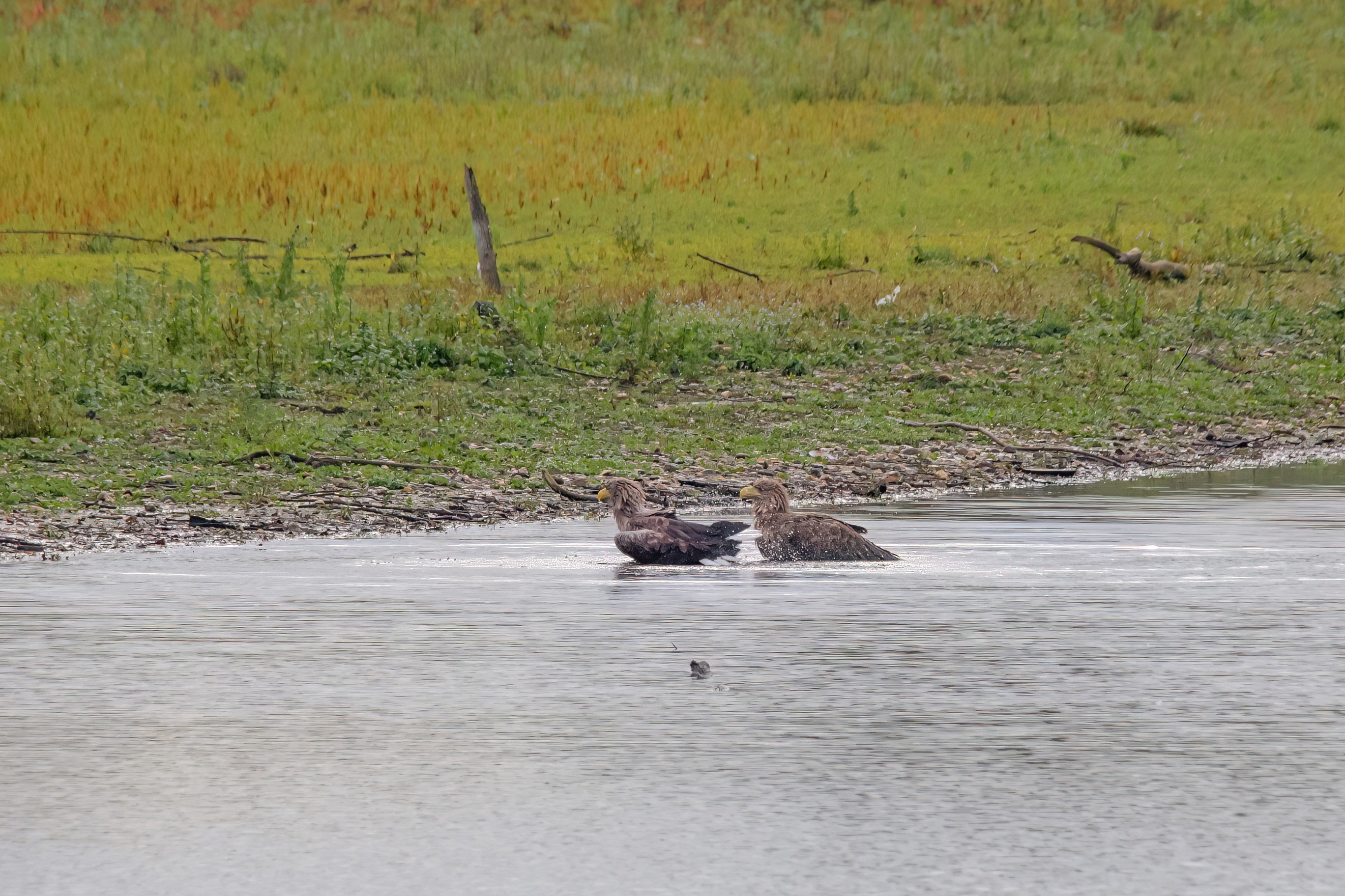 Gemeinsames Badevergnügen des Seeadlerpaares