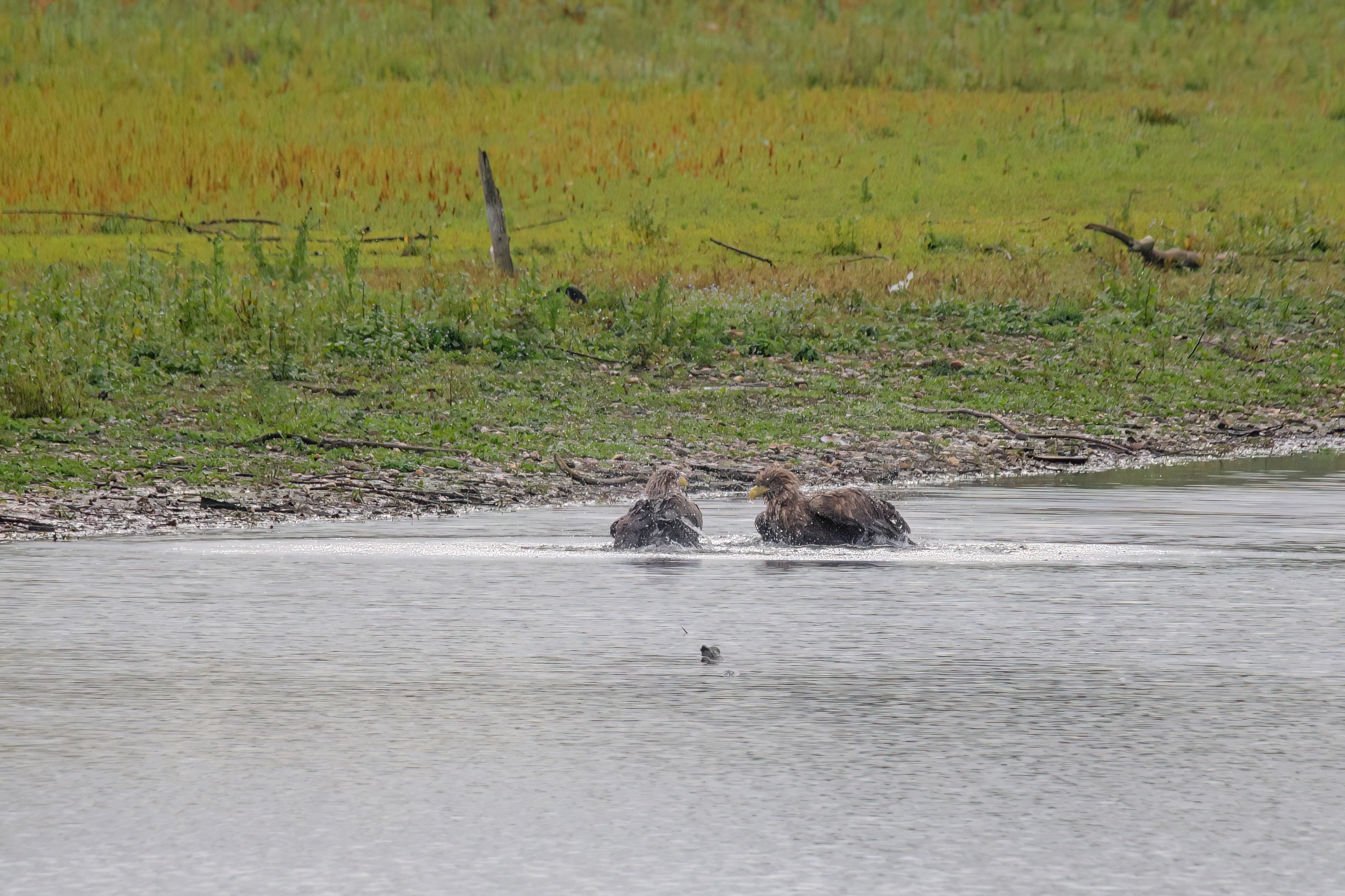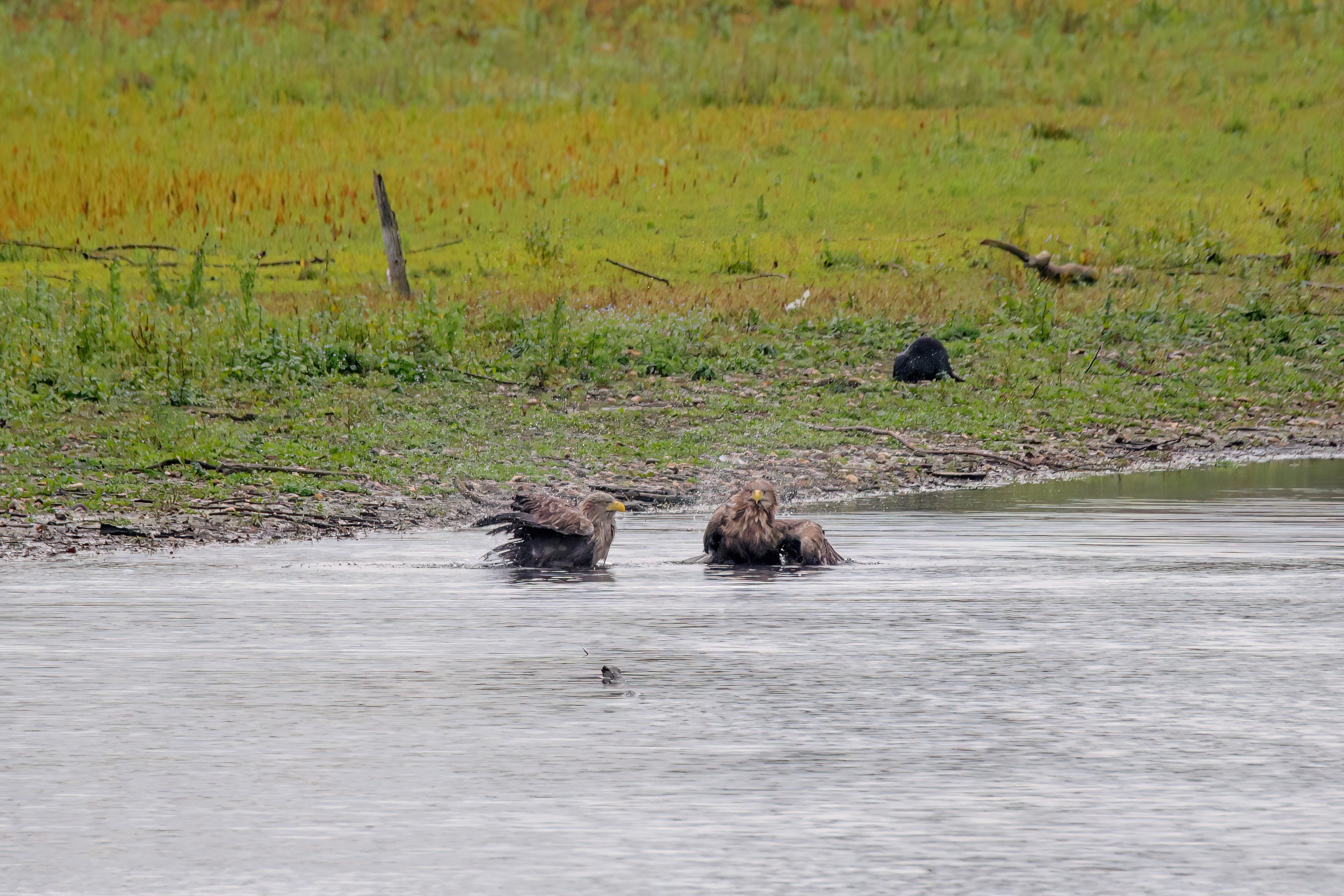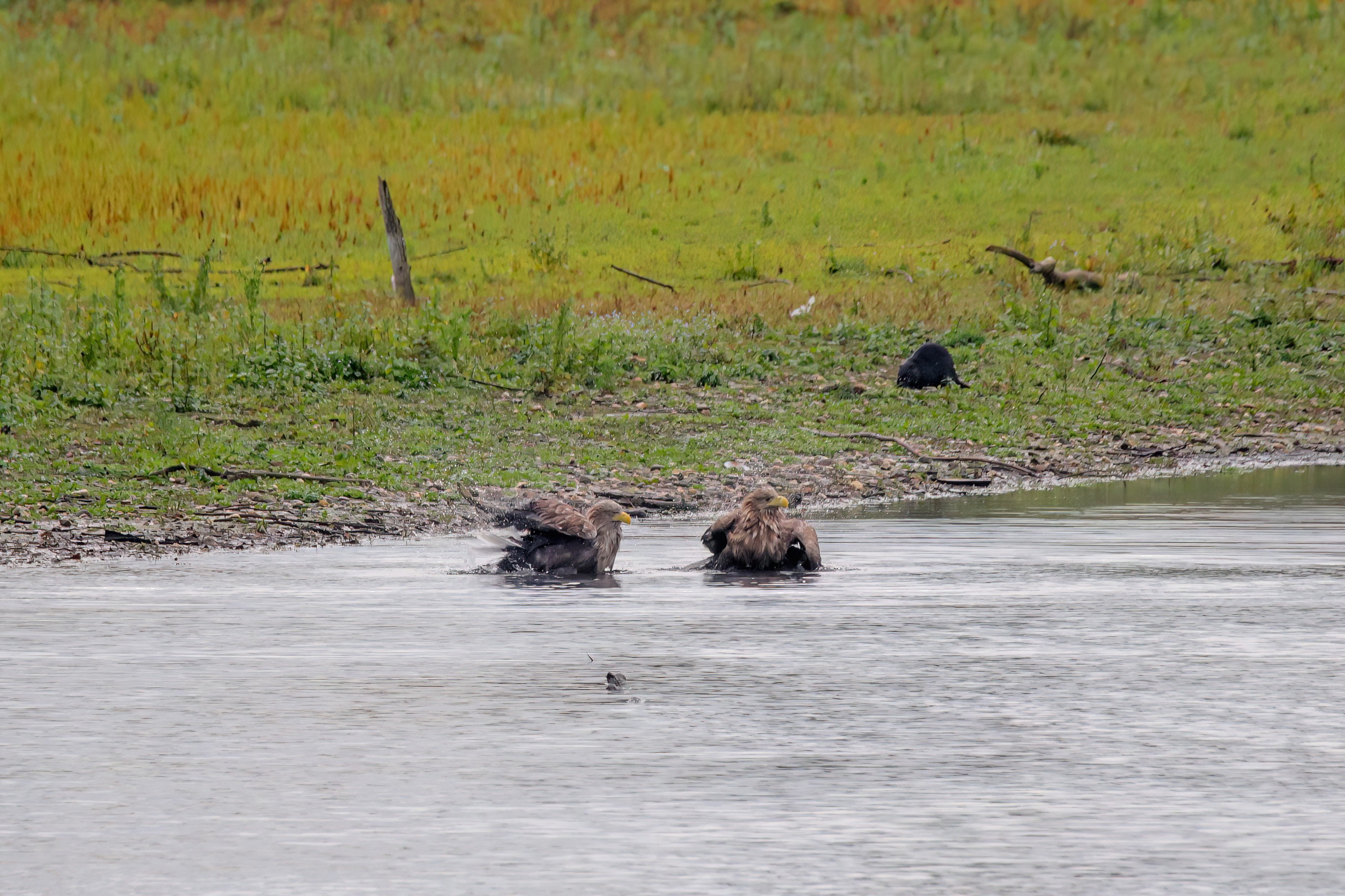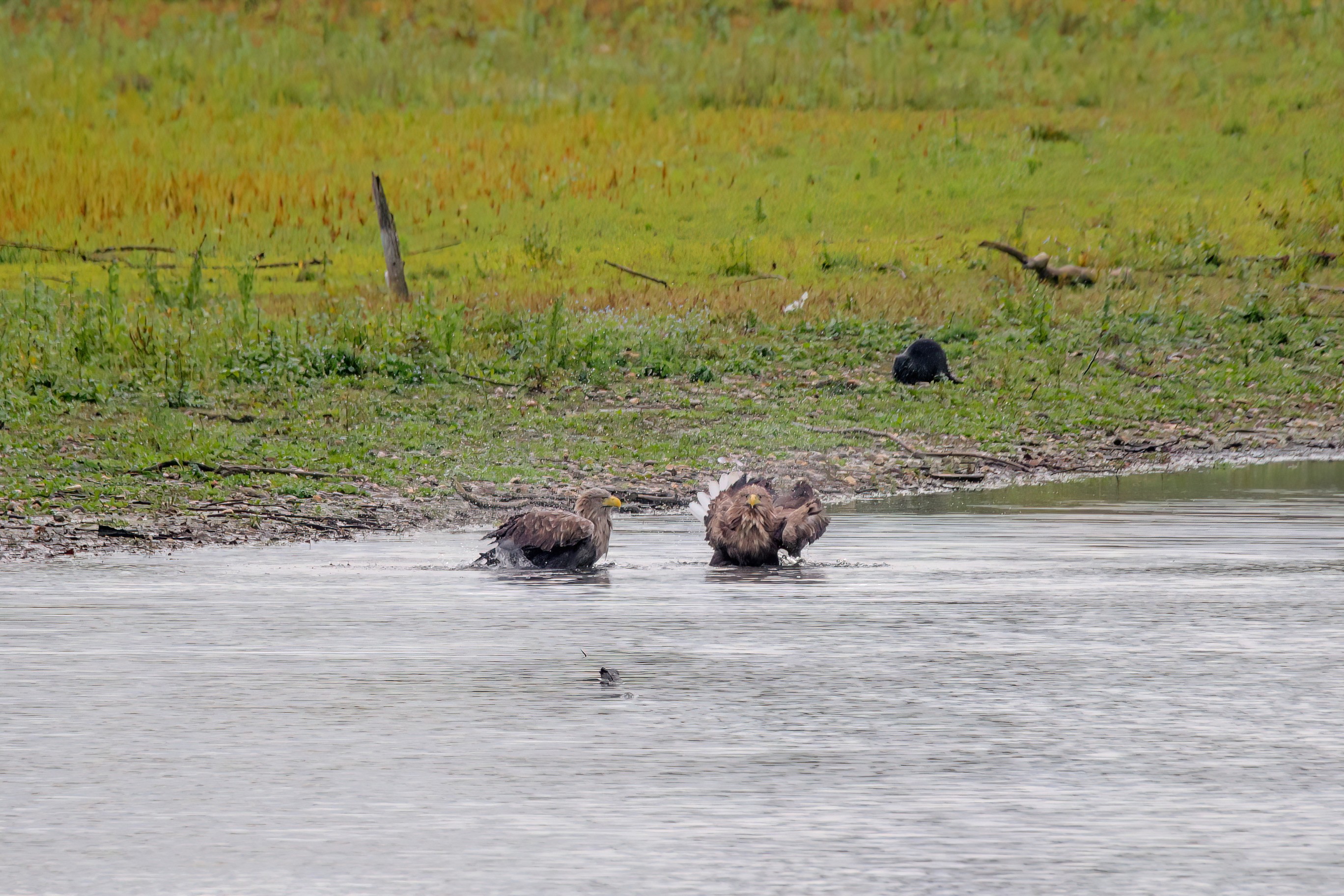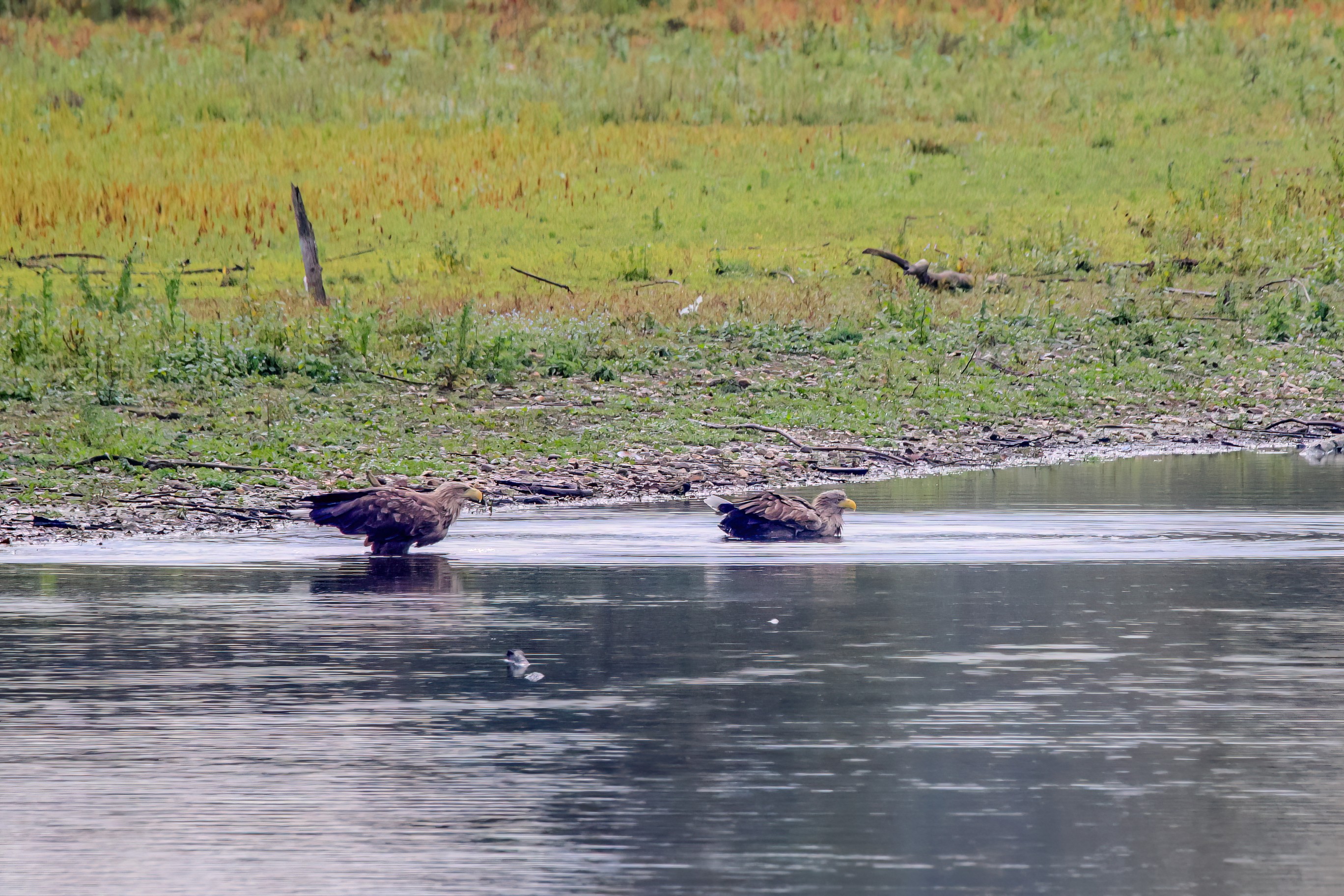 Gemeinsames Badevergnügen des Seeadlerpaares