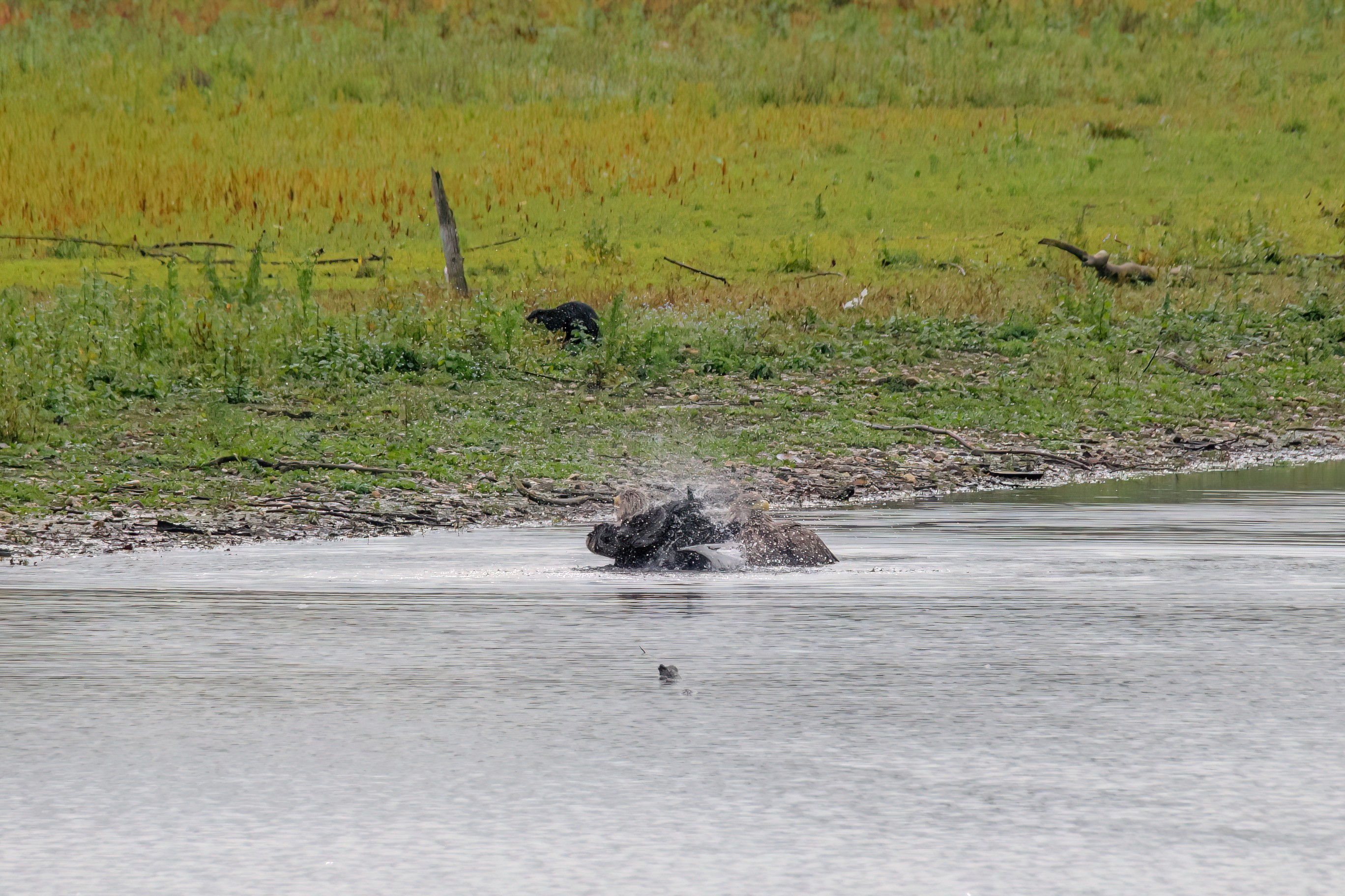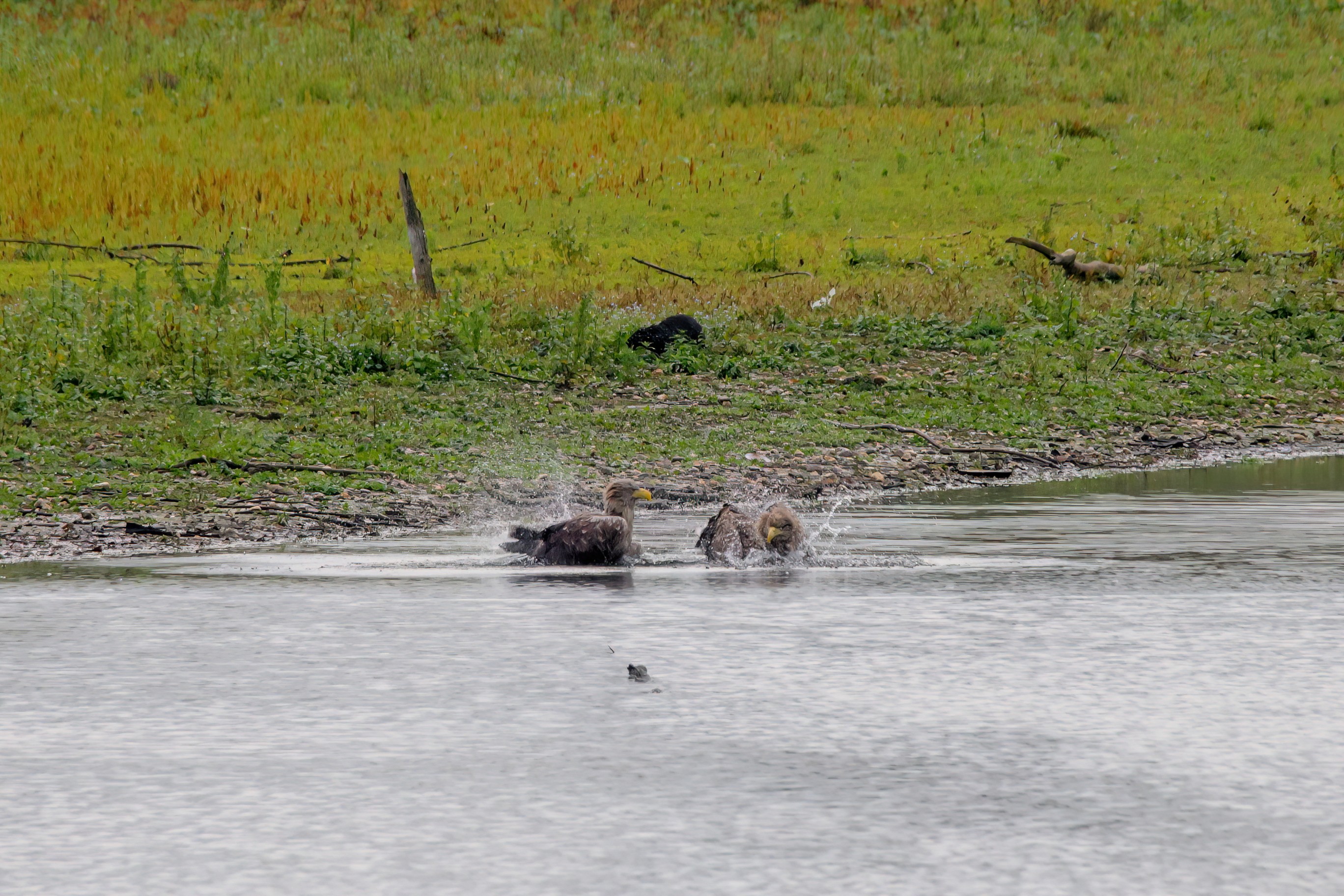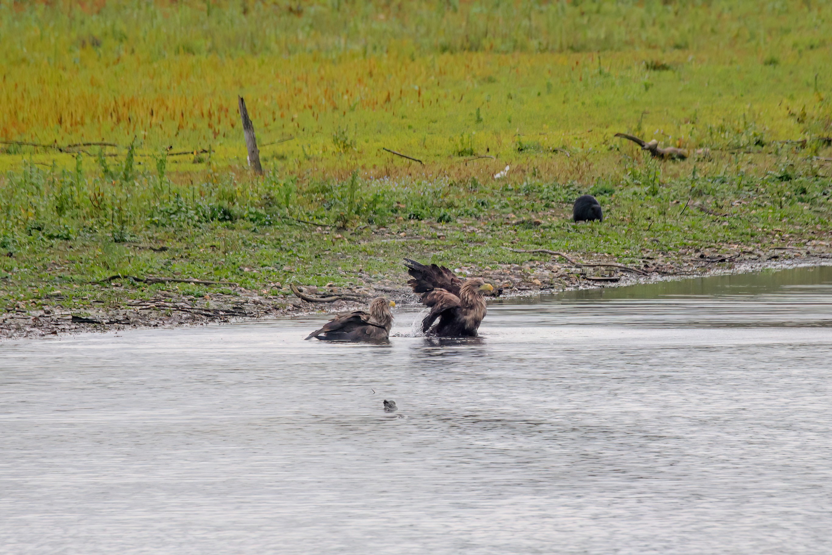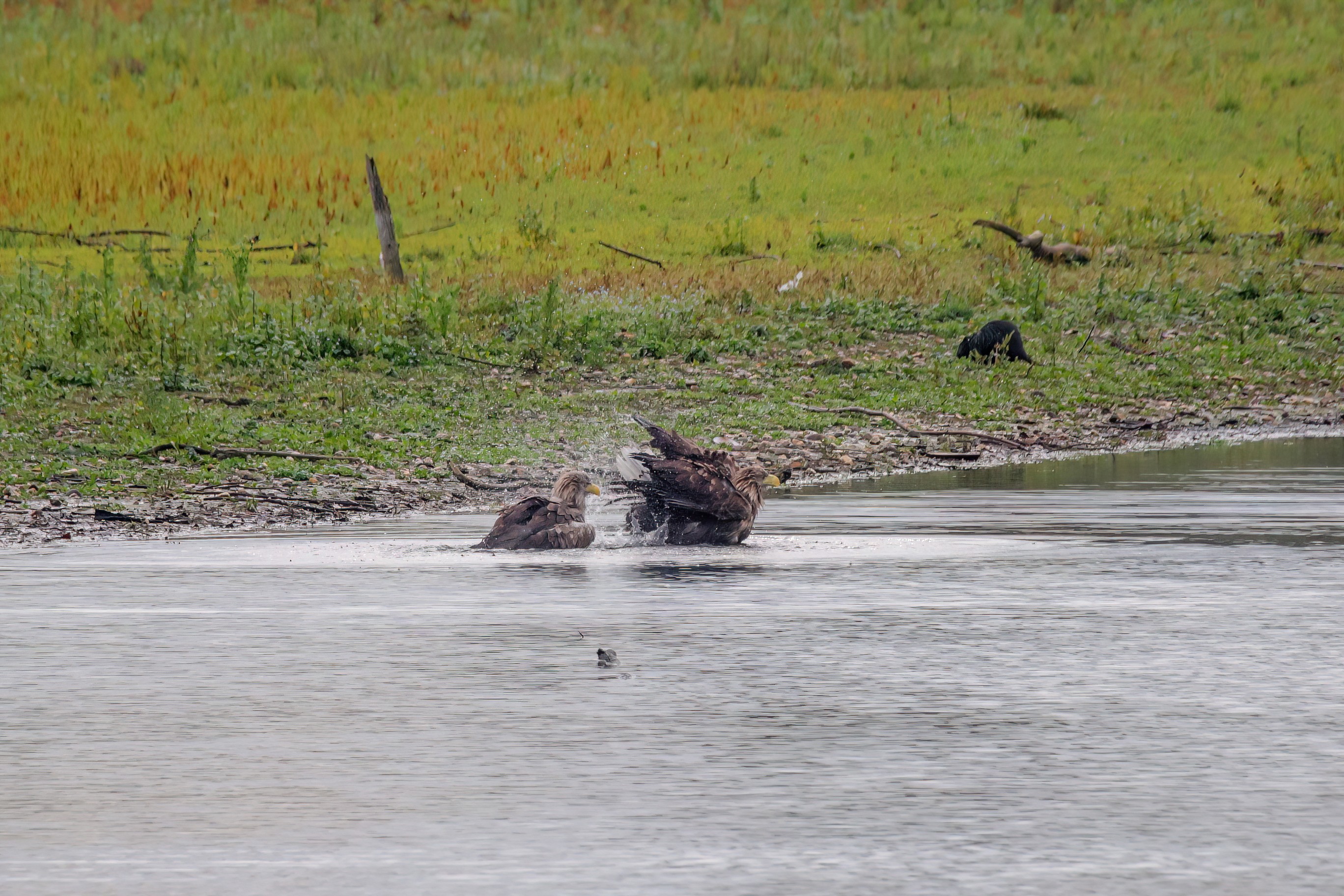 Gemeinsames Badevergnügen des Seeadlerpaares