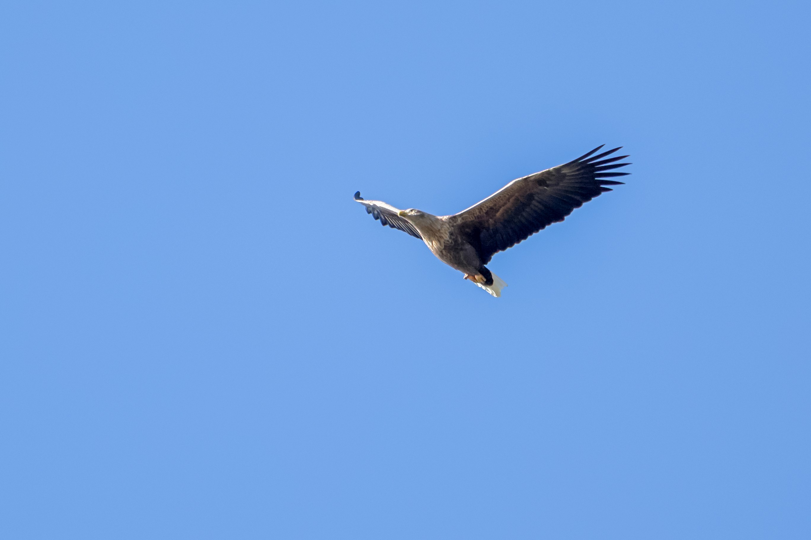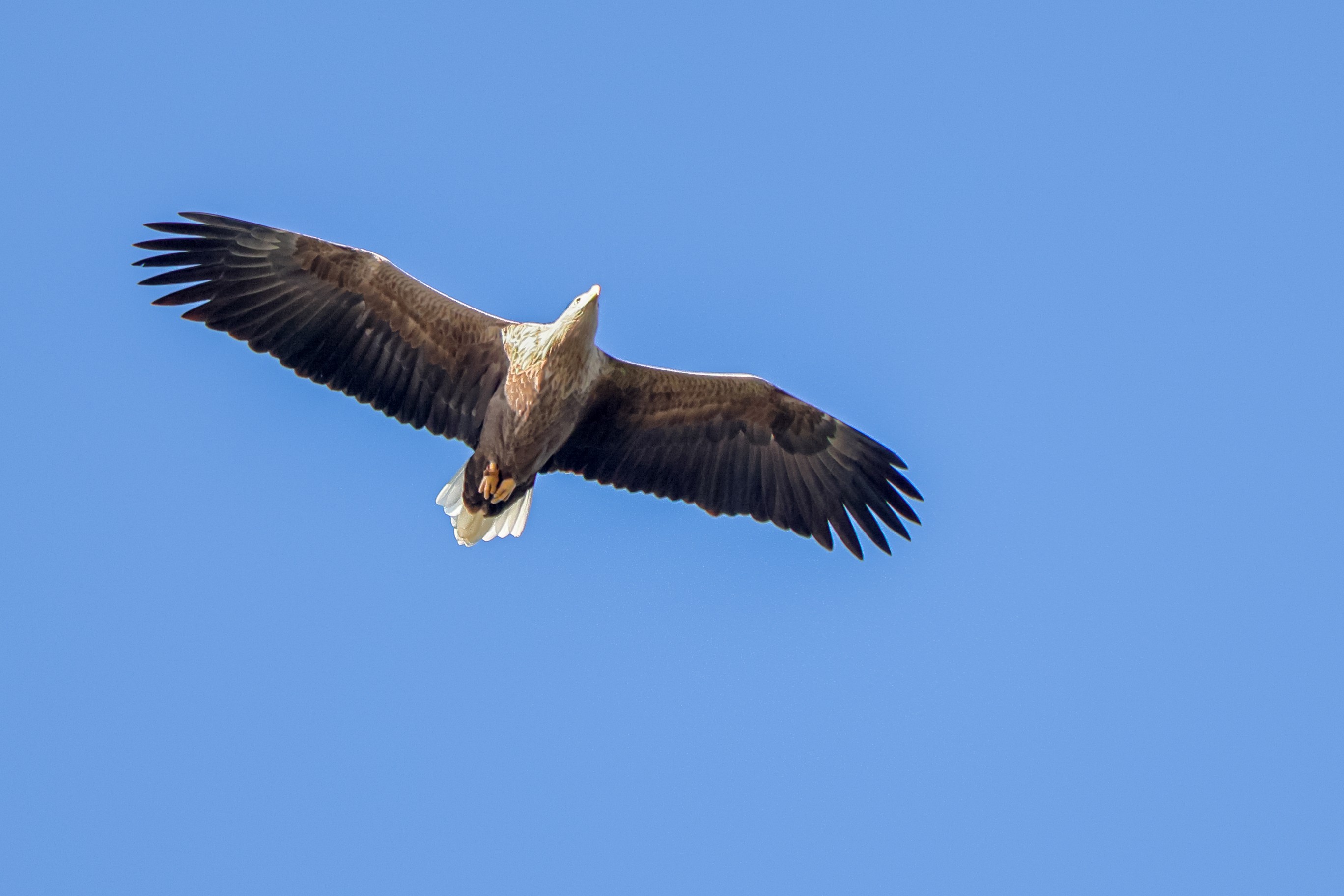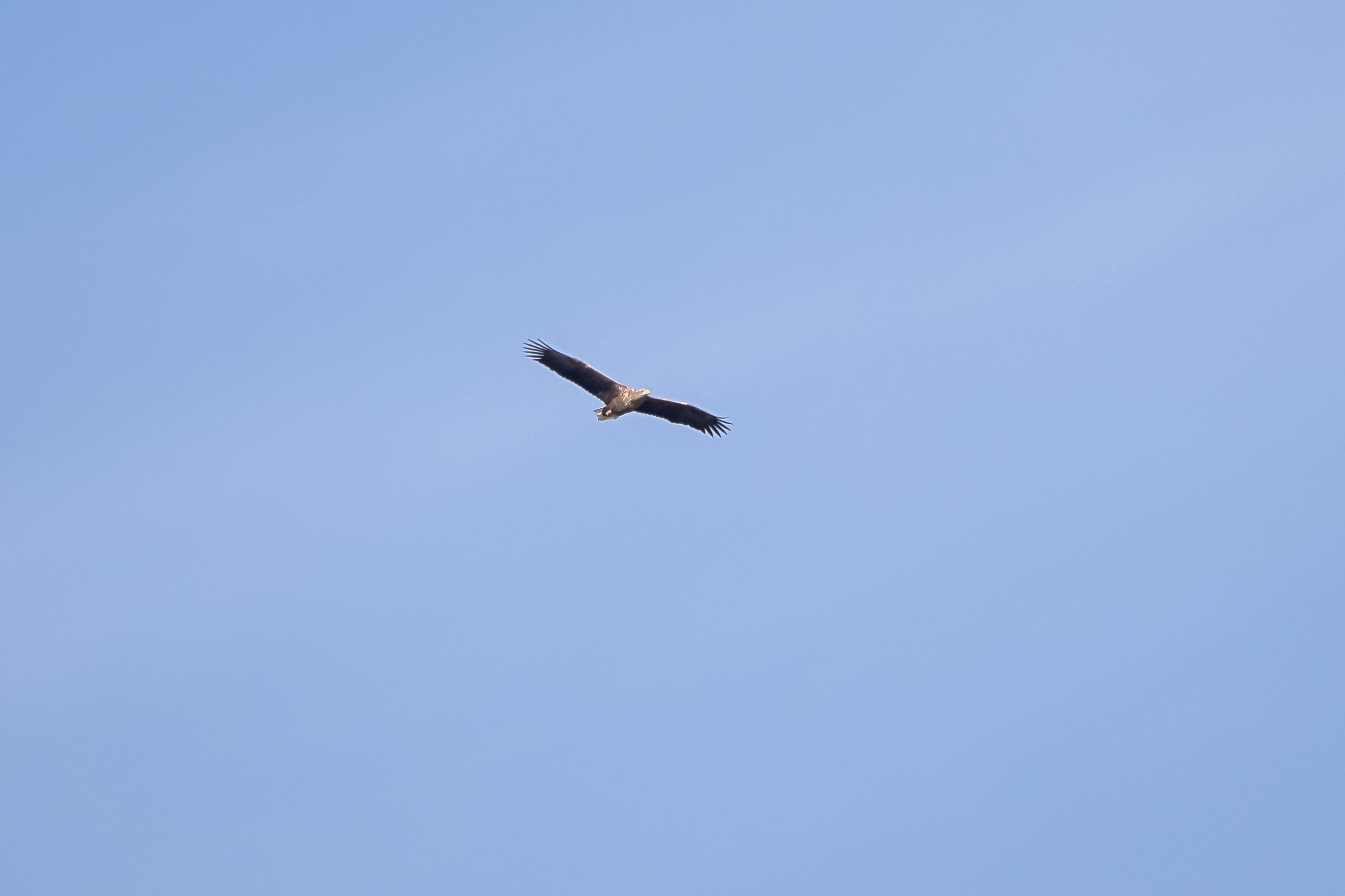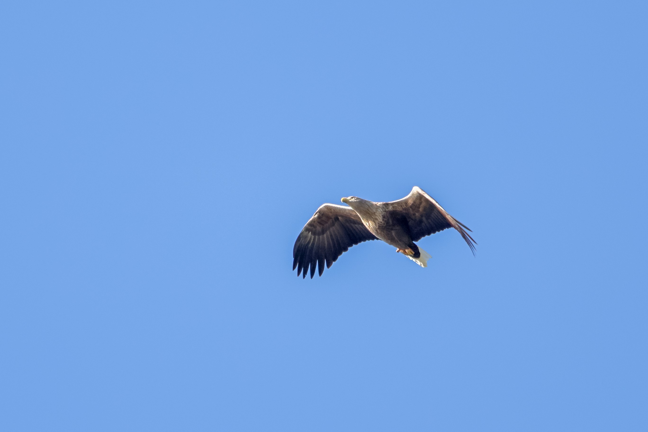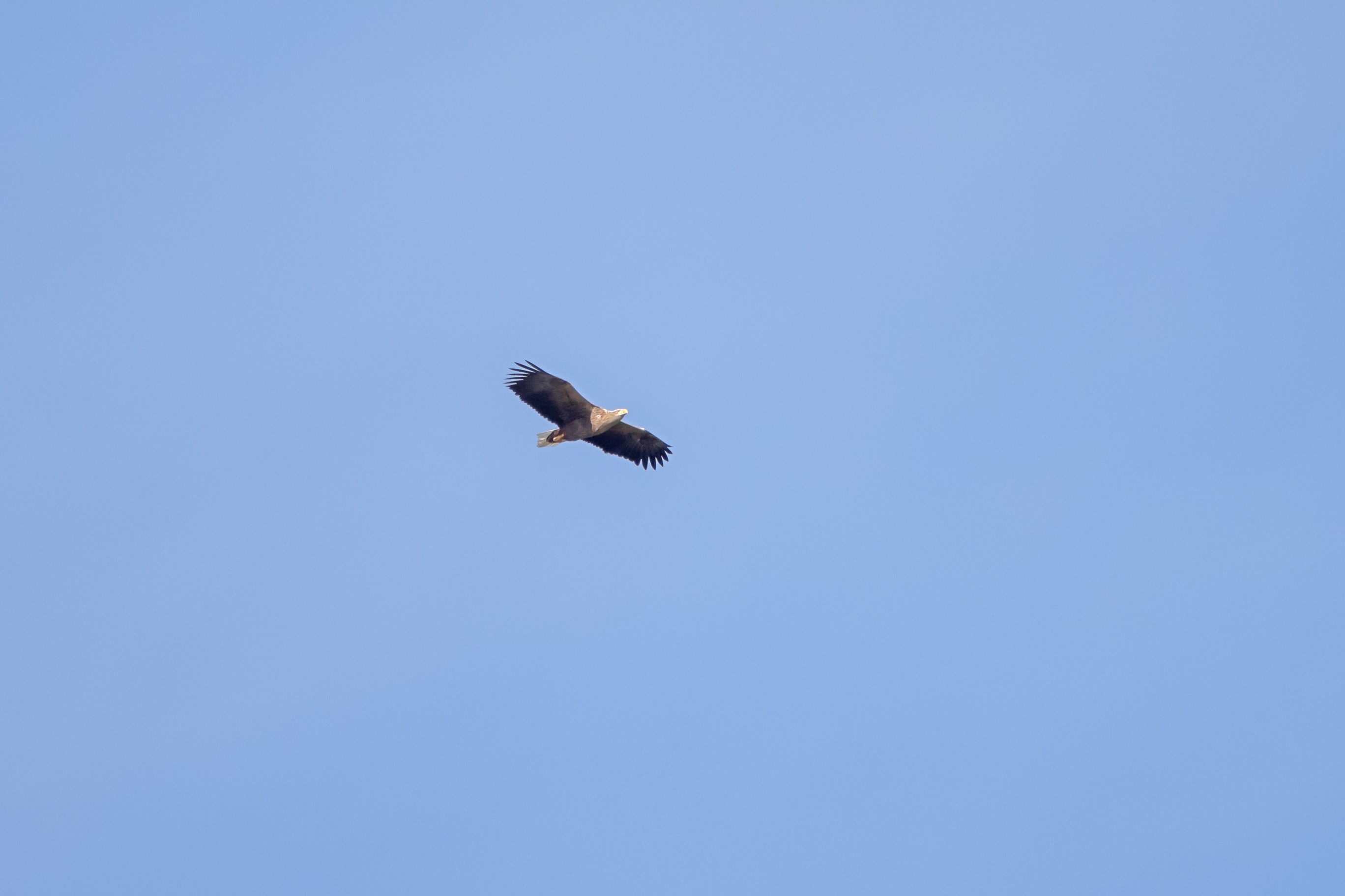 Seit einigen Wochen harmoniert der im April vertriebene Habitatsgründer "Rheingold" mit dem neuen Seeadlerweibchen. Die Restauration des Horstes konnte schon beobachtet werden. Ob die beiden Seeadler letztendlich eine dauerhafte Beziehung eingehen, werden wir wahrscheinlich im kommenden Winter beobachten können, wenn es Balzflüge zu sichten gibt. Augenblicklich besteht eine Zweisamkeit der Seeadler, die auch mit gemeinsamen Flügen zu beobachten ist. Die Aufnahmen dieser Bildstrecke konnten allerdings nur zur Mittagszeit, unter erschwerten Belichtungsverhältnissen, erstellt werden und zeigen unseren Habitatsgründer im Überflug an der Beobachtungshütte III. Er hätte sich eine schönere Tageszeit aussuchen sollen.