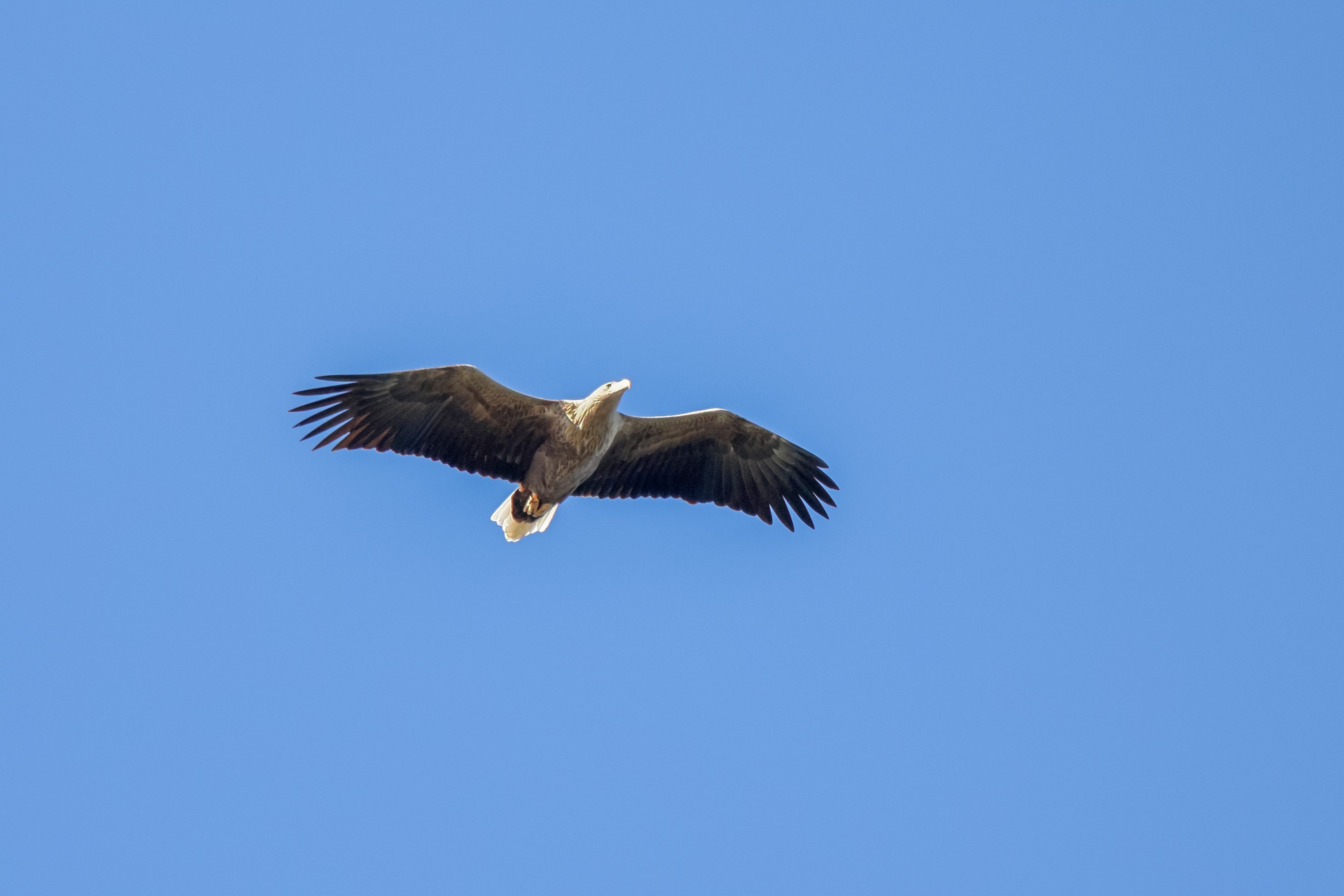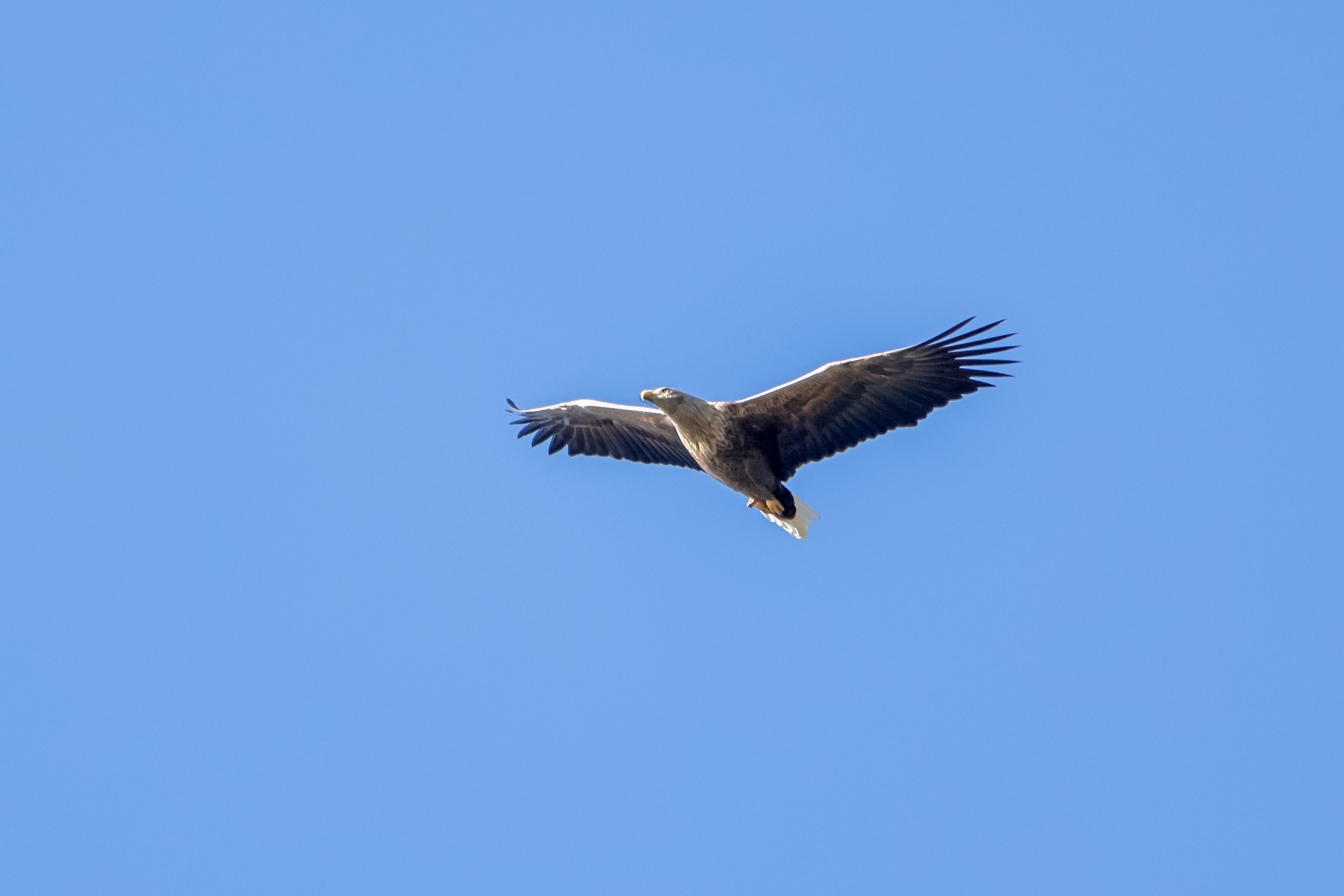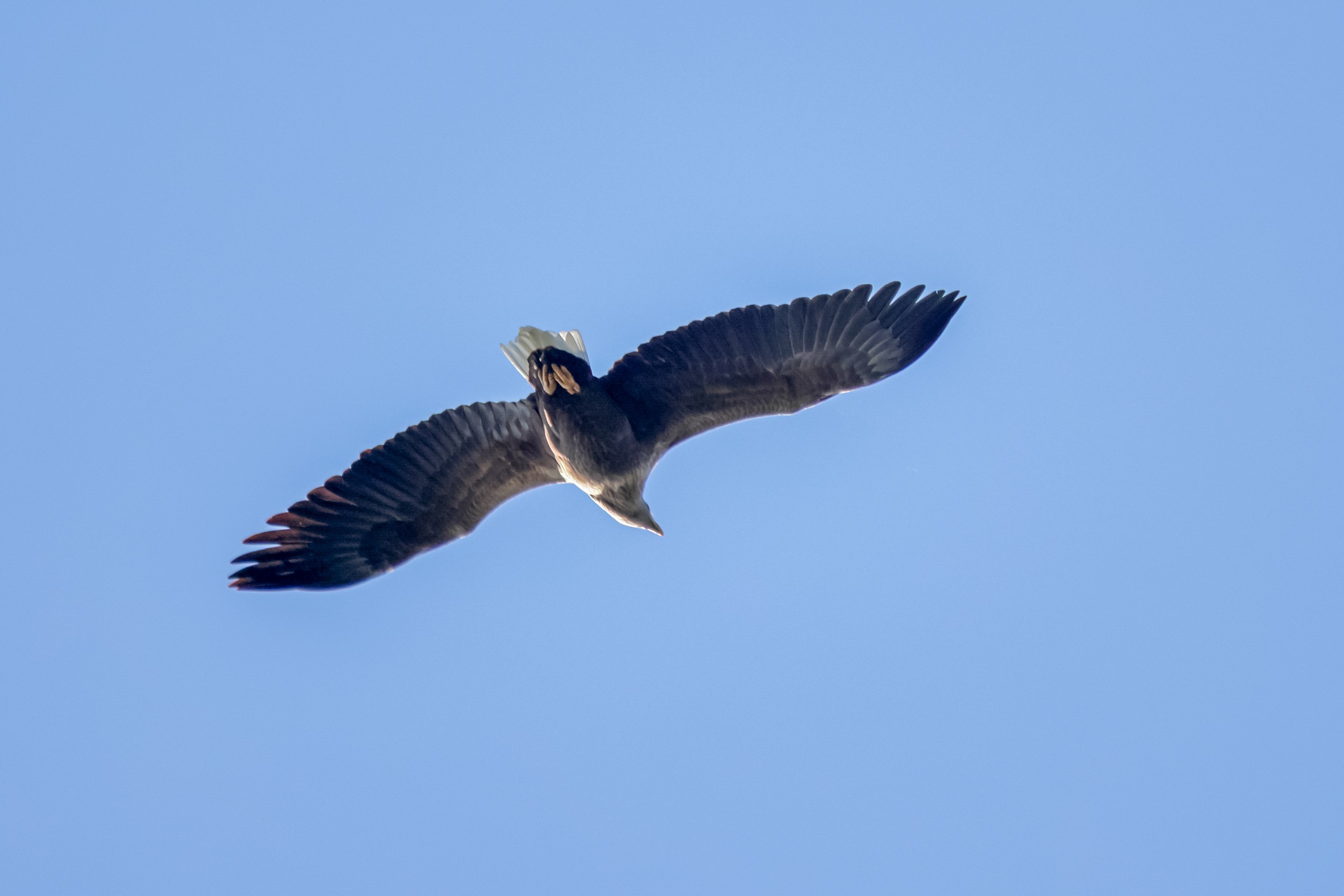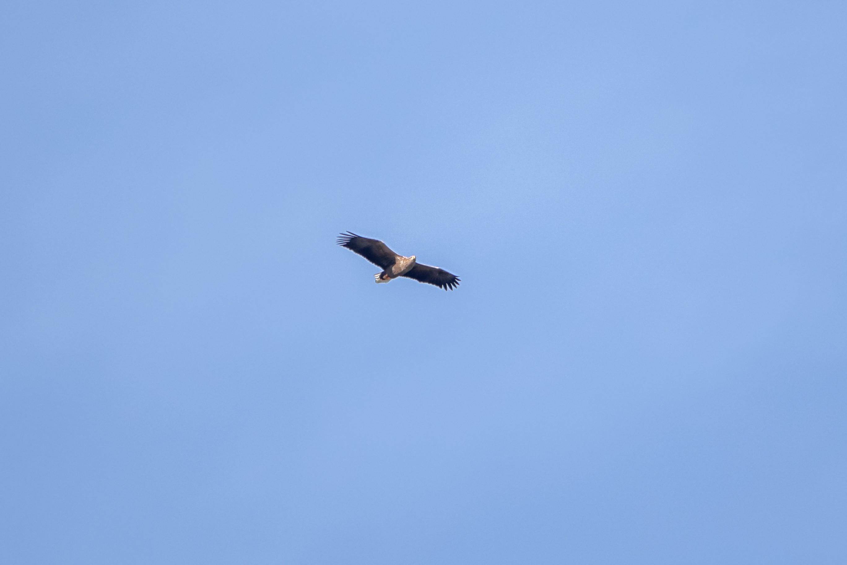 Seit einigen Wochen harmoniert der im April vertriebene Habitatsgründer "Rheingold" mit dem neuen Seeadlerweibchen. Die Restauration des Horstes konnte schon beobachtet werden. Ob die beiden Seeadler letztendlich eine dauerhafte Beziehung eingehen, werden wir wahrscheinlich im kommenden Winter beobachten können, wenn es Balzflüge zu sichten gibt. Augenblicklich besteht eine Zweisamkeit der Seeadler, die auch mit gemeinsamen Flügen zu beobachten ist. Die Aufnahmen dieser Bildstrecke konnten allerdings nur zur Mittagszeit, unter erschwerten Belichtungsverhältnissen, erstellt werden und zeigen unseren Habitatsgründer im Überflug an der Beobachtungshütte III. Er hätte sich eine schönere Tageszeit aussuchen sollen.