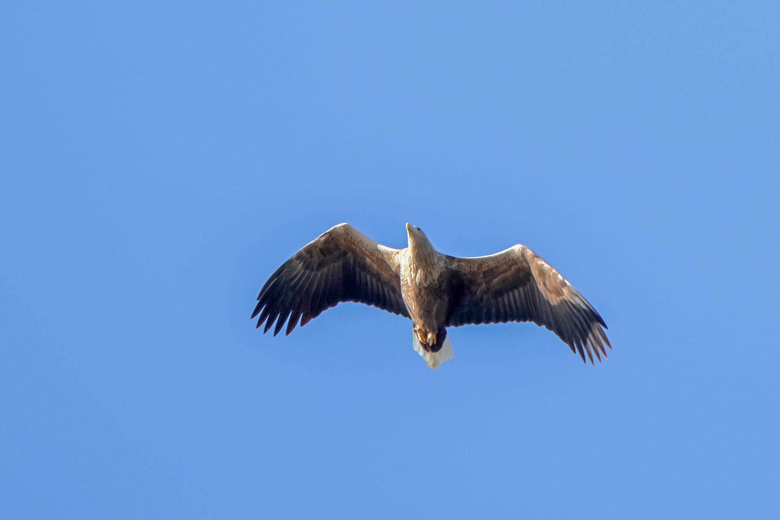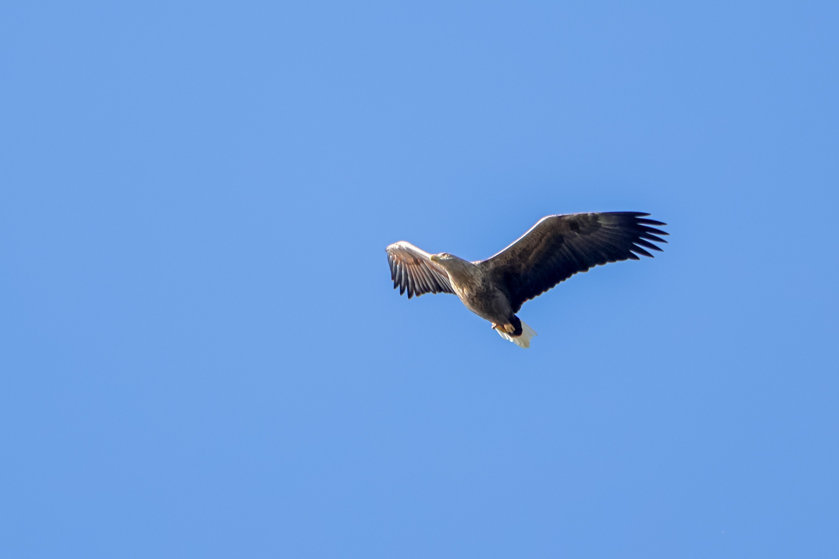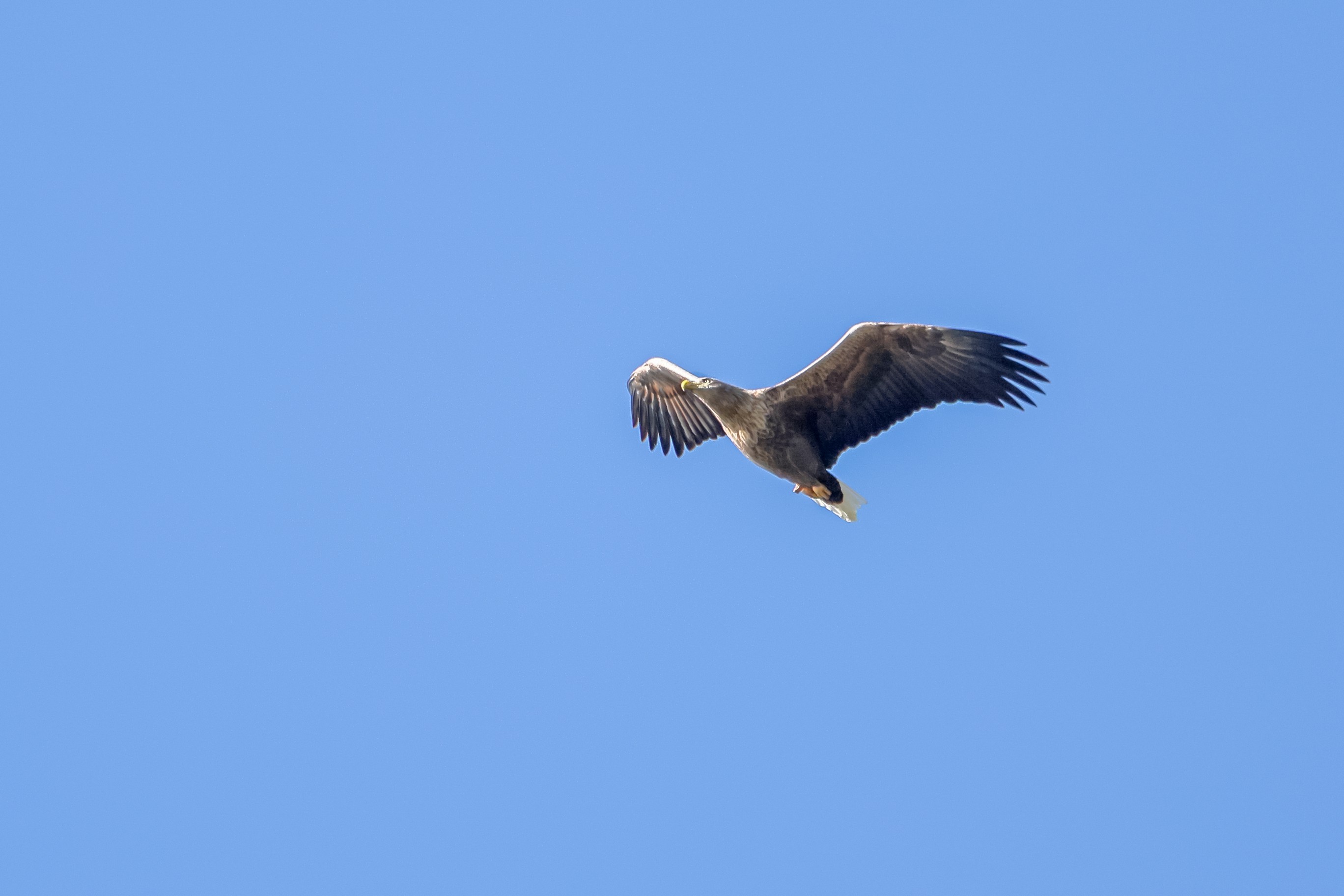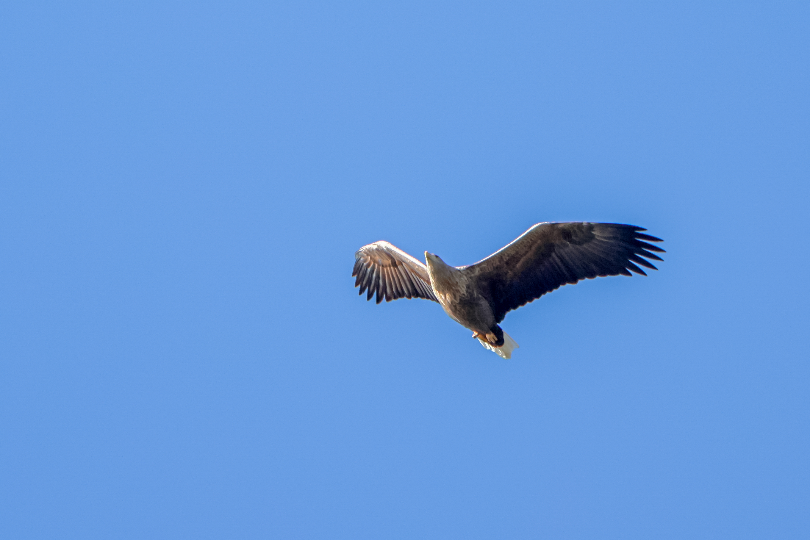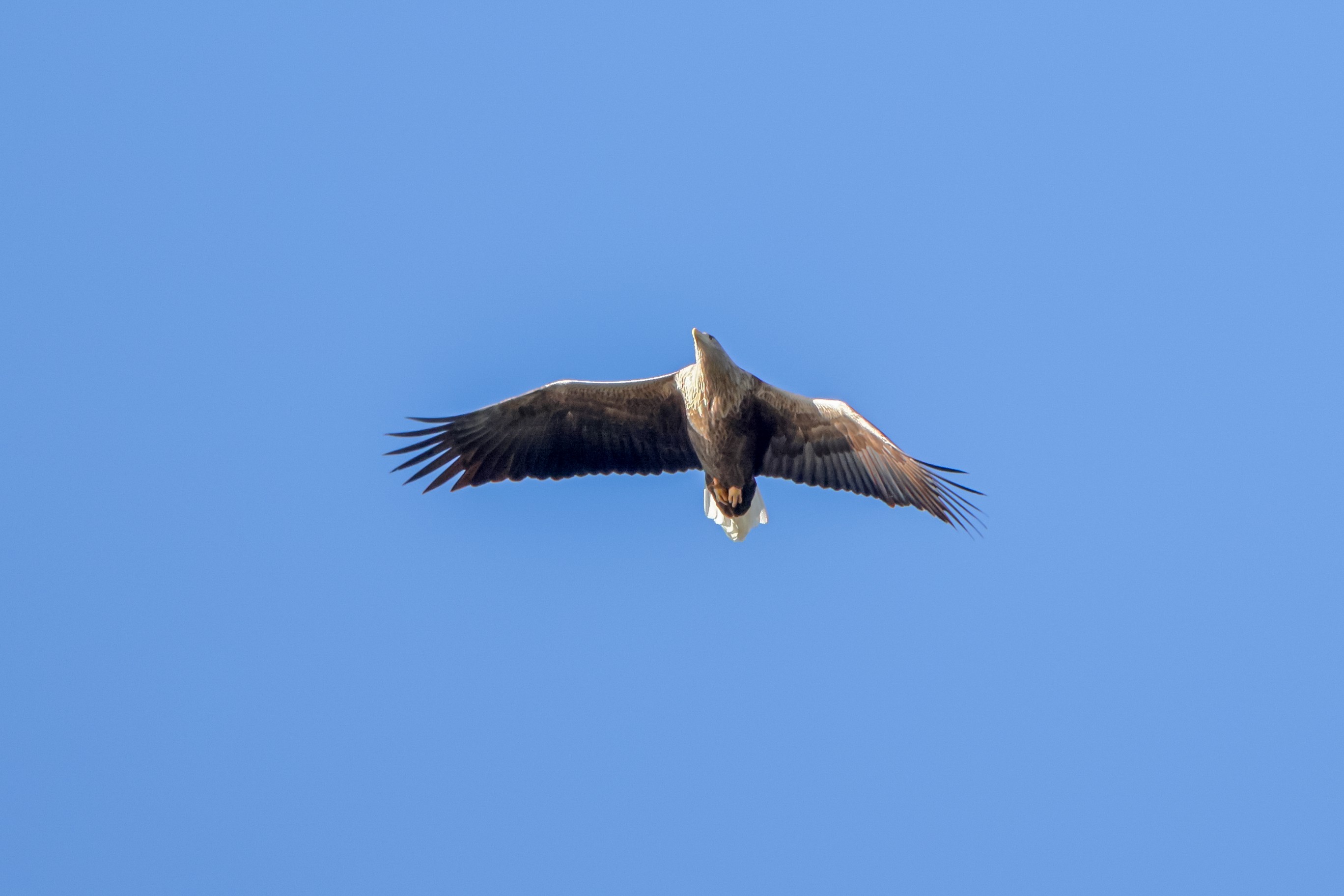 Seit einigen Wochen harmoniert der im April vertriebene Habitatsgründer "Rheingold" mit dem neuen Seeadlerweibchen. Die Restauration des Horstes konnte schon beobachtet werden. Ob die beiden Seeadler letztendlich eine dauerhafte Beziehung eingehen, werden wir wahrscheinlich im kommenden Winter beobachten können, wenn es Balzflüge zu sichten gibt. Augenblicklich besteht eine Zweisamkeit der Seeadler, die auch mit gemeinsamen Flügen zu beobachten ist. Die Aufnahmen dieser Bildstrecke konnten allerdings nur zur Mittagszeit, unter erschwerten Belichtungsverhältnissen, erstellt werden und zeigen unseren Habitatsgründer im Überflug an der Beobachtungshütte III. Er hätte sich eine schönere Tageszeit aussuchen sollen.