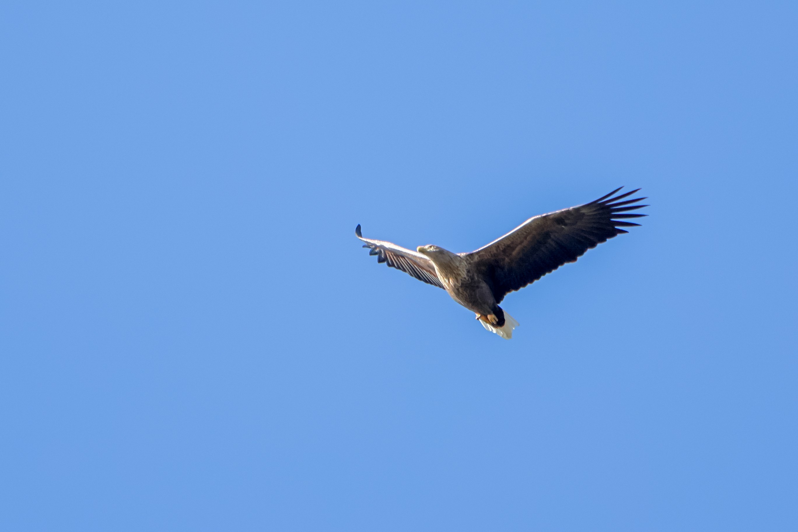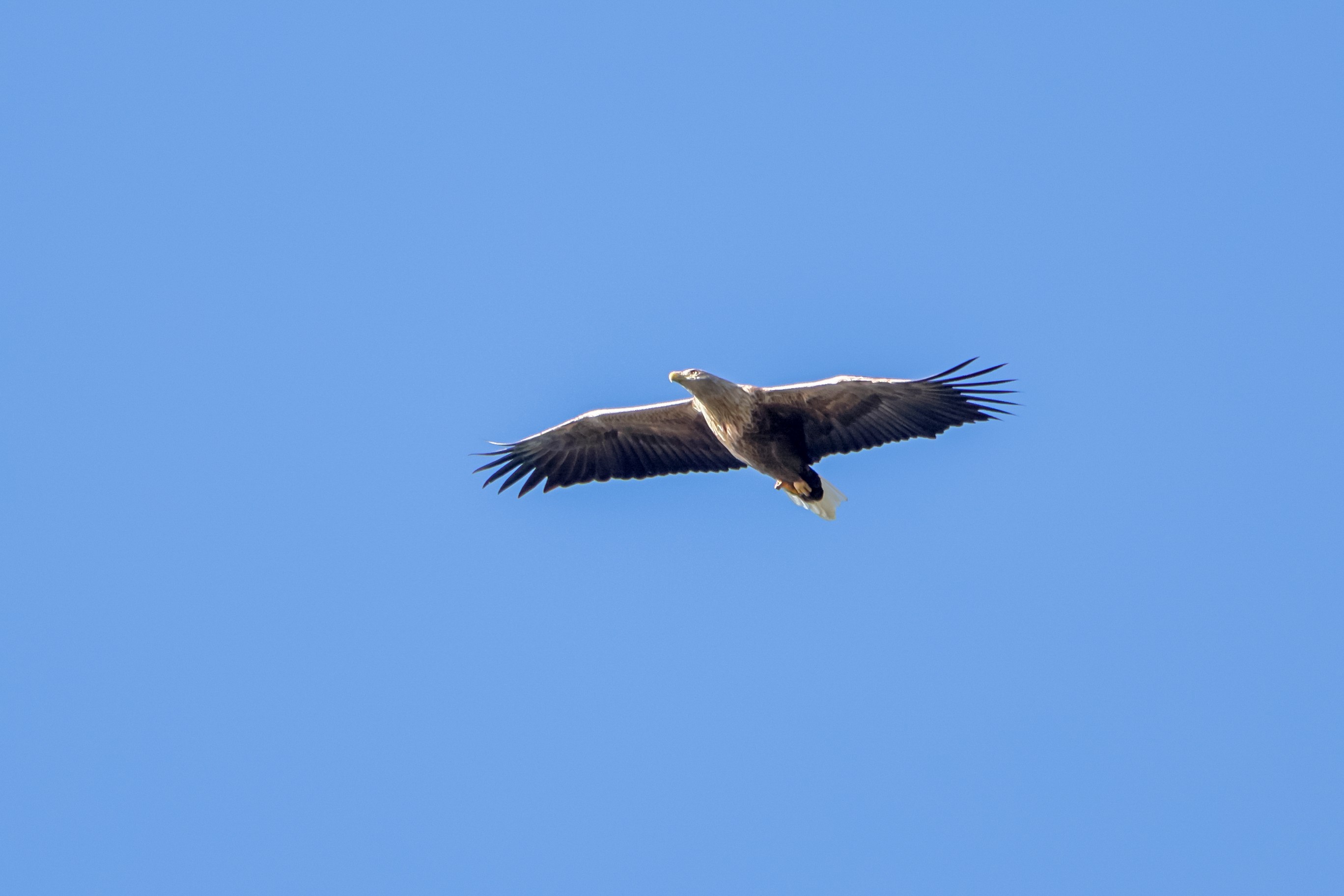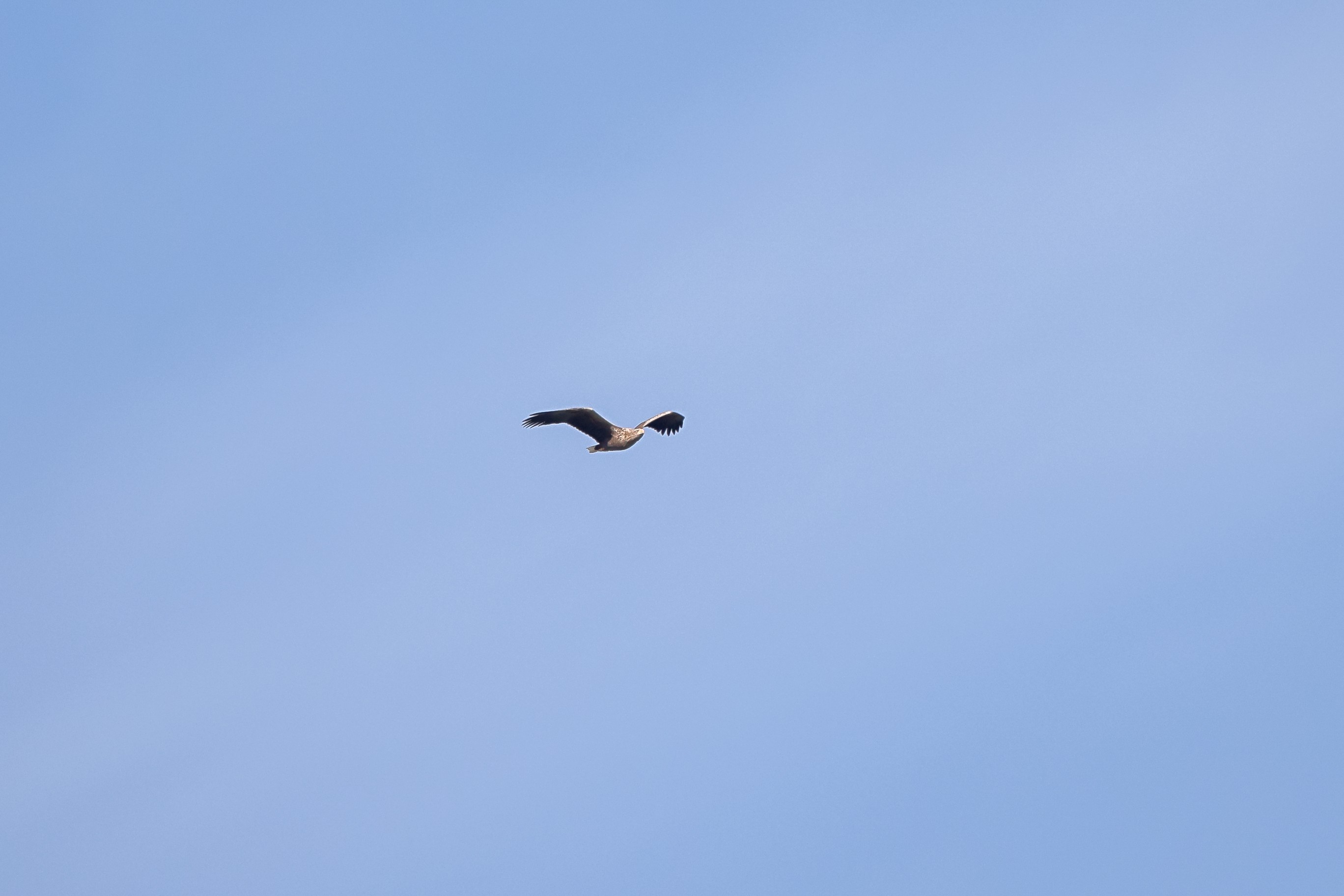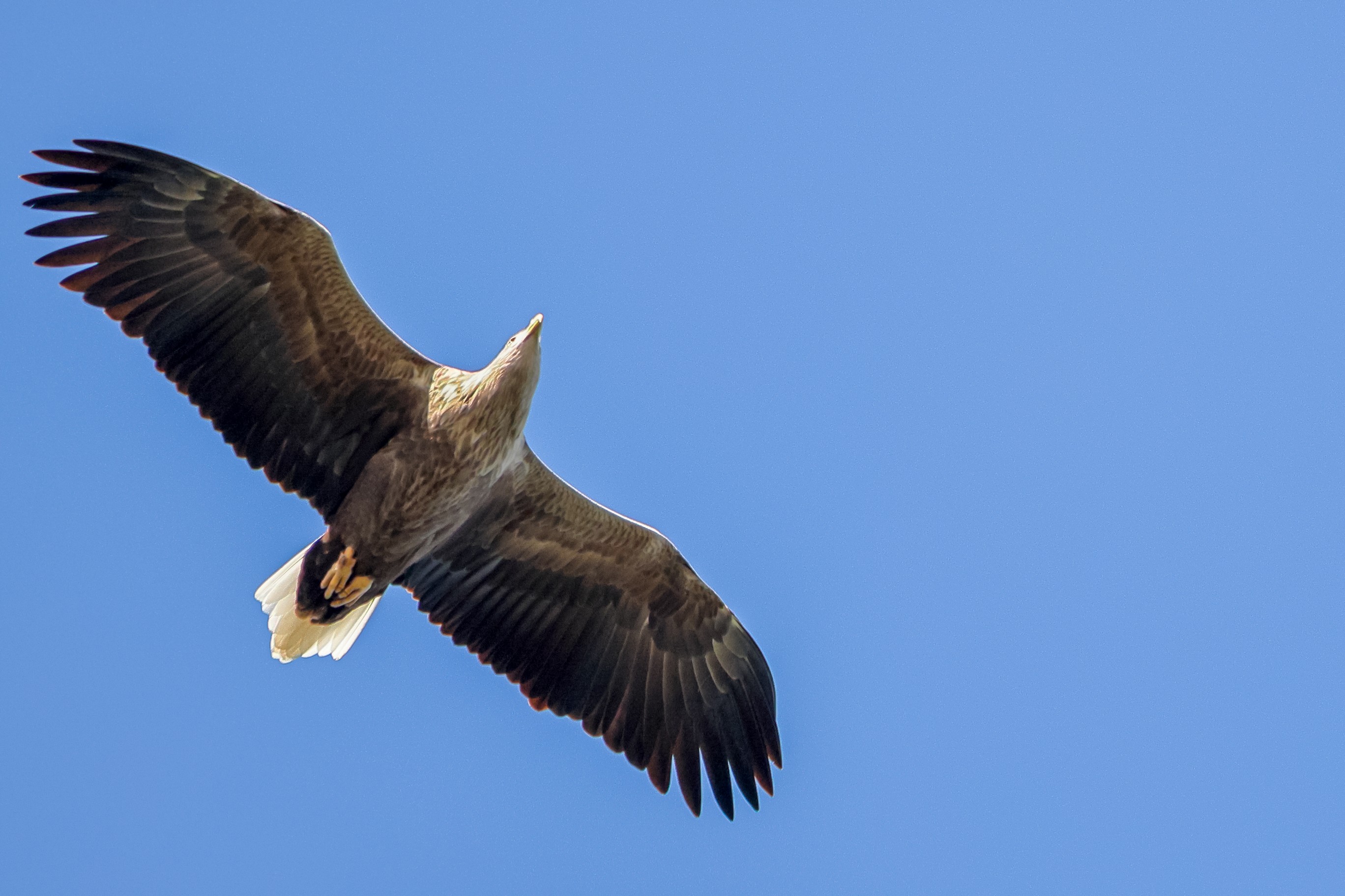 Seit einigen Wochen harmoniert der im April vertriebene Habitatsgründer "Rheingold" mit dem neuen Seeadlerweibchen. Die Restauration des Horstes konnte schon beobachtet werden. Ob die beiden Seeadler letztendlich eine dauerhafte Beziehung eingehen, werden wir wahrscheinlich im kommenden Winter beobachten können, wenn es Balzflüge zu sichten gibt. Augenblicklich besteht eine Zweisamkeit der Seeadler, die auch mit gemeinsamen Flügen zu beobachten ist. Die Aufnahmen dieser Bildstrecke konnten allerdings nur zur Mittagszeit, unter erschwerten Belichtungsverhältnissen, erstellt werden und zeigen unseren Habitatsgründer im Überflug an der Beobachtungshütte III. Er hätte sich eine schönere Tageszeit aussuchen sollen.
