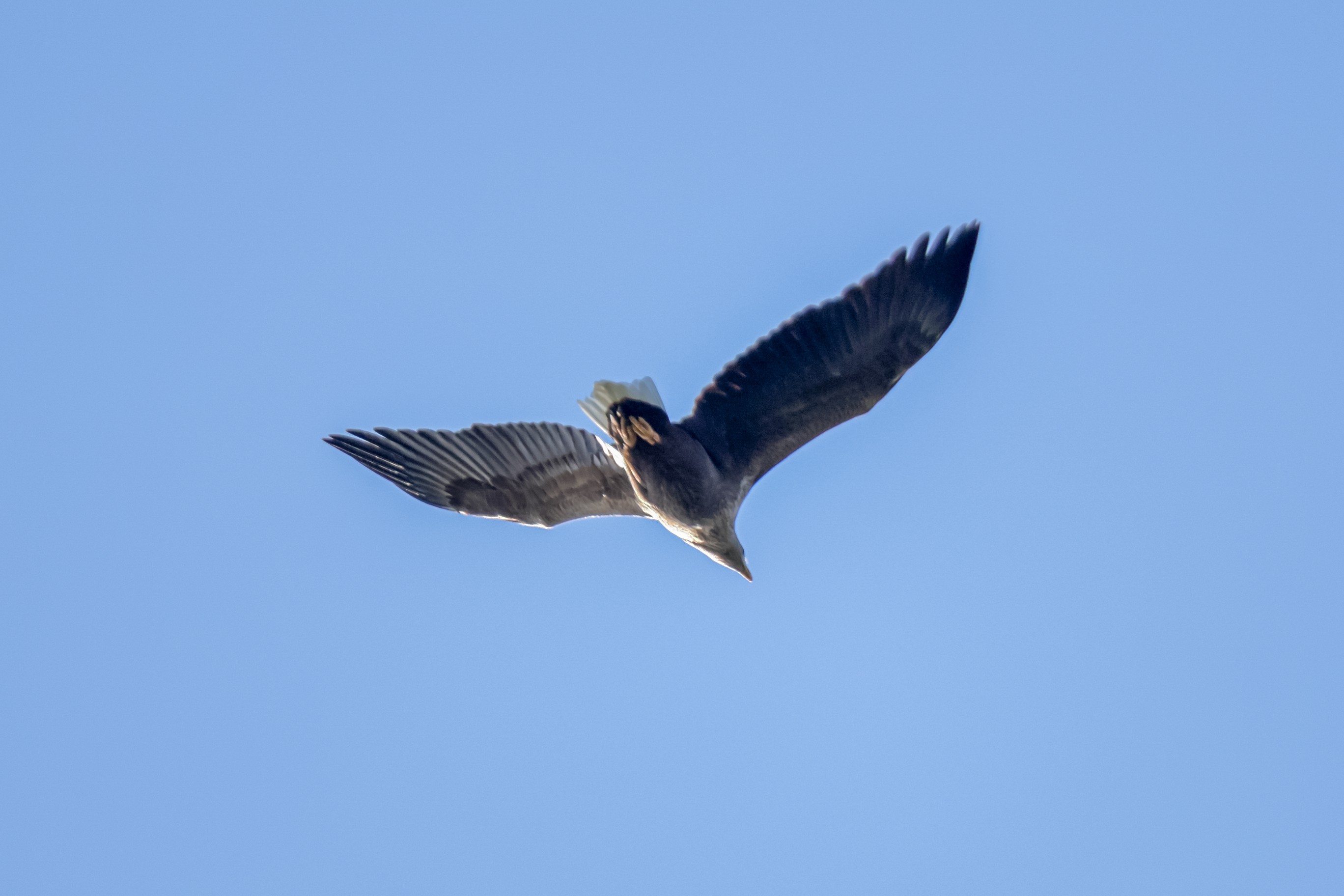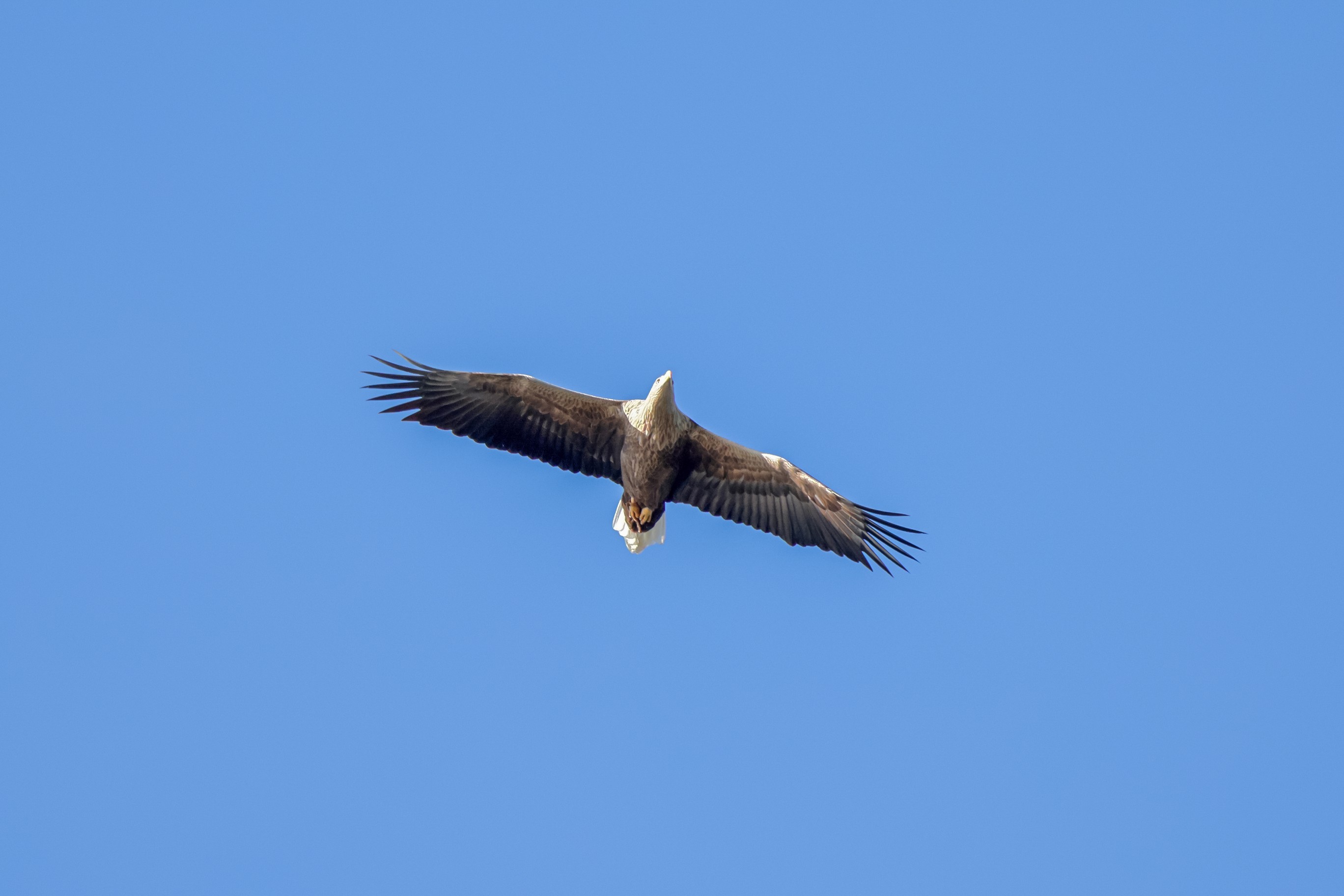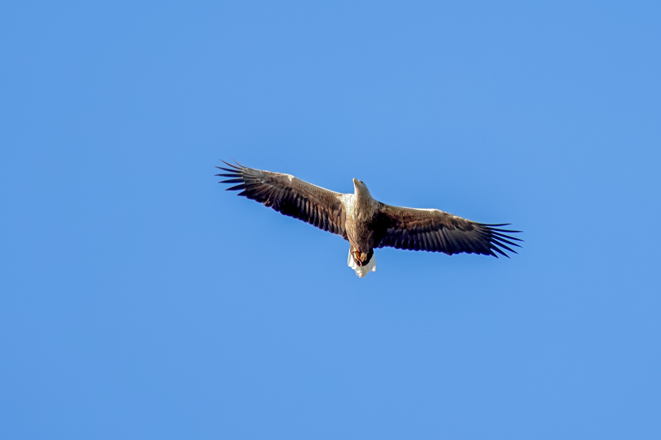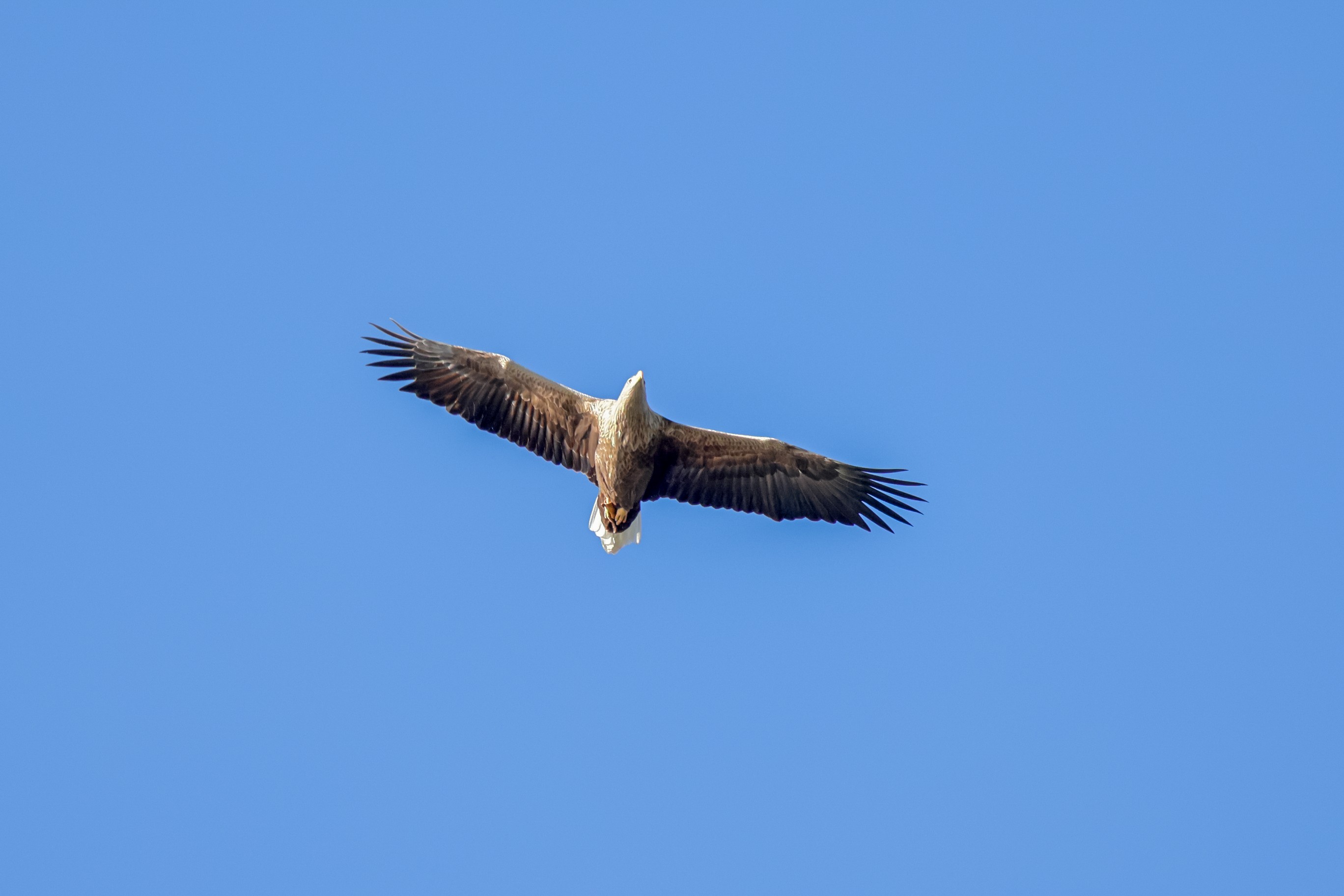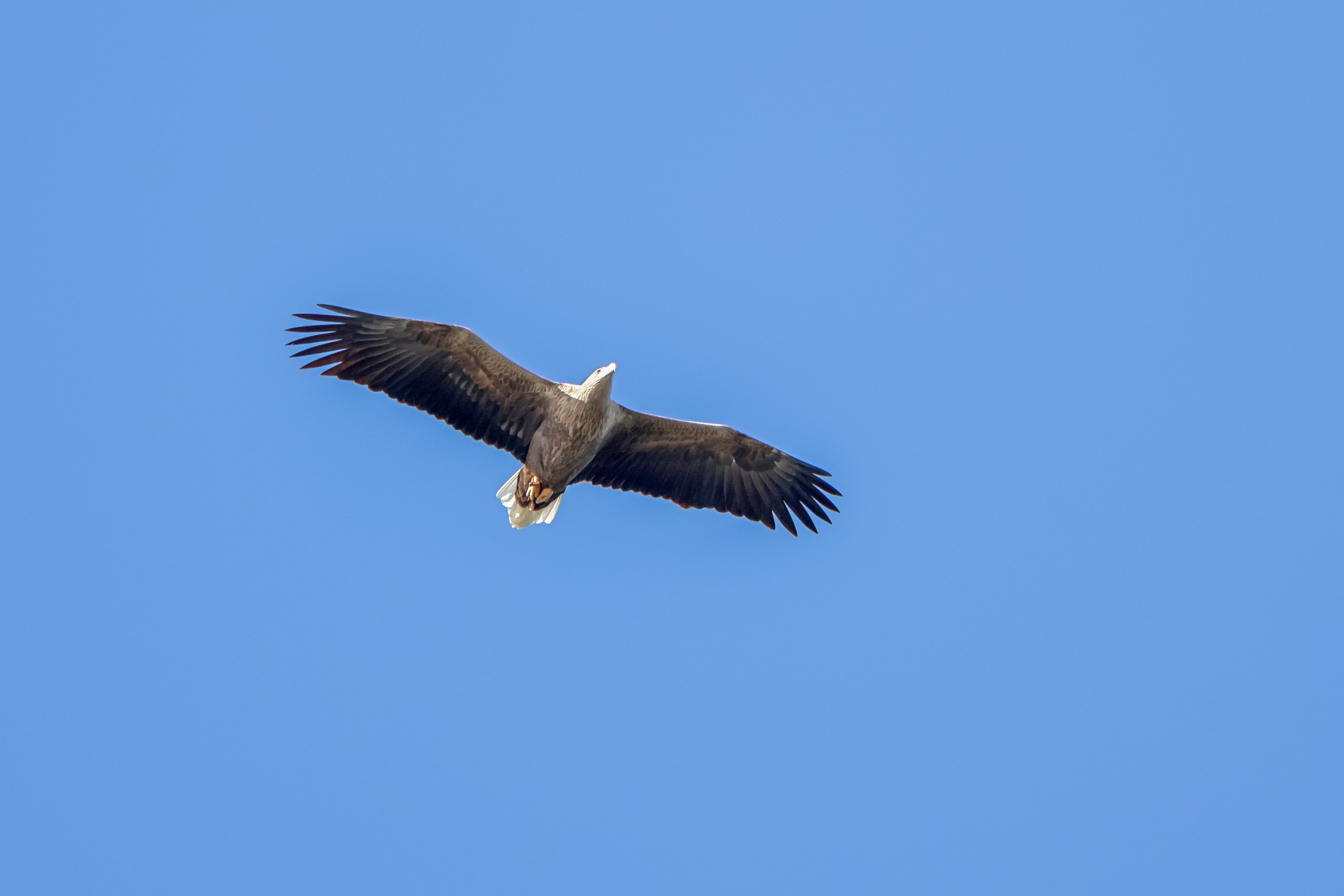 Seit einigen Wochen harmoniert der im April vertriebene Habitatsgründer "Rheingold" mit dem neuen Seeadlerweibchen. Die Restauration des Horstes konnte schon beobachtet werden. Ob die beiden Seeadler letztendlich eine dauerhafte Beziehung eingehen, werden wir wahrscheinlich im kommenden Winter beobachten können, wenn es Balzflüge zu sichten gibt. Augenblicklich besteht eine Zweisamkeit der Seeadler, die auch mit gemeinsamen Flügen zu beobachten ist. Die Aufnahmen dieser Bildstrecke konnten allerdings nur zur Mittagszeit, unter erschwerten Belichtungsverhältnissen, erstellt werden und zeigen unseren Habitatsgründer im Überflug an der Beobachtungshütte III. Er hätte sich eine schönere Tageszeit aussuchen sollen.