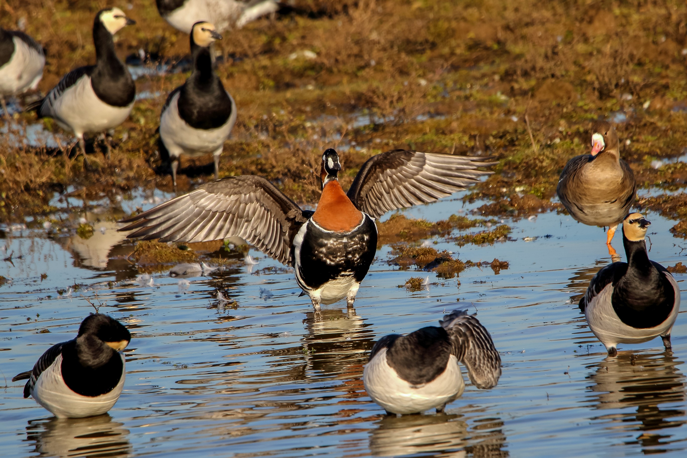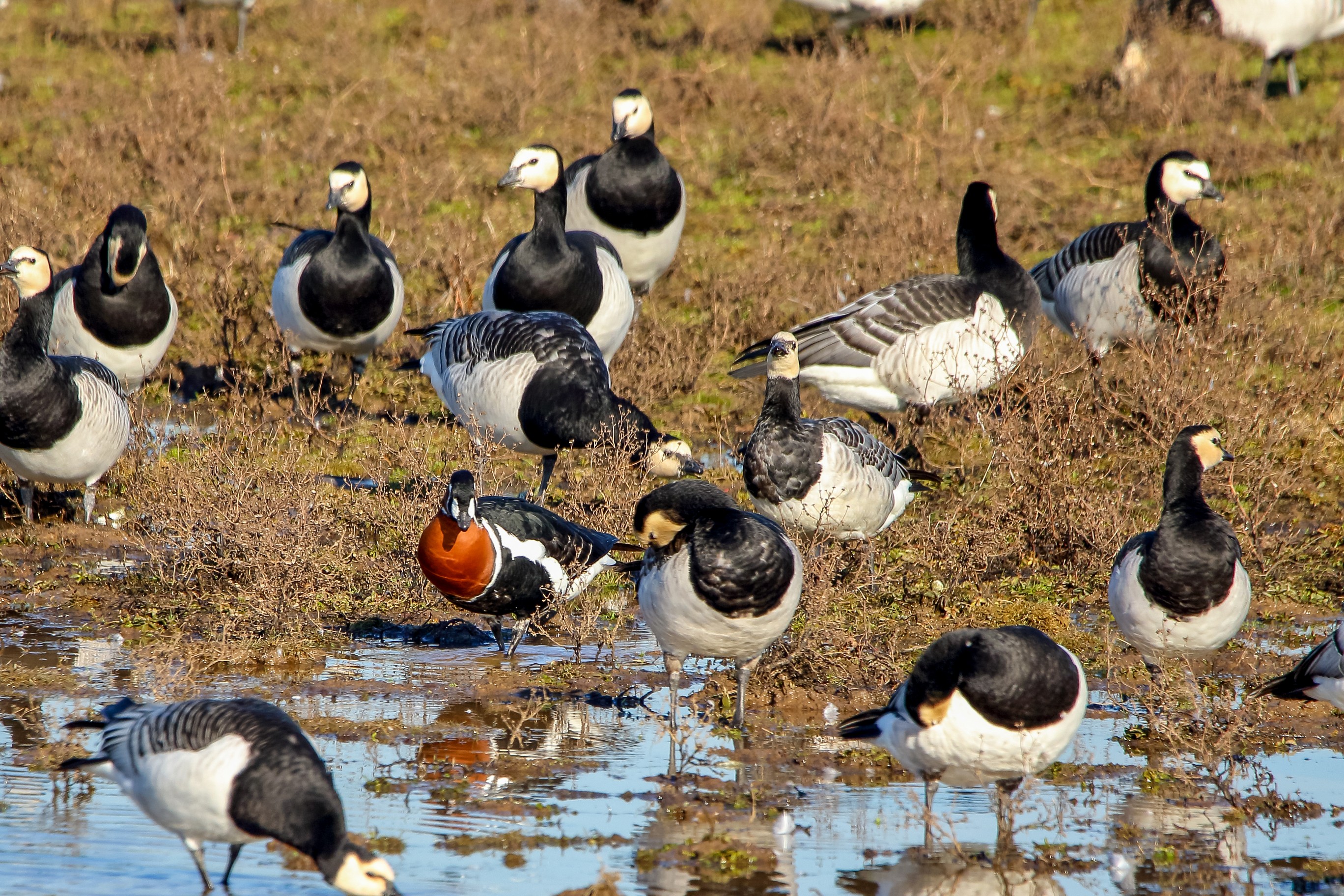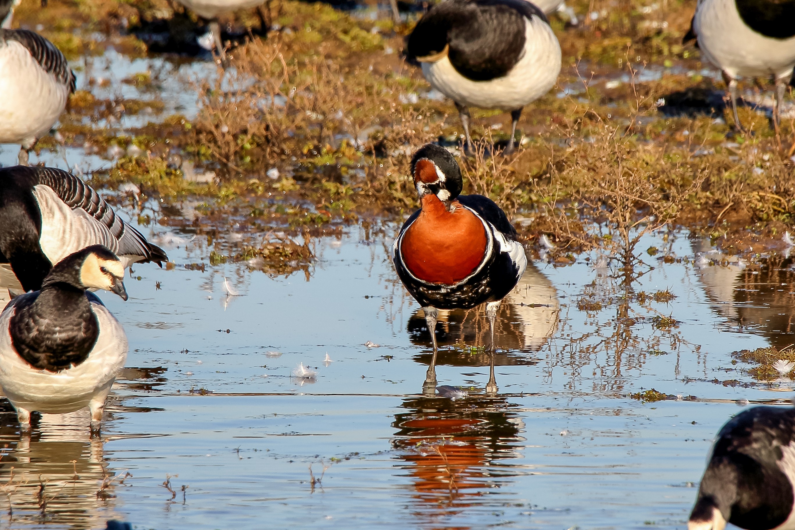 Rothalsgans an der kleinen Flutmulde schenkt uns einen Blick auf ihre Schönheit