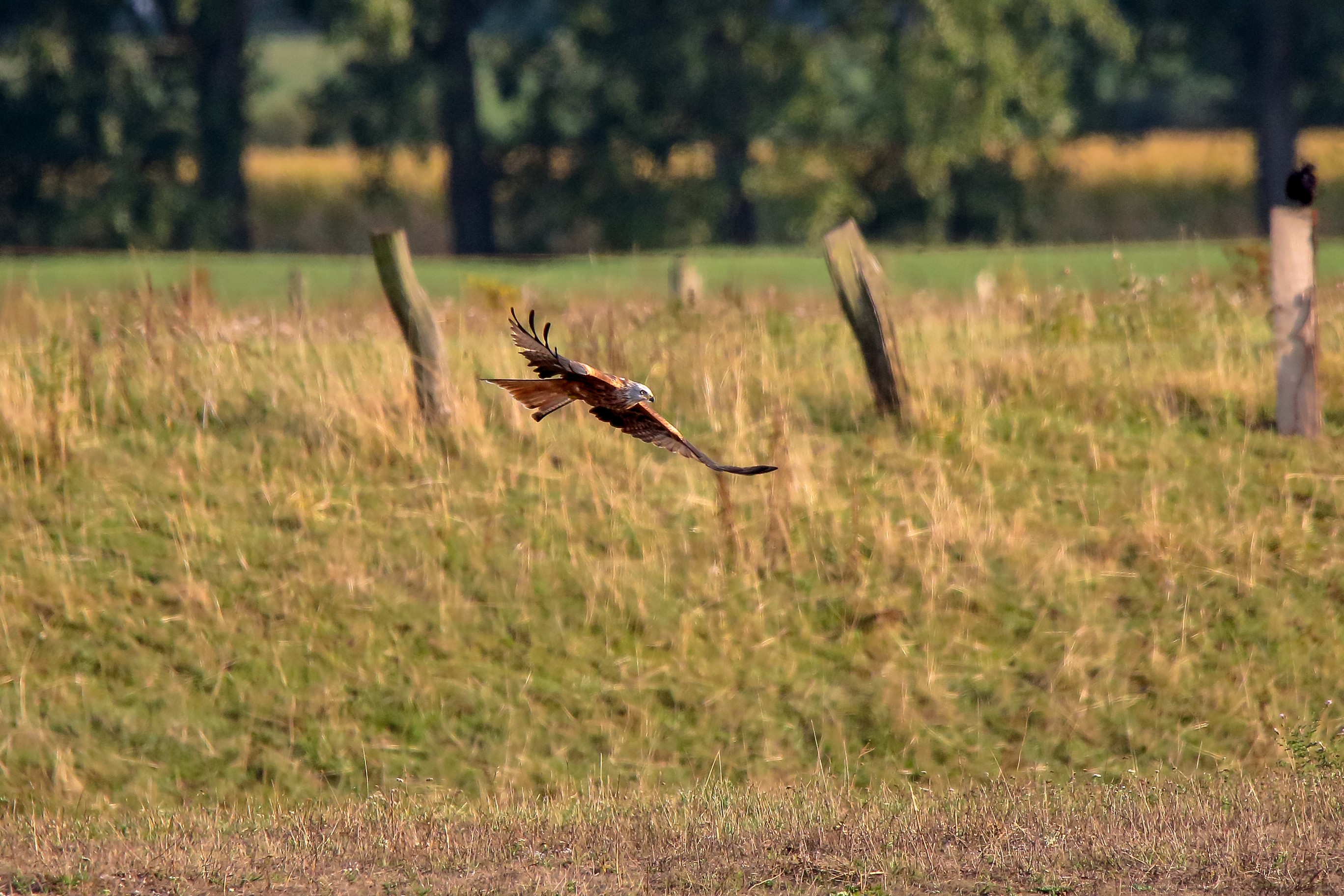 Rotmilan zeigt sich an der Flutmulde