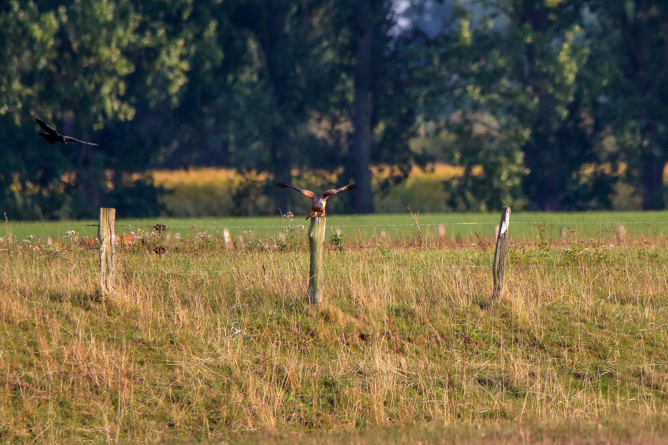 Rohrweihe und junger Rotmilan