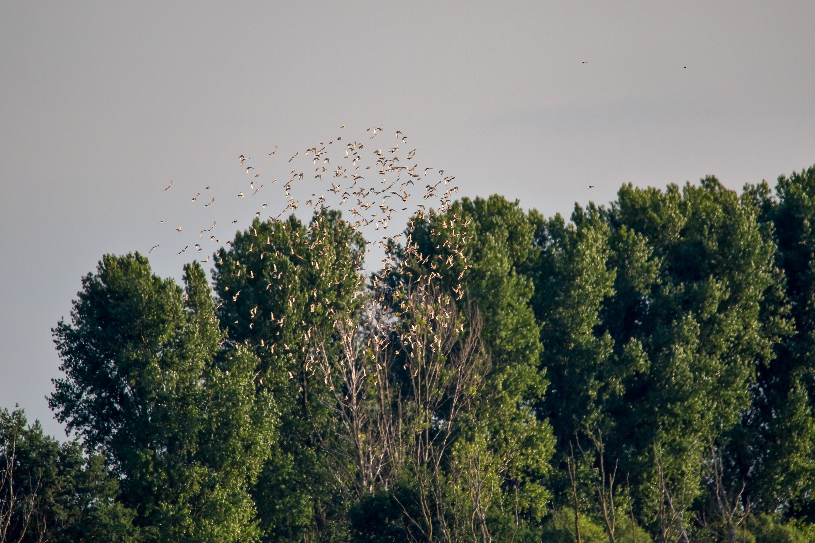 Abendlicher Rundflug der jungen Löffler