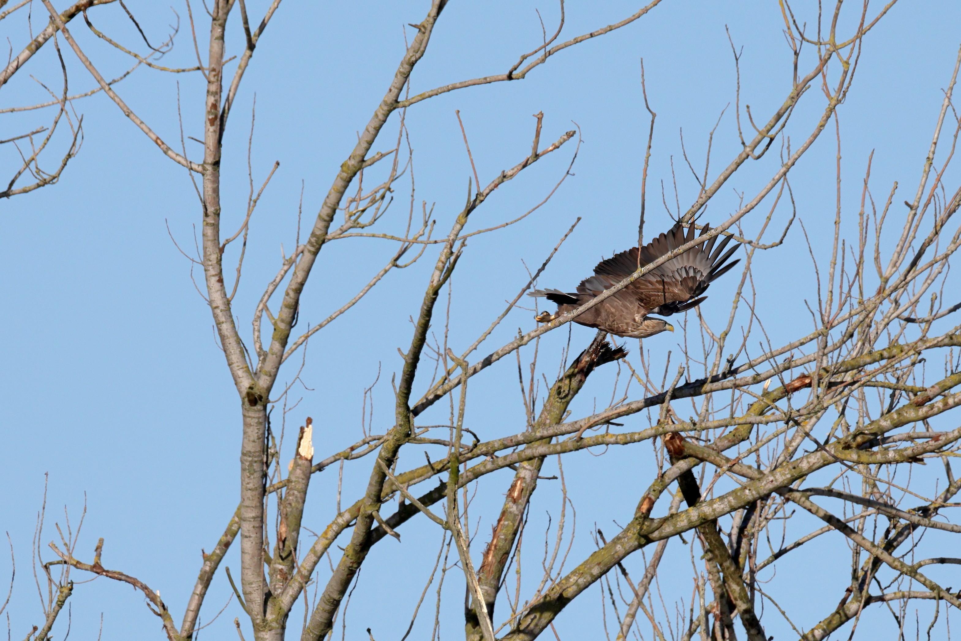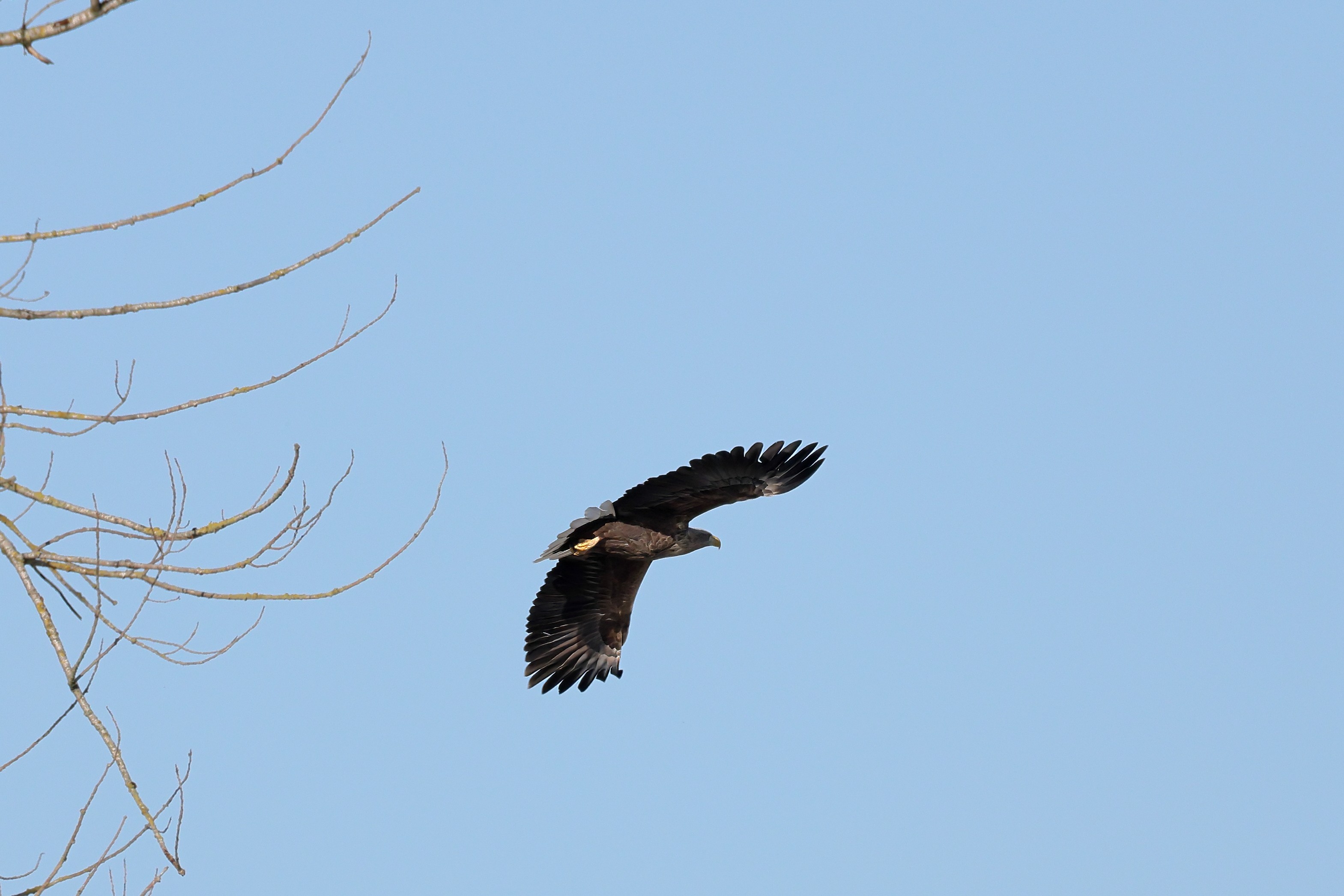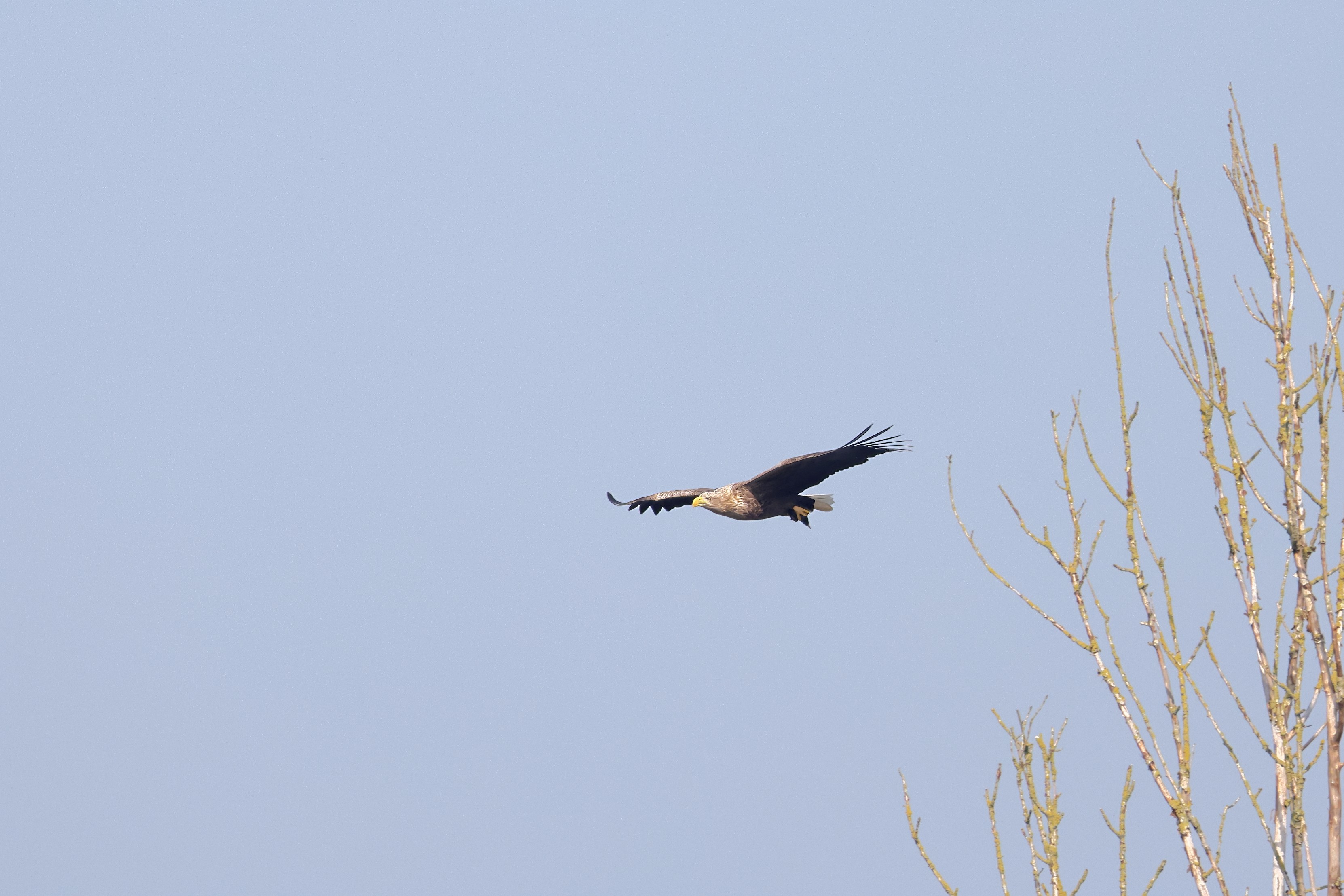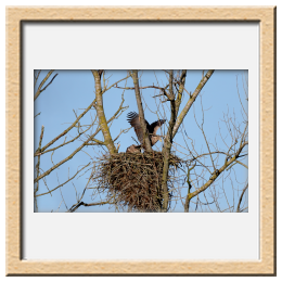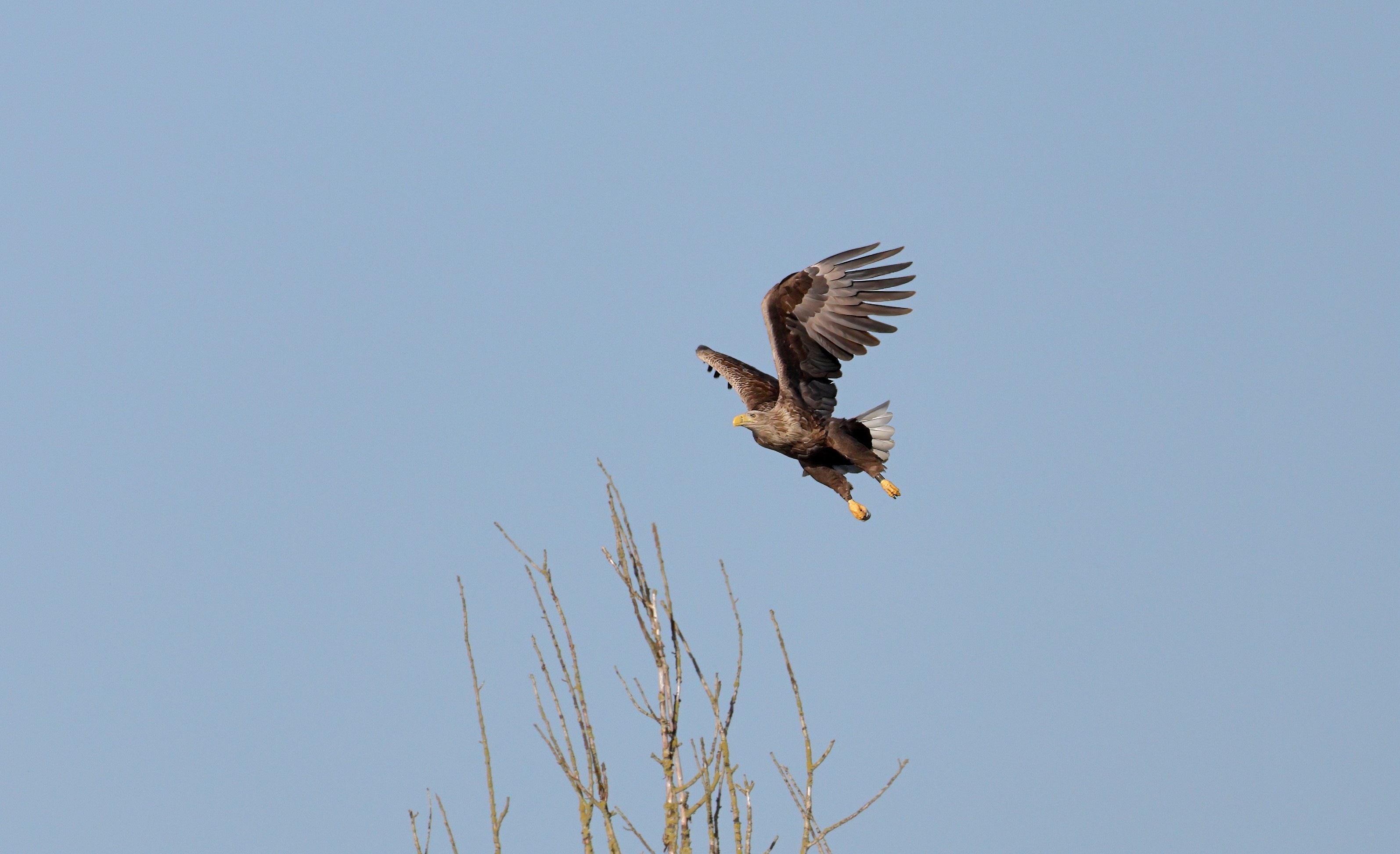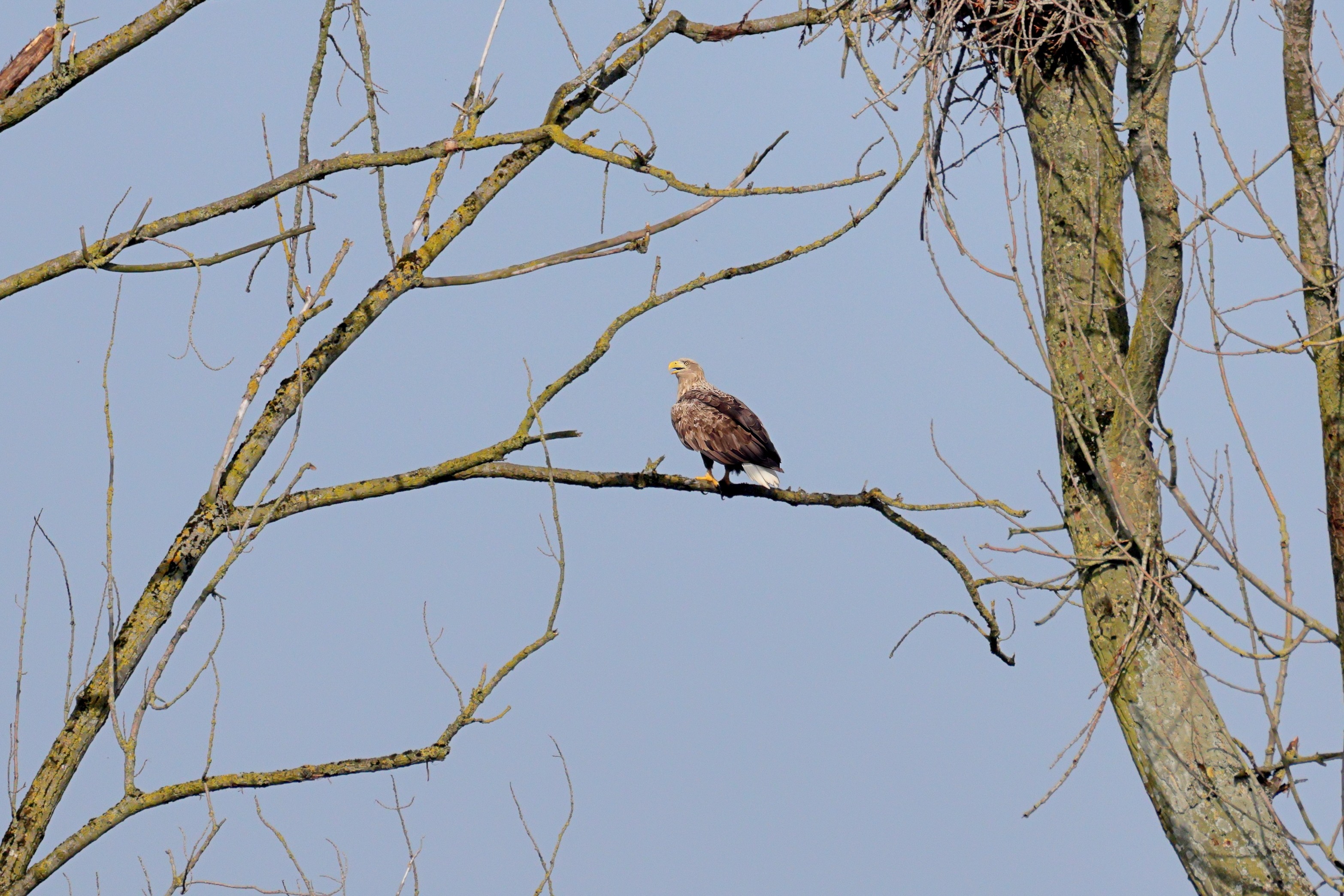 Während der etwa 38 bis 42 Tage dauernden Brutzeit der Seeadler kommt es meist nur zu kurzen Ablösungen zwischen den Partnern. Doch wenn gutes Wetter, die Tageszeit und der natürliche Bewegungsdrang nach den langen Brutsitzungen zusammentreffen, lassen sich vom abgelösten Partner manchmal ganz besondere Aufnahmen gestalten.