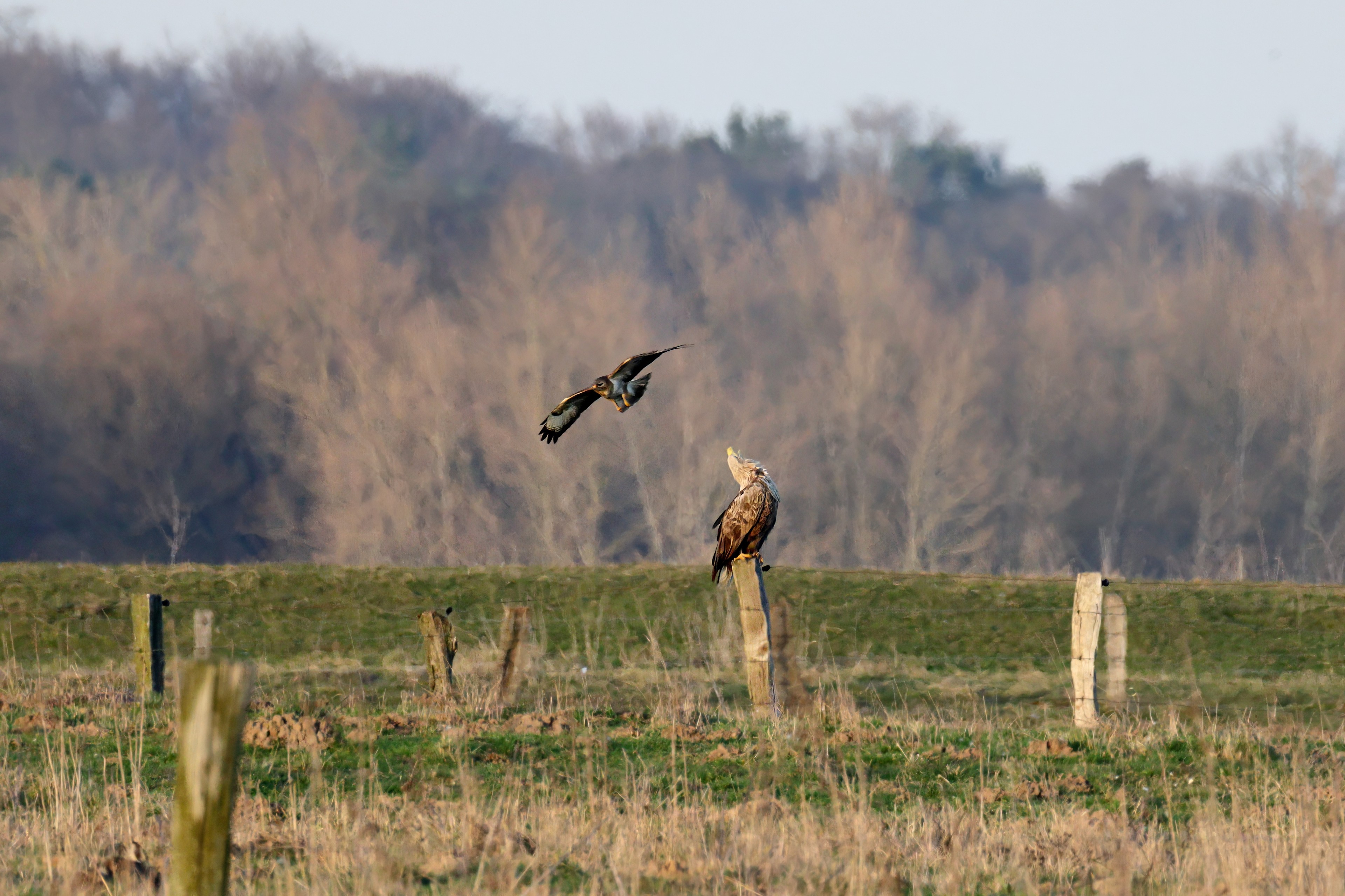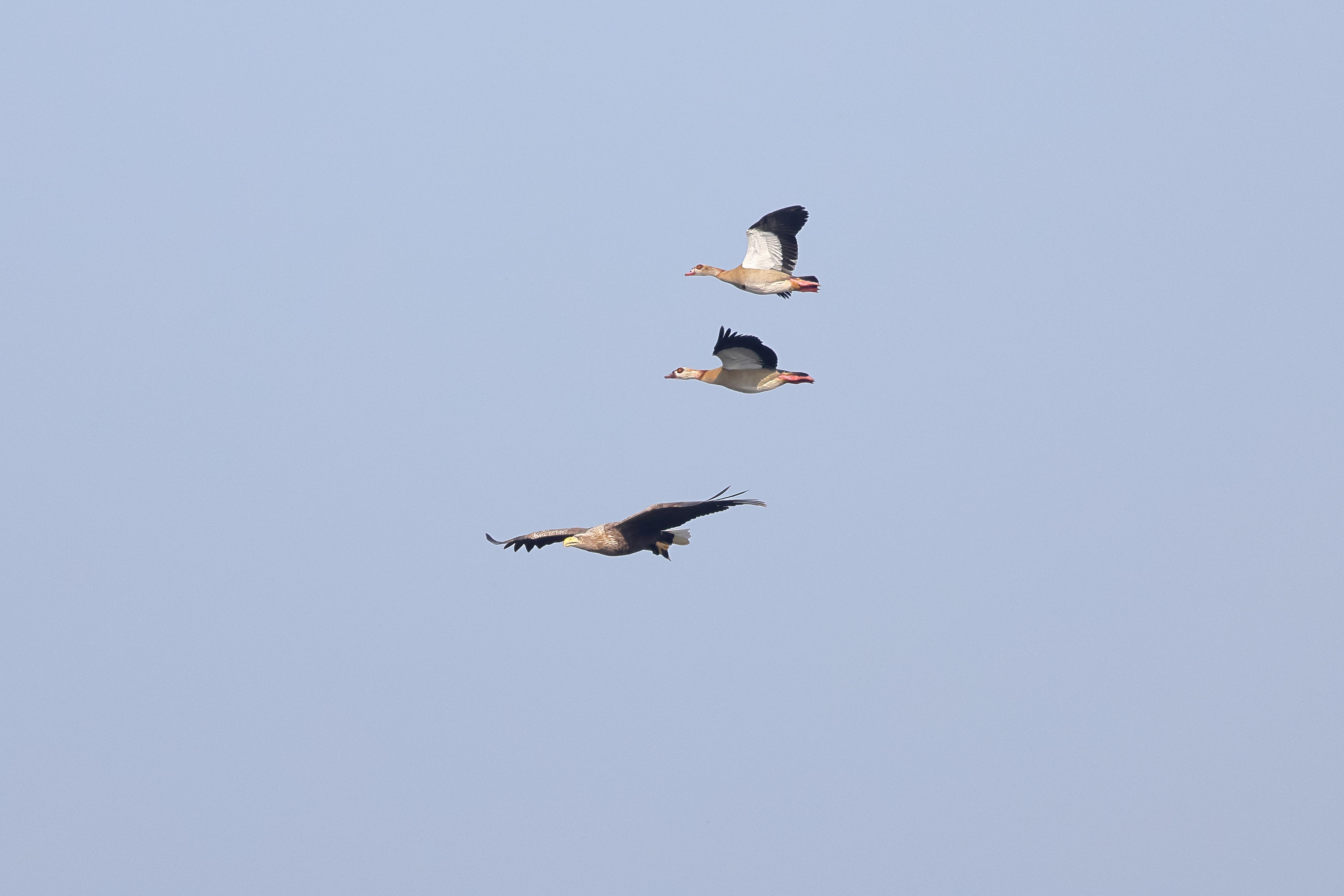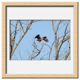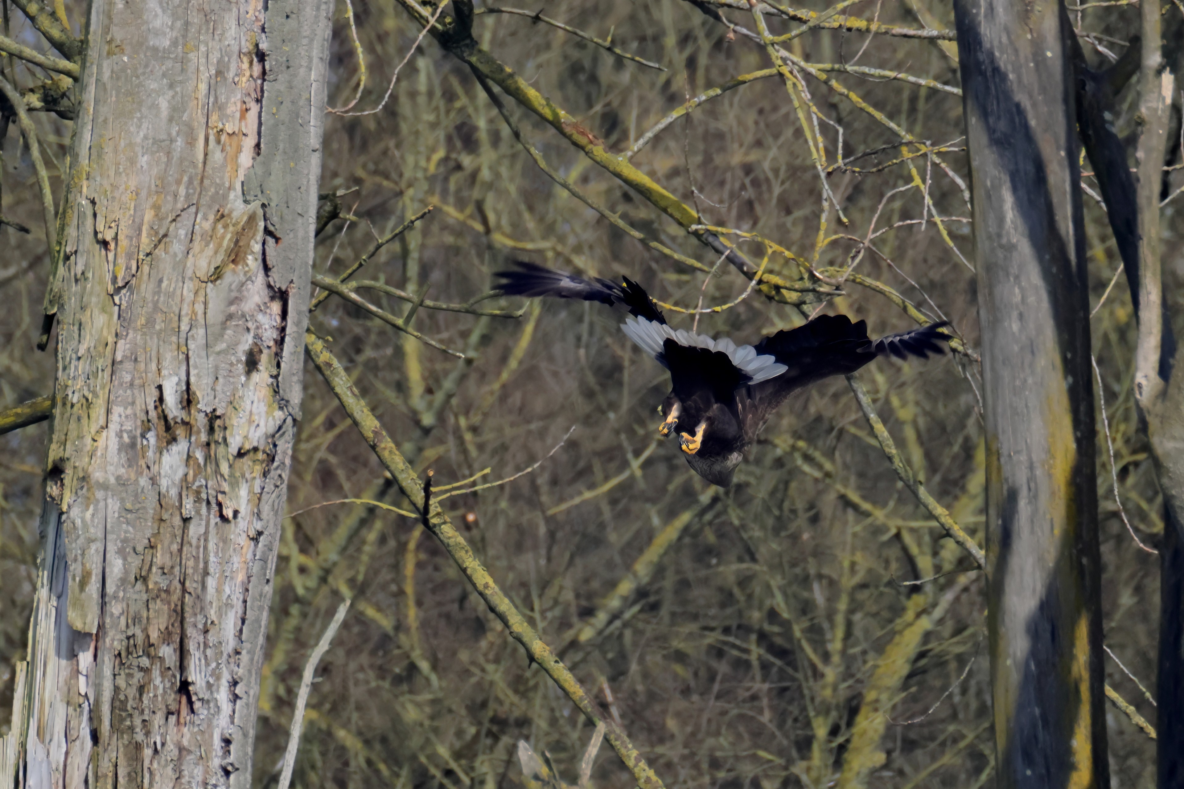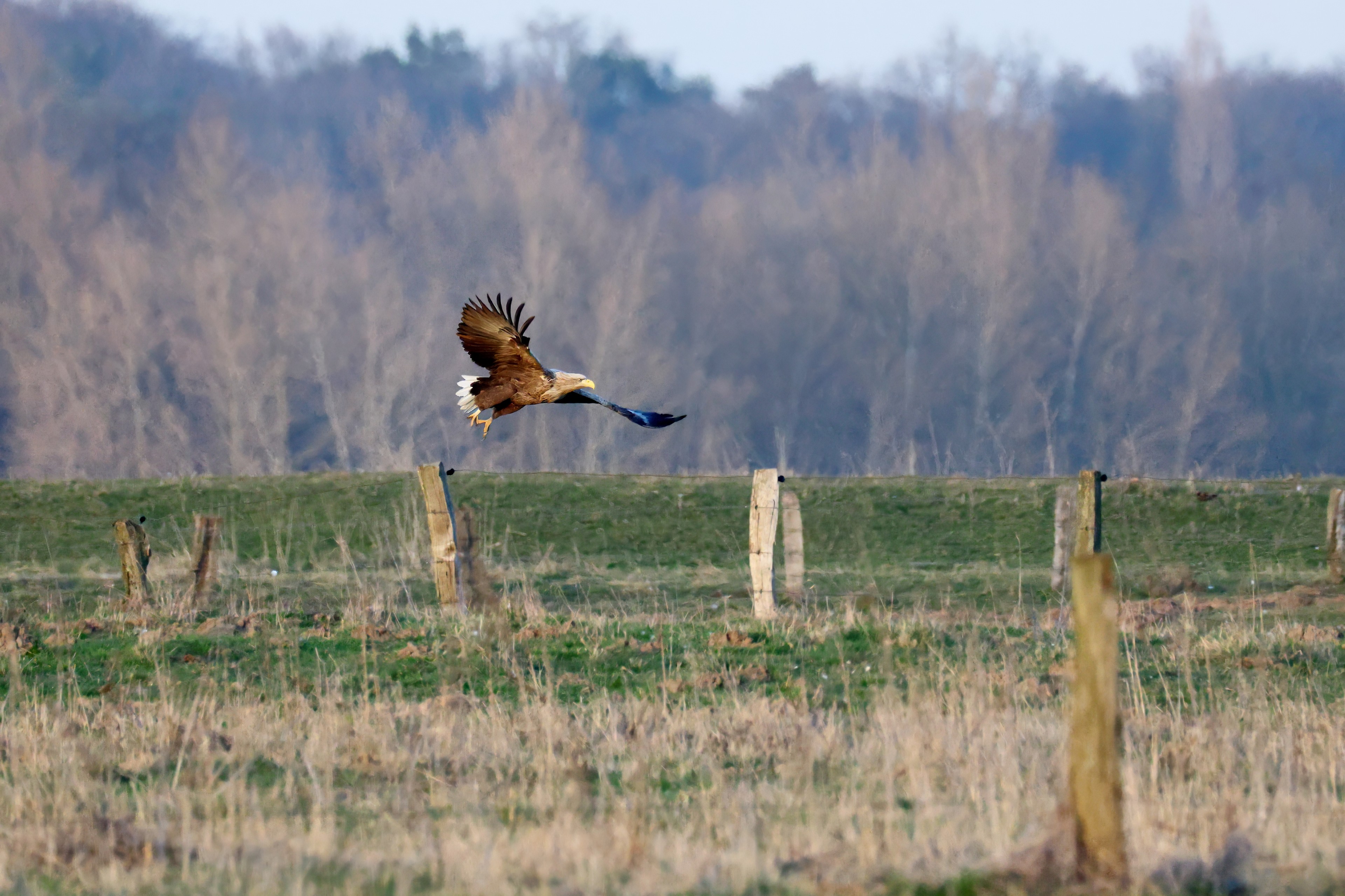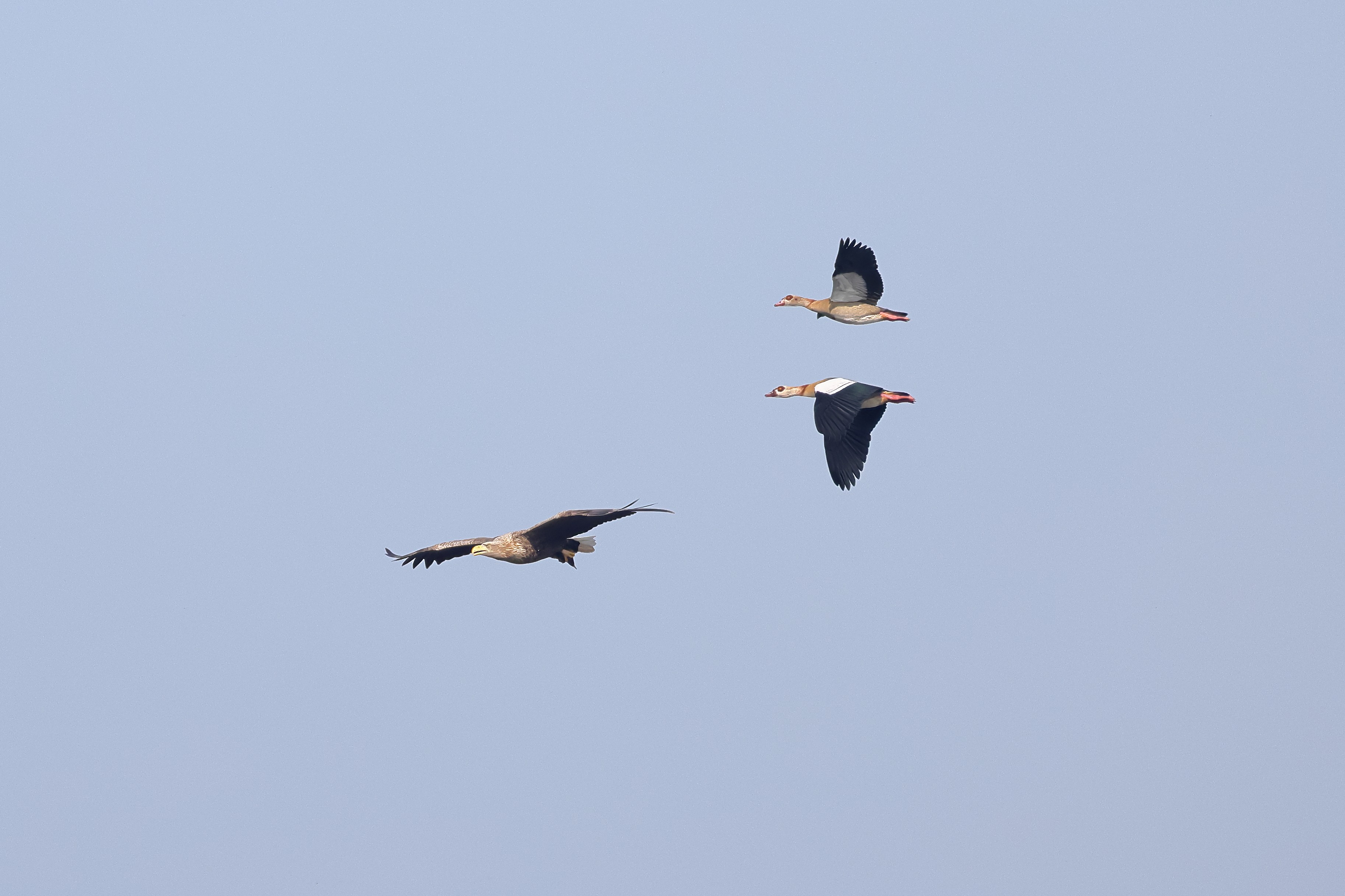 Während der etwa 38 bis 42 Tage dauernden Brutzeit der Seeadler kommt es meist nur zu kurzen Ablösungen zwischen den Partnern. Doch wenn gutes Wetter, die Tageszeit und der natürliche Bewegungsdrang nach den langen Brutsitzungen zusammentreffen, lassen sich vom abgelösten Partner manchmal ganz besondere Aufnahmen gestalten.