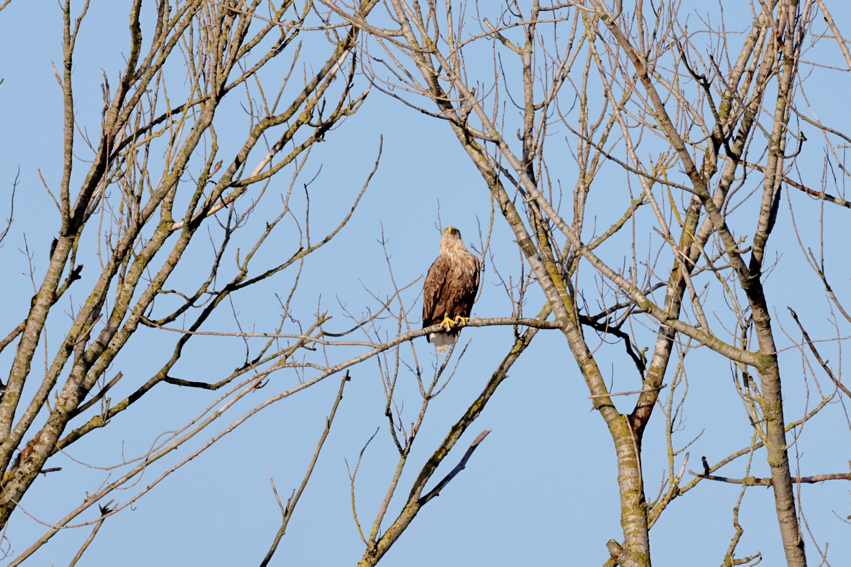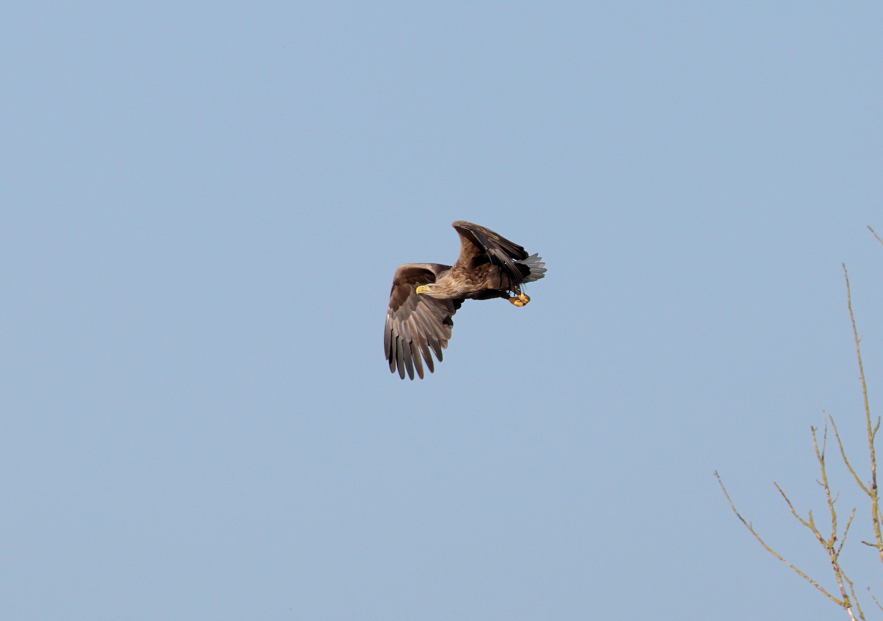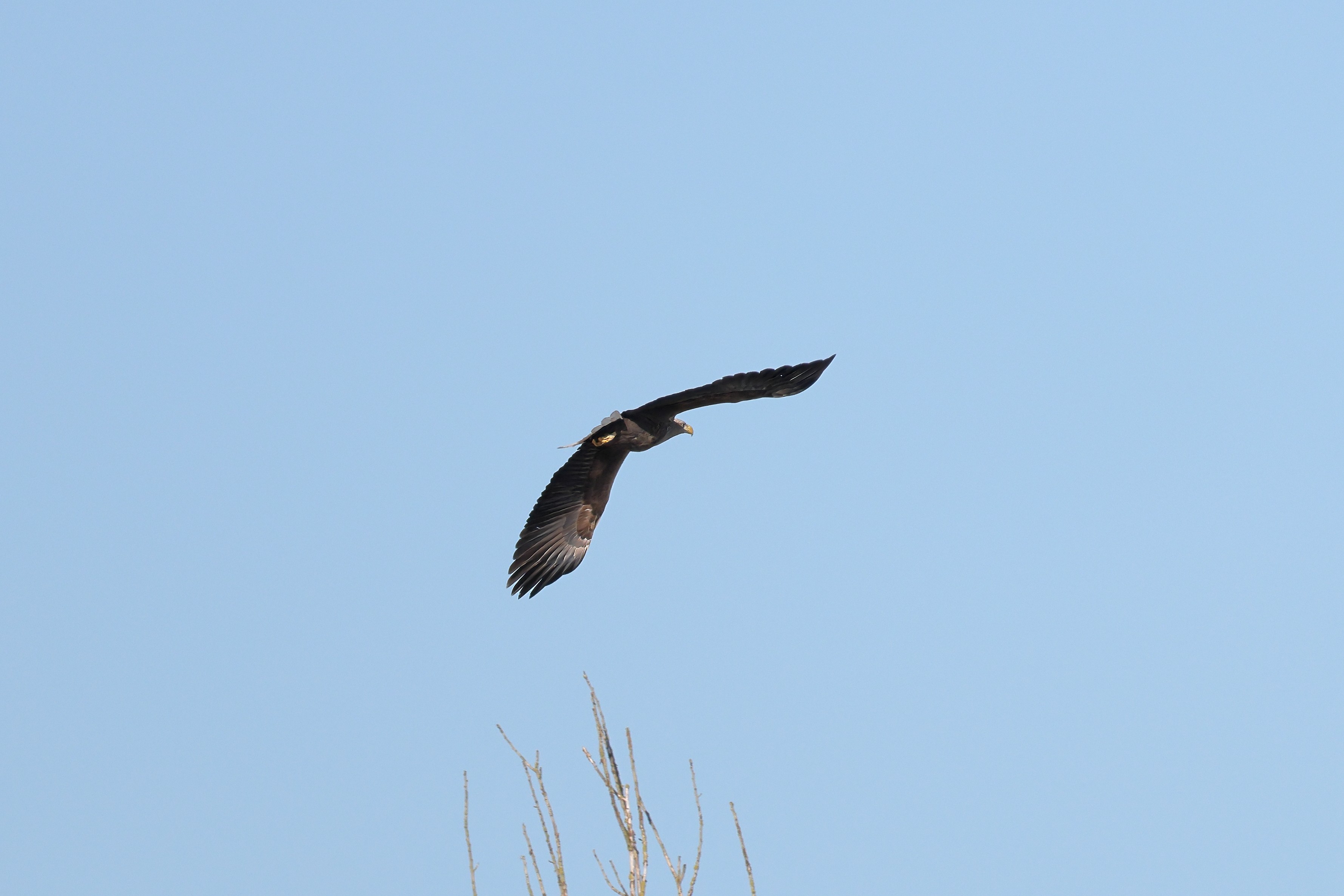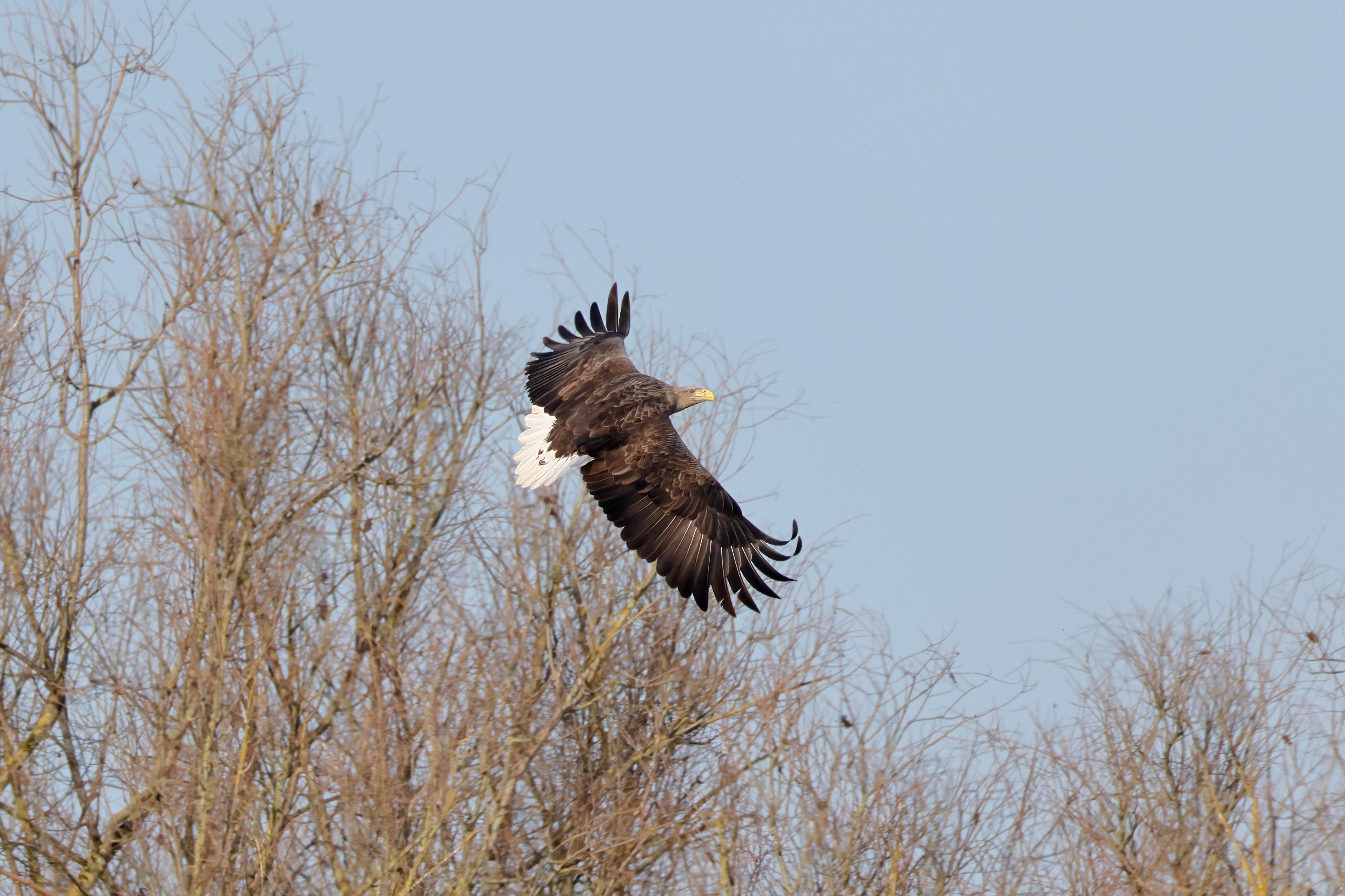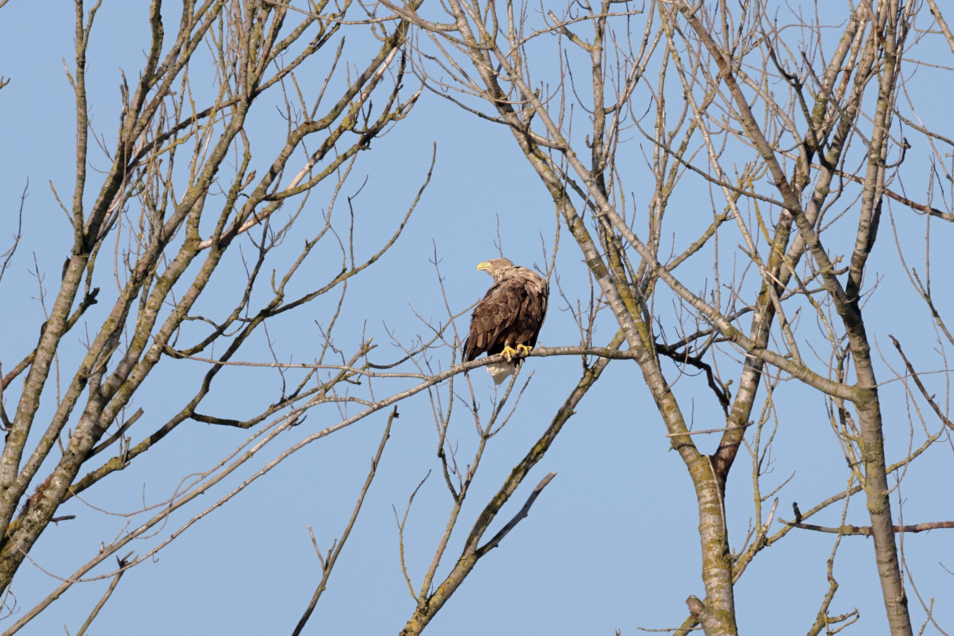 Während der etwa 38 bis 42 Tage dauernden Brutzeit der Seeadler kommt es meist nur zu kurzen Ablösungen zwischen den Partnern. Doch wenn gutes Wetter, die Tageszeit und der natürliche Bewegungsdrang nach den langen Brutsitzungen zusammentreffen, lassen sich vom abgelösten Partner manchmal ganz besondere Aufnahmen gestalten.