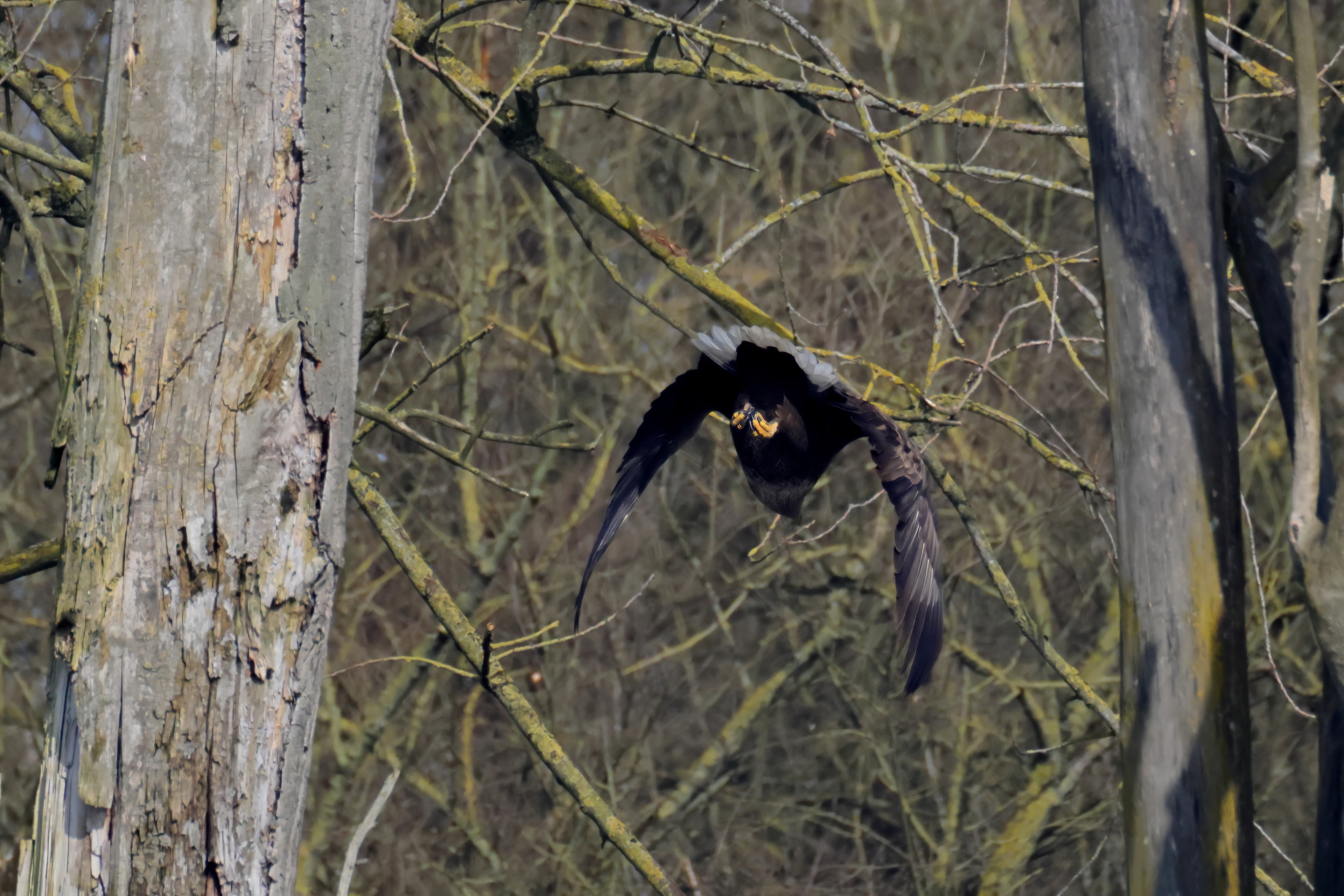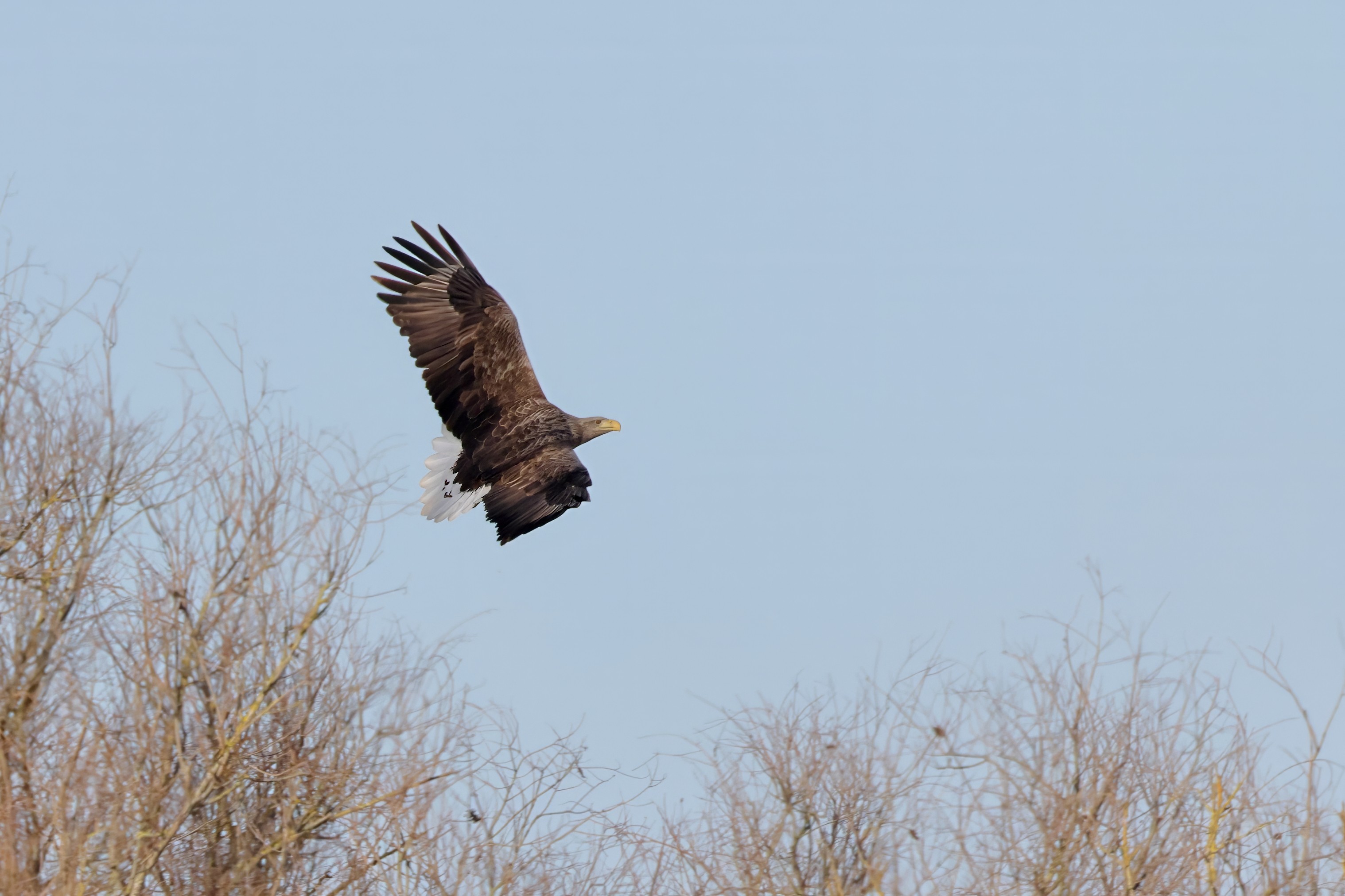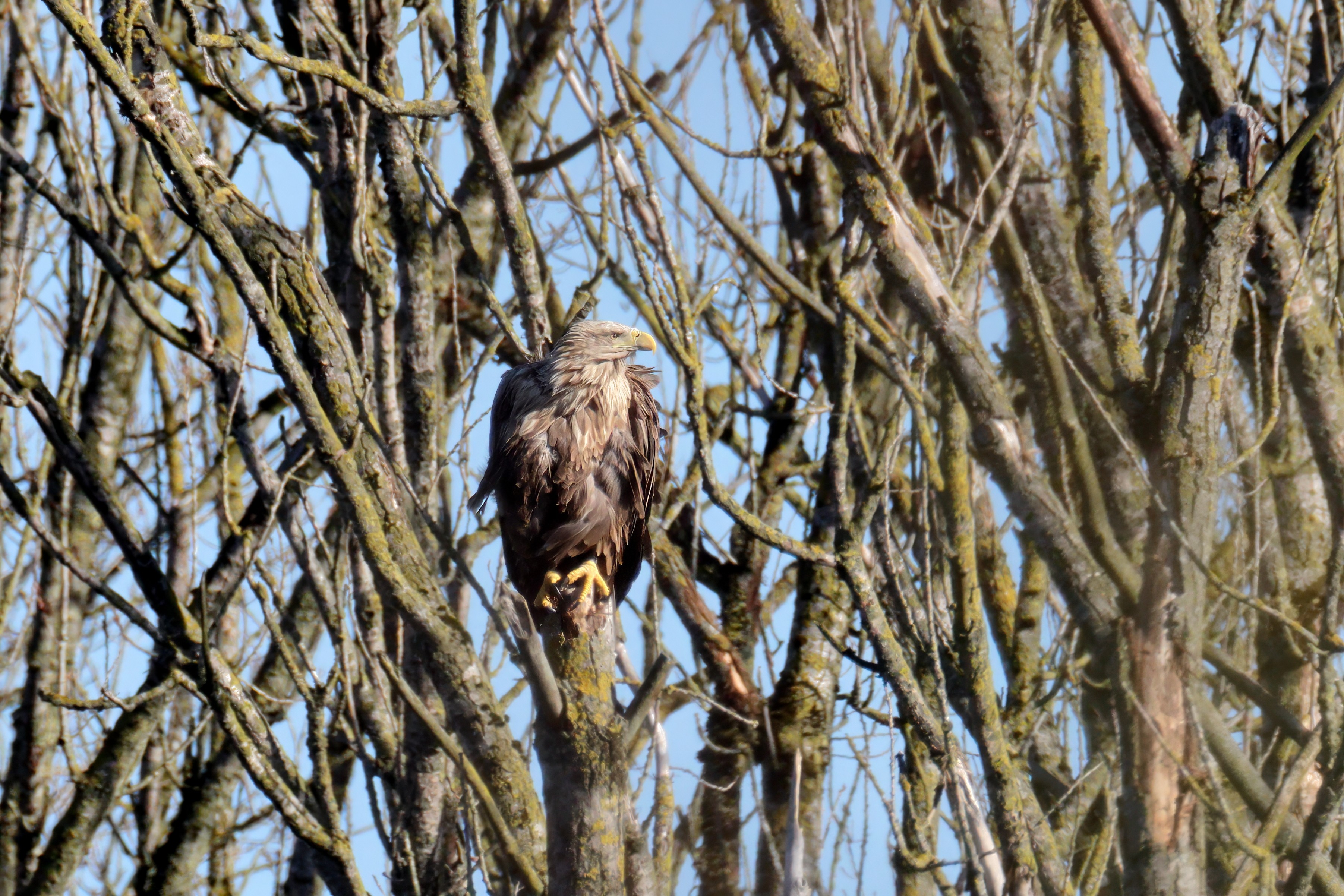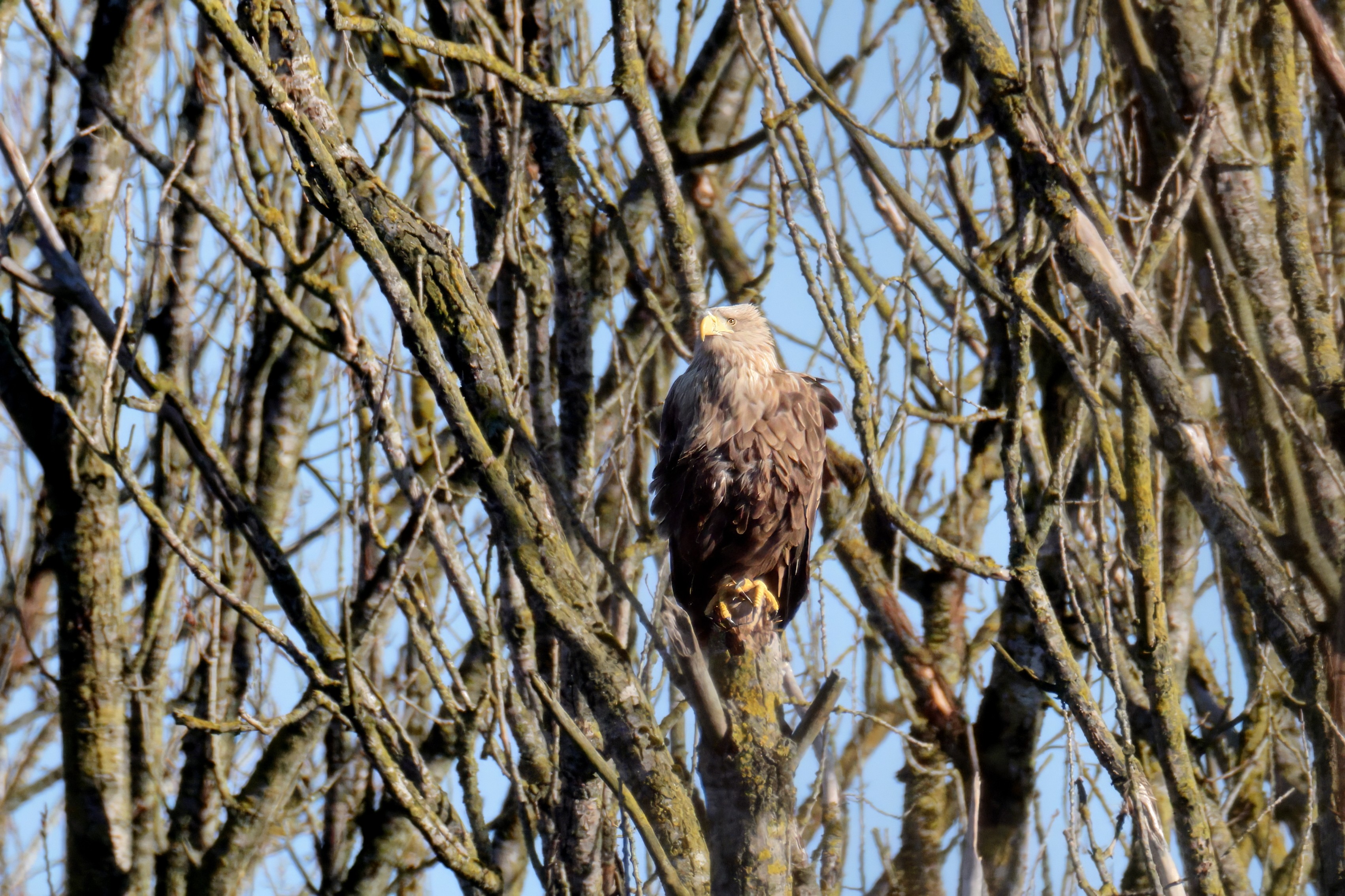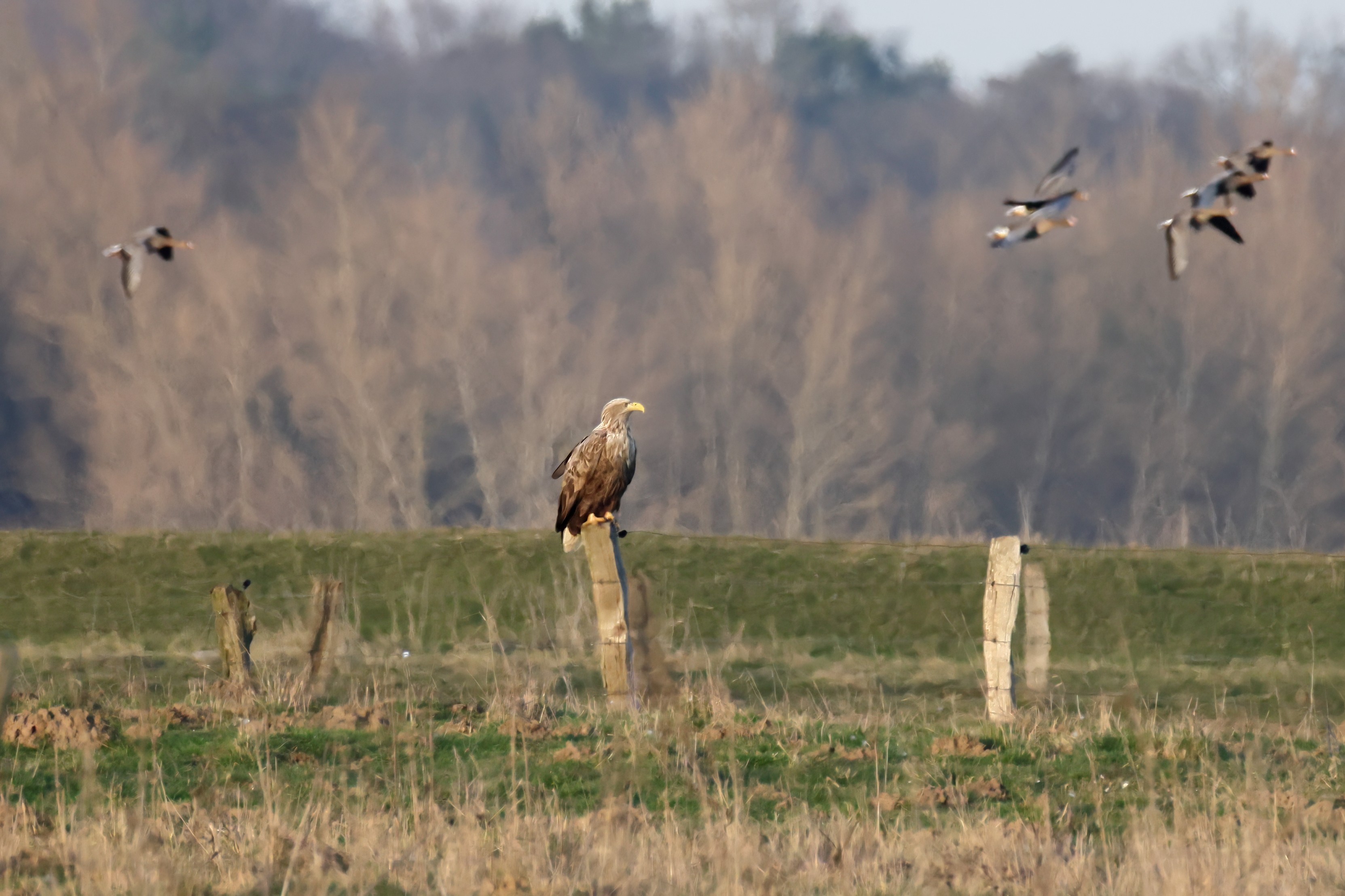 Während der etwa 38 bis 42 Tage dauernden Brutzeit der Seeadler kommt es meist nur zu kurzen Ablösungen zwischen den Partnern. Doch wenn gutes Wetter, die Tageszeit und der natürliche Bewegungsdrang nach den langen Brutsitzungen zusammentreffen, lassen sich vom abgelösten Partner manchmal ganz besondere Aufnahmen gestalten.