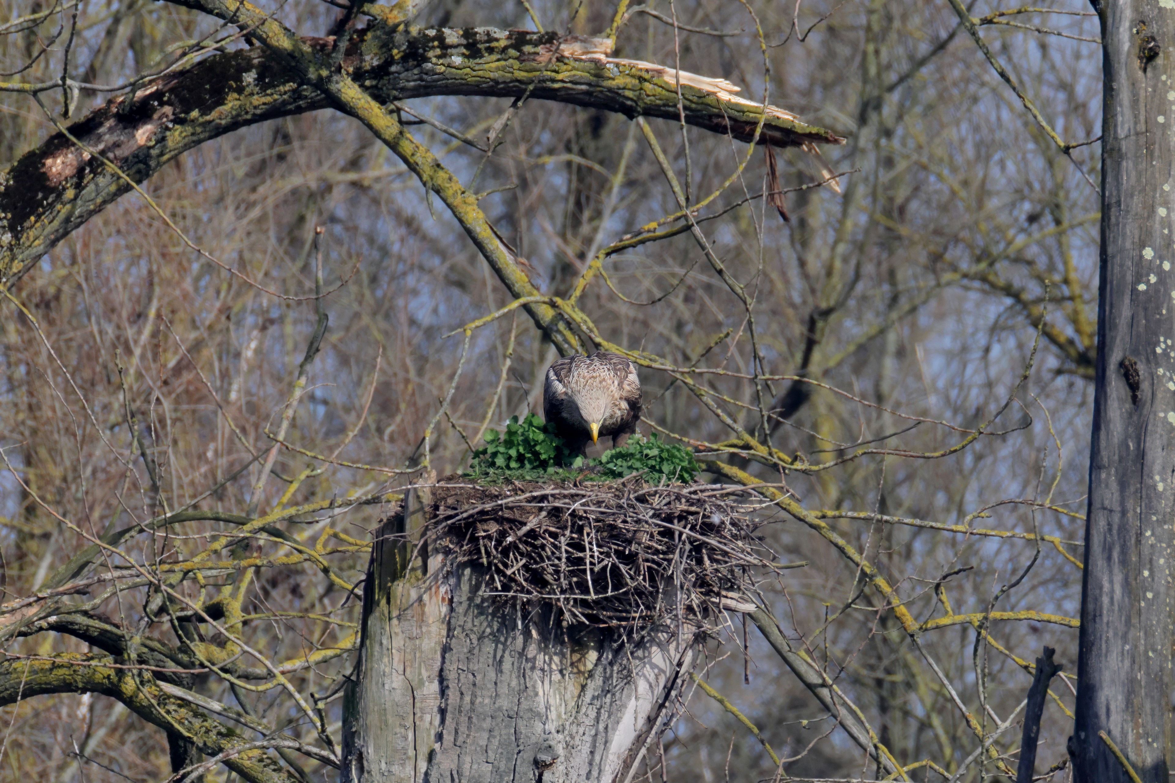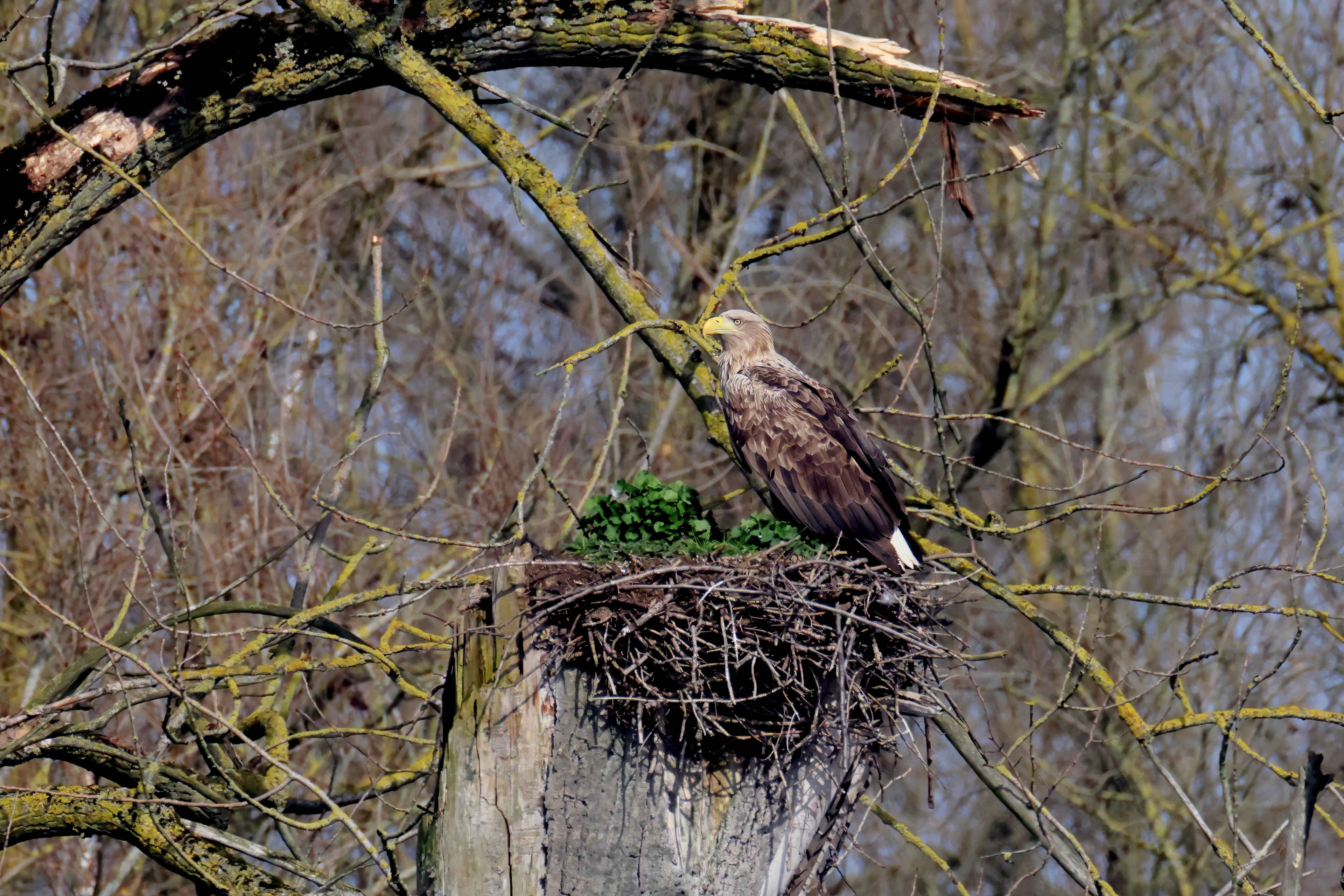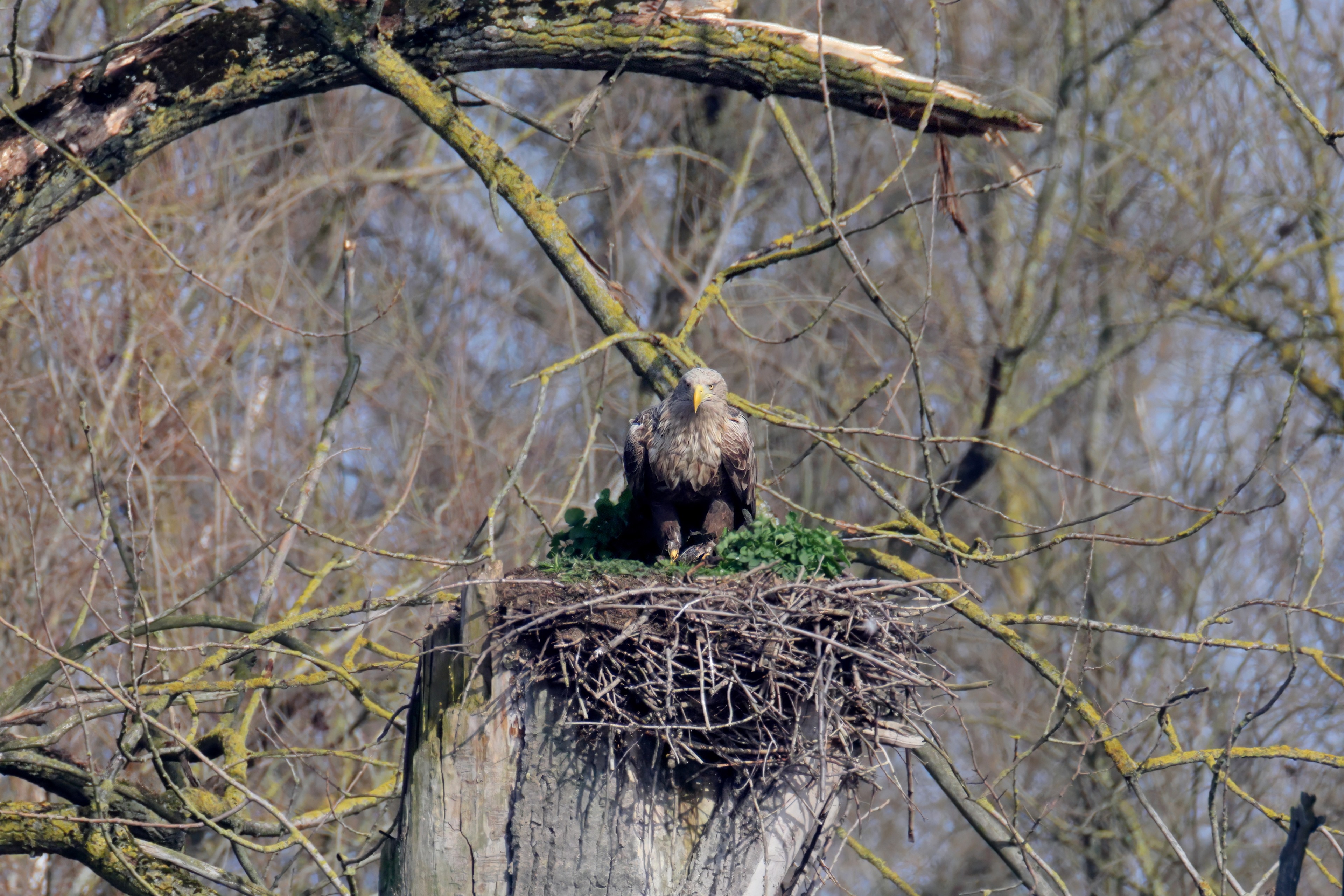 Routiniert meistert das Seeadlerpaar die Brutzeit