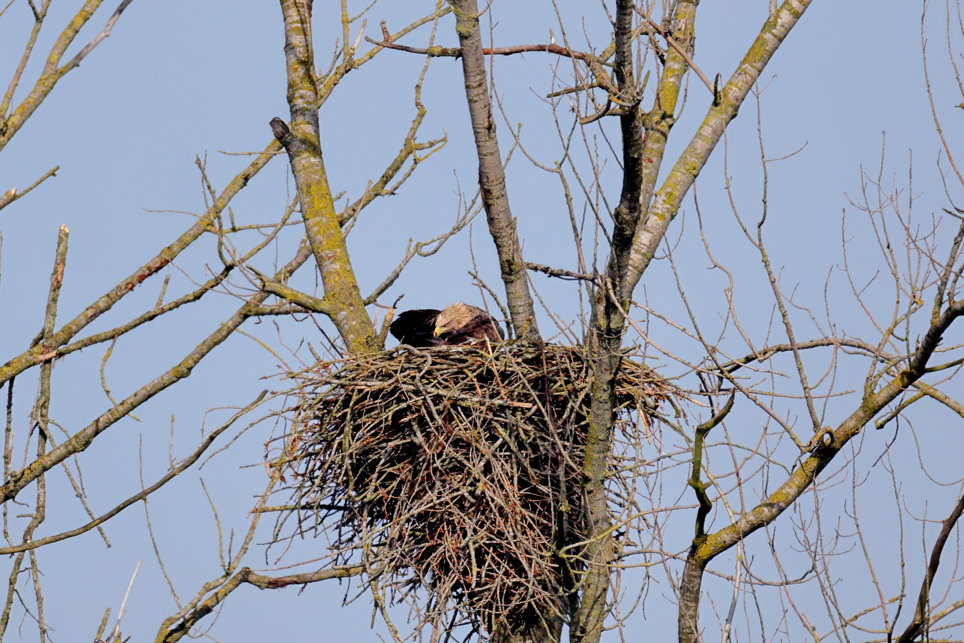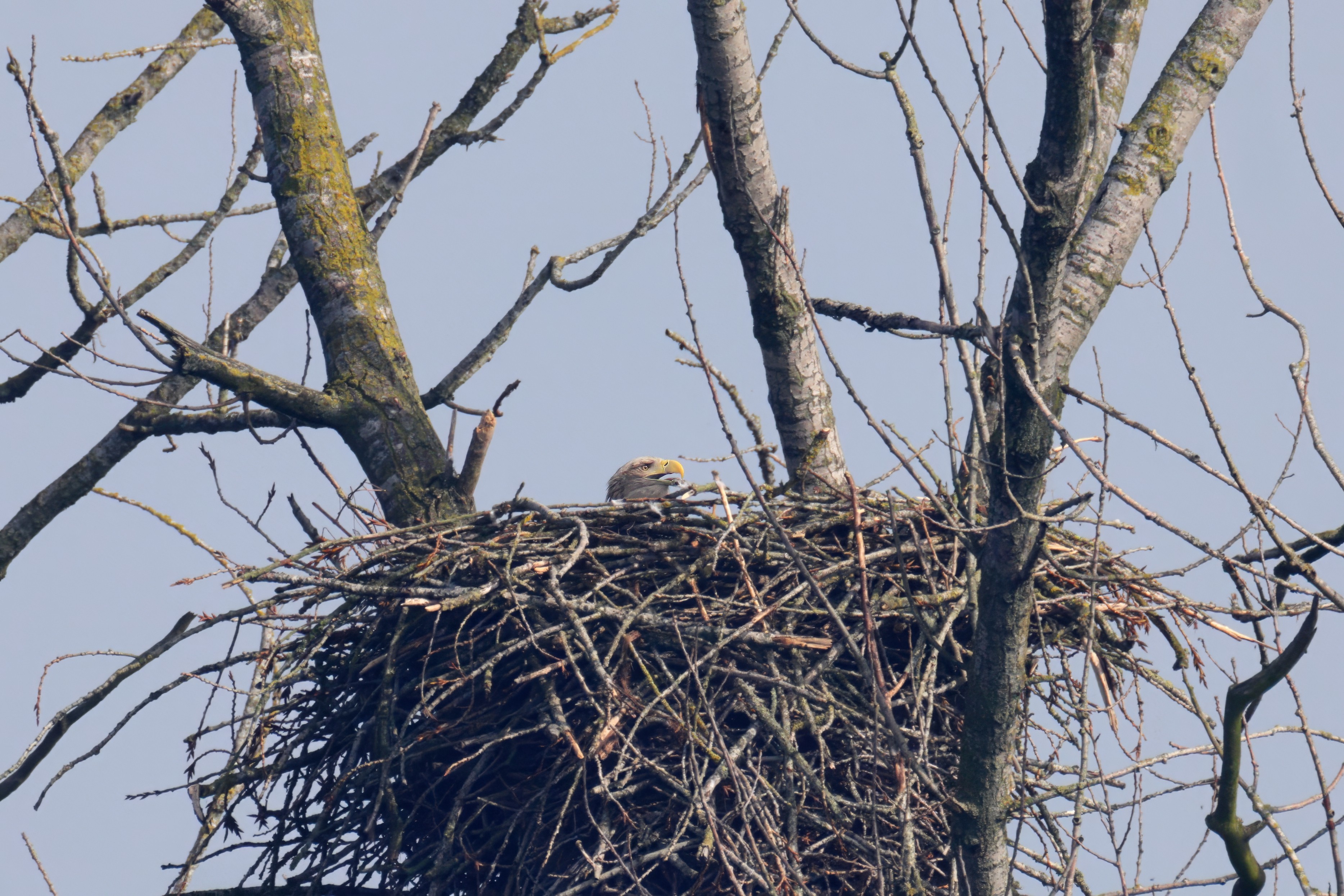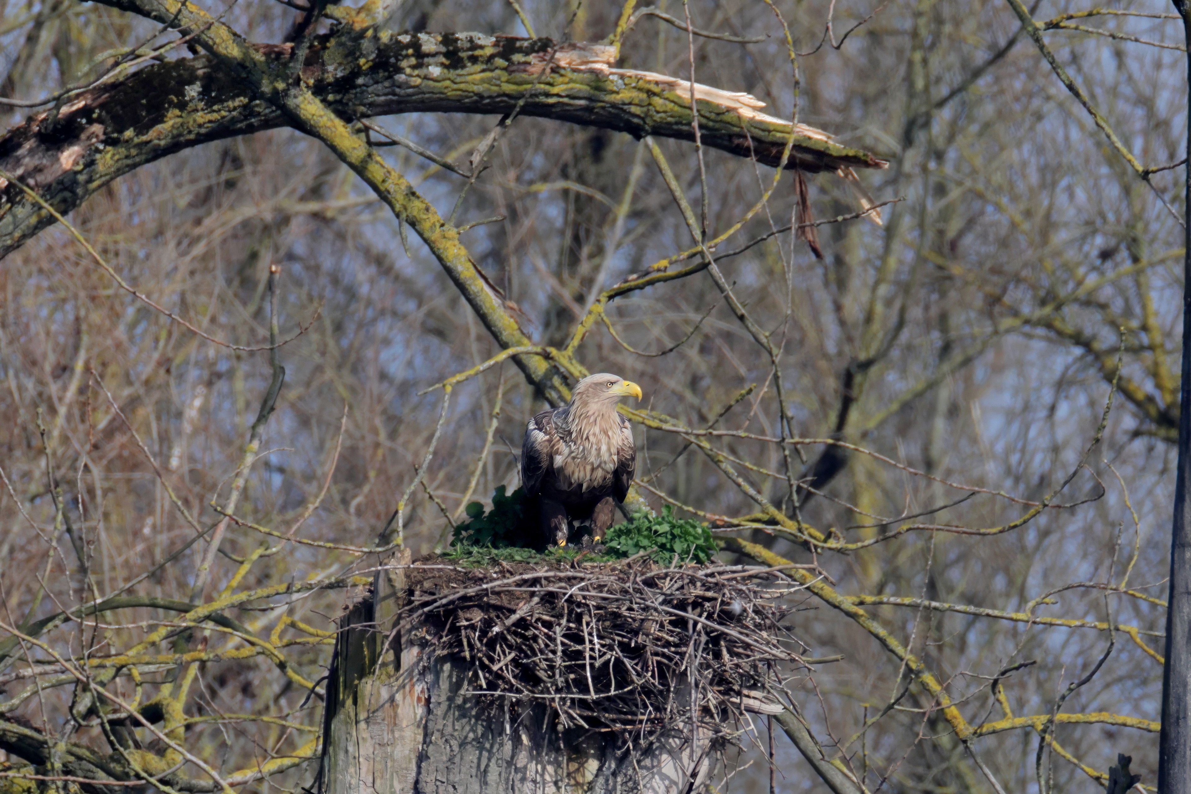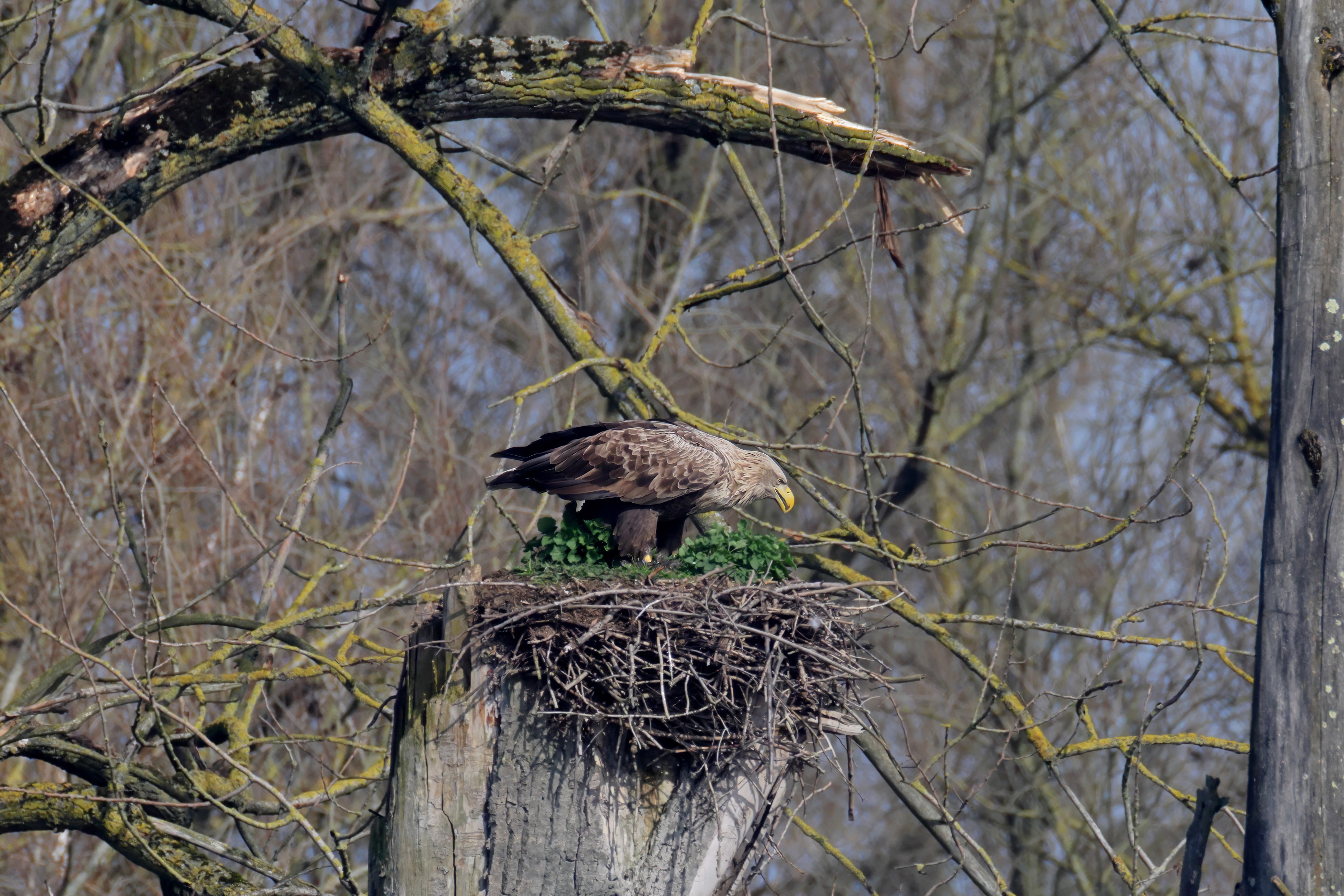 Routiniert meistert das Seeadlerpaar die Brutzeit