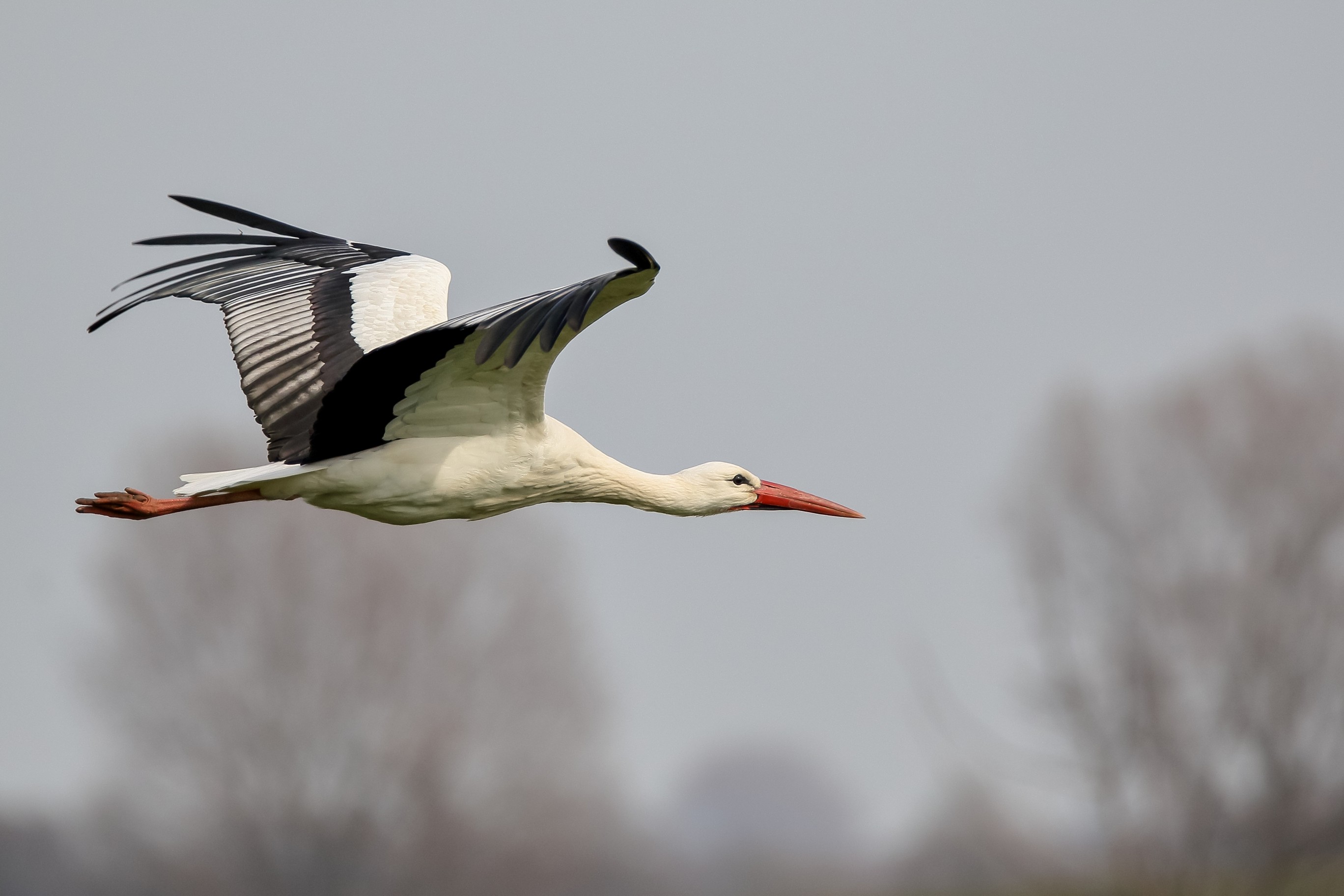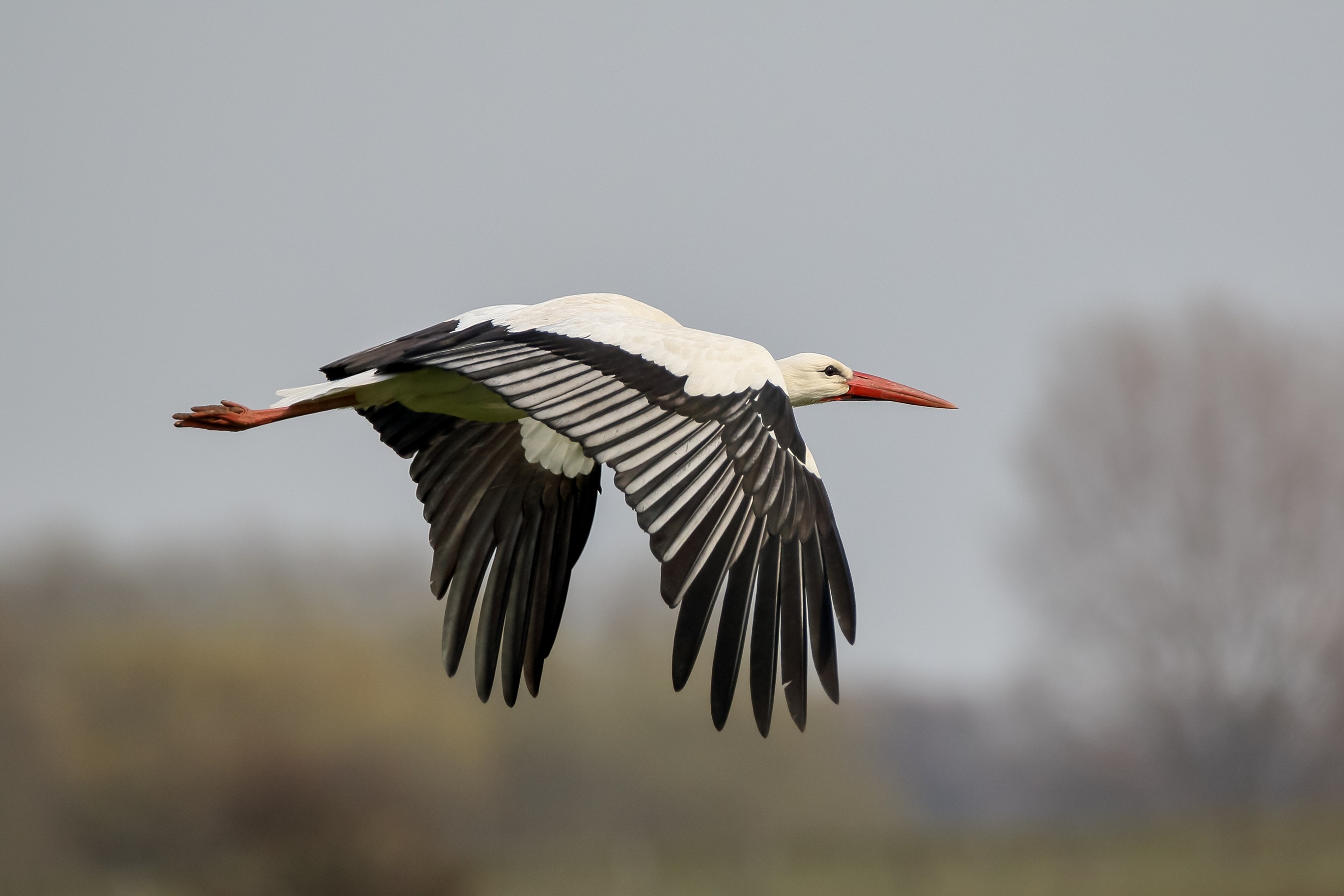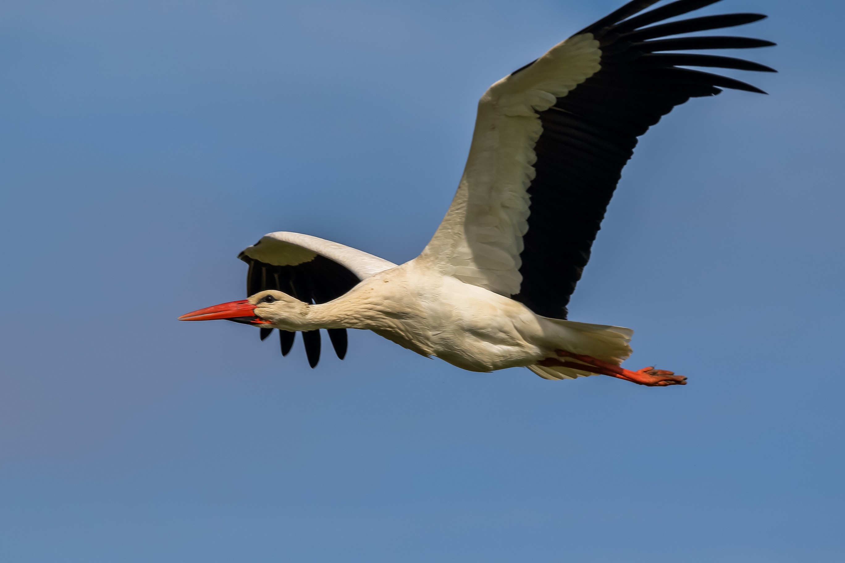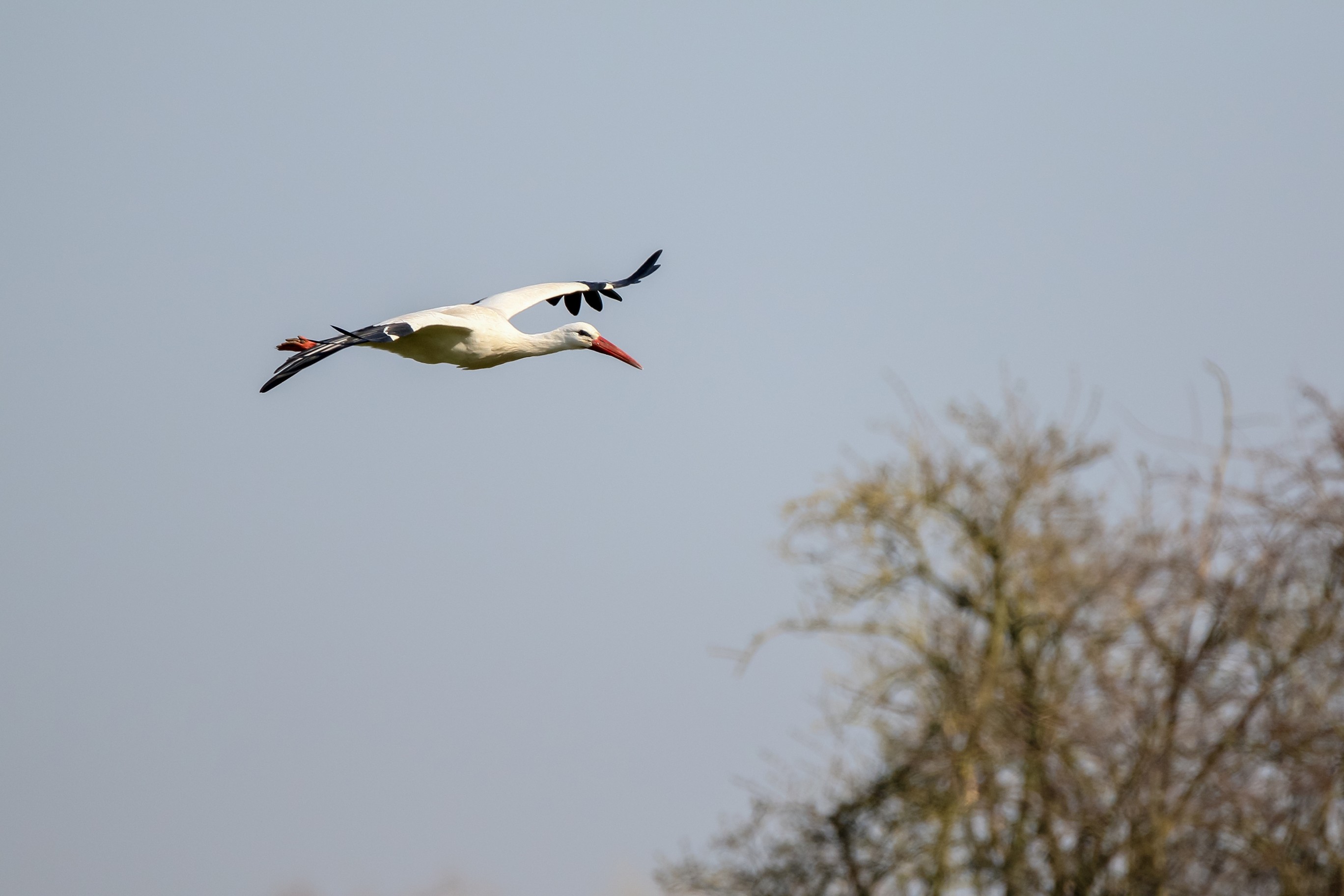 Storch im Transportflug