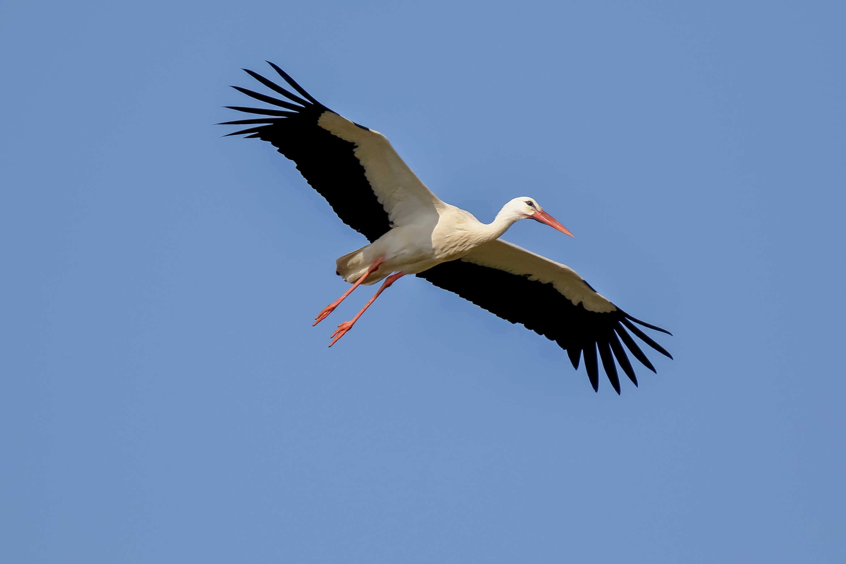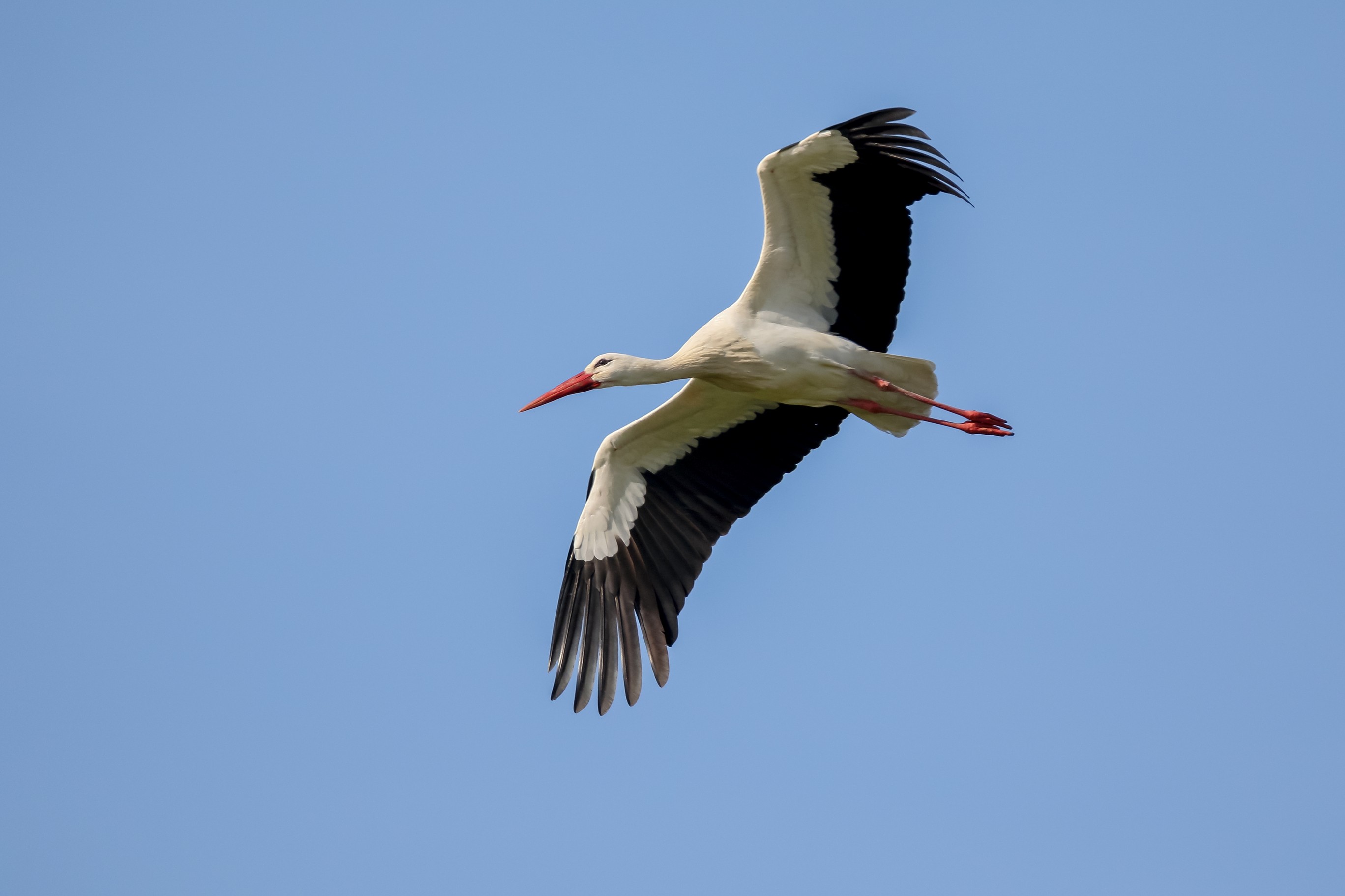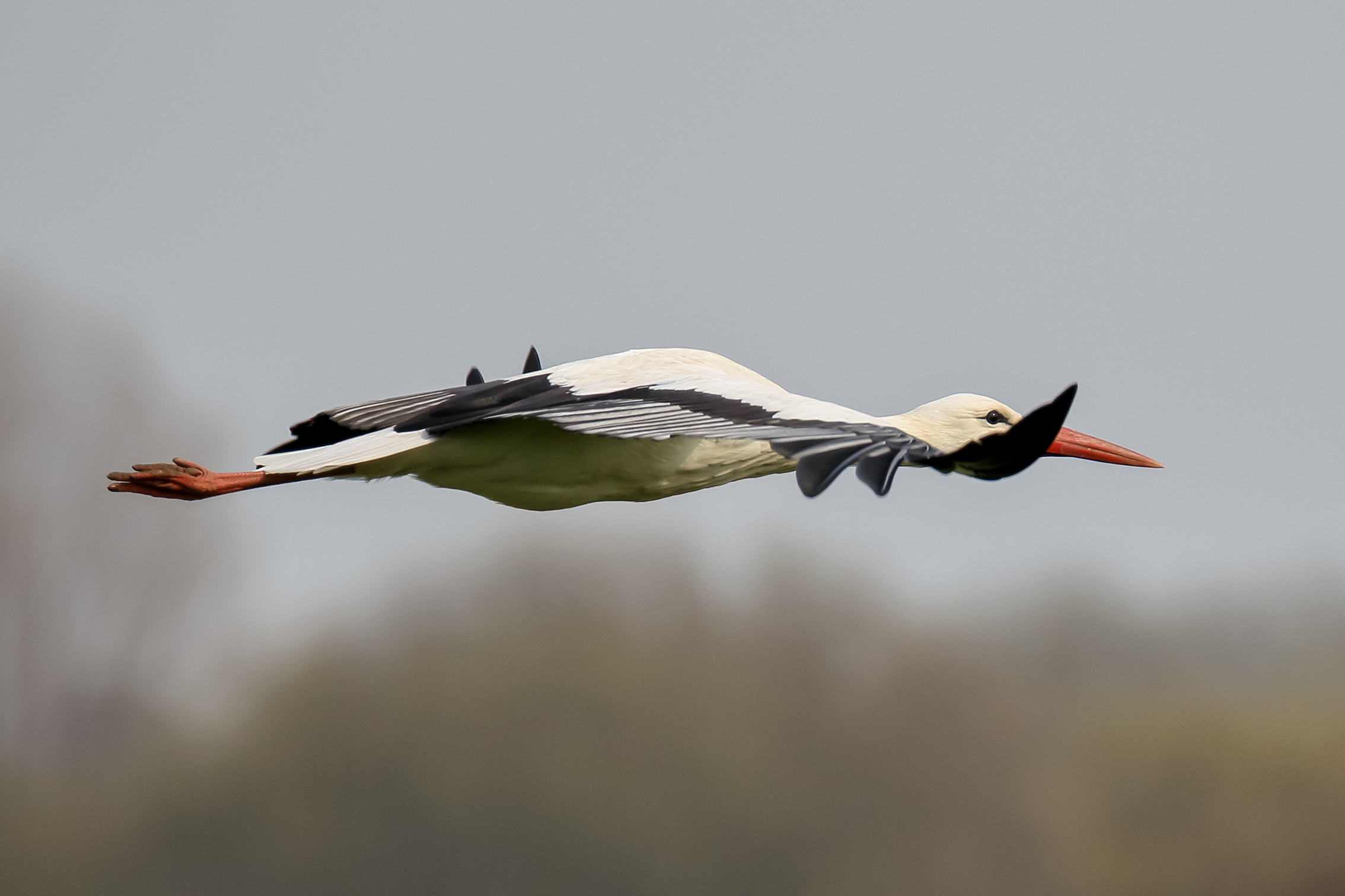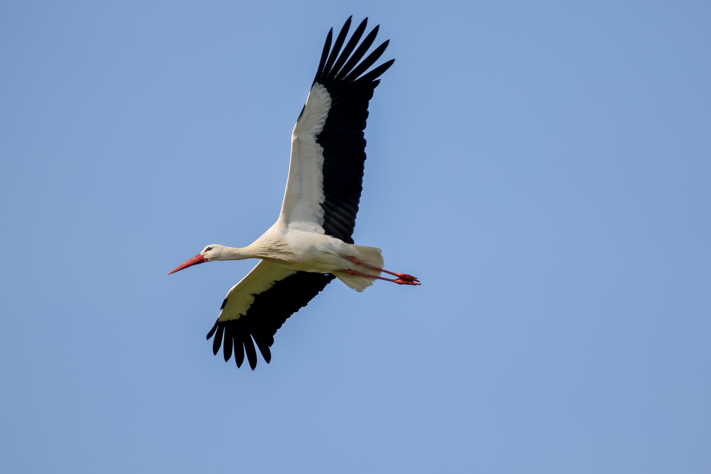 Storch im Transportflug