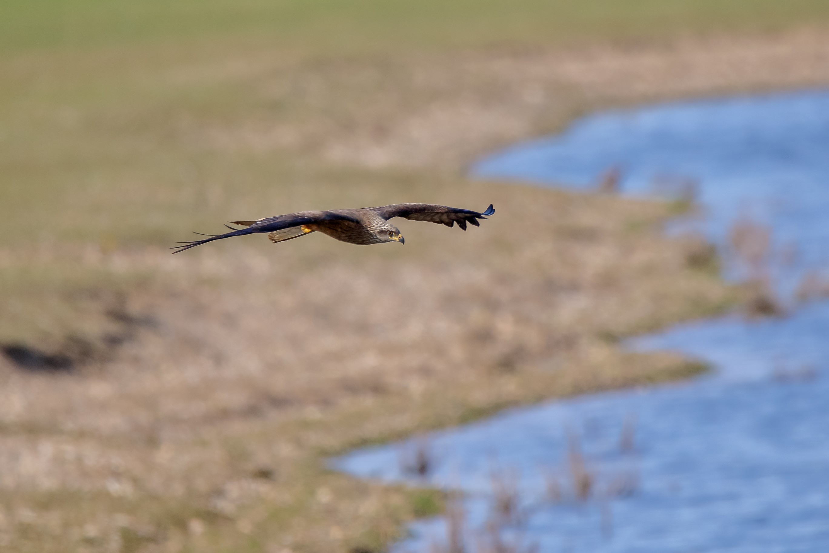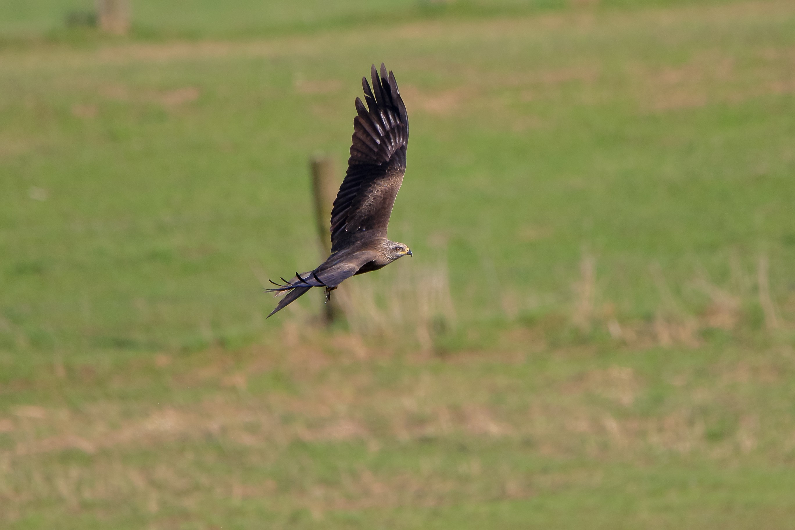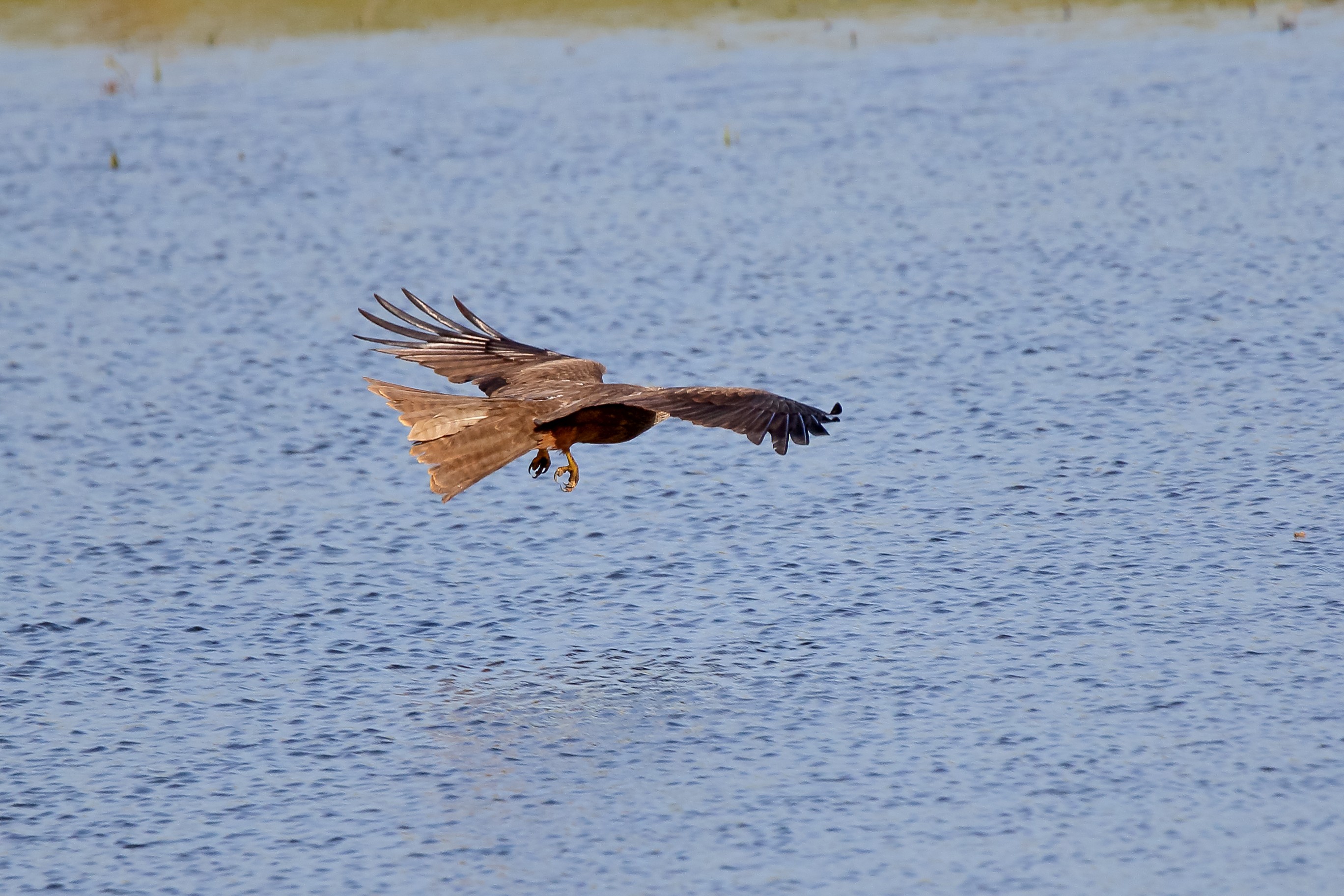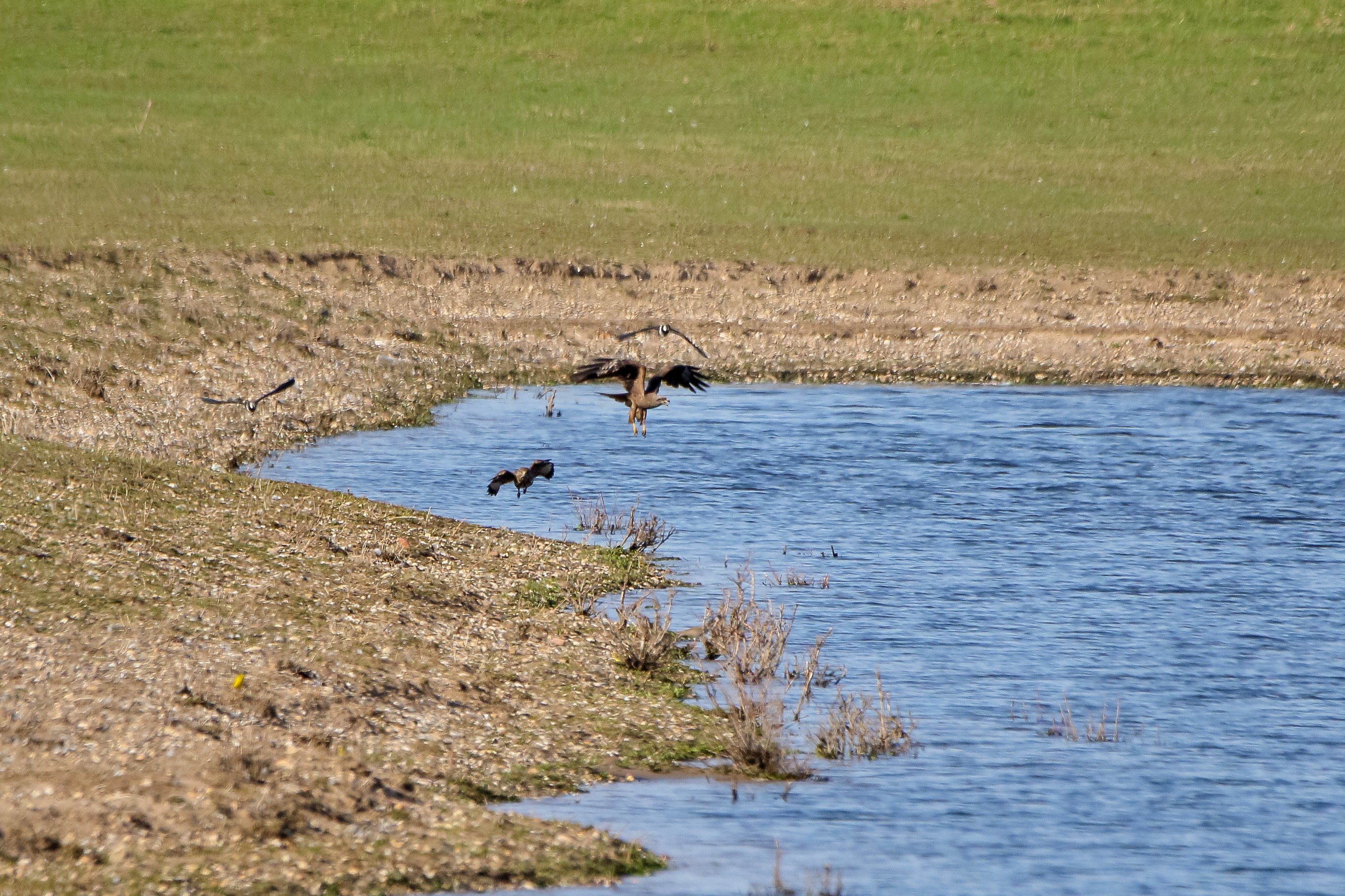 Schwarzmilan auf Froschjagd an der Flutmulde