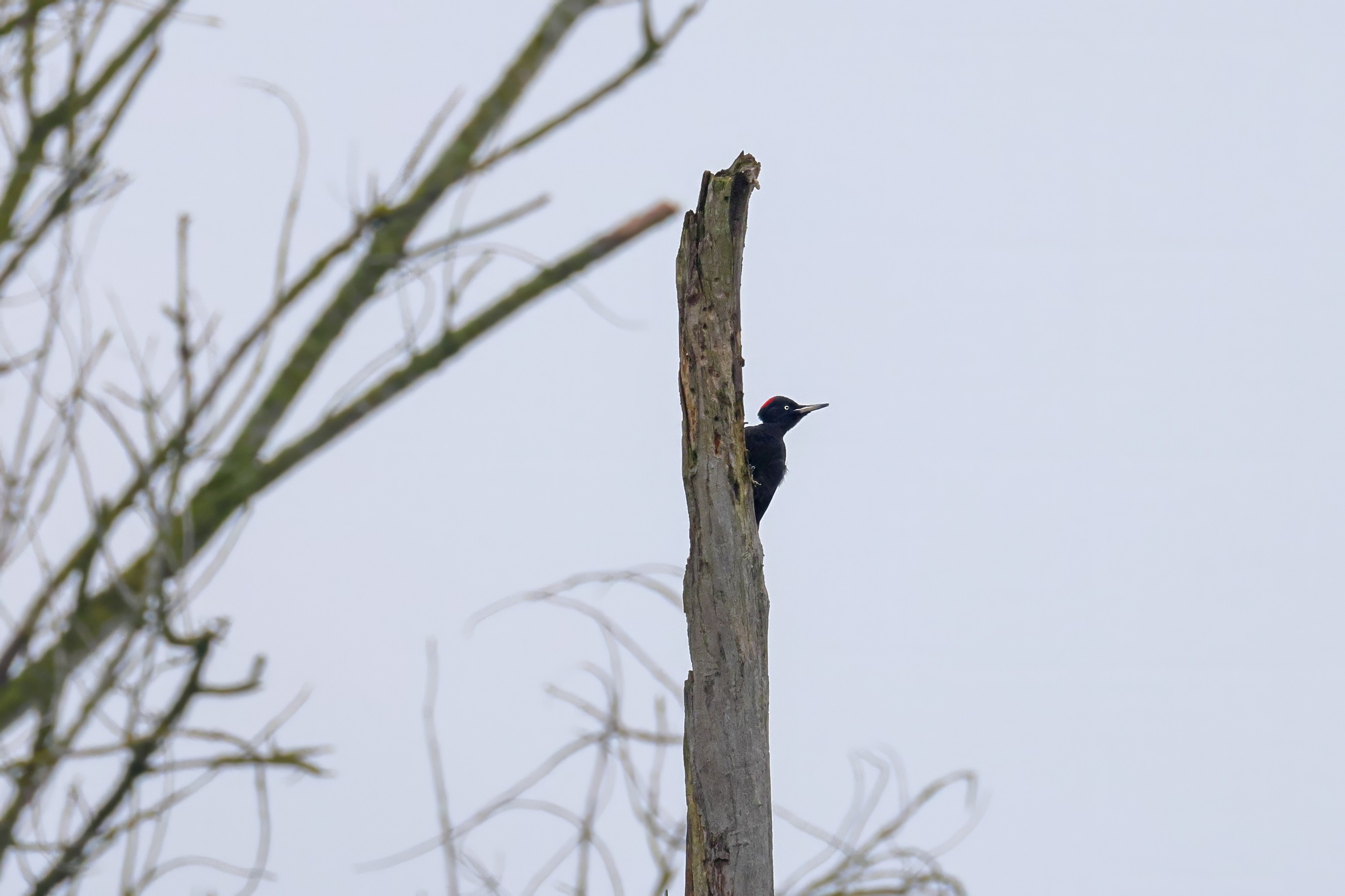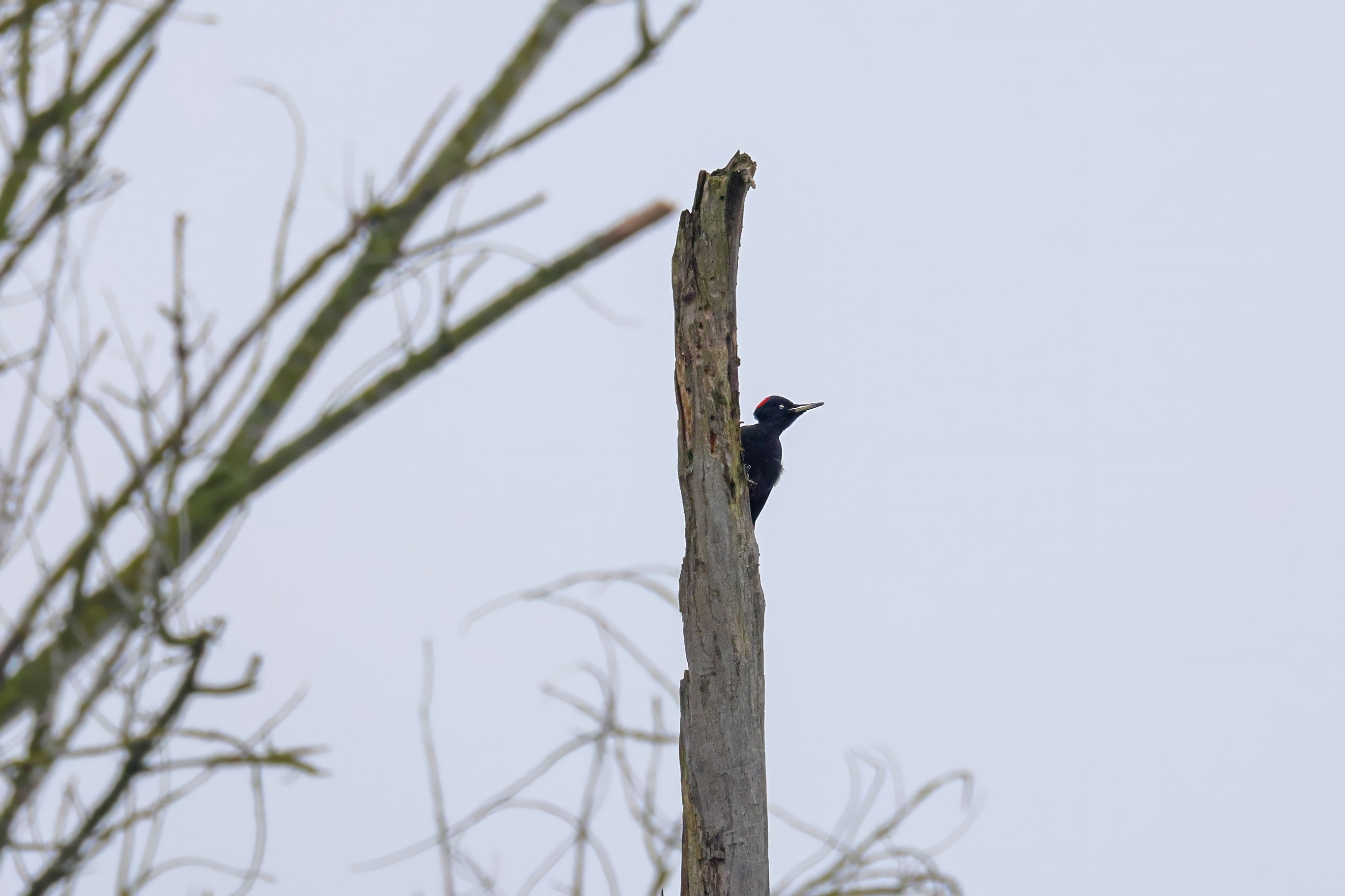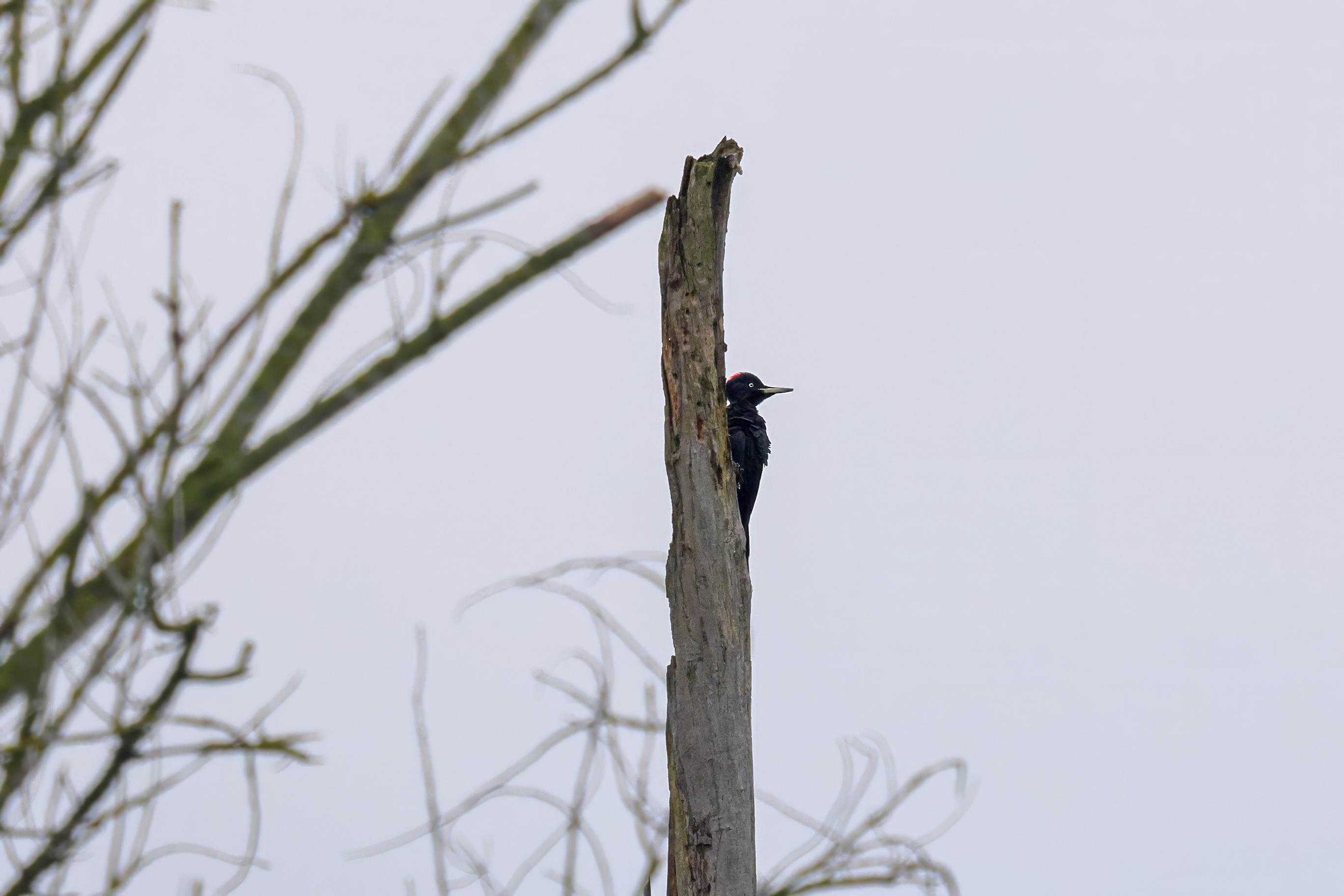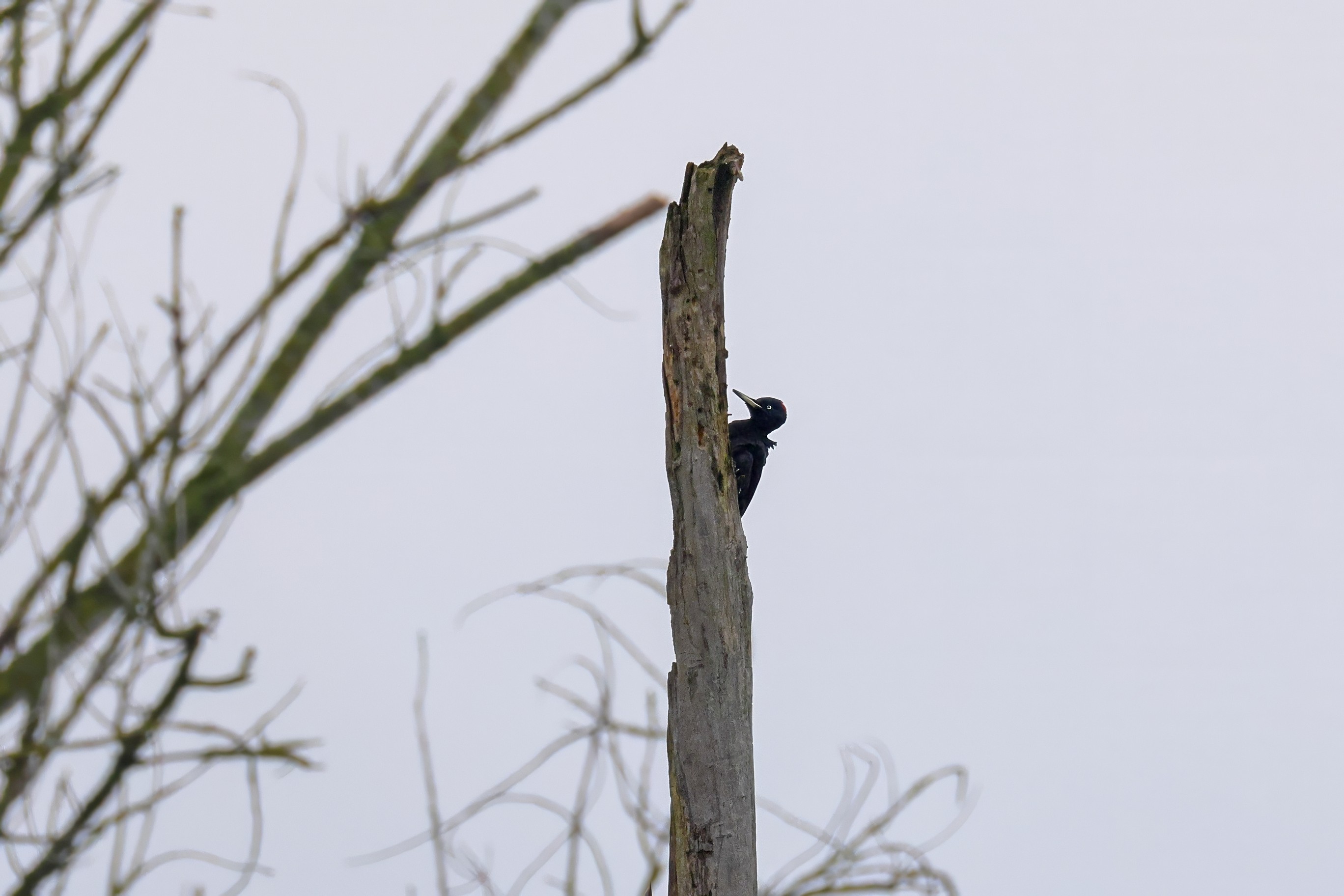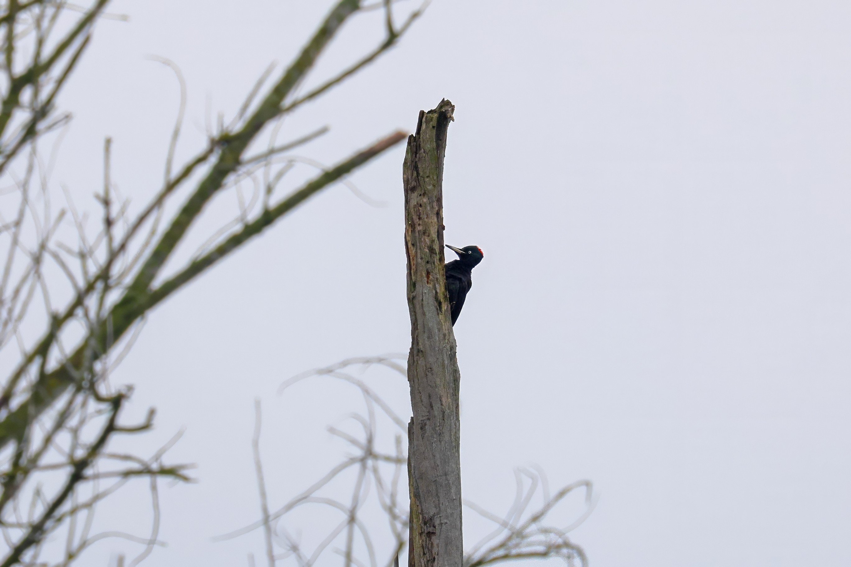 Ein kurzer Ruf des Schwarzspechts verriet seine Anwesenheit.