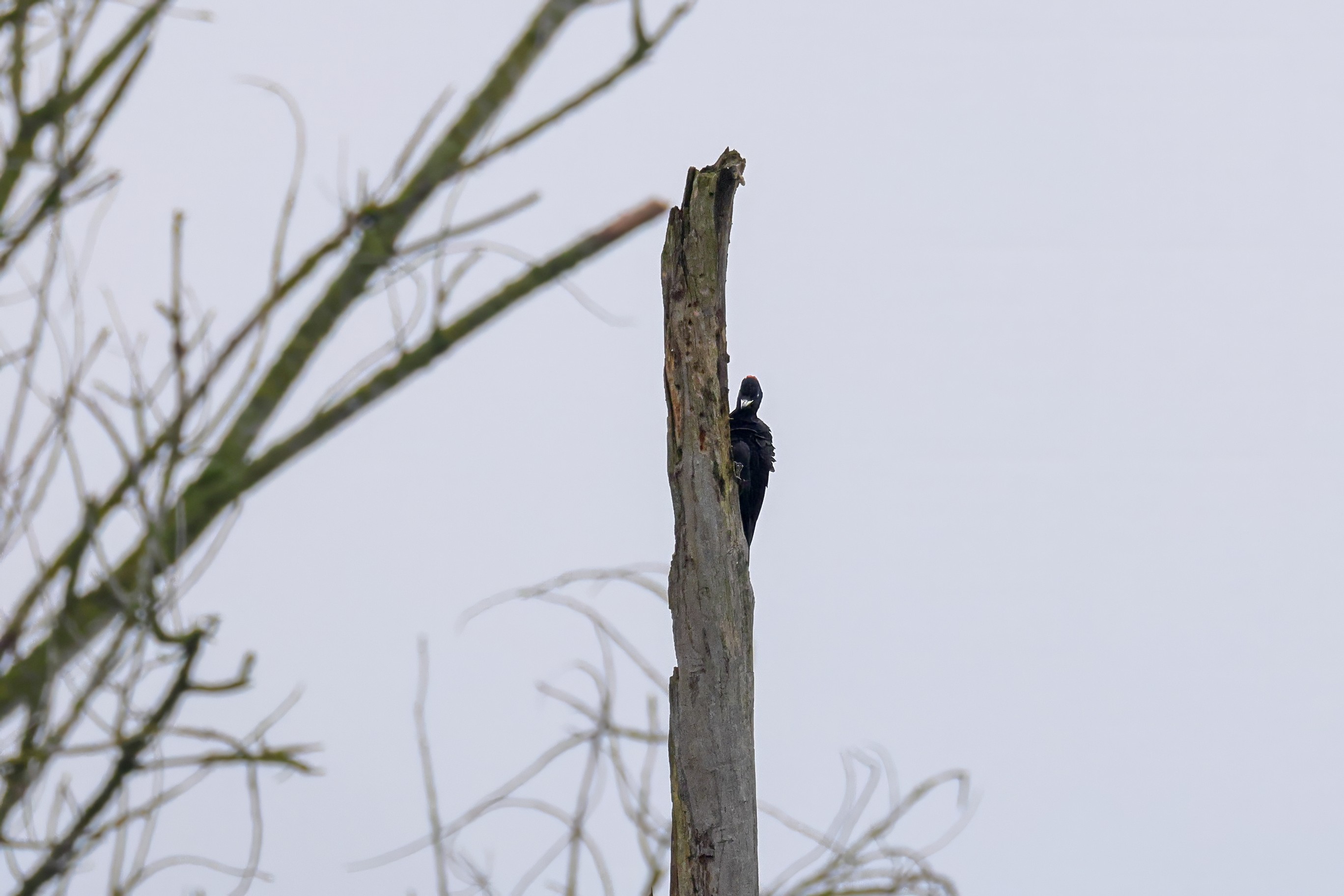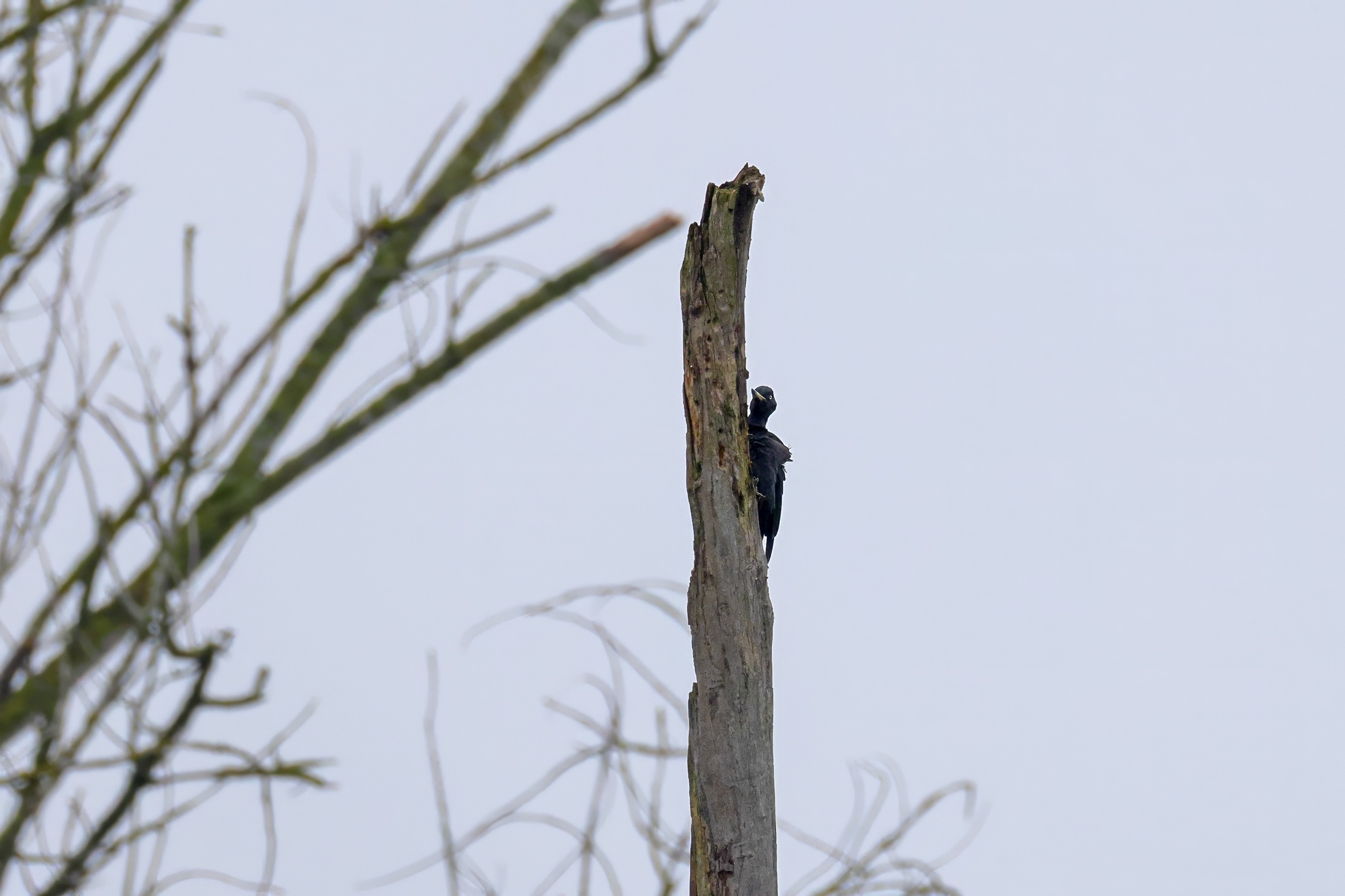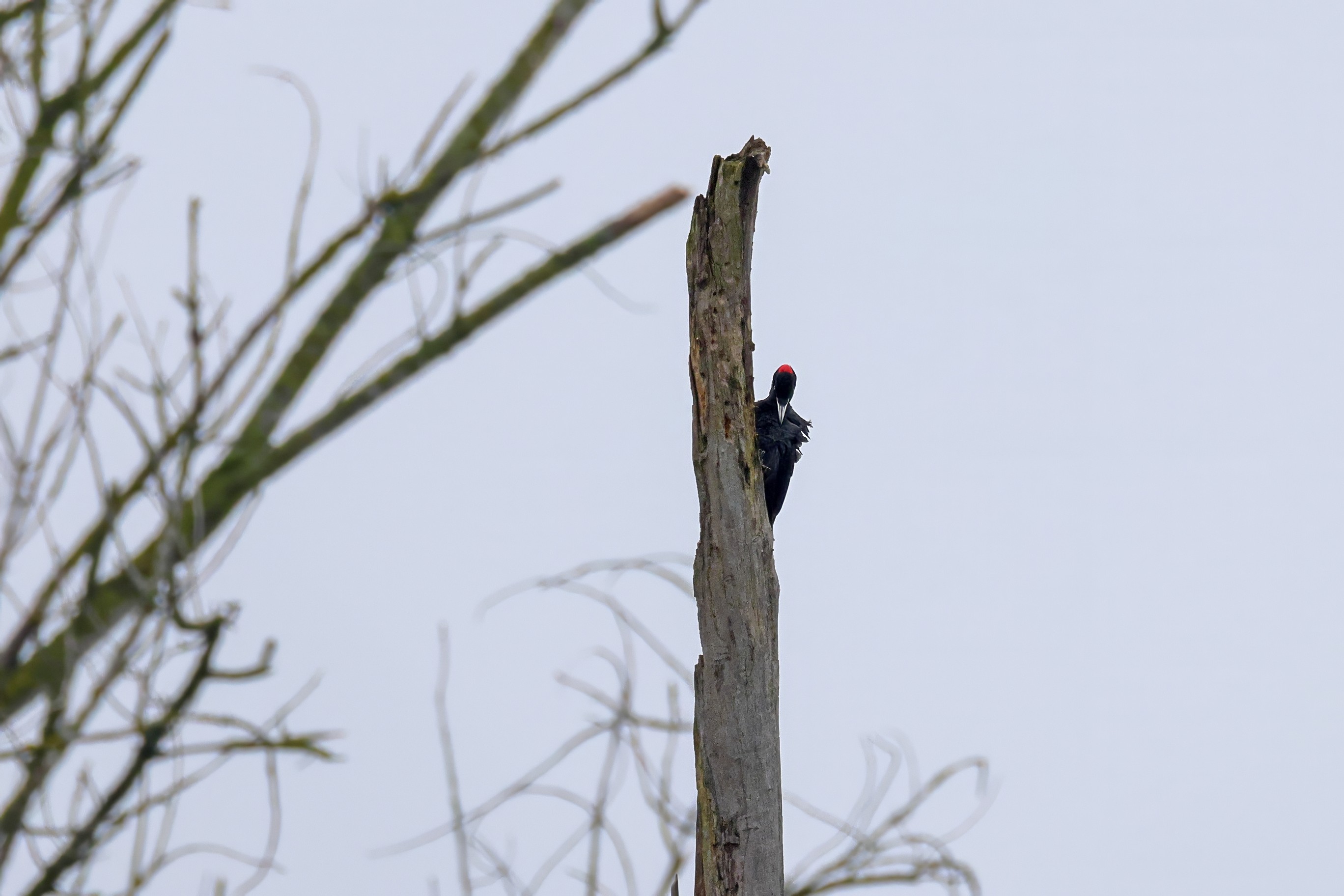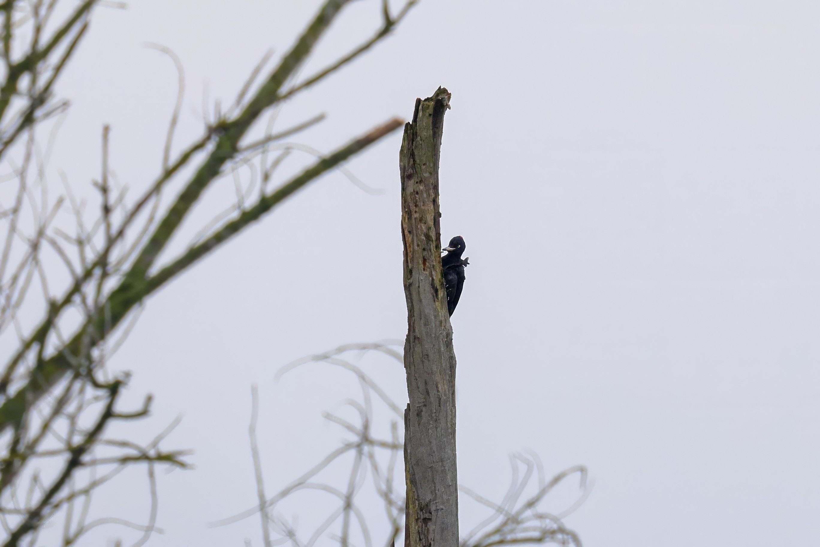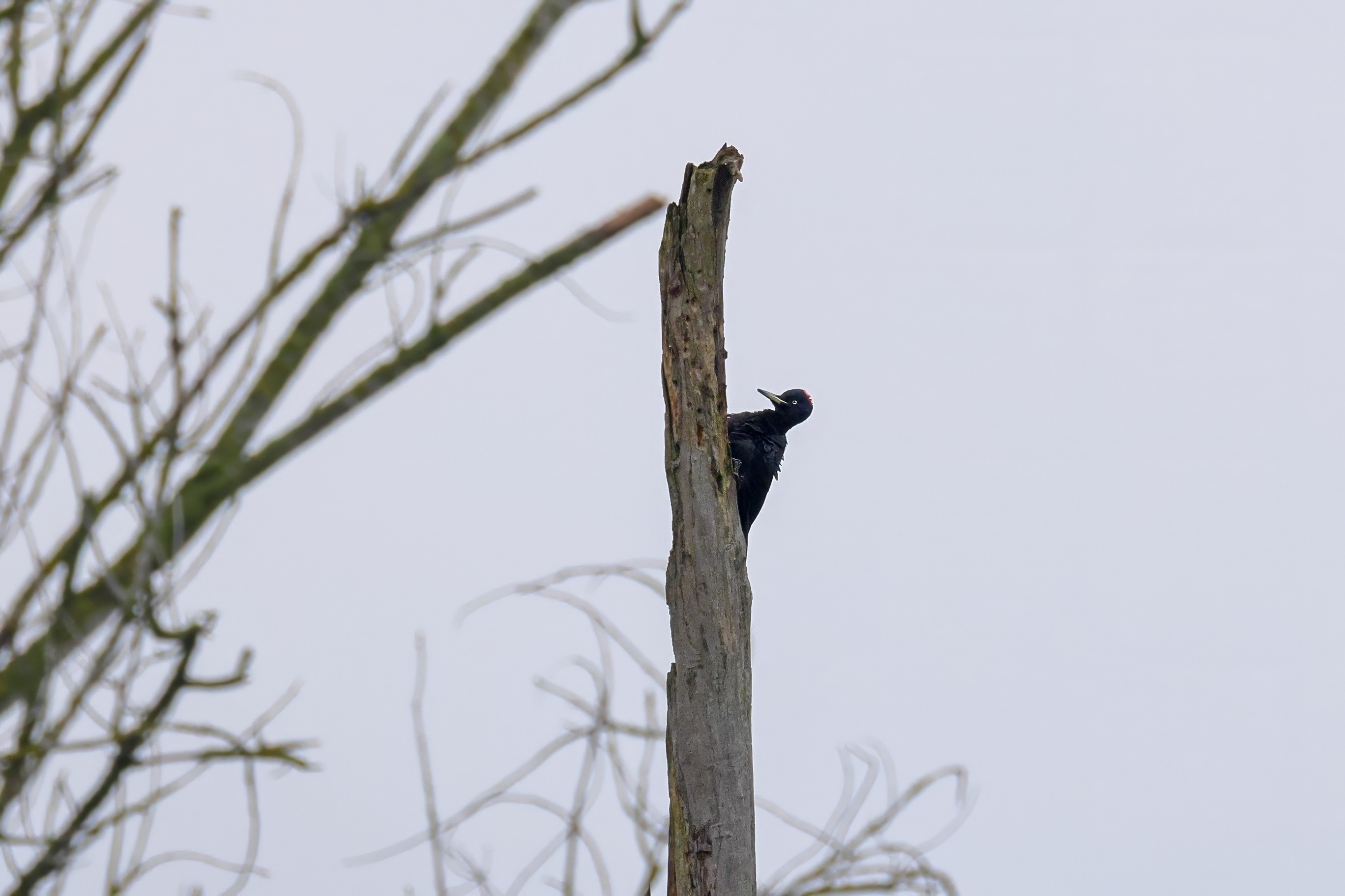 Ein kurzer Ruf des Schwarzspechts verriet seine Anwesenheit.