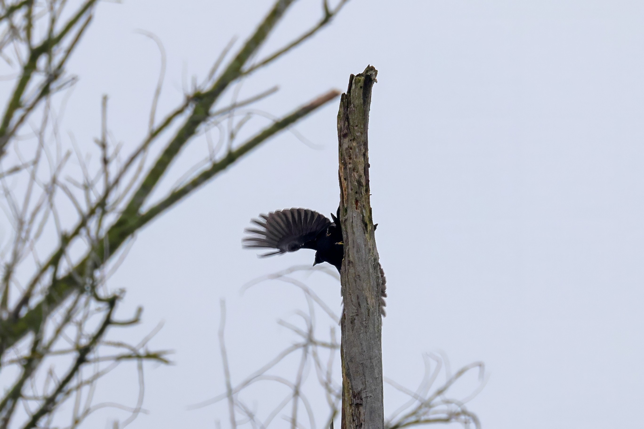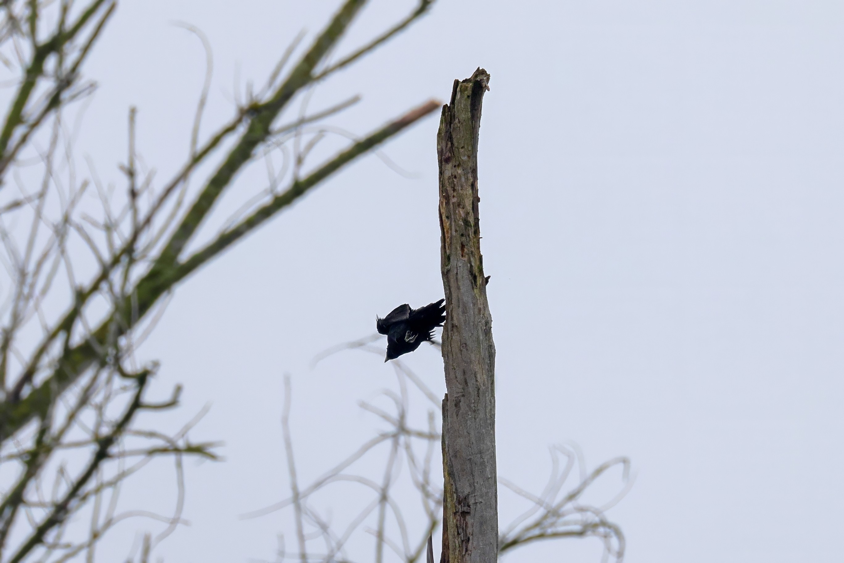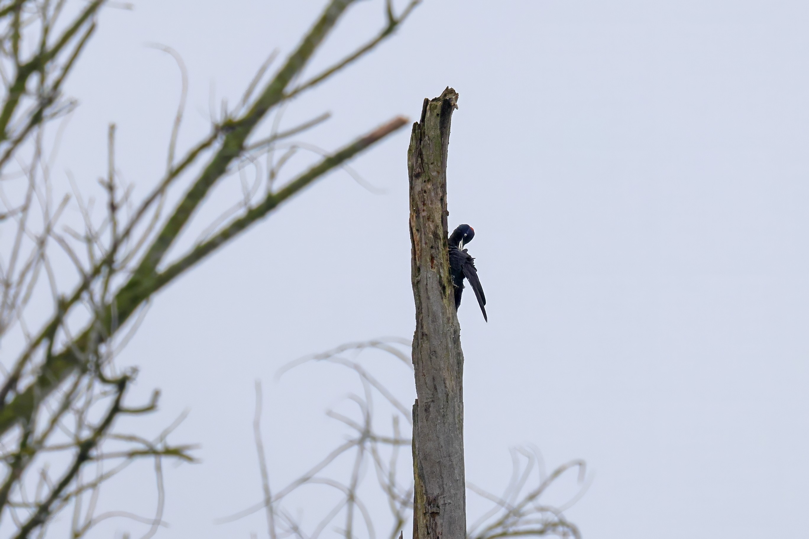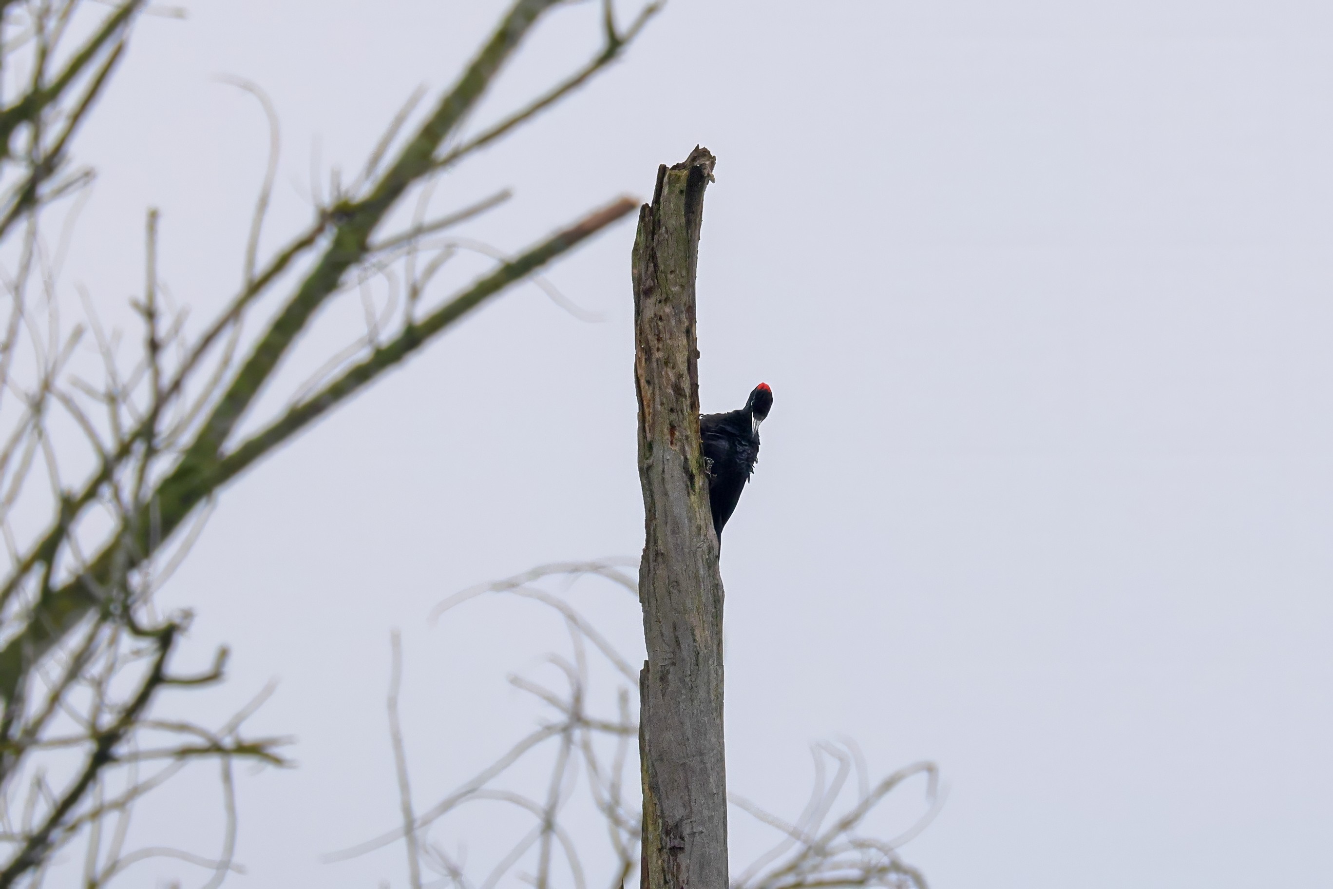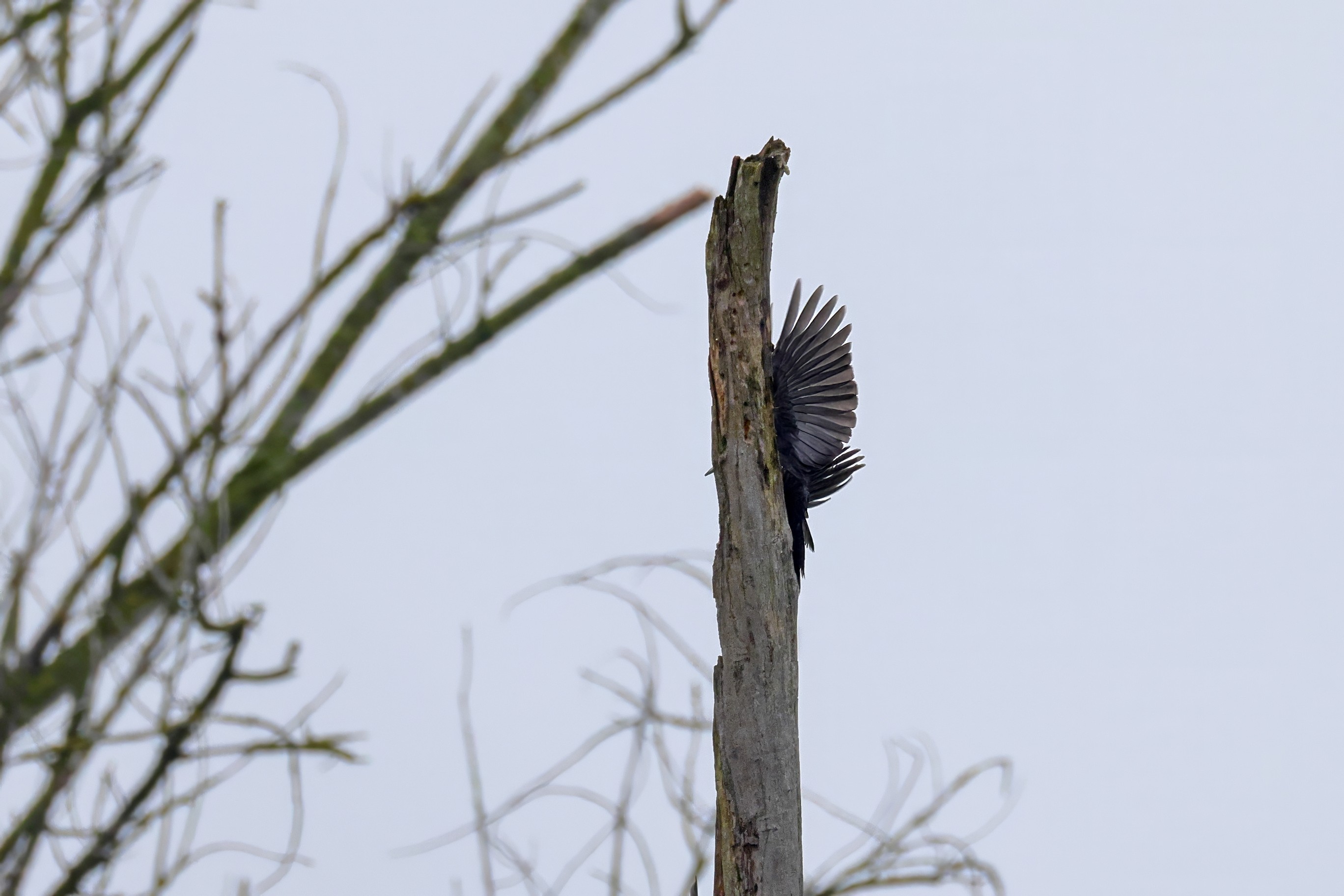 Ein kurzer Ruf des Schwarzspechts verriet seine Anwesenheit.