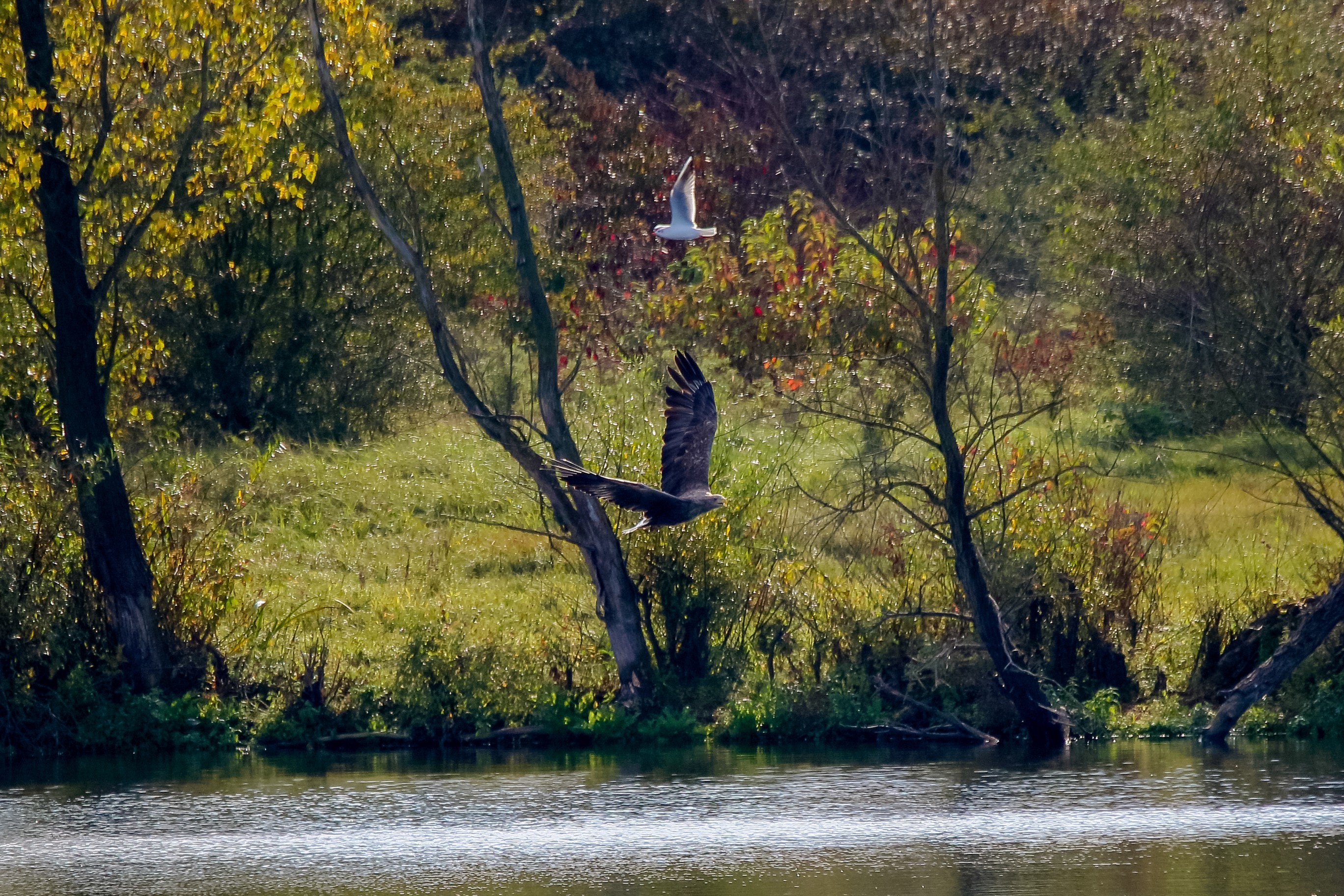 Rohrweihe und junger Rotmilan