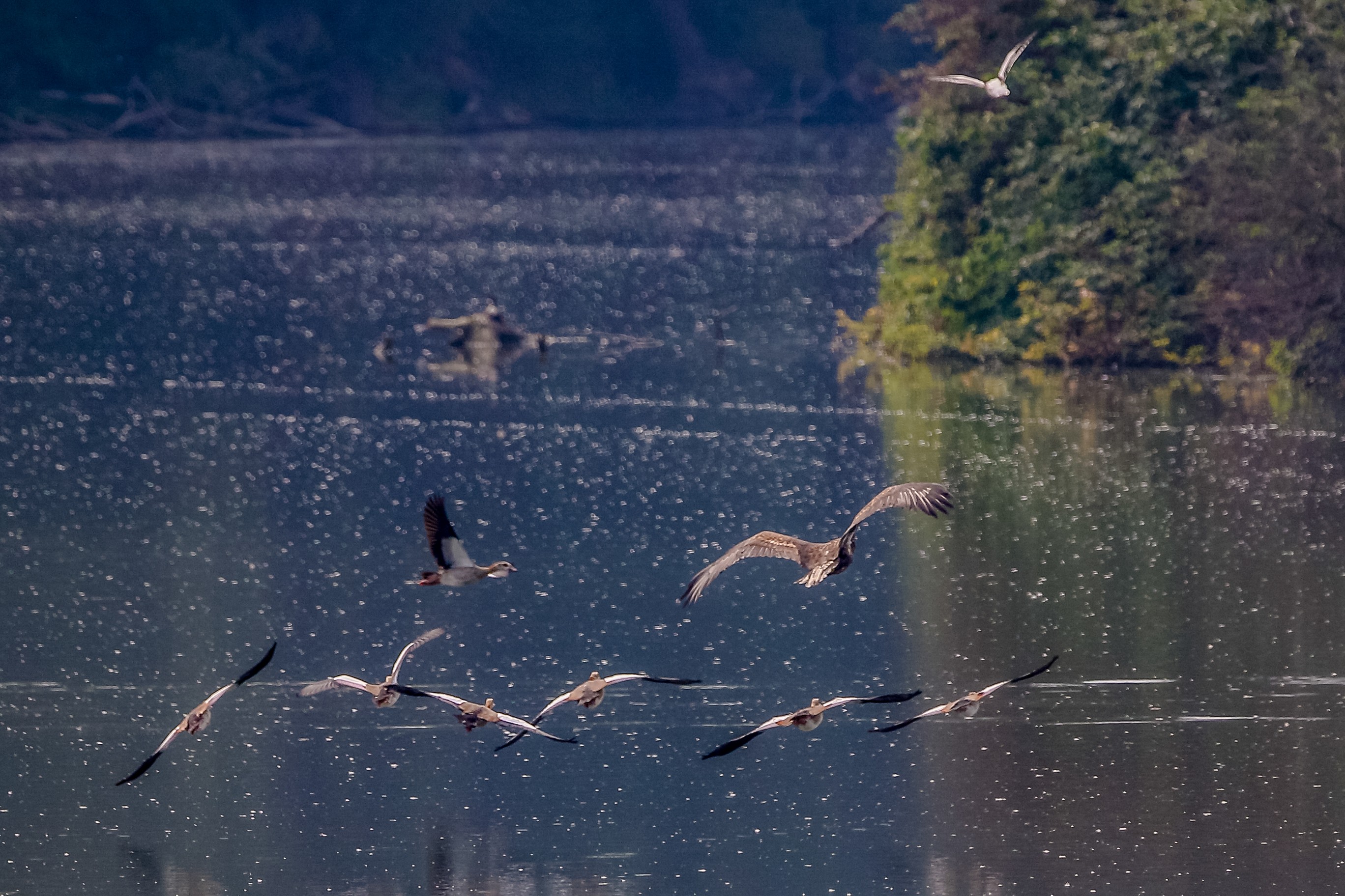 Abendlicher Rundflug der jungen Löffler