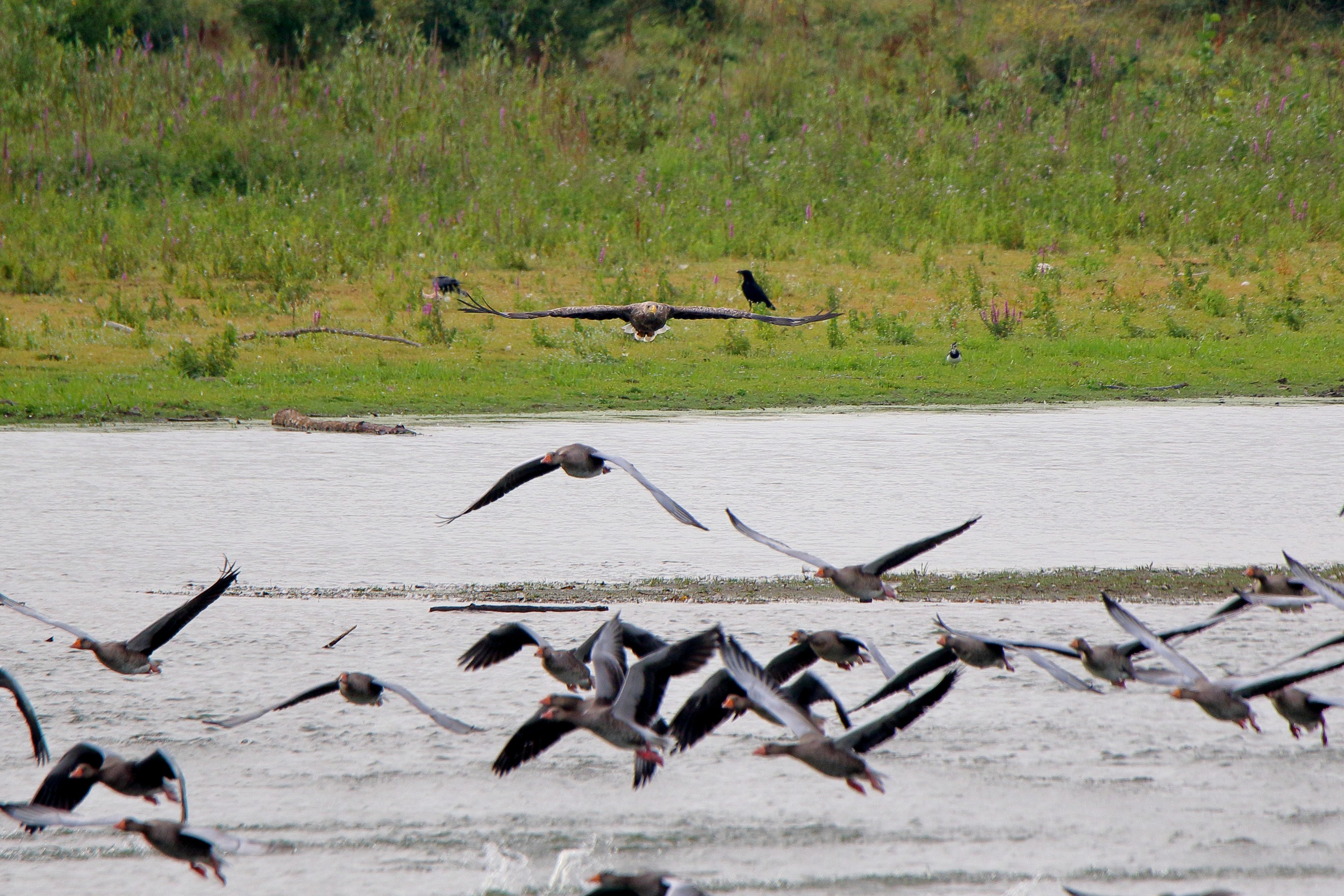 Seeadlerfrühstück mit zahlreichen tierischen Zuschauern