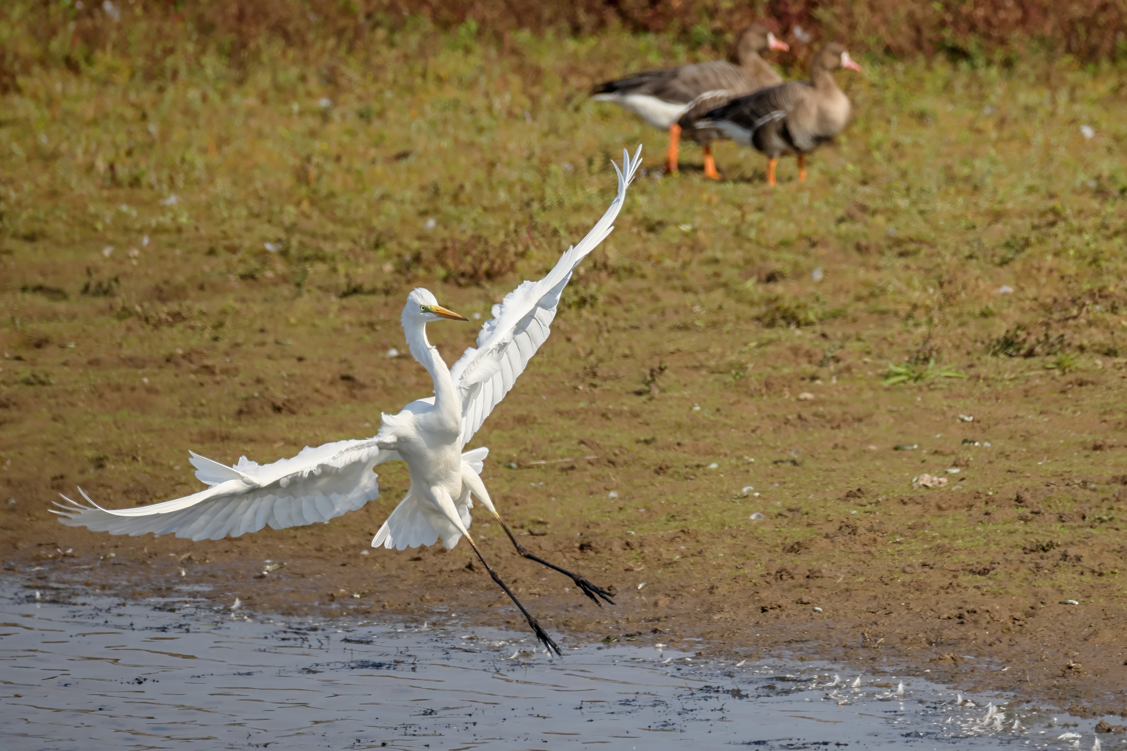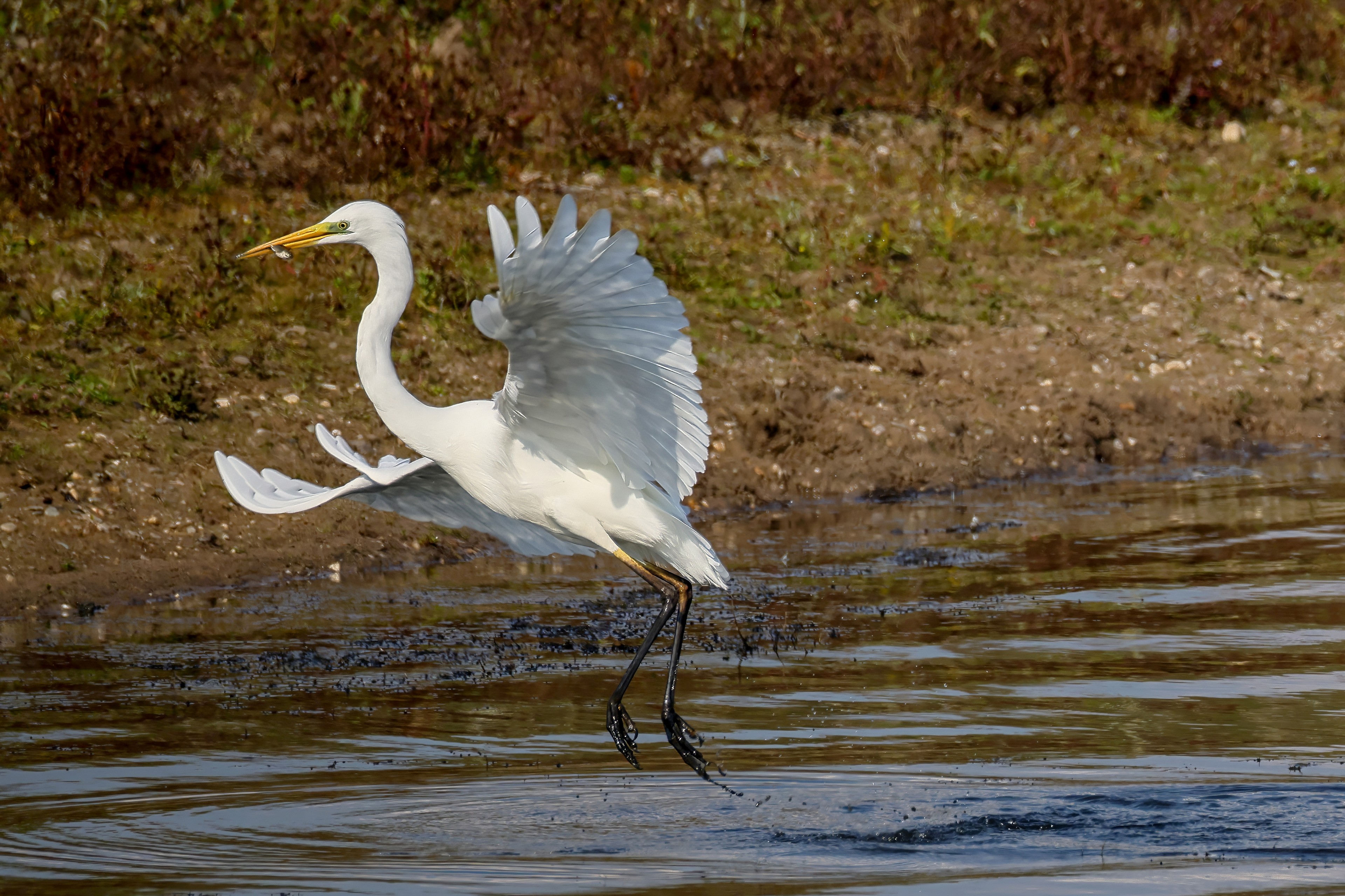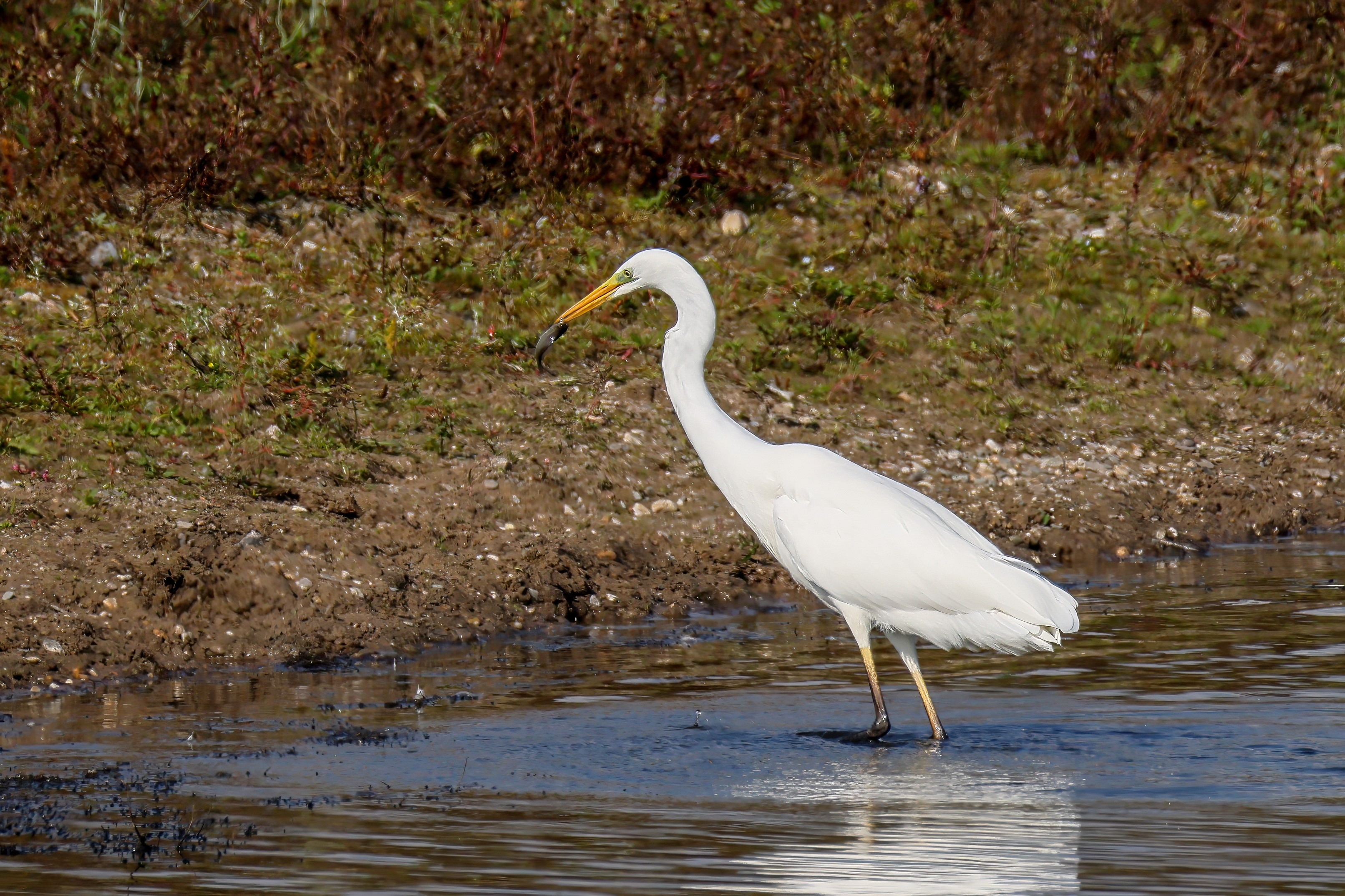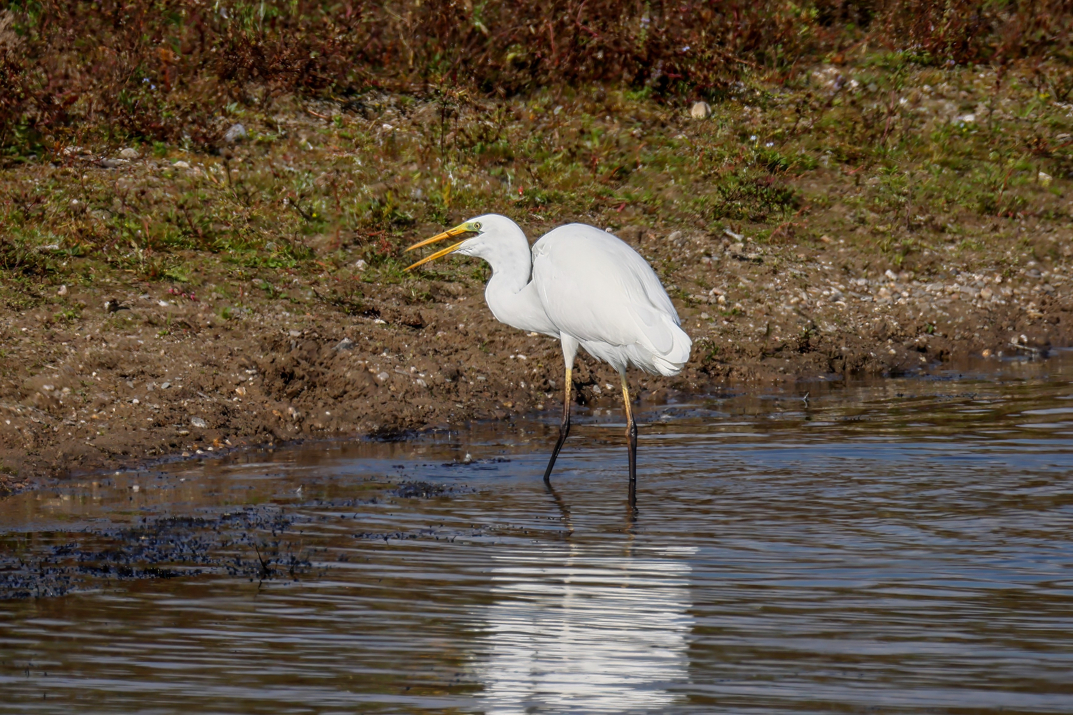 Silberreiher tritt in Aktion