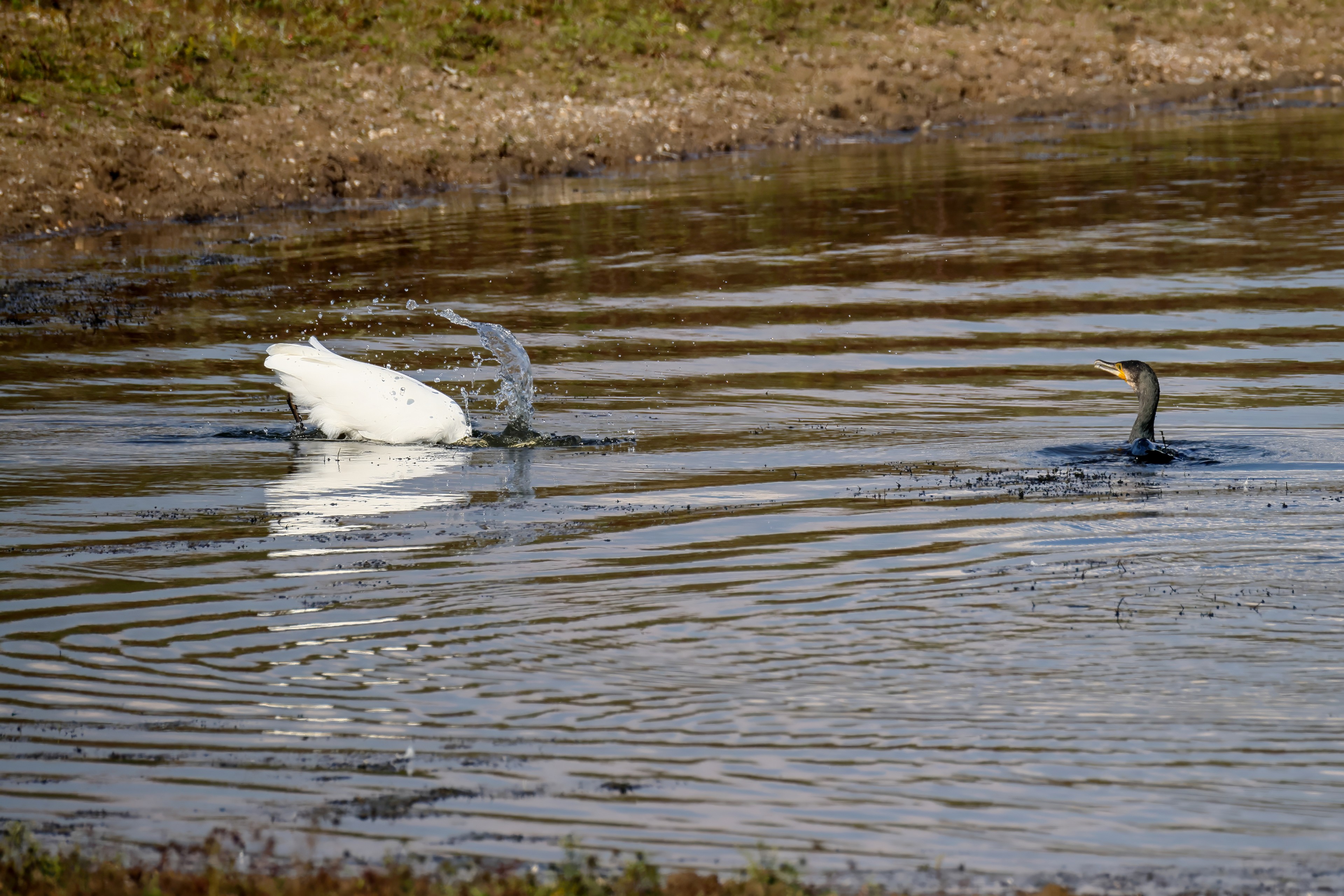Höckerschwan vertreibt Trauerschwan