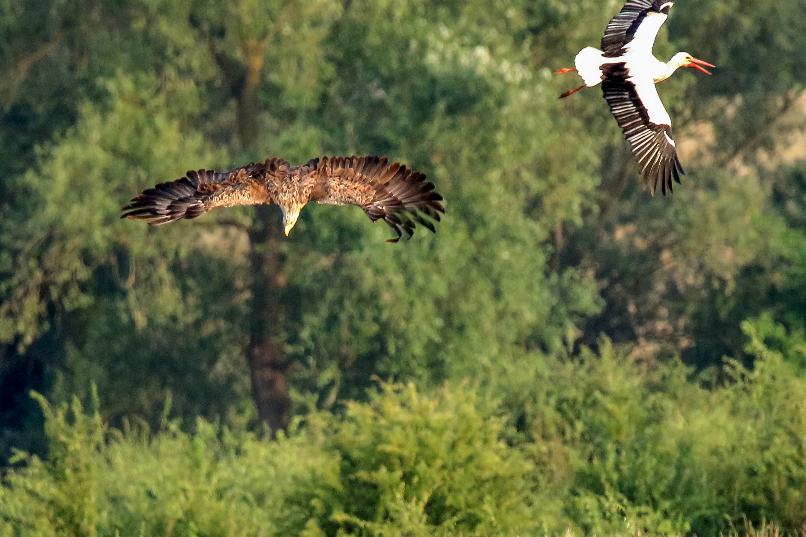 Rohrweihe und junger Rotmilan