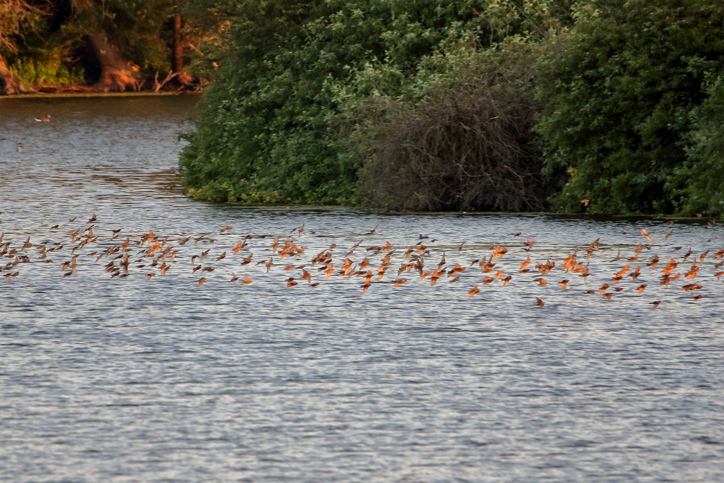 Abendlicher Rundflug der jungen Löffler
