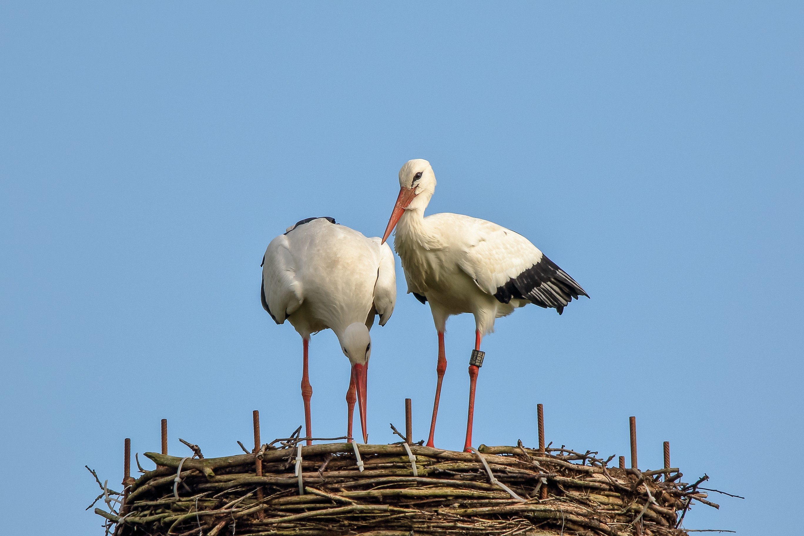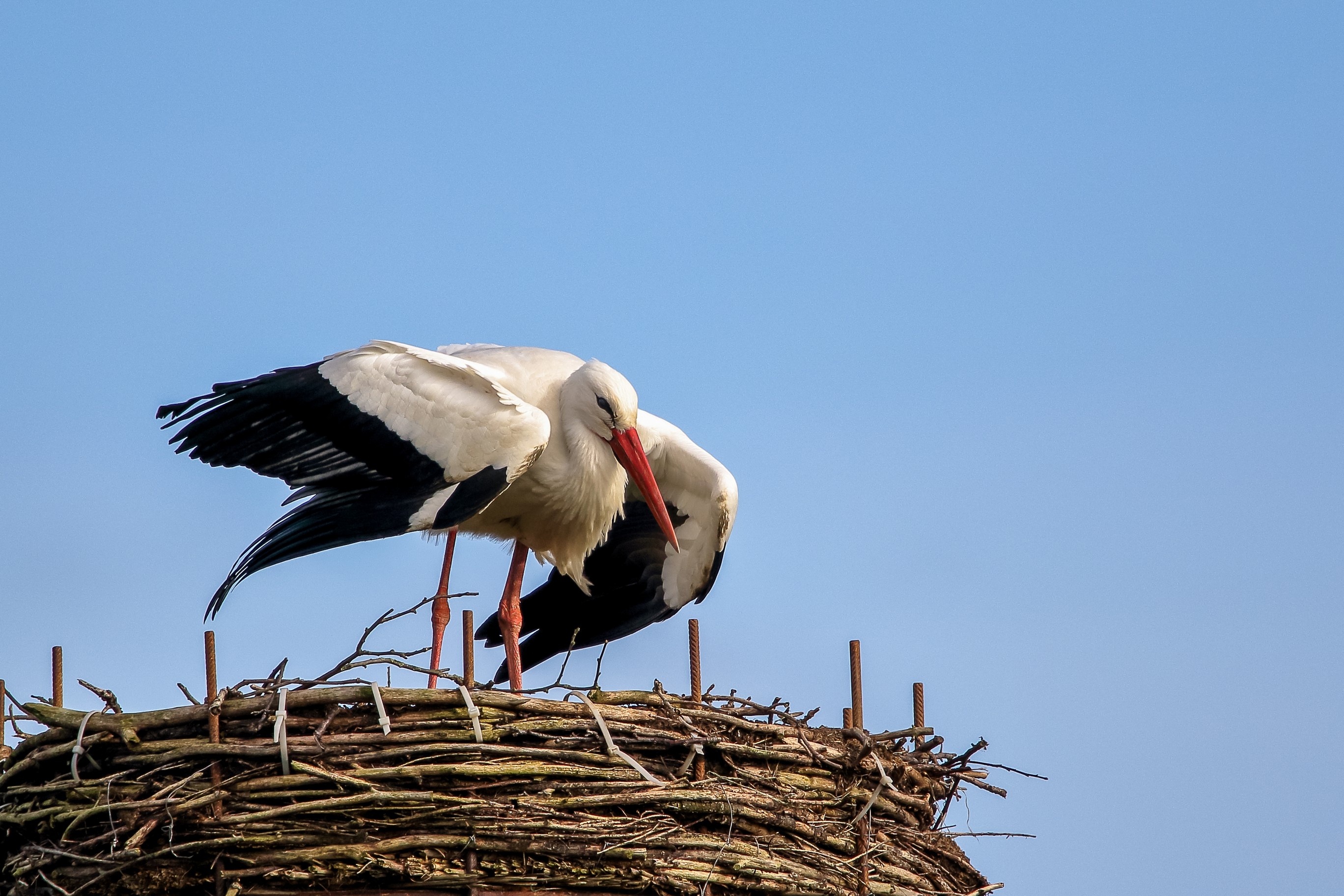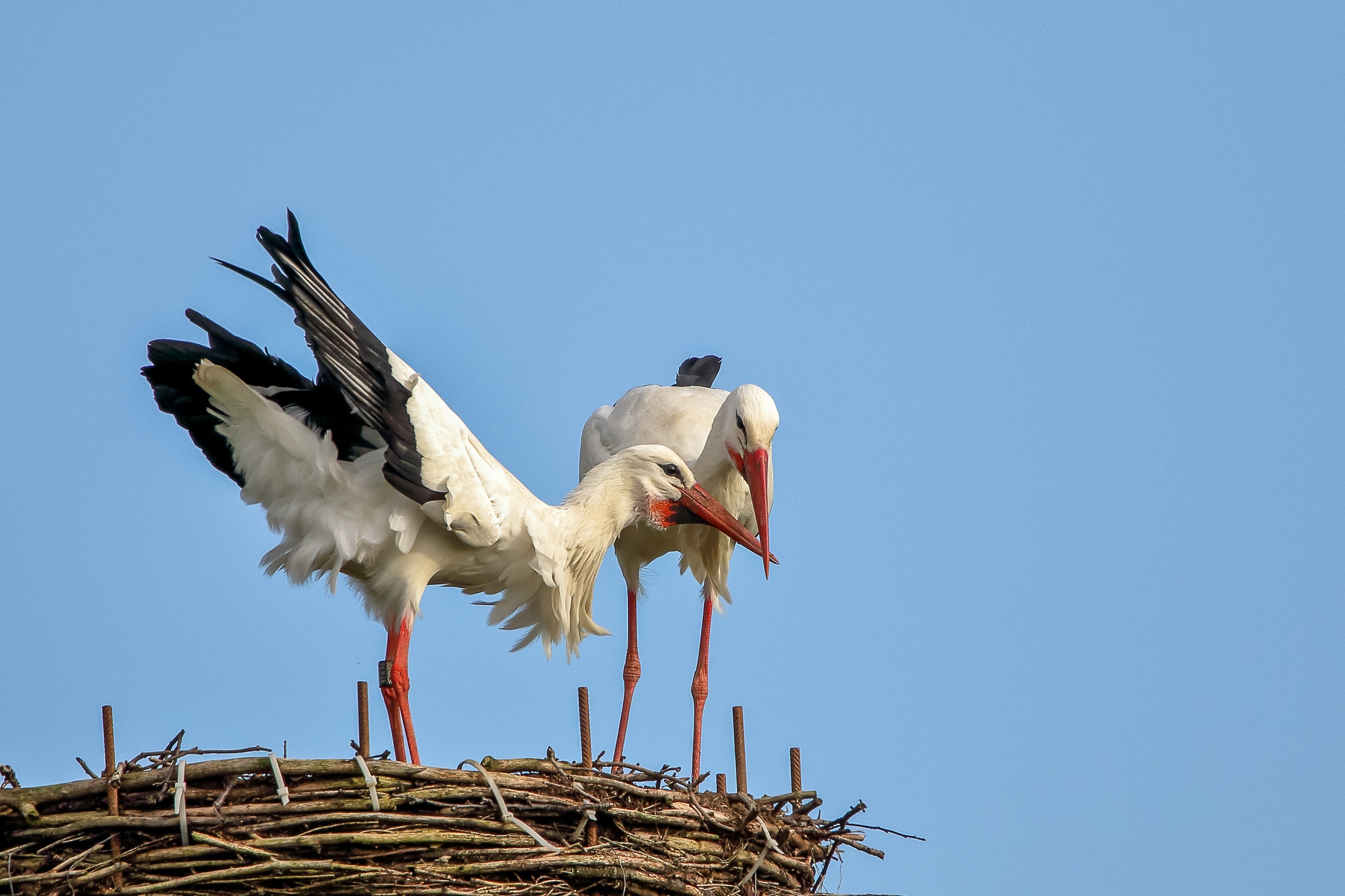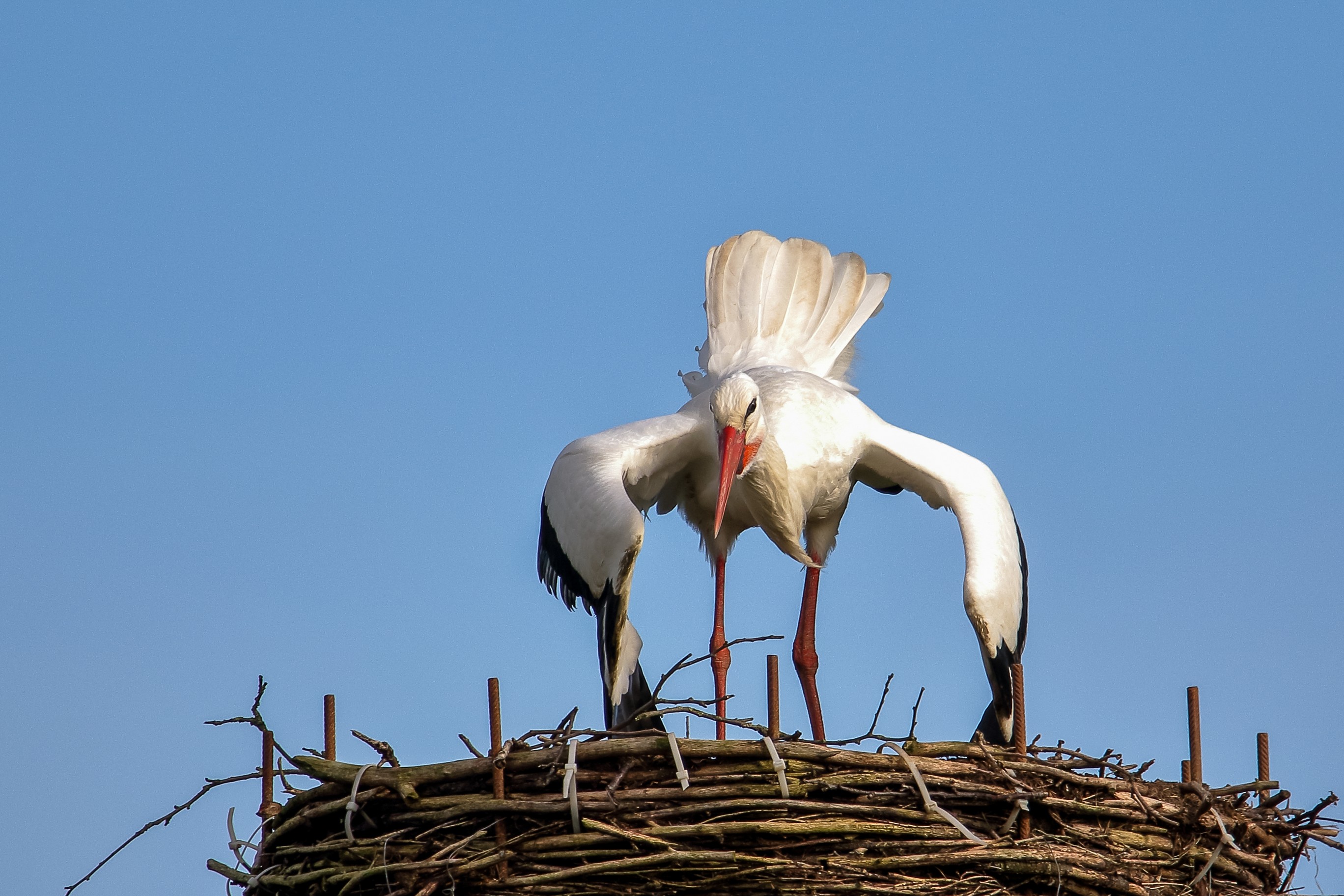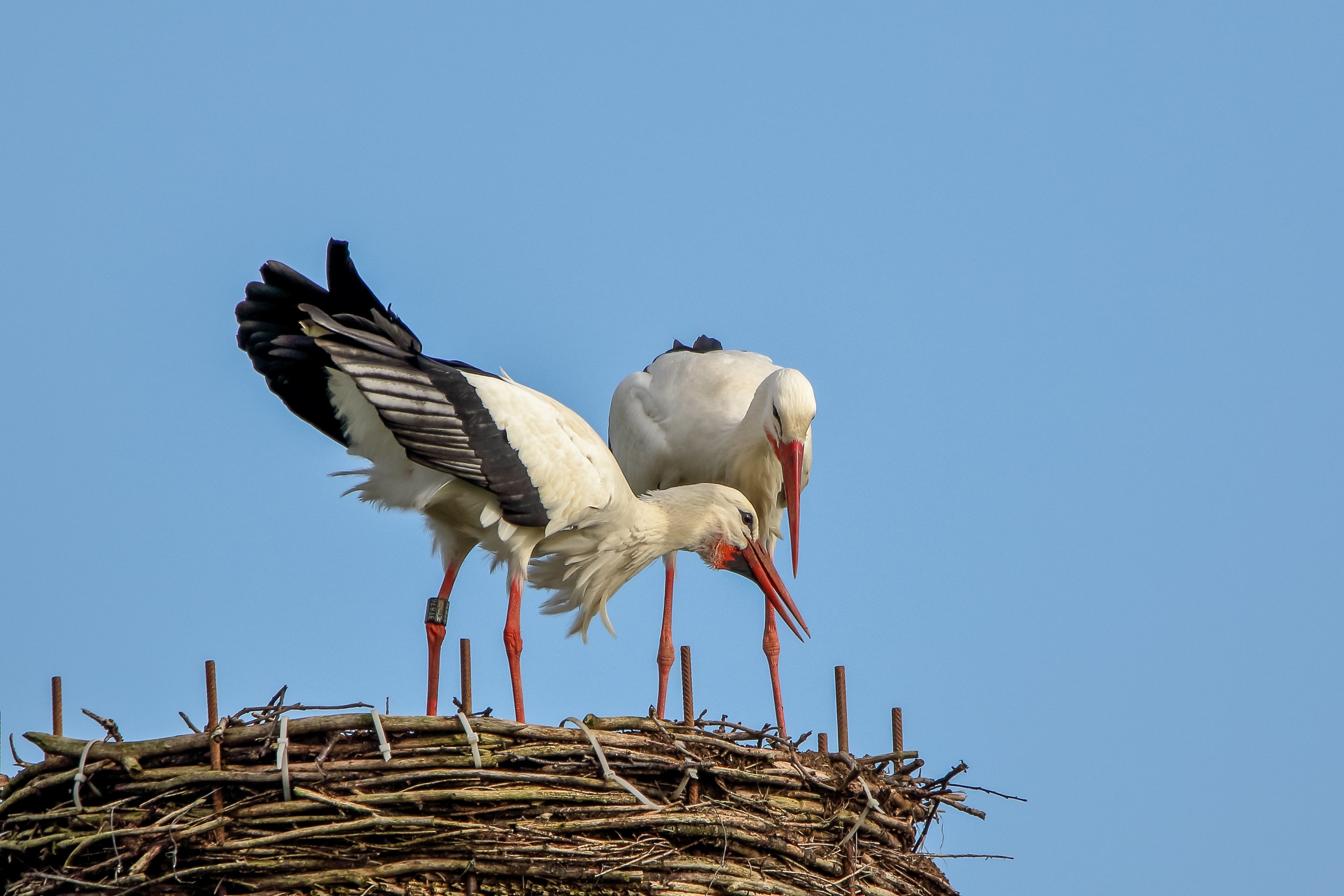 Schon Anfang Februar fanden sich die ersten Störche im Naturschutzgebiet auf der Bislicher Insel ein. Mittlerweile beginnt die Besetzung der begehrten Wohnanlagen des Storchenreiches. Die Verteidigung gegen Fremdbesetzer sowie die Zuneigung zum Partner können nun sehr schön beobachtet werden.