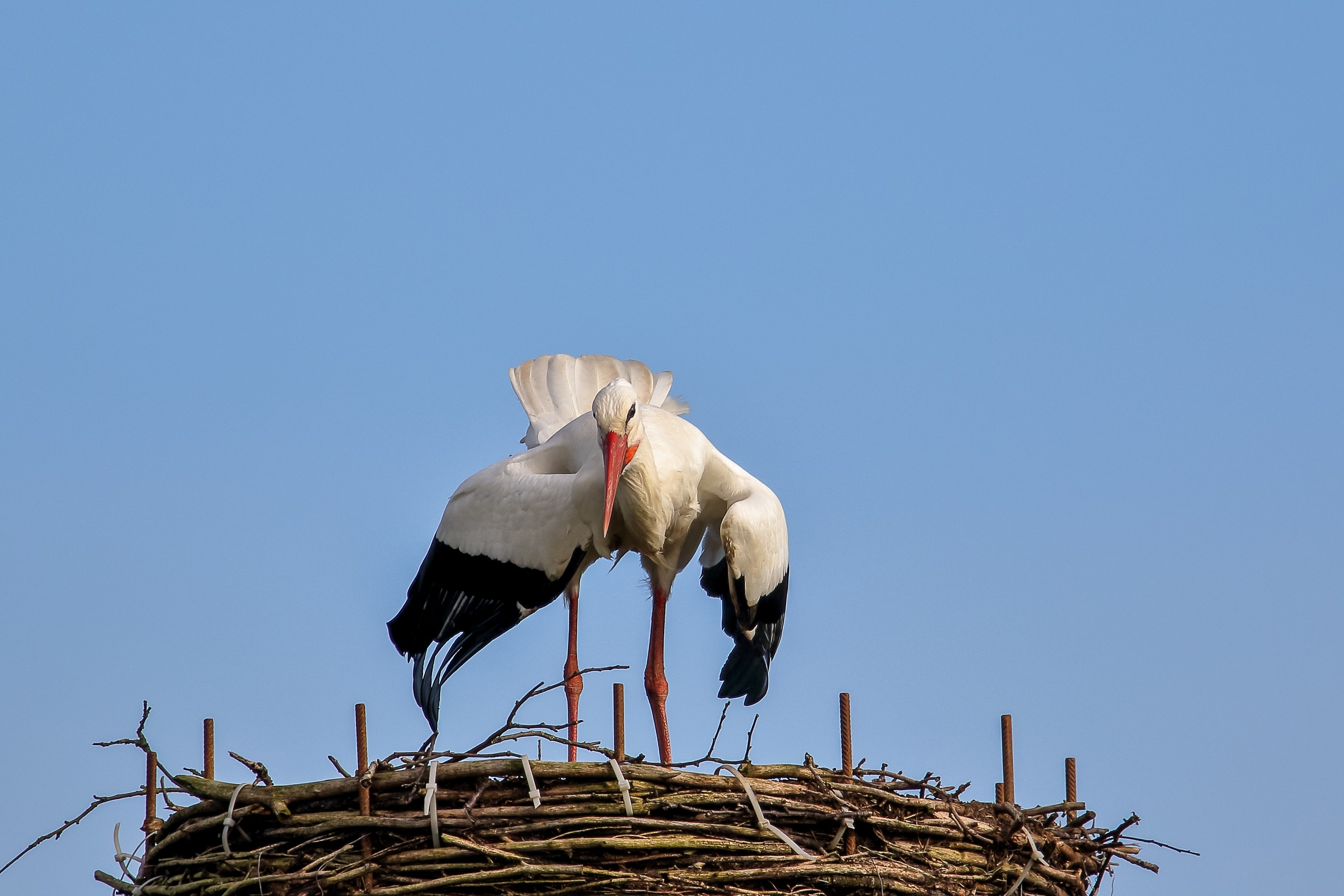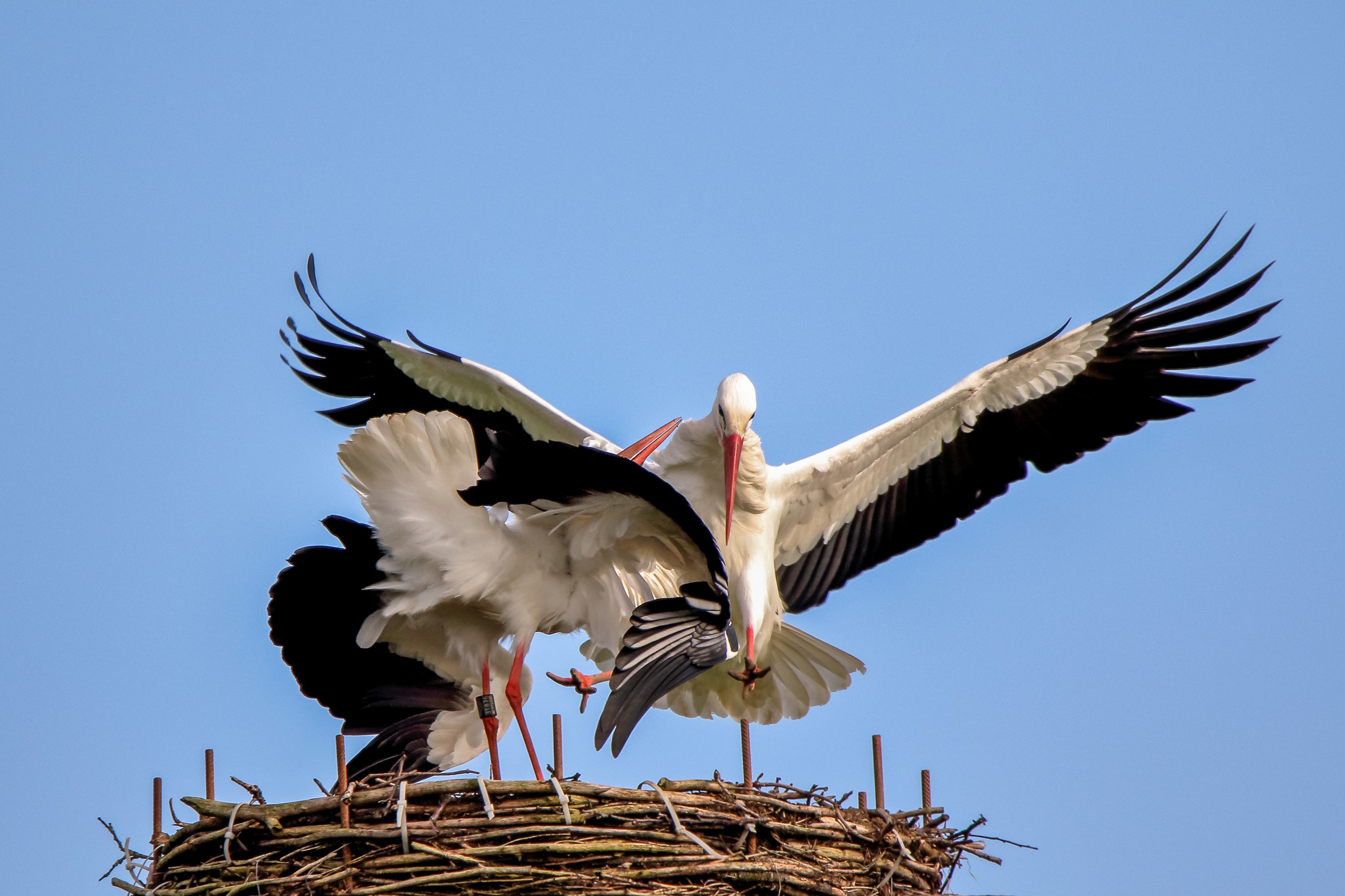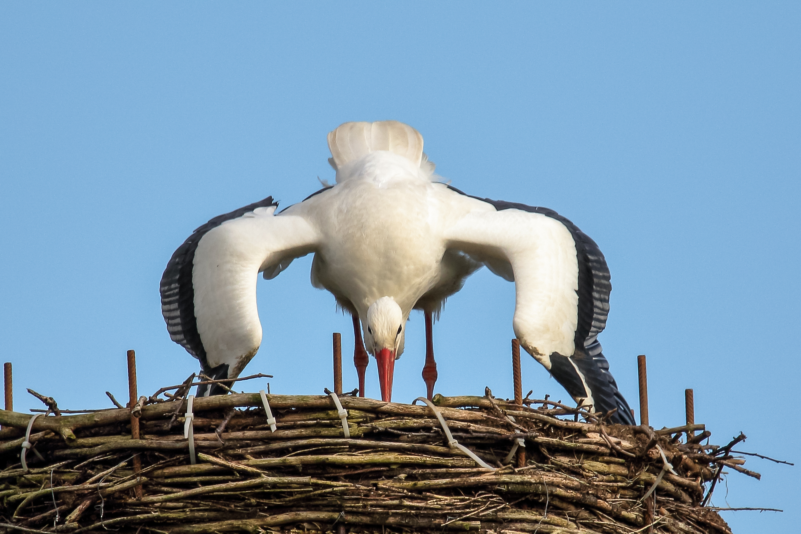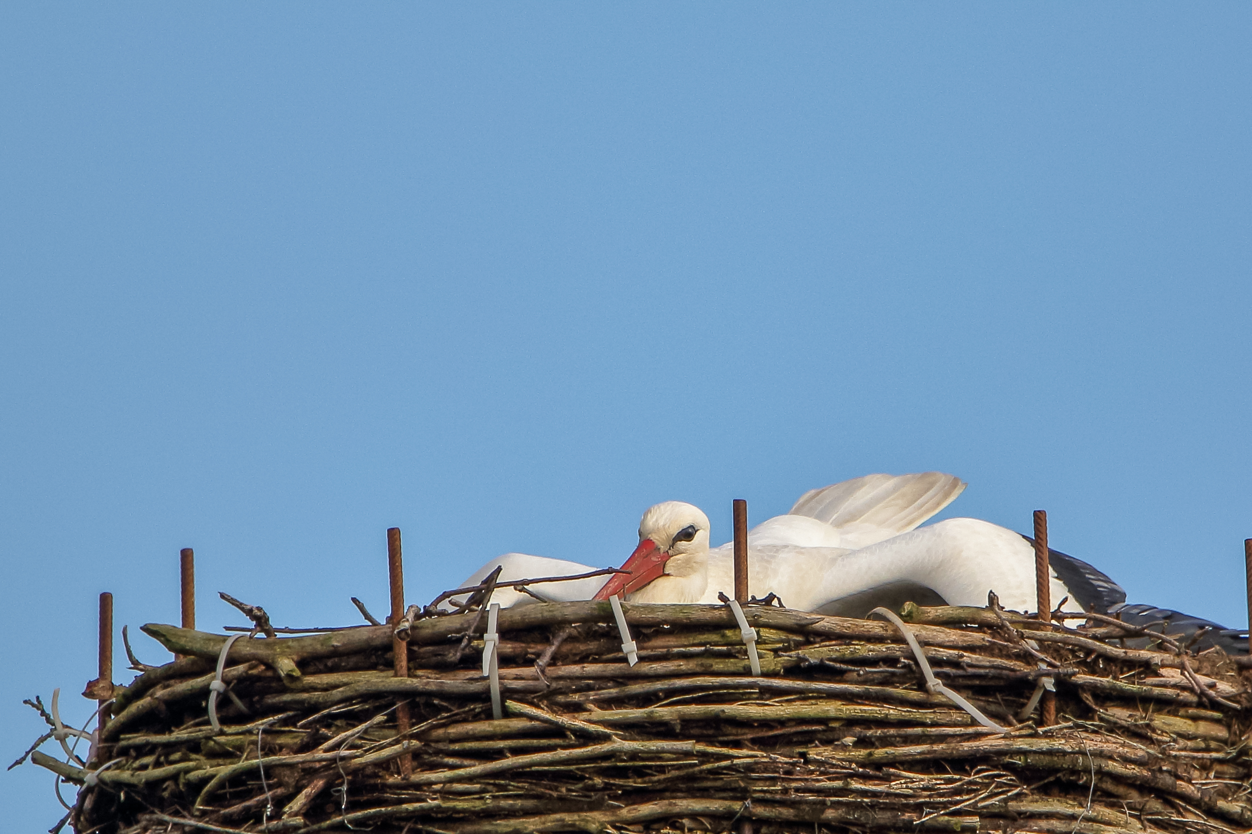 Schon Anfang Februar fanden sich die ersten Störche im Naturschutzgebiet auf der Bislicher Insel ein. Mittlerweile beginnt die Besetzung der begehrten Wohnanlagen des Storchenreiches. Die Verteidigung gegen Fremdbesetzer sowie die Zuneigung zum Partner können nun sehr schön beobachtet werden.