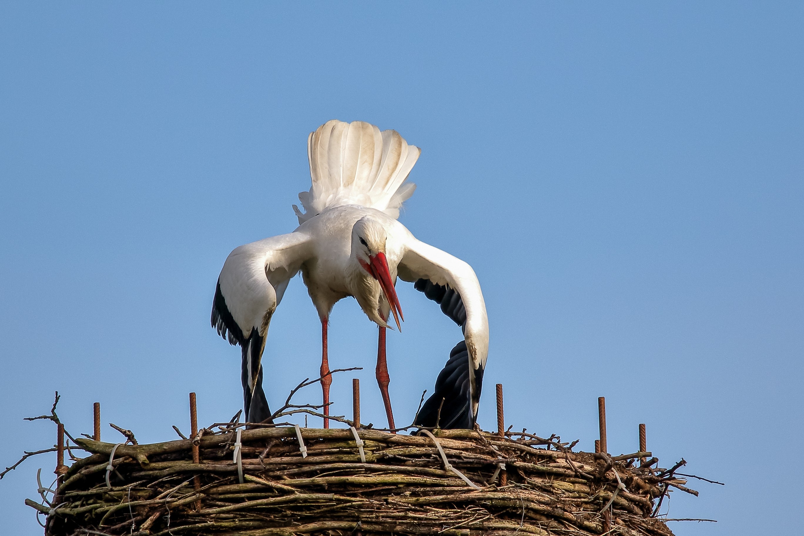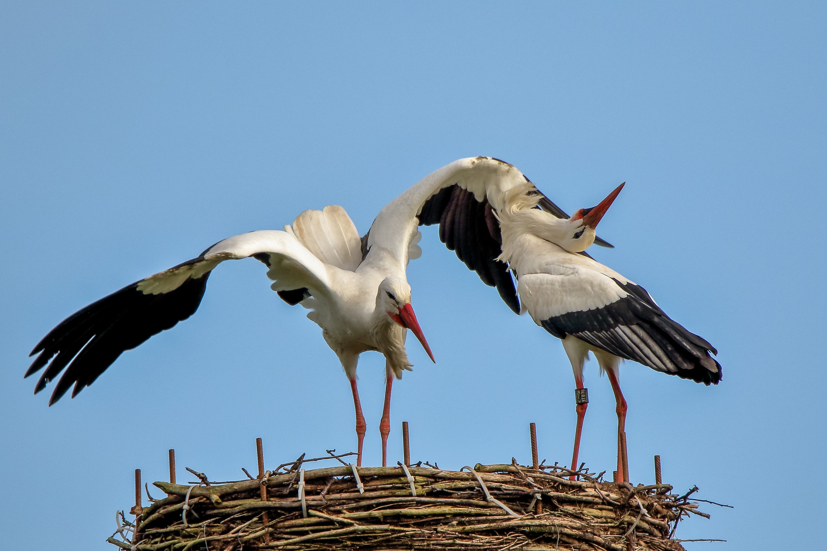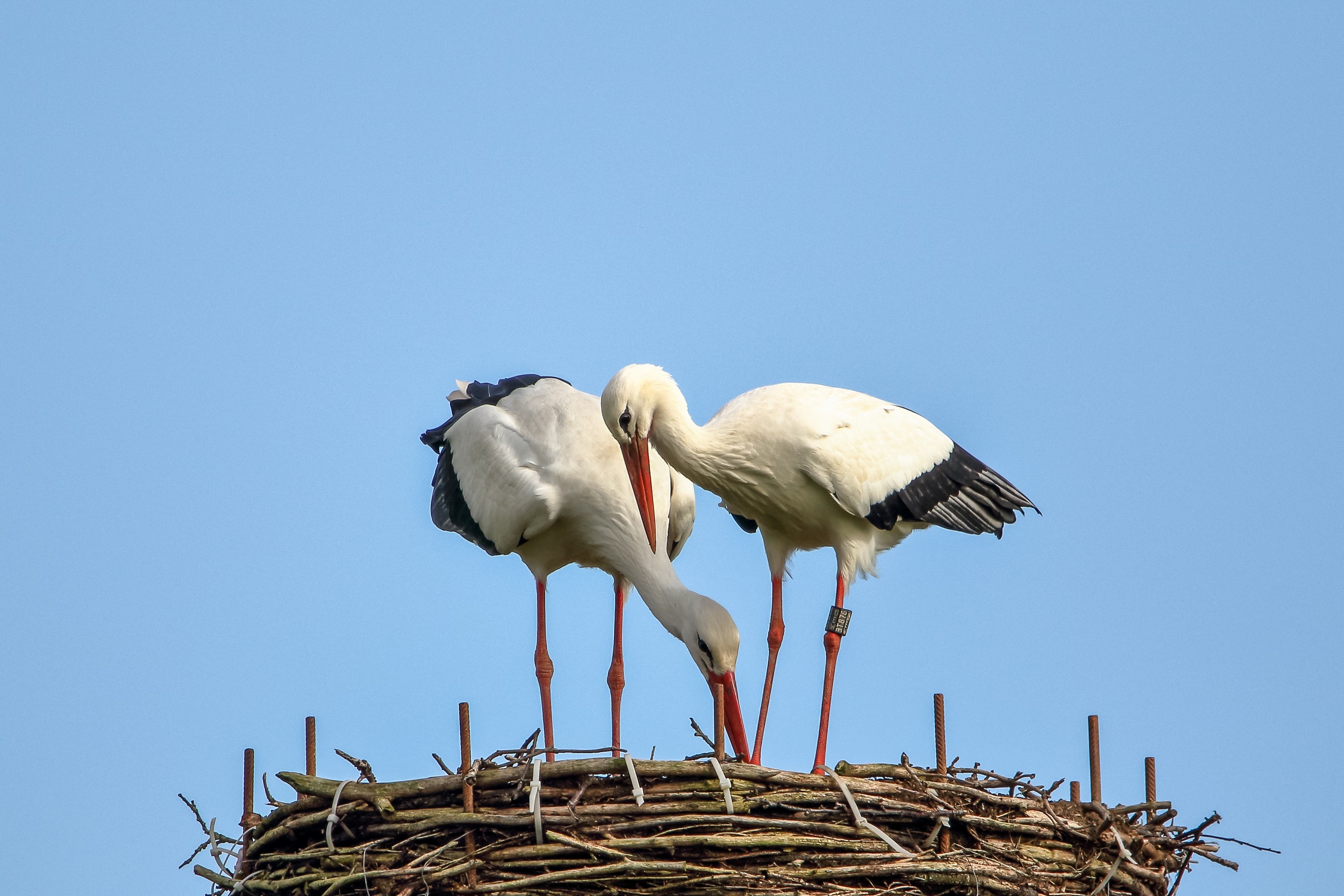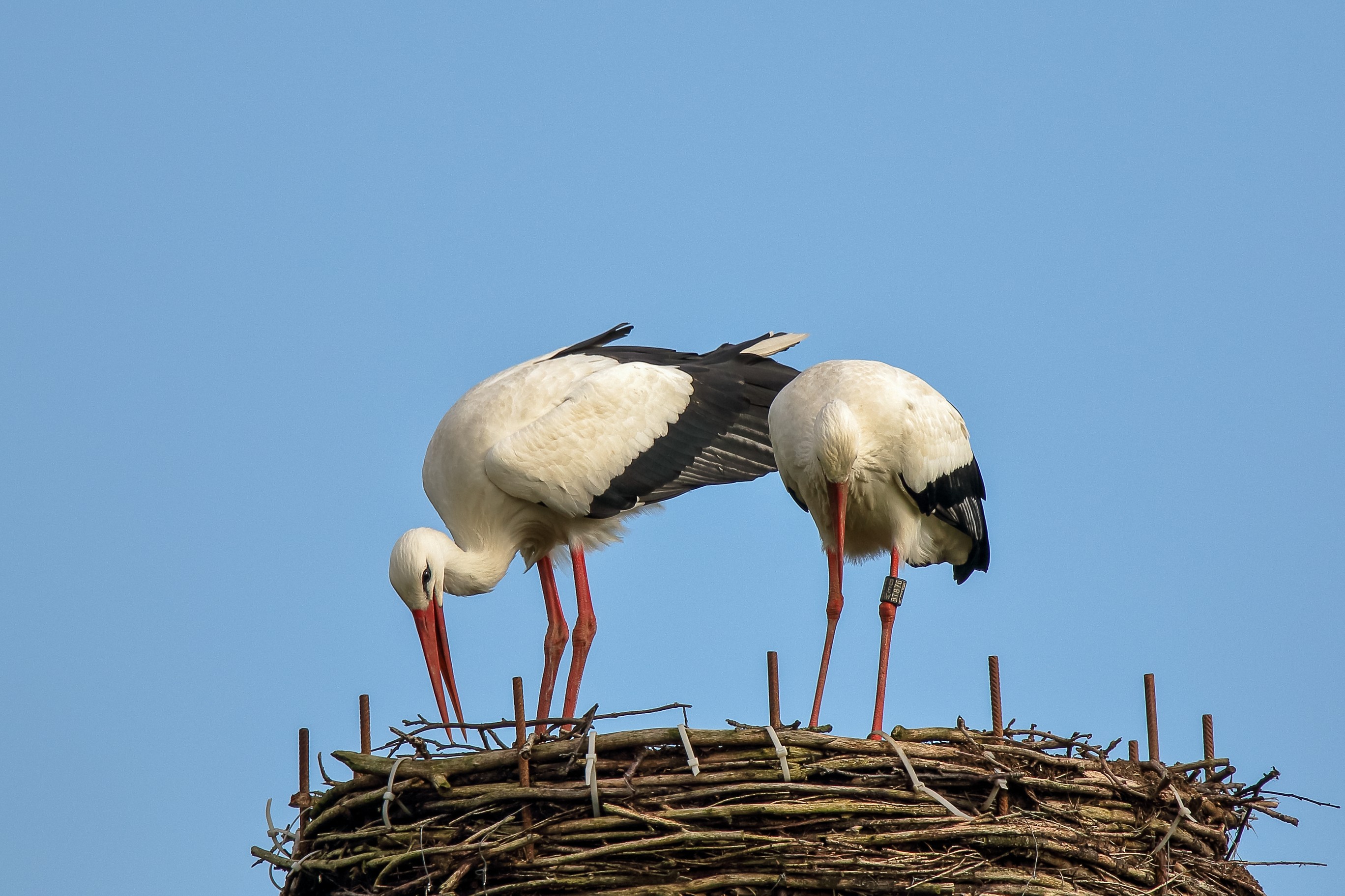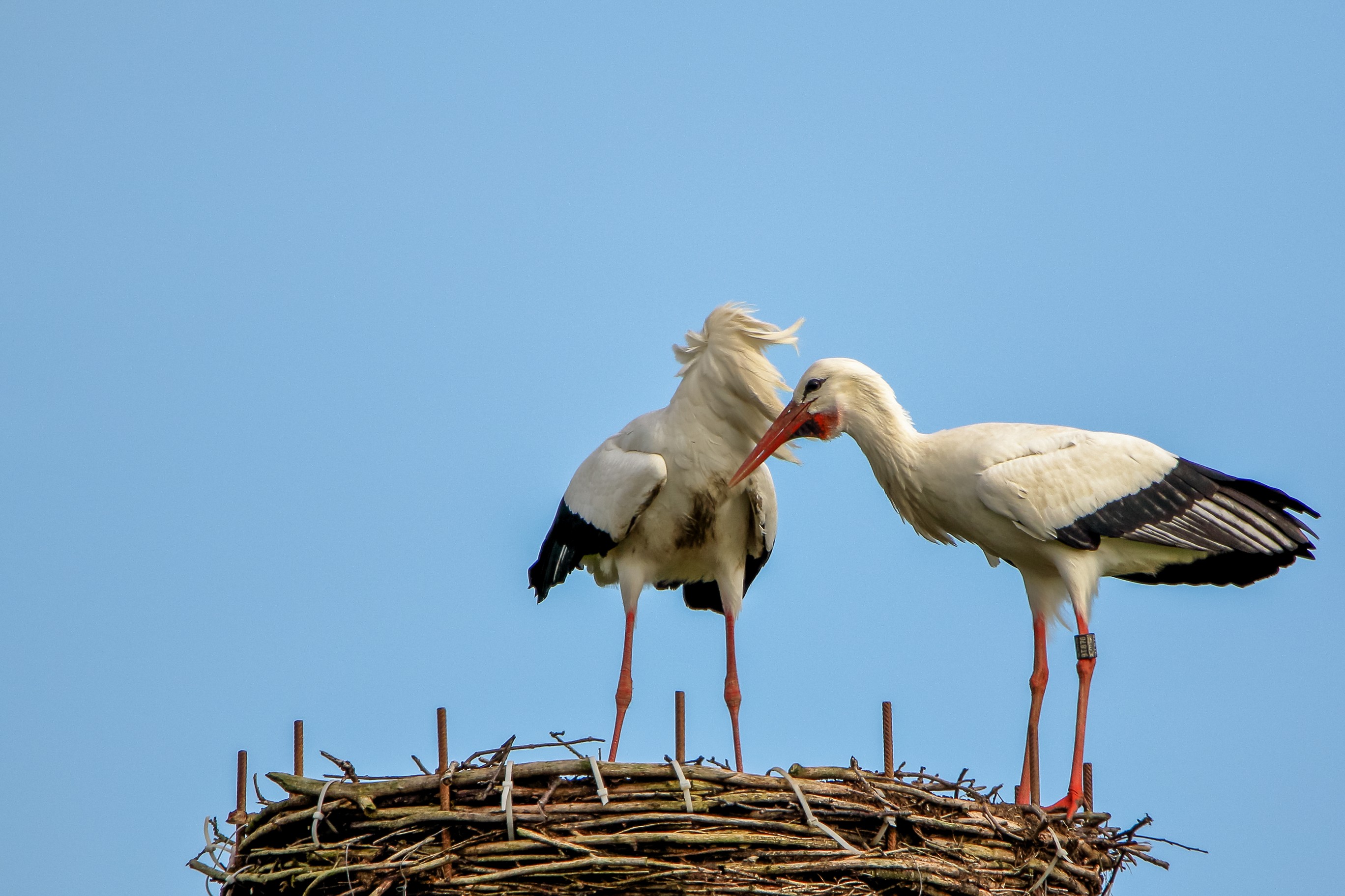 Schon Anfang Februar fanden sich die ersten Störche im Naturschutzgebiet auf der Bislicher Insel ein. Mittlerweile beginnt die Besetzung der begehrten Wohnanlagen des Storchenreiches. Die Verteidigung gegen Fremdbesetzer sowie die Zuneigung zum Partner können nun sehr schön beobachtet werden.