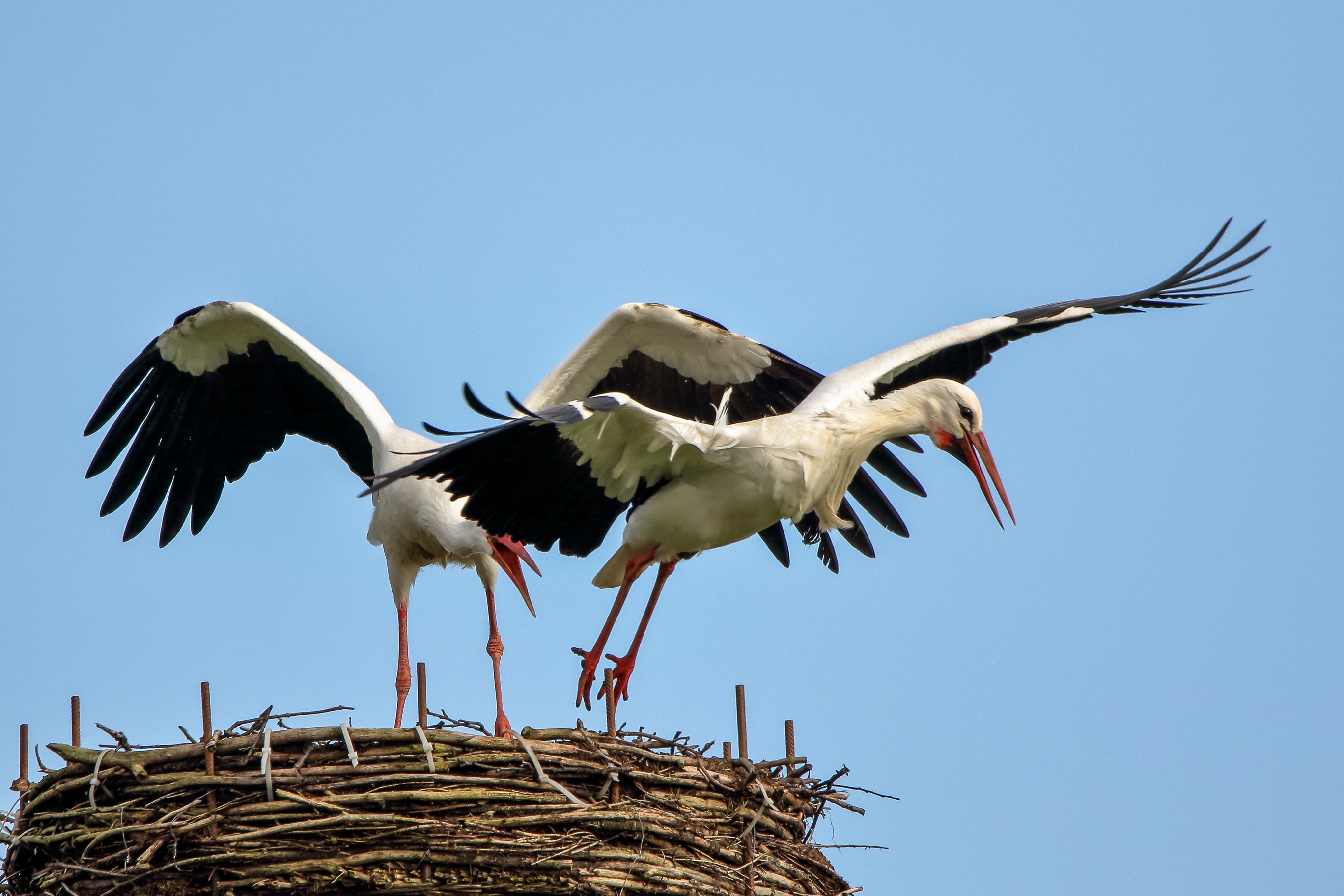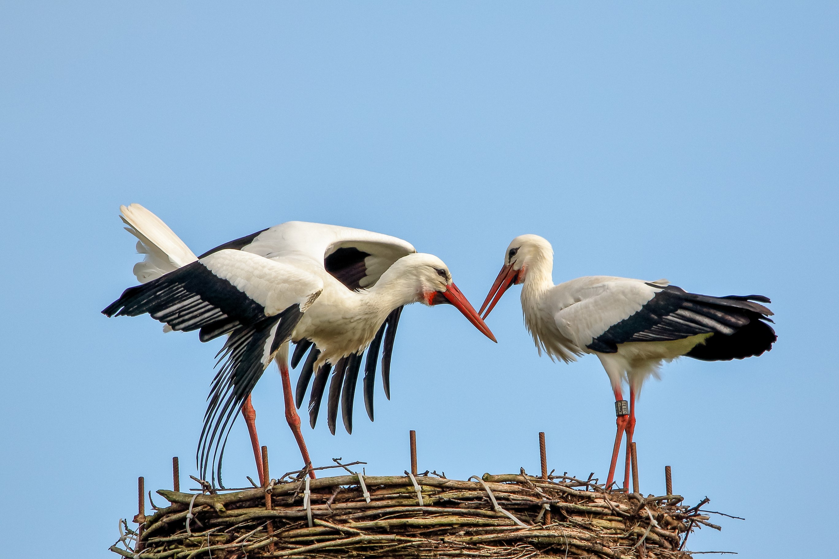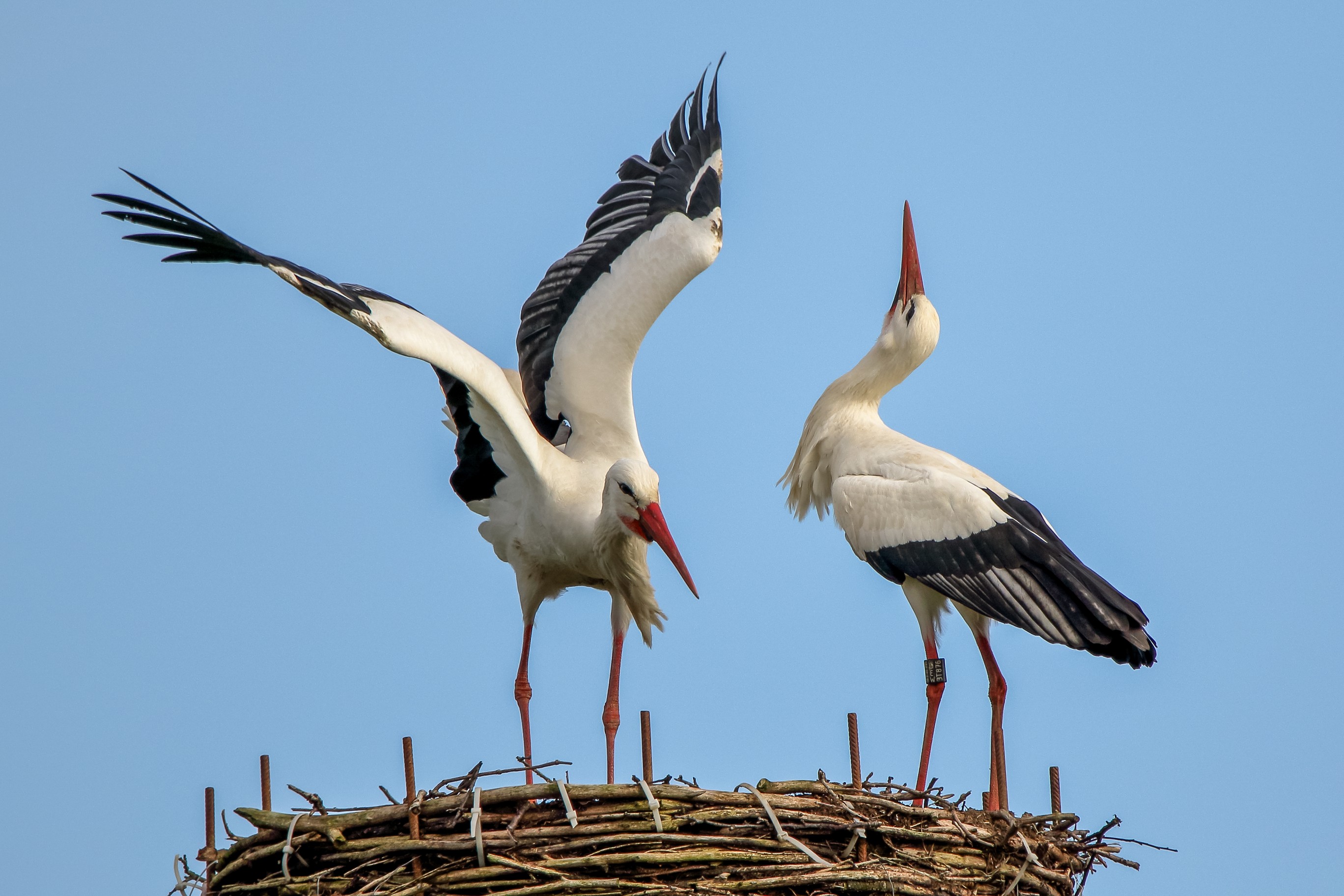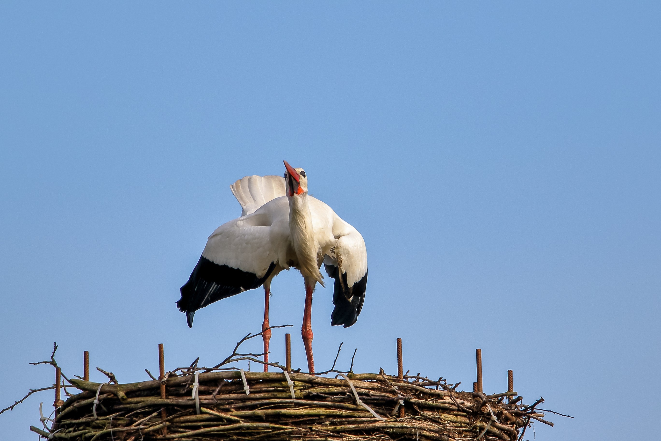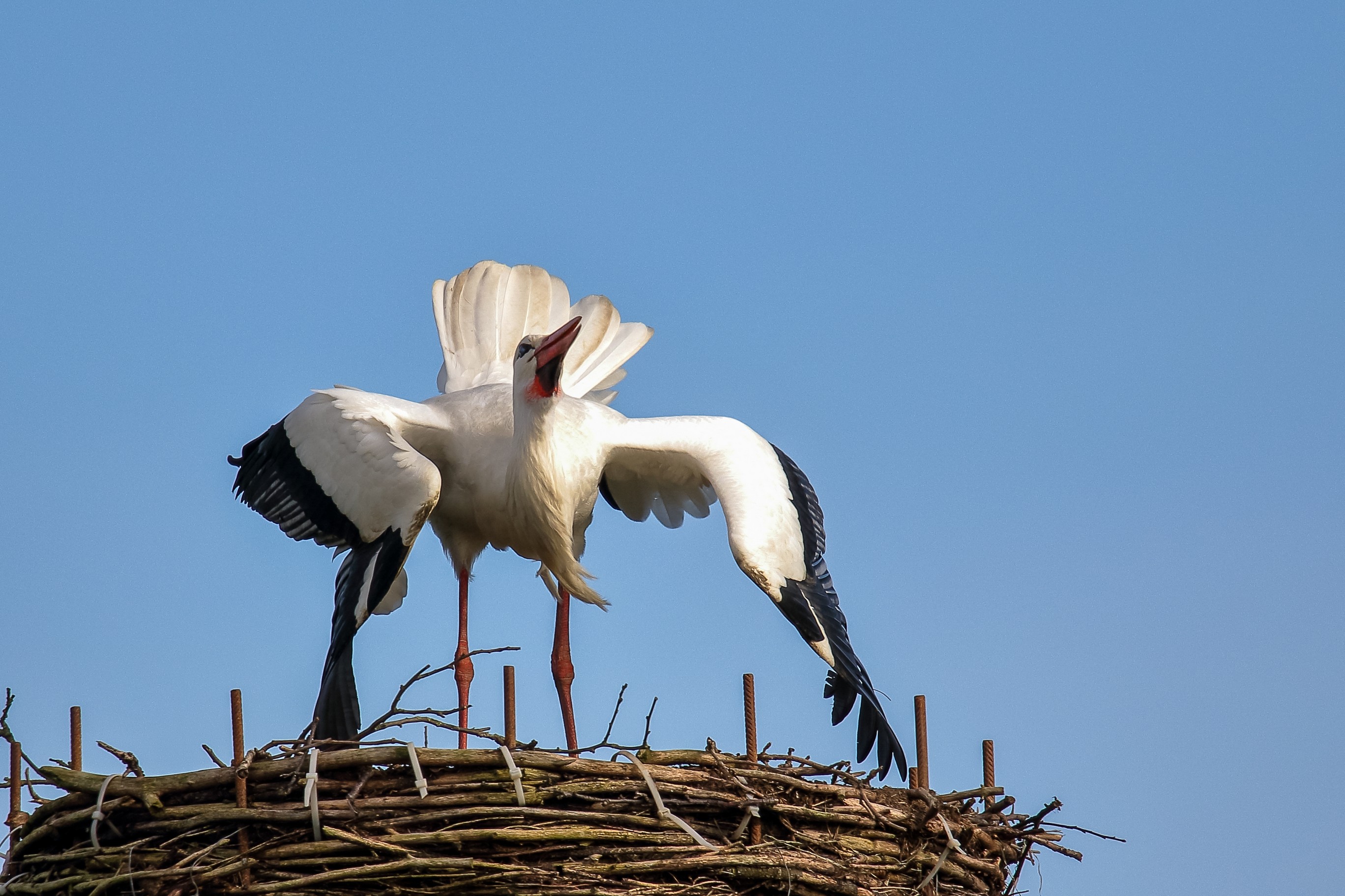 Schon Anfang Februar fanden sich die ersten Störche im Naturschutzgebiet auf der Bislicher Insel ein. Mittlerweile beginnt die Besetzung der begehrten Wohnanlagen des Storchenreiches. Die Verteidigung gegen Fremdbesetzer sowie die Zuneigung zum Partner können nun sehr schön beobachtet werden.