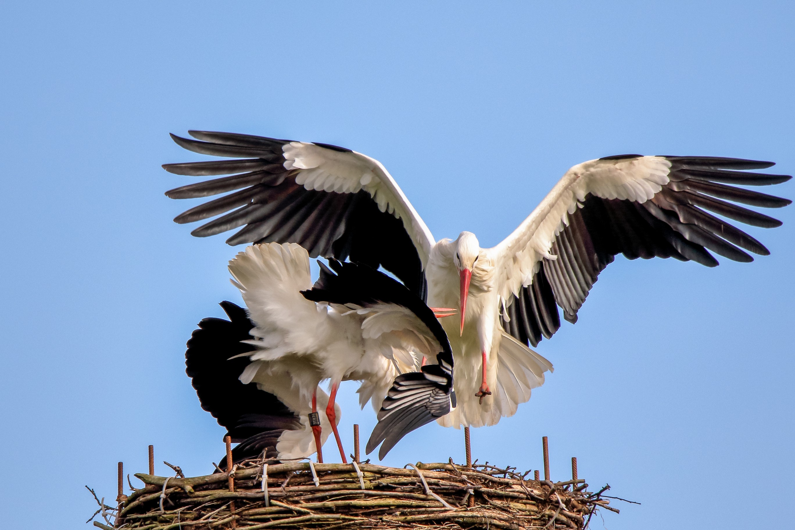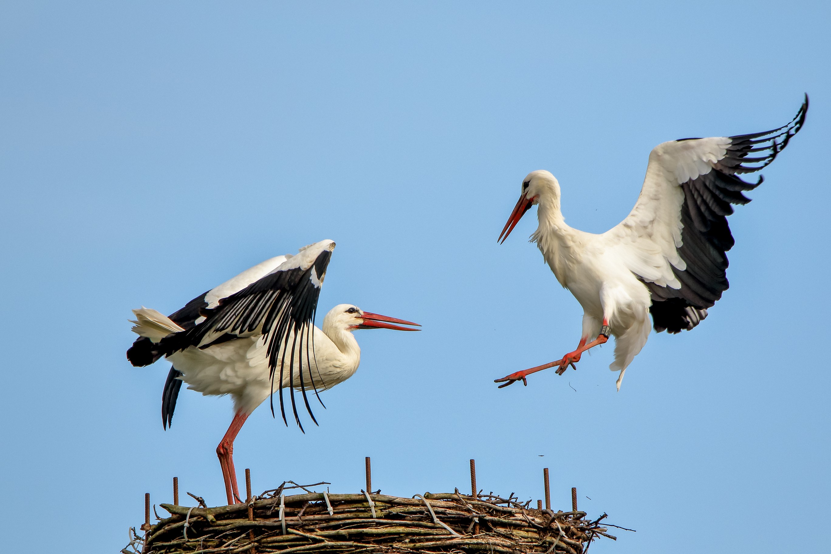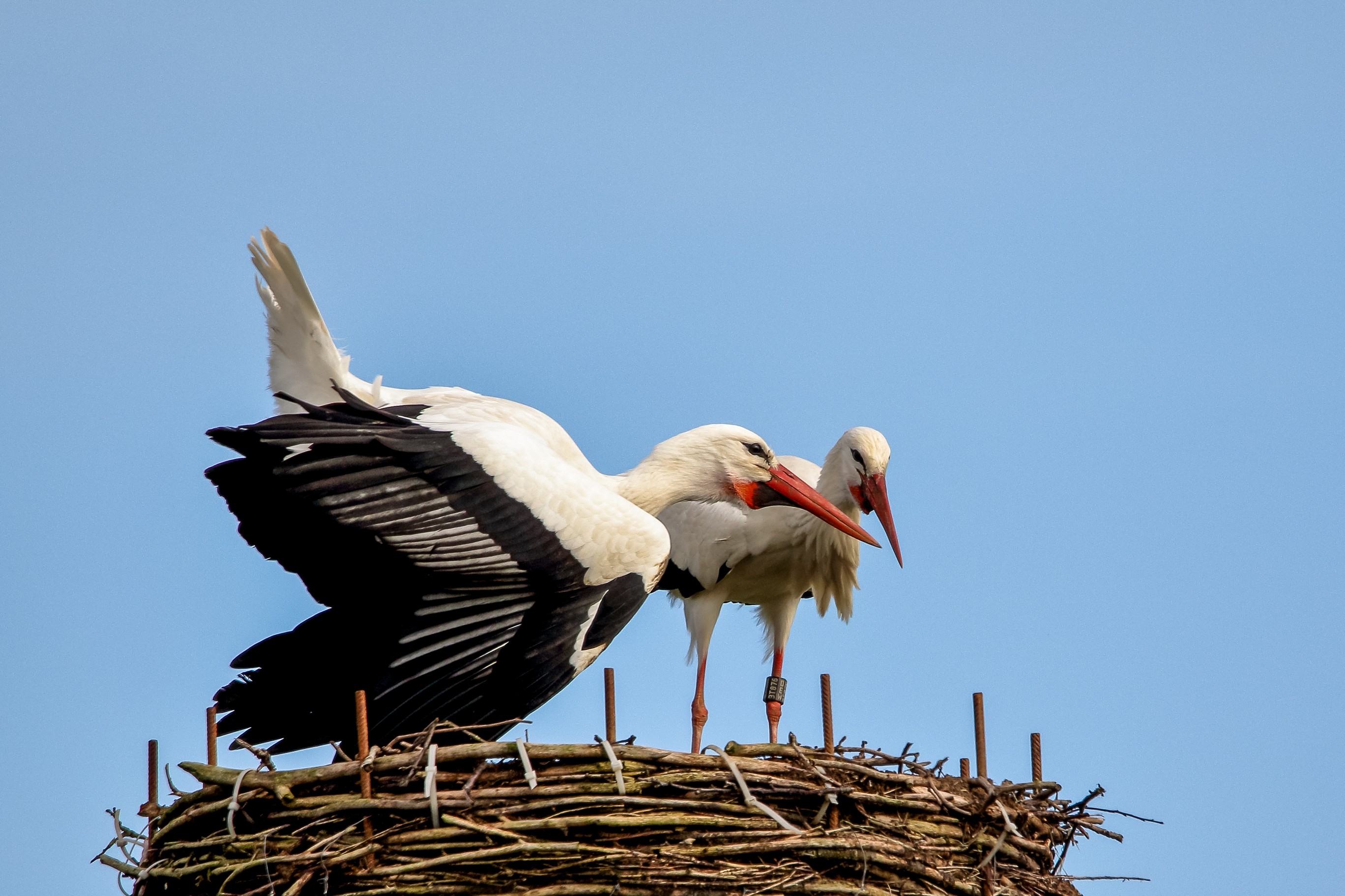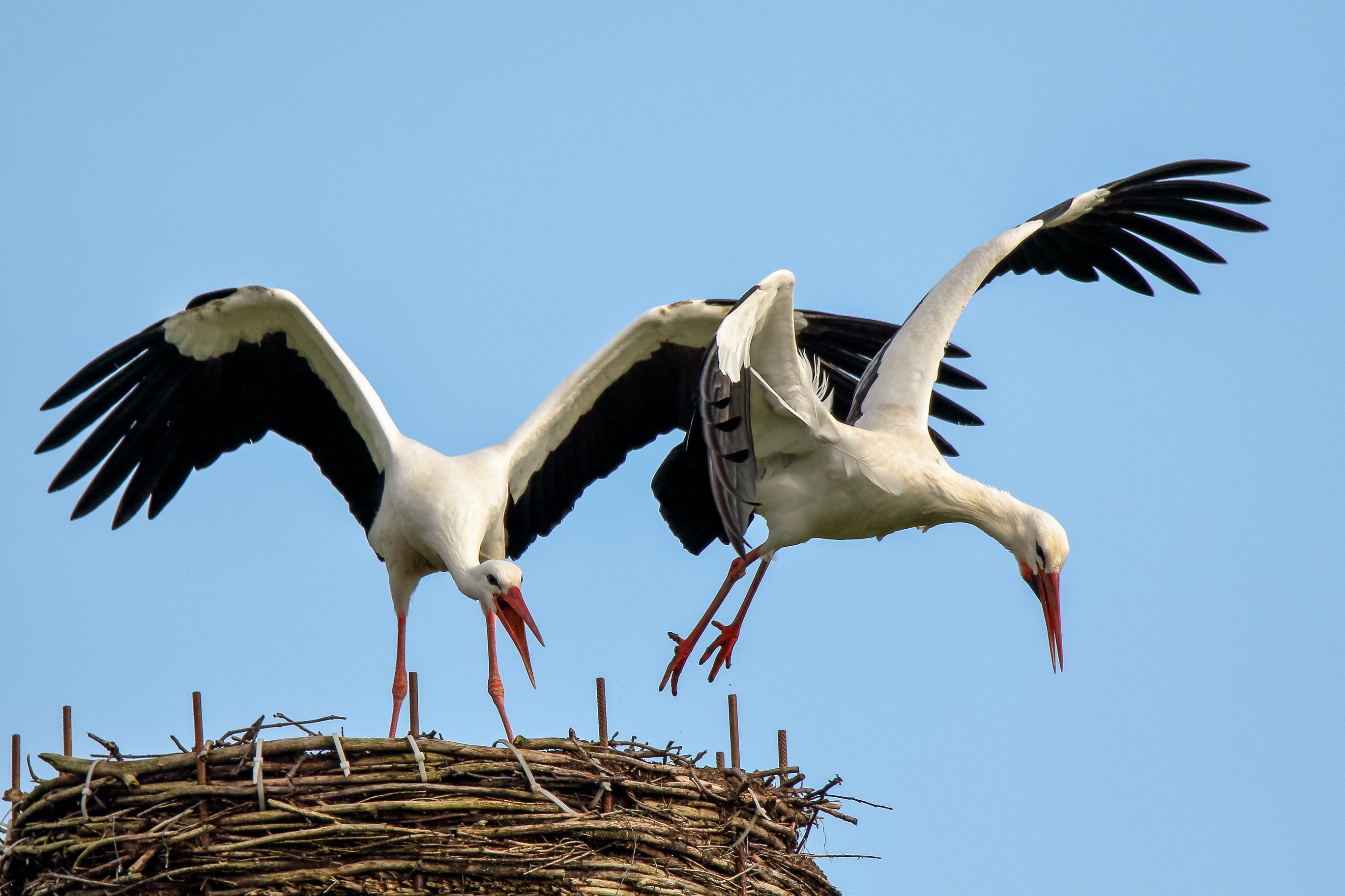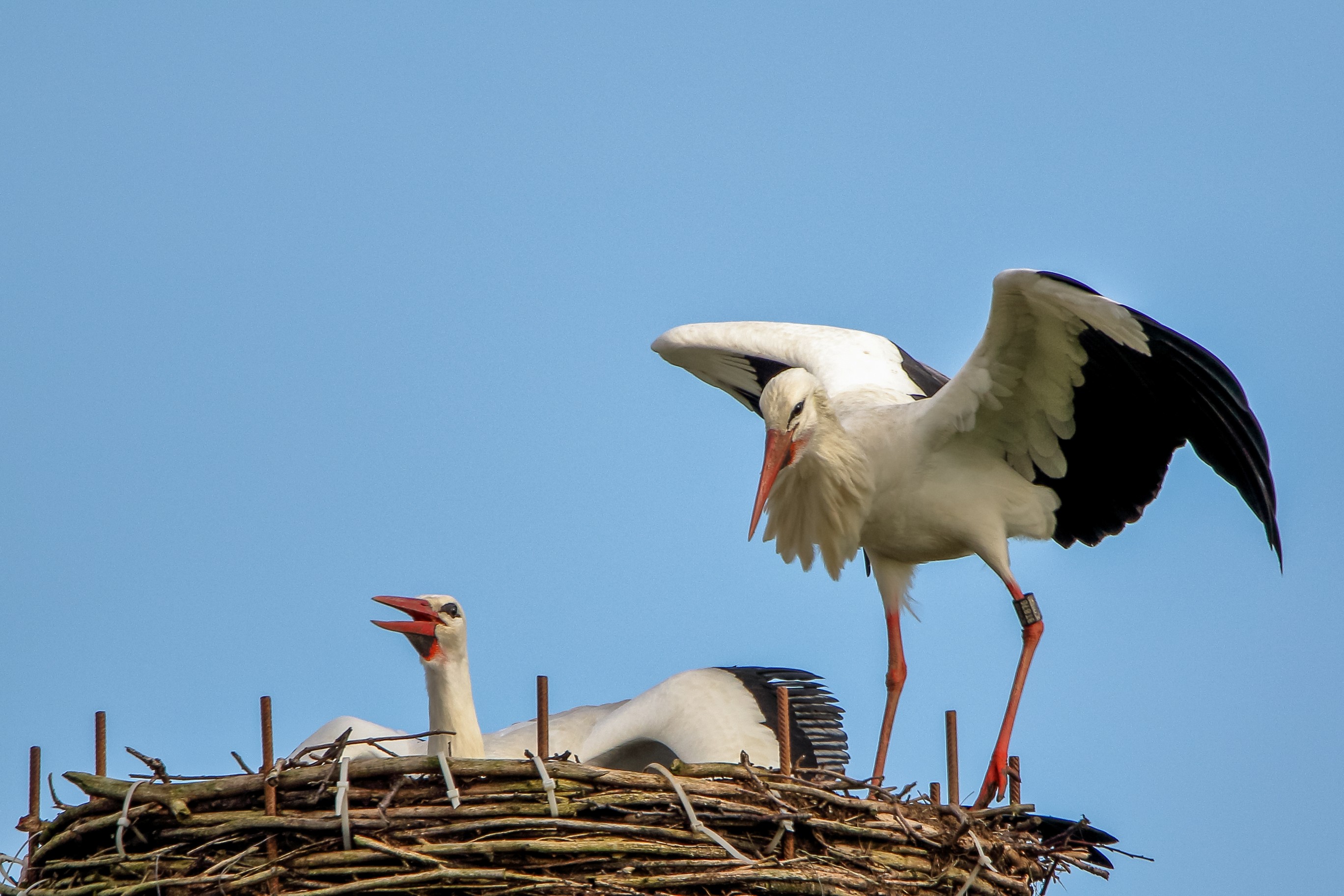 Schon Anfang Februar fanden sich die ersten Störche im Naturschutzgebiet auf der Bislicher Insel ein. Mittlerweile beginnt die Besetzung der begehrten Wohnanlagen des Storchenreiches. Die Verteidigung gegen Fremdbesetzer sowie die Zuneigung zum Partner können nun sehr schön beobachtet werden.