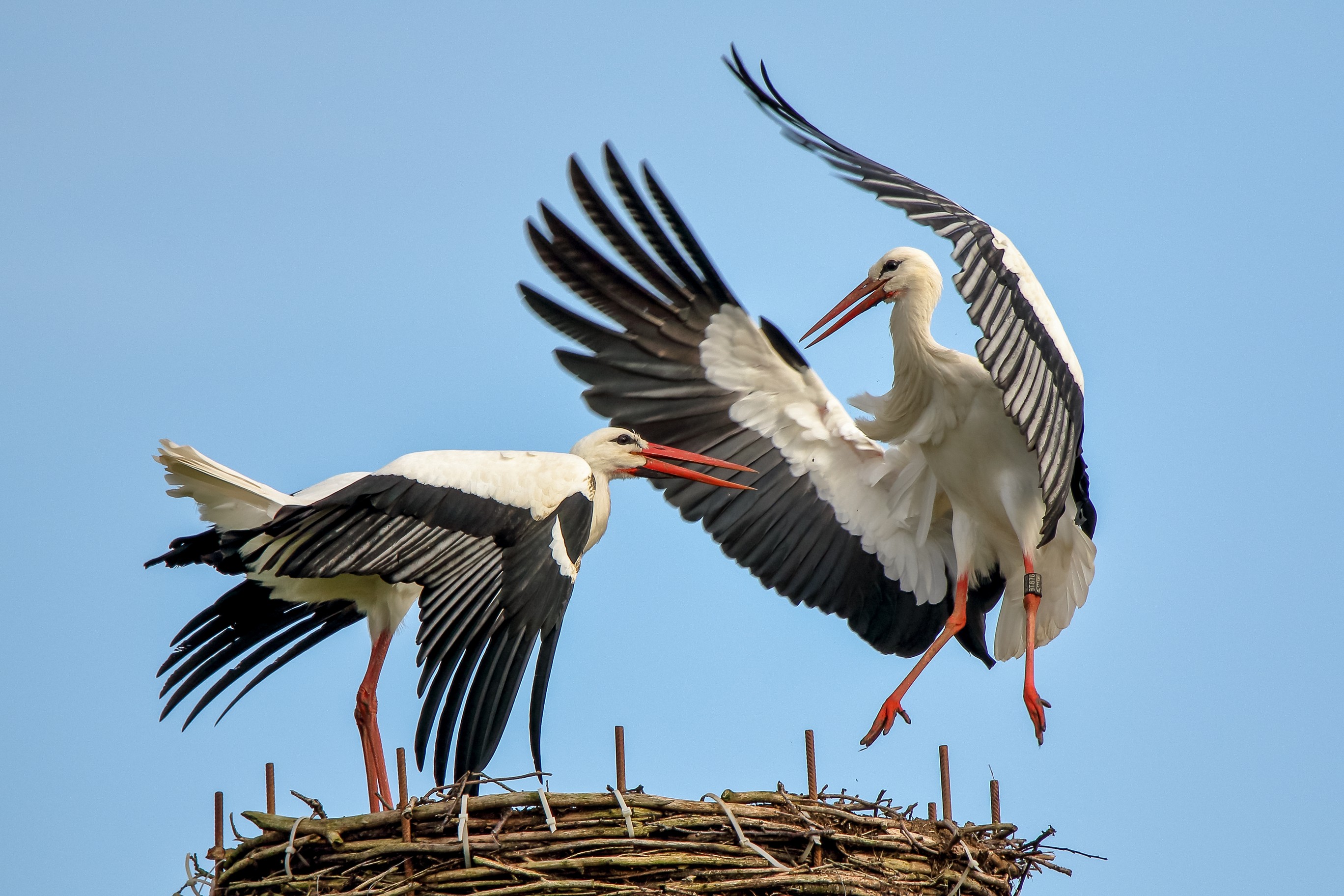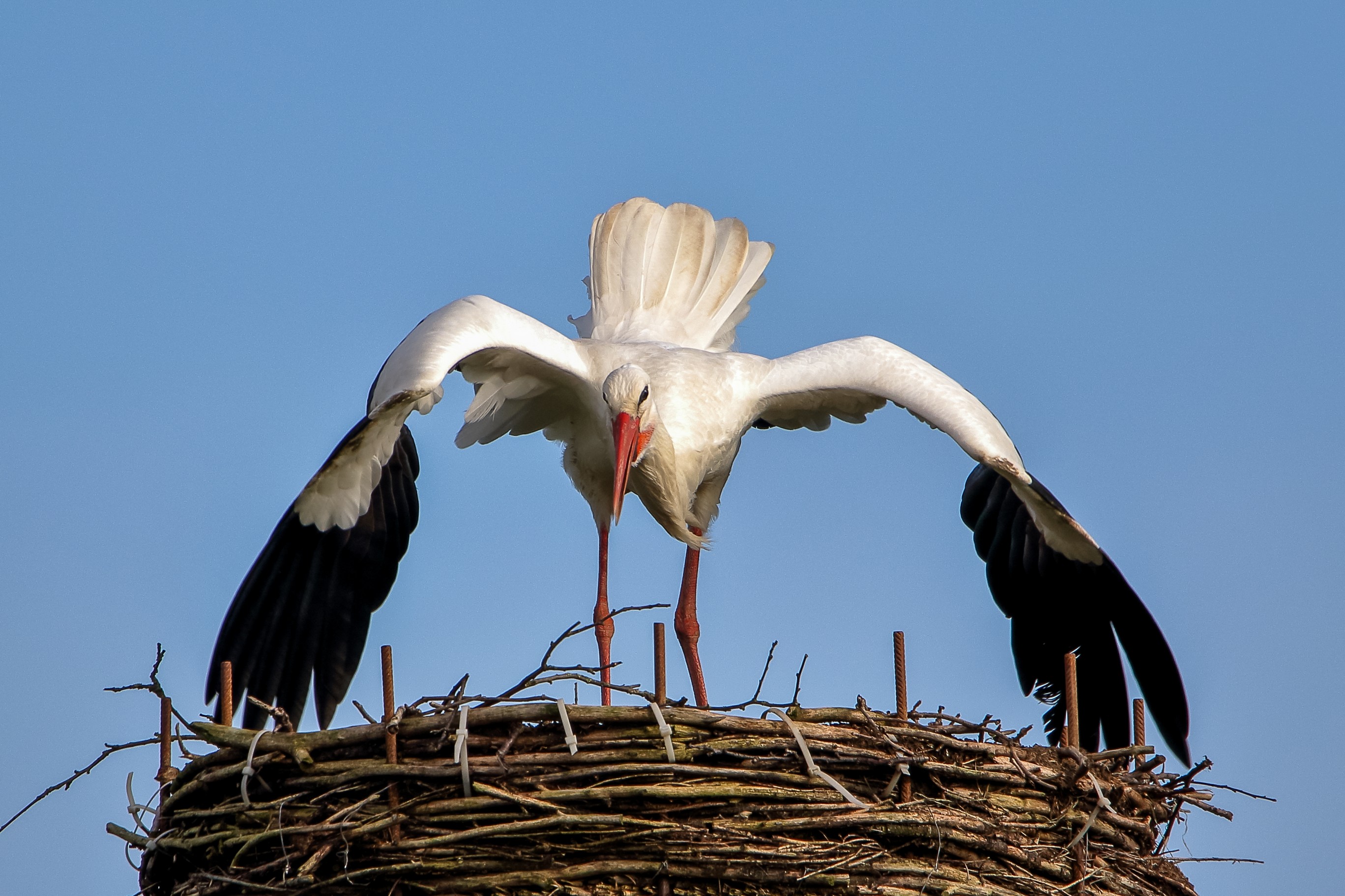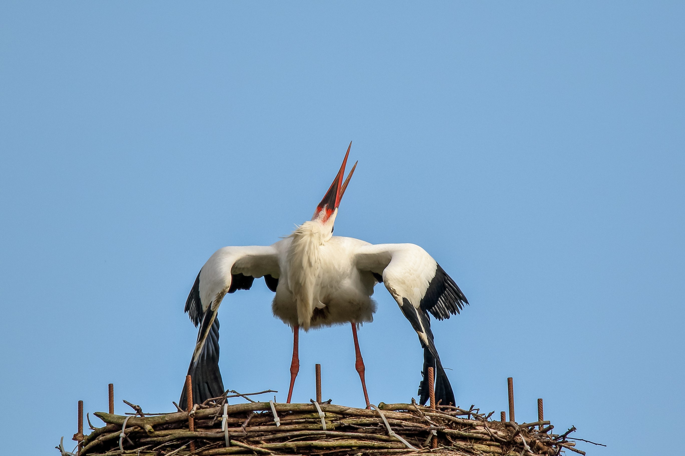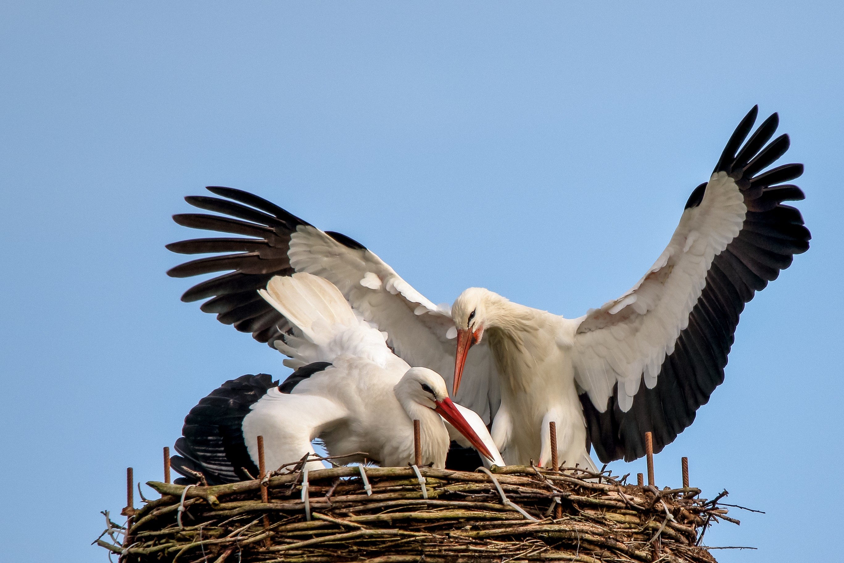 Schon Anfang Februar fanden sich die ersten Störche im Naturschutzgebiet auf der Bislicher Insel ein. Mittlerweile beginnt die Besetzung der begehrten Wohnanlagen des Storchenreiches. Die Verteidigung gegen Fremdbesetzer sowie die Zuneigung zum Partner können nun sehr schön beobachtet werden.