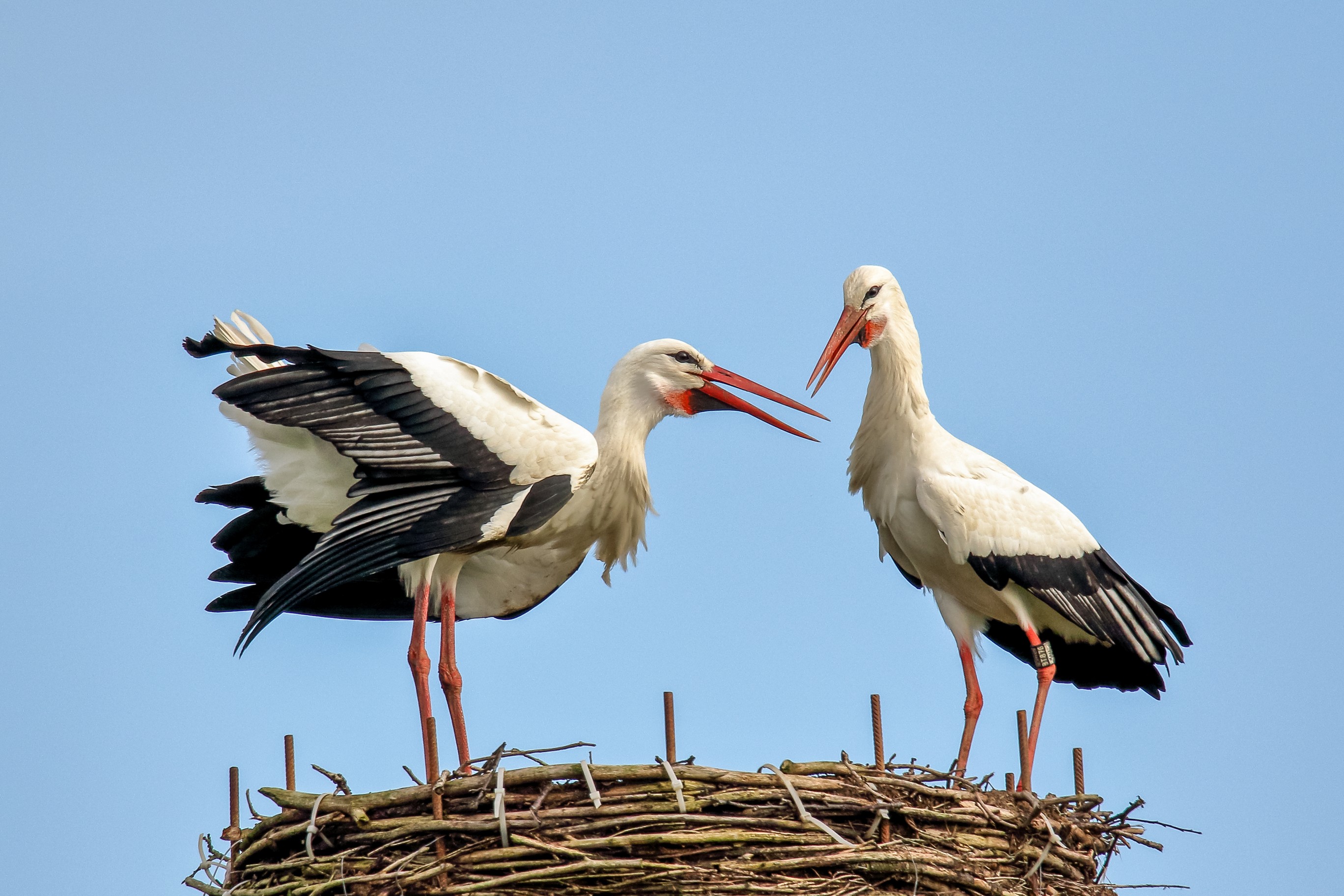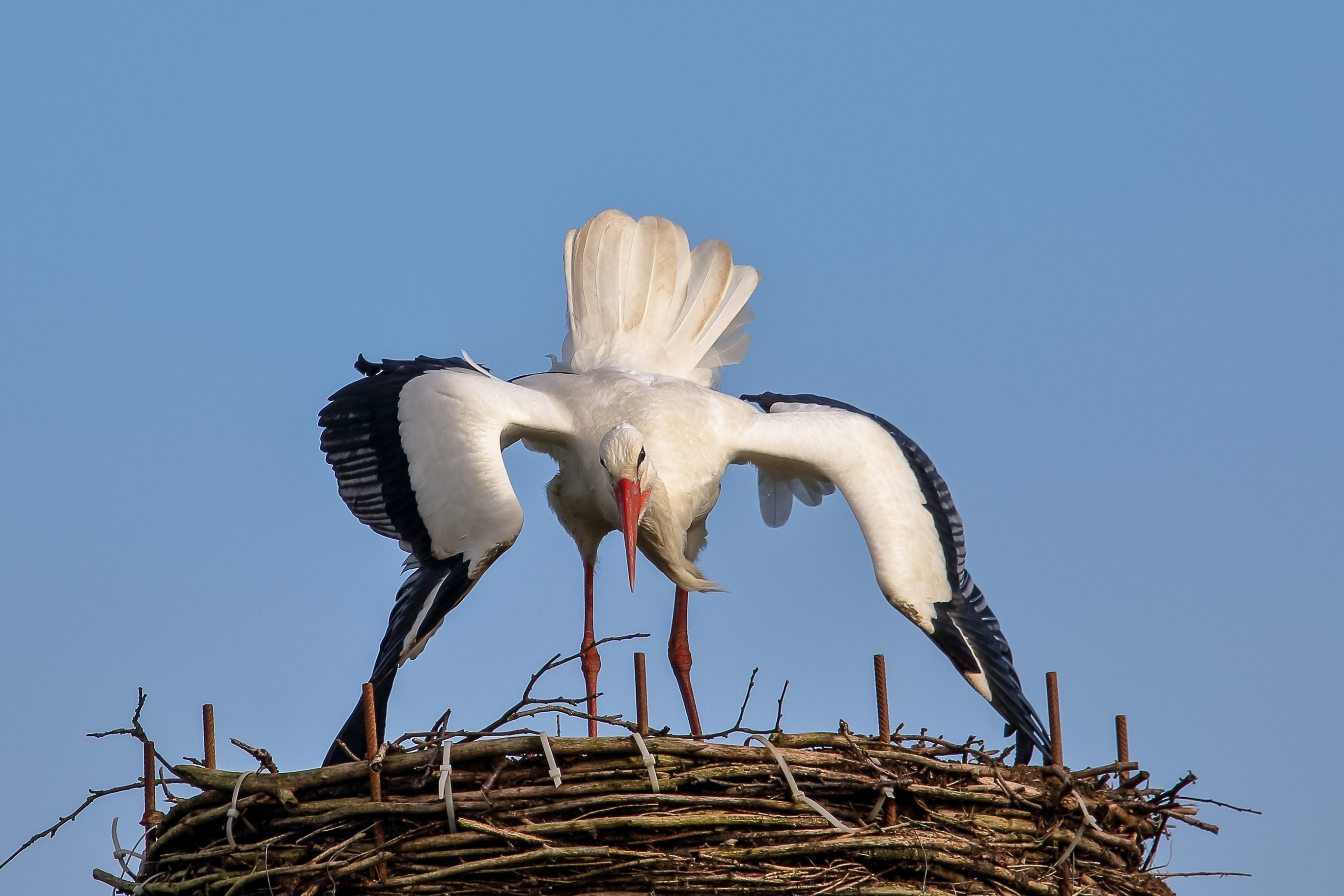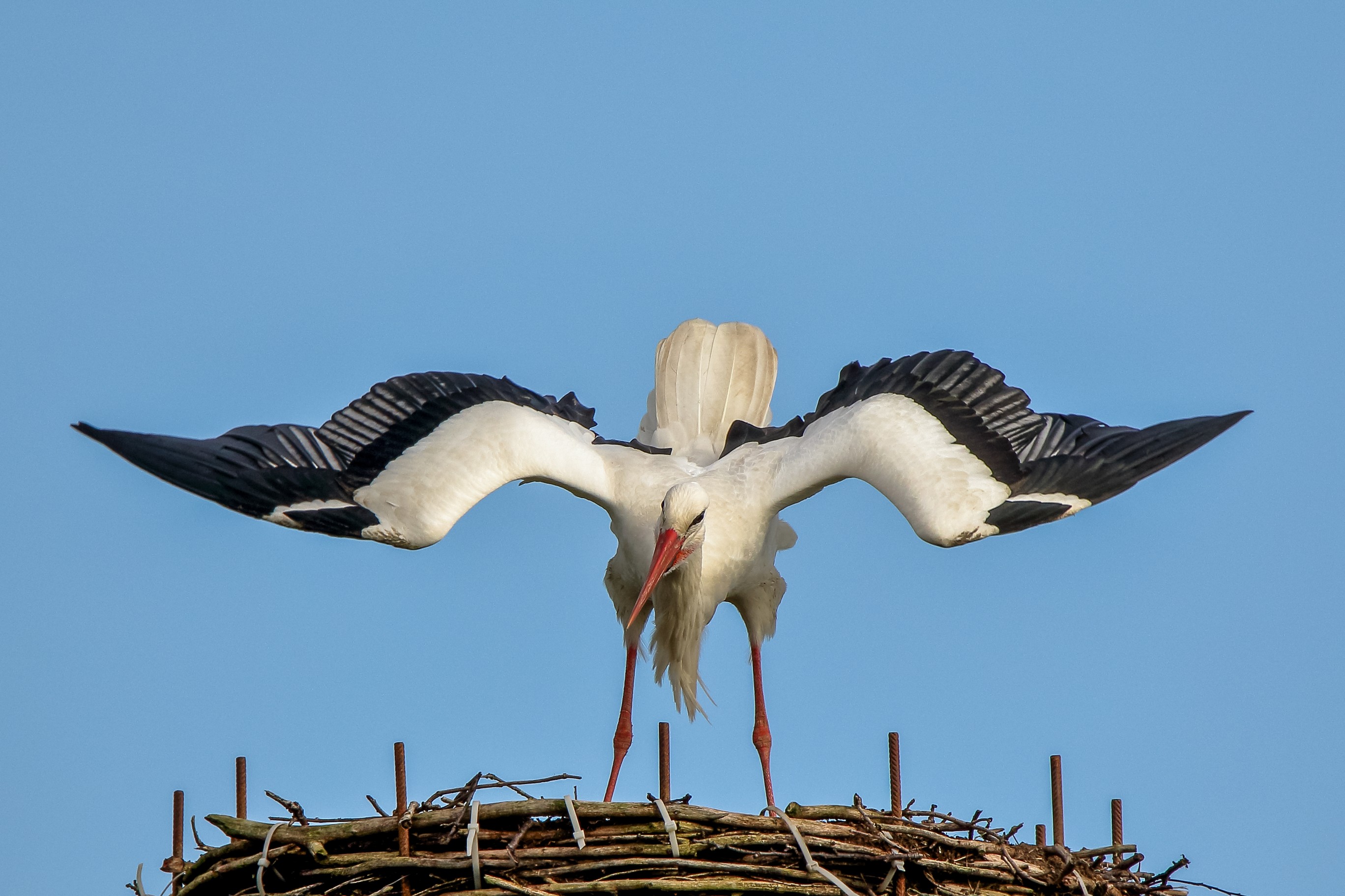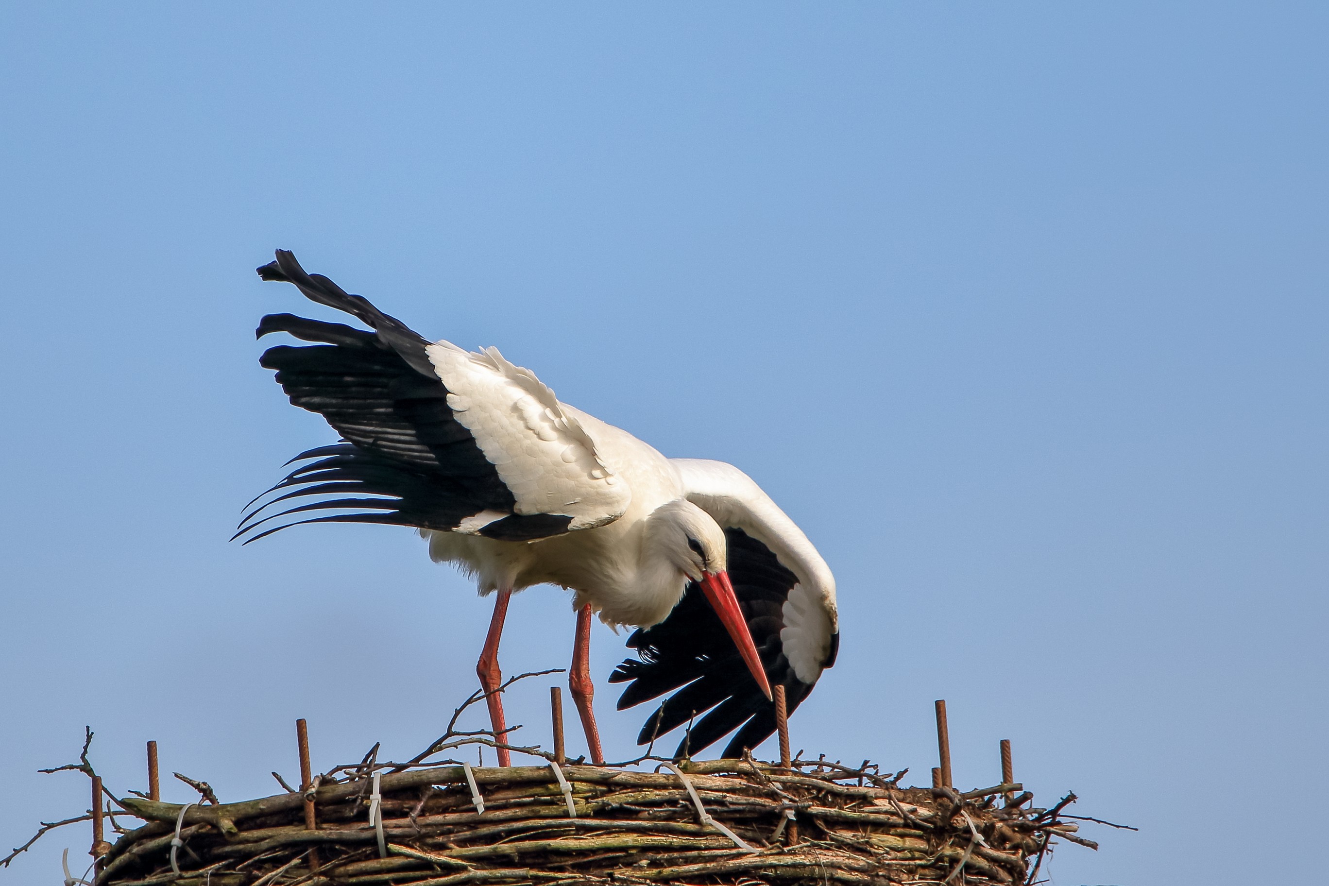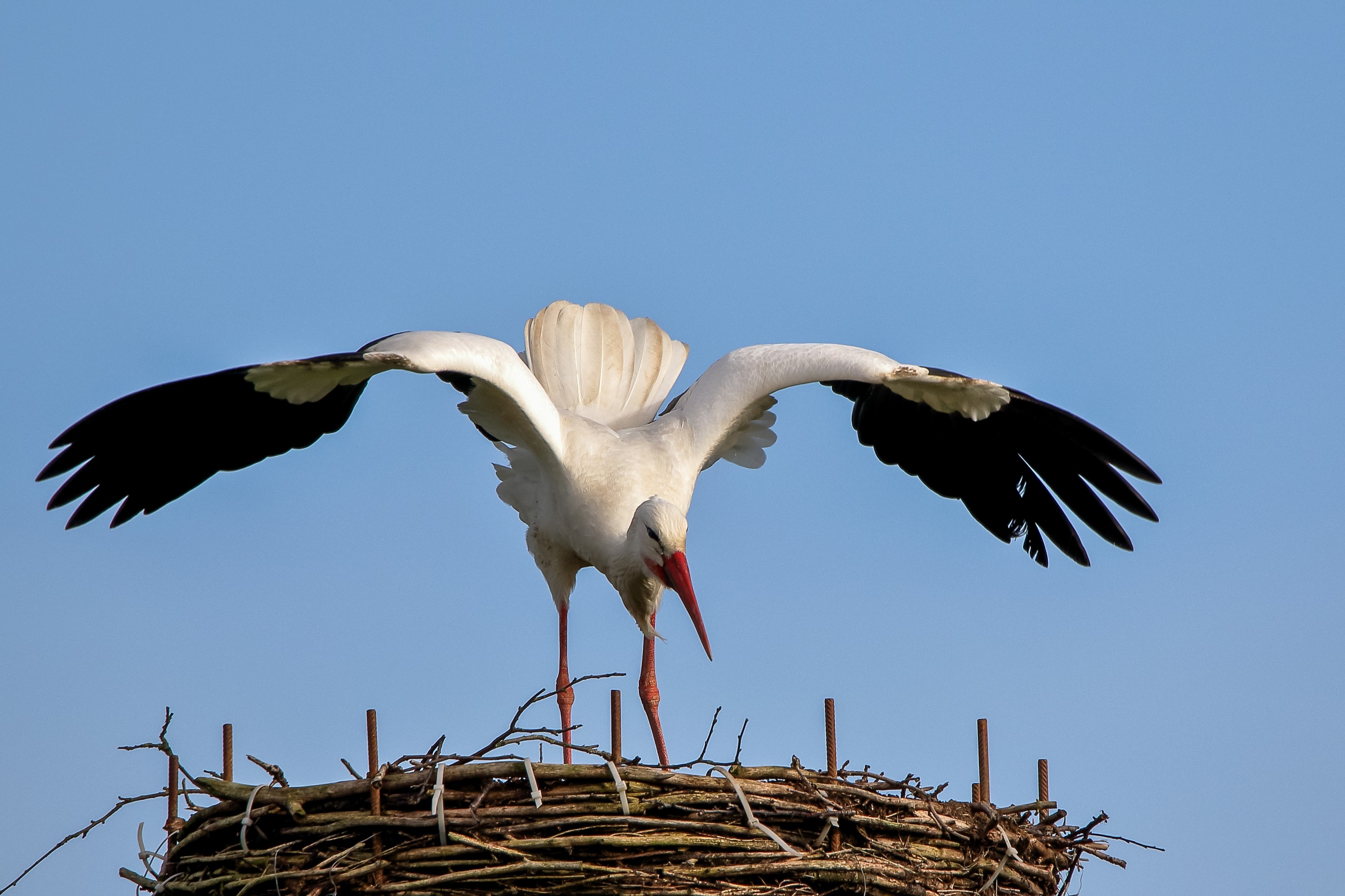 Schon Anfang Februar fanden sich die ersten Störche im Naturschutzgebiet auf der Bislicher Insel ein. Mittlerweile beginnt die Besetzung der begehrten Wohnanlagen des Storchenreiches. Die Verteidigung gegen Fremdbesetzer sowie die Zuneigung zum Partner können nun sehr schön beobachtet werden.