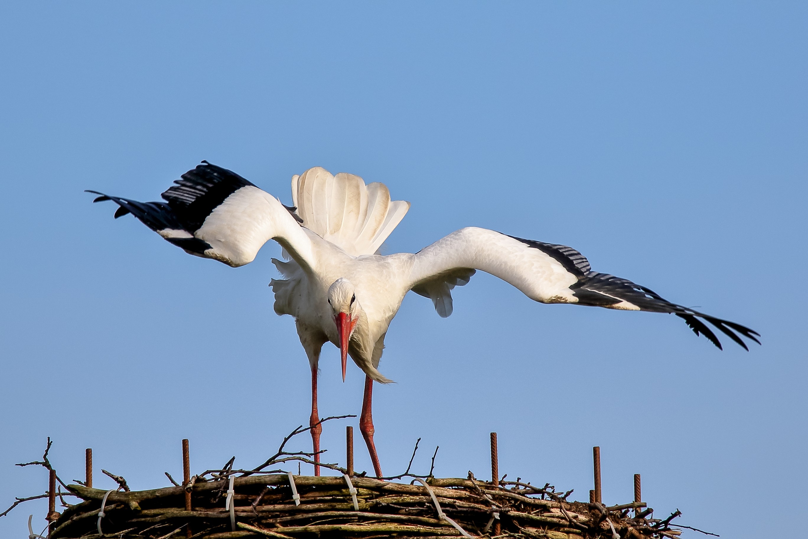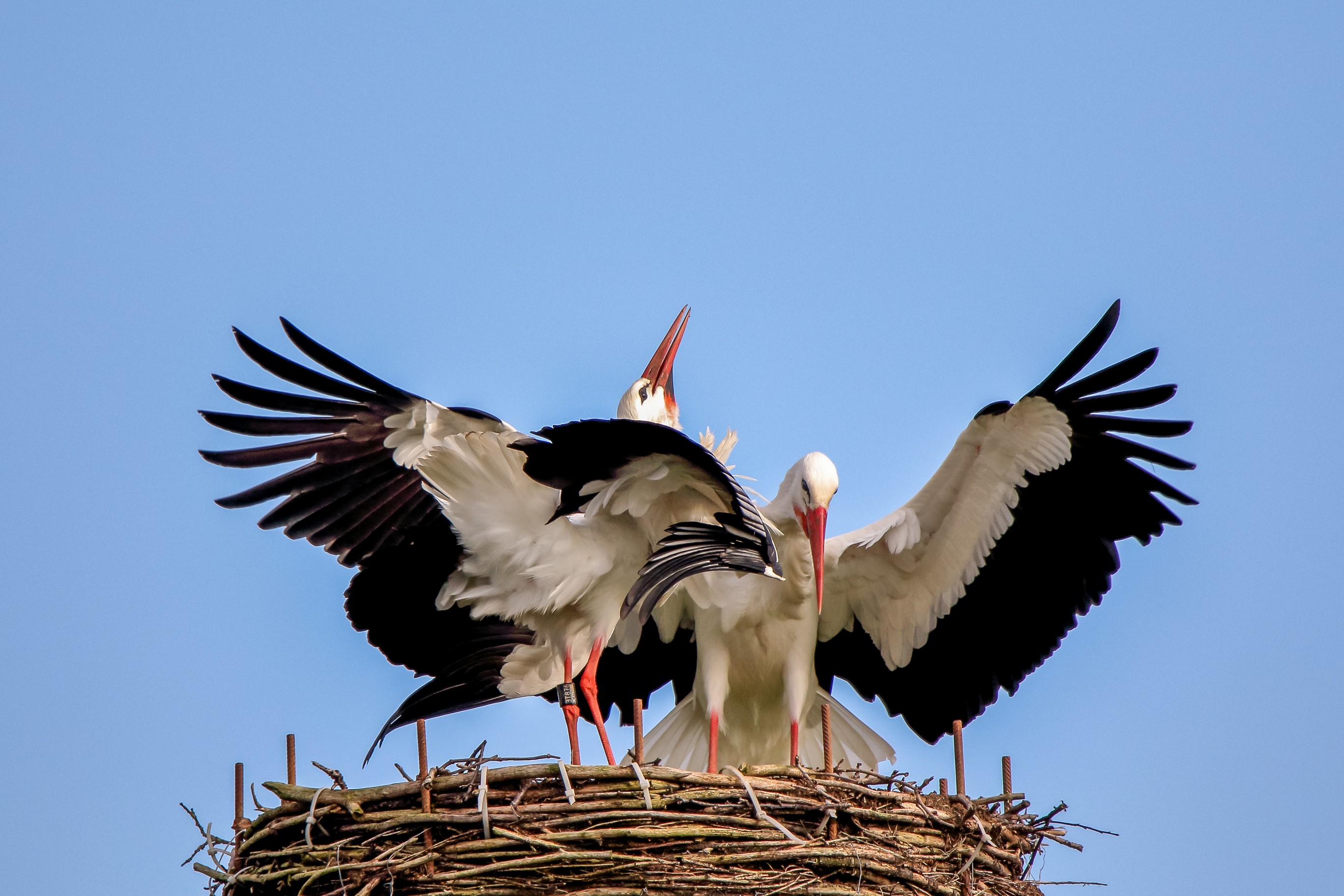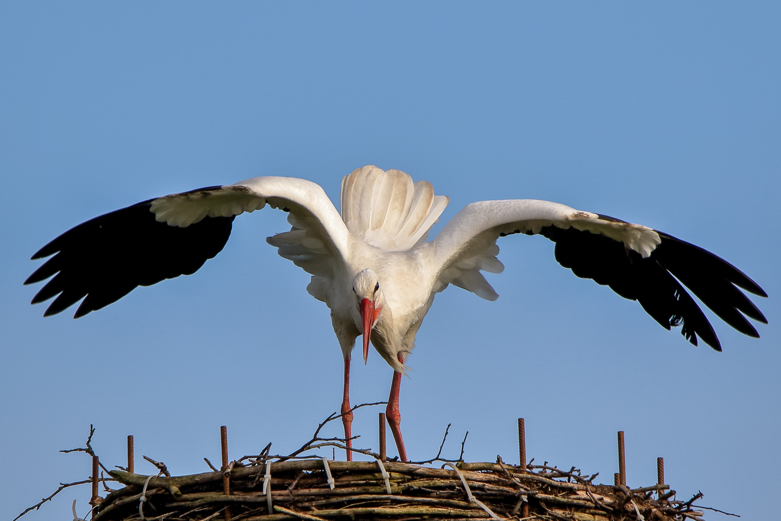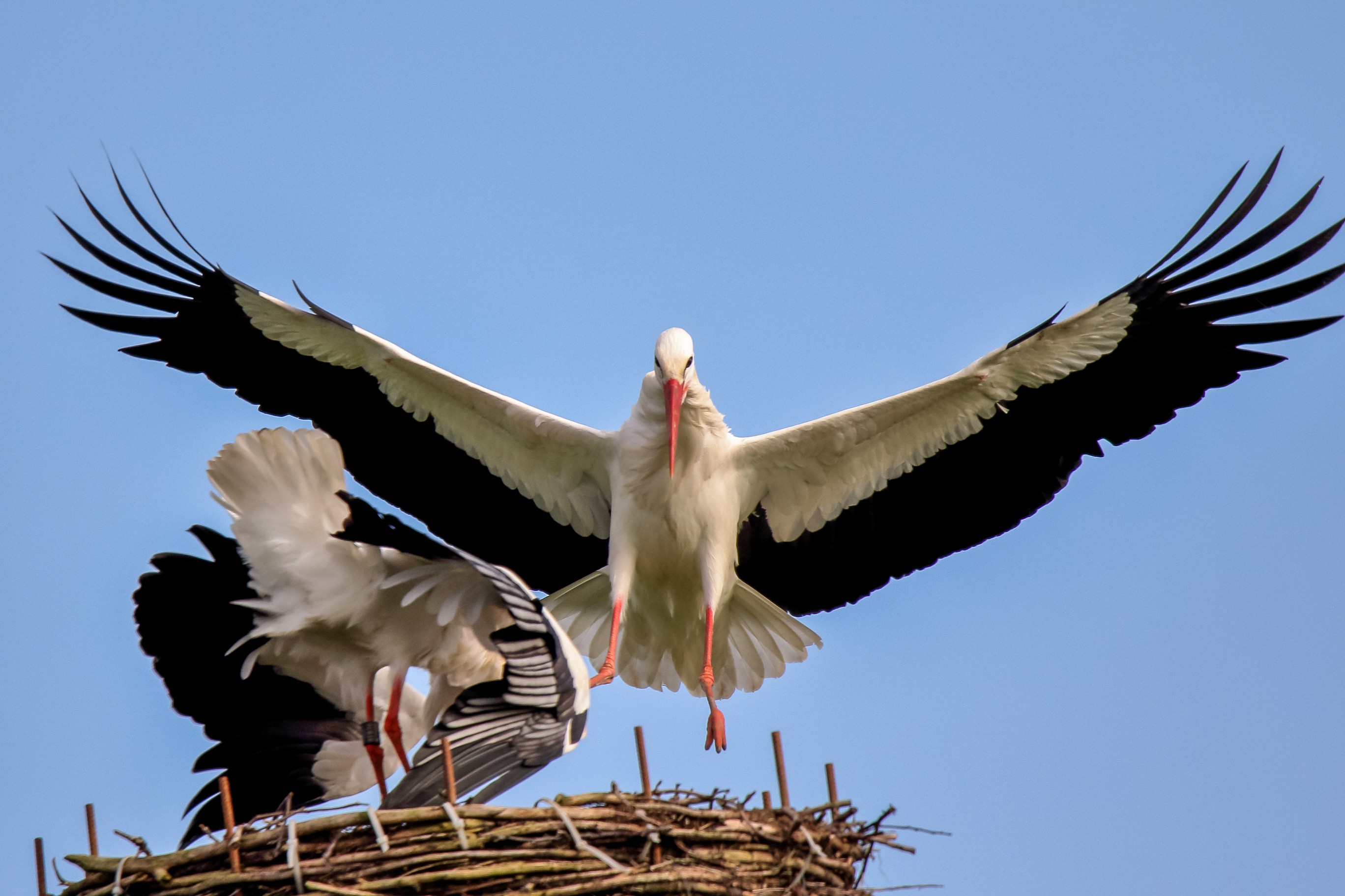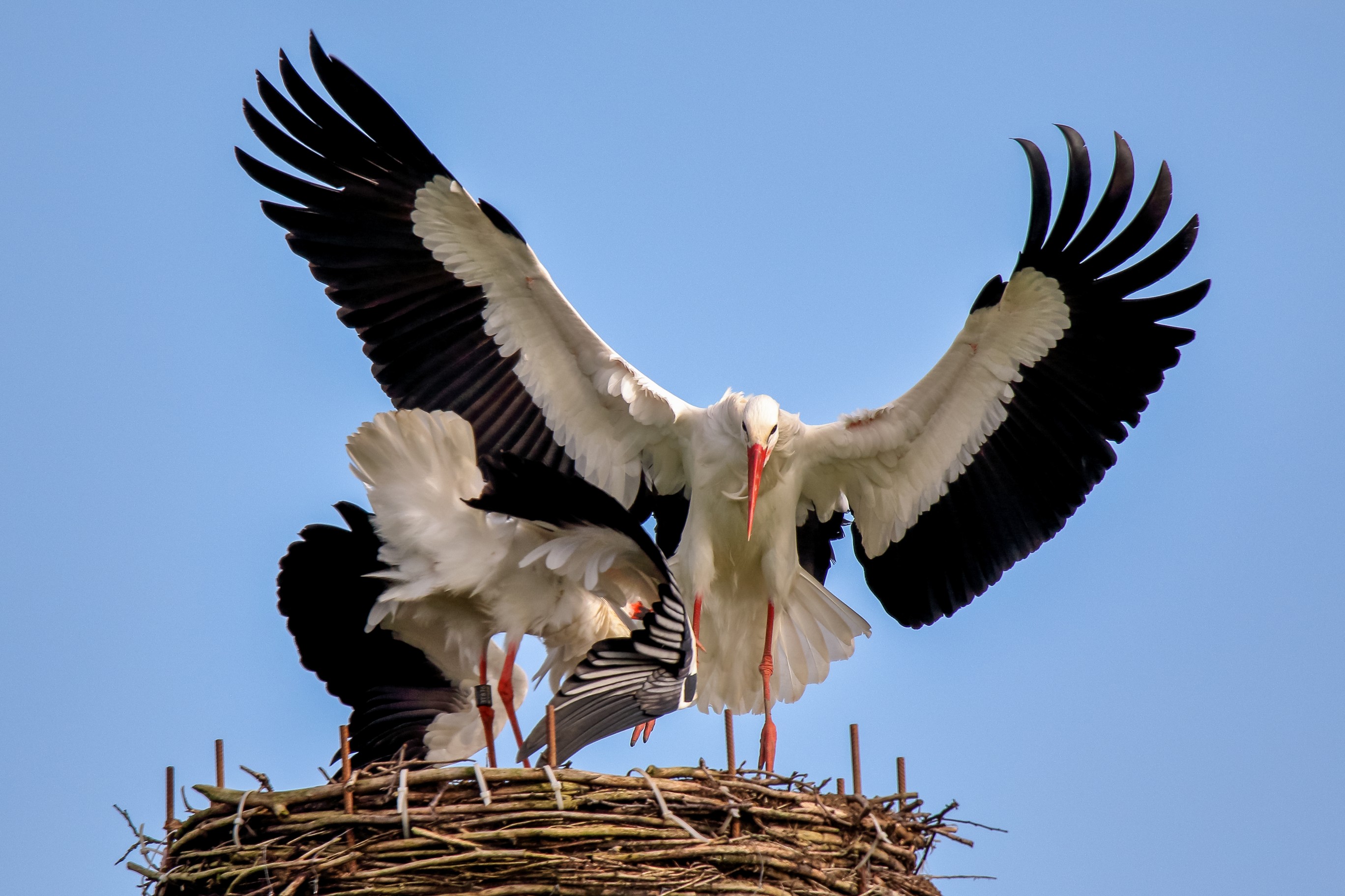 Schon Anfang Februar fanden sich die ersten Störche im Naturschutzgebiet auf der Bislicher Insel ein. Mittlerweile beginnt die Besetzung der begehrten Wohnanlagen des Storchenreiches. Die Verteidigung gegen Fremdbesetzer sowie die Zuneigung zum Partner können nun sehr schön beobachtet werden.