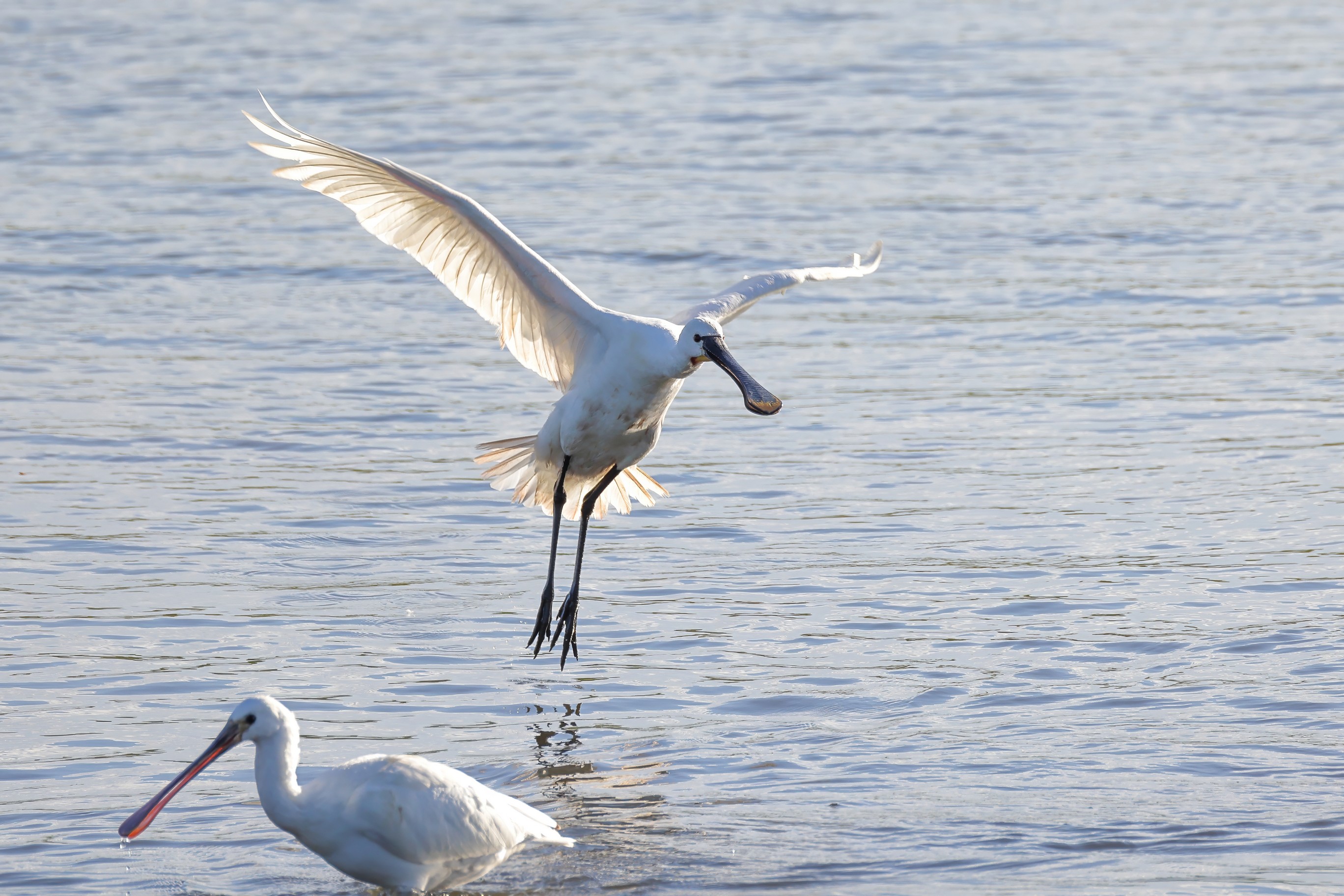 Umsorgte Fütterung des Junglöfflers - Rheingold Natur- und Tierfotografie