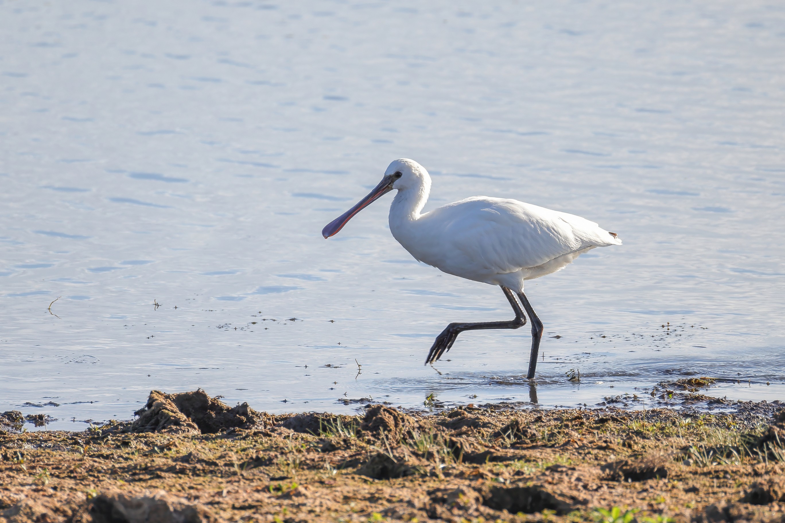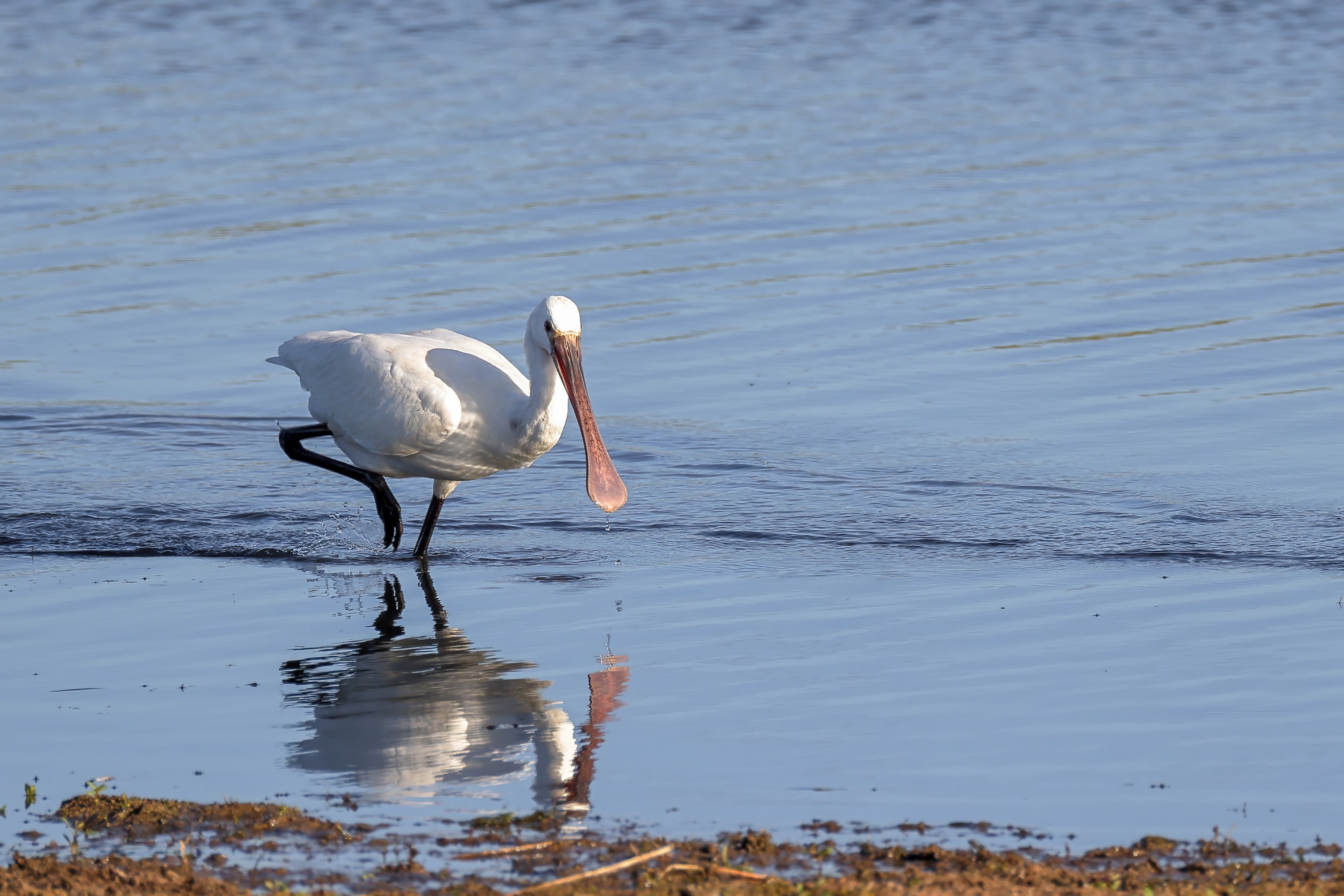 Löfflermutter begleitet ihren Nachwuchs