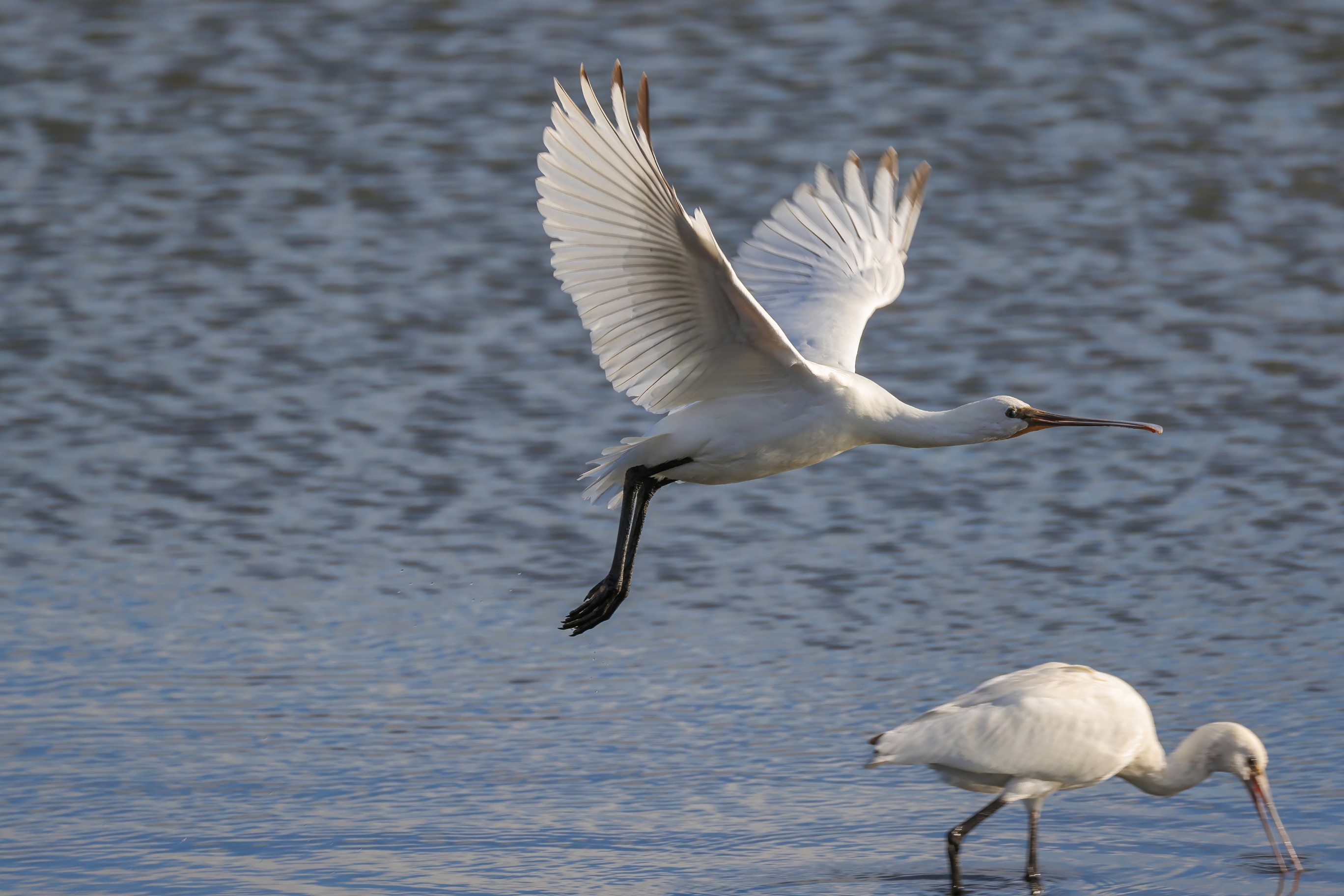 Abendlicher Rundflug der jungen Löffler