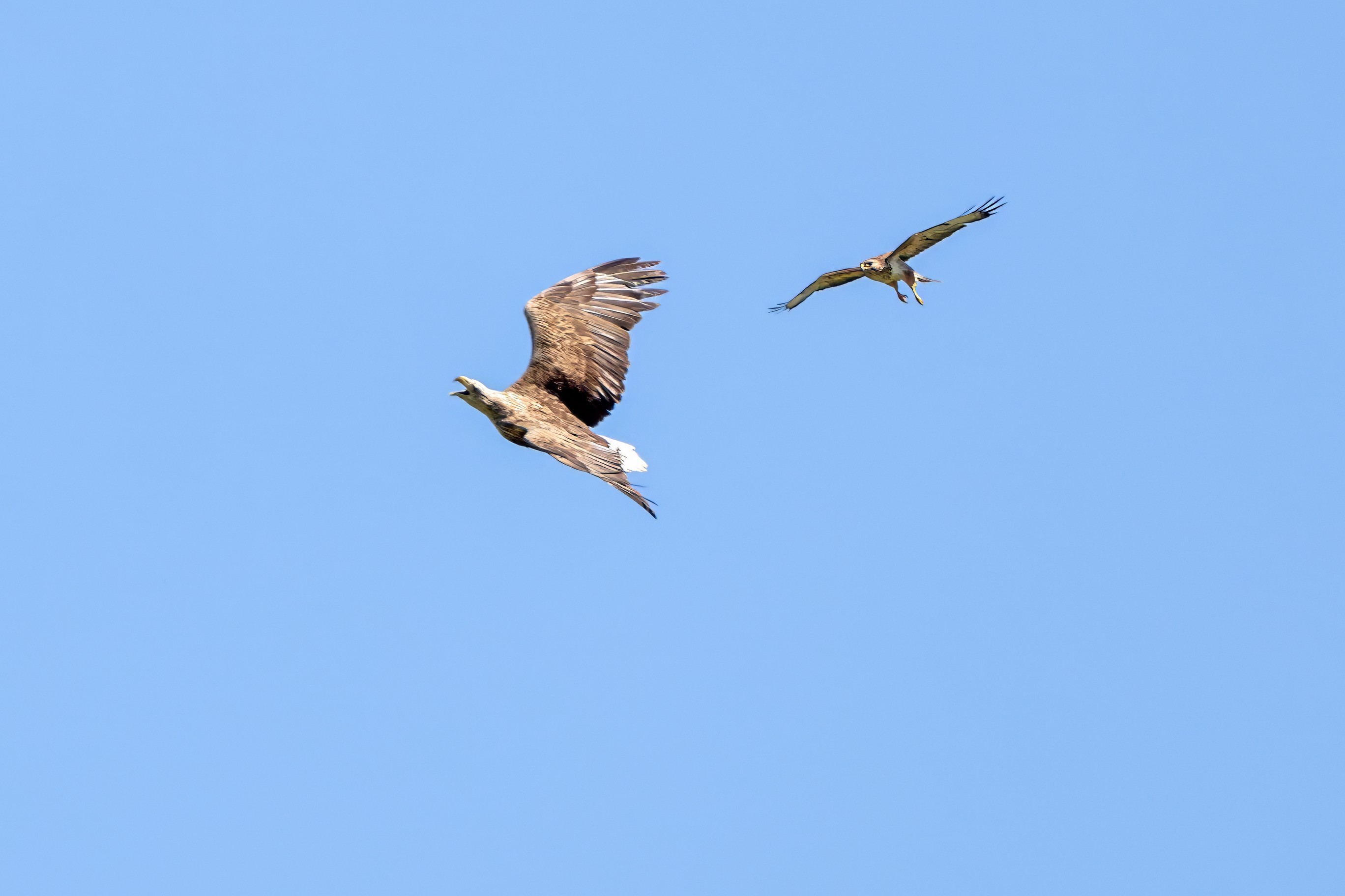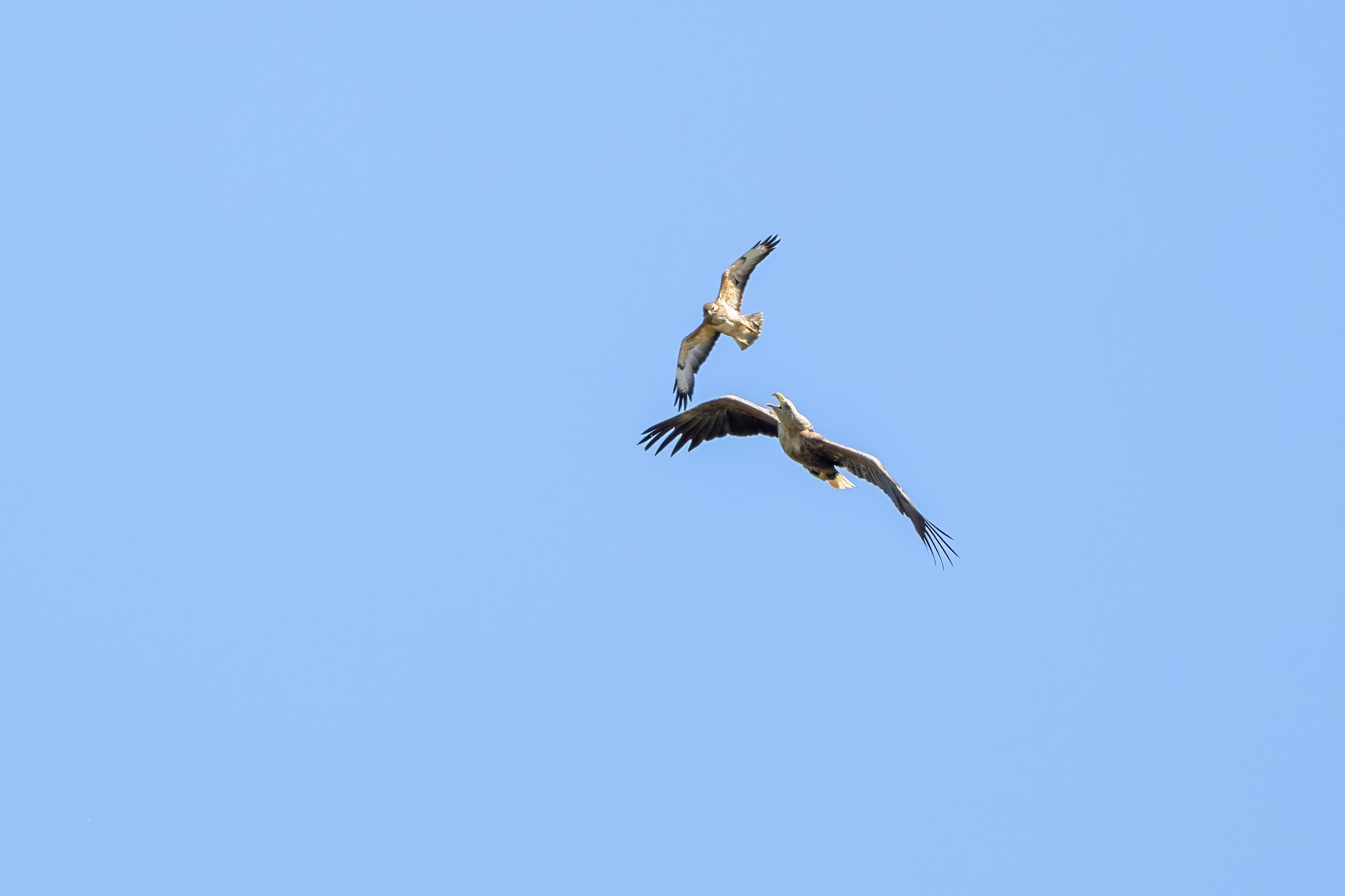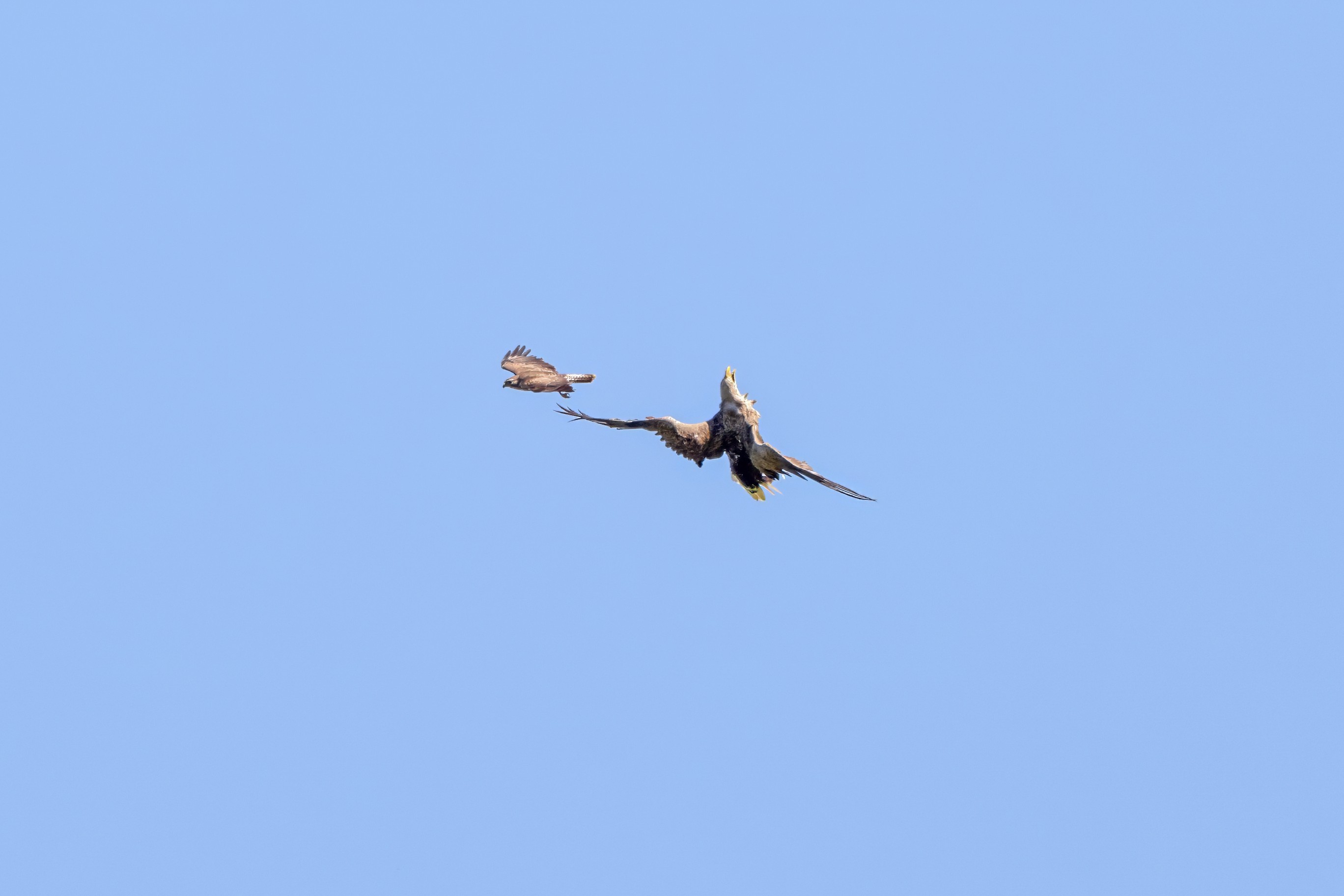 Rohrweihe und junger Rotmilan