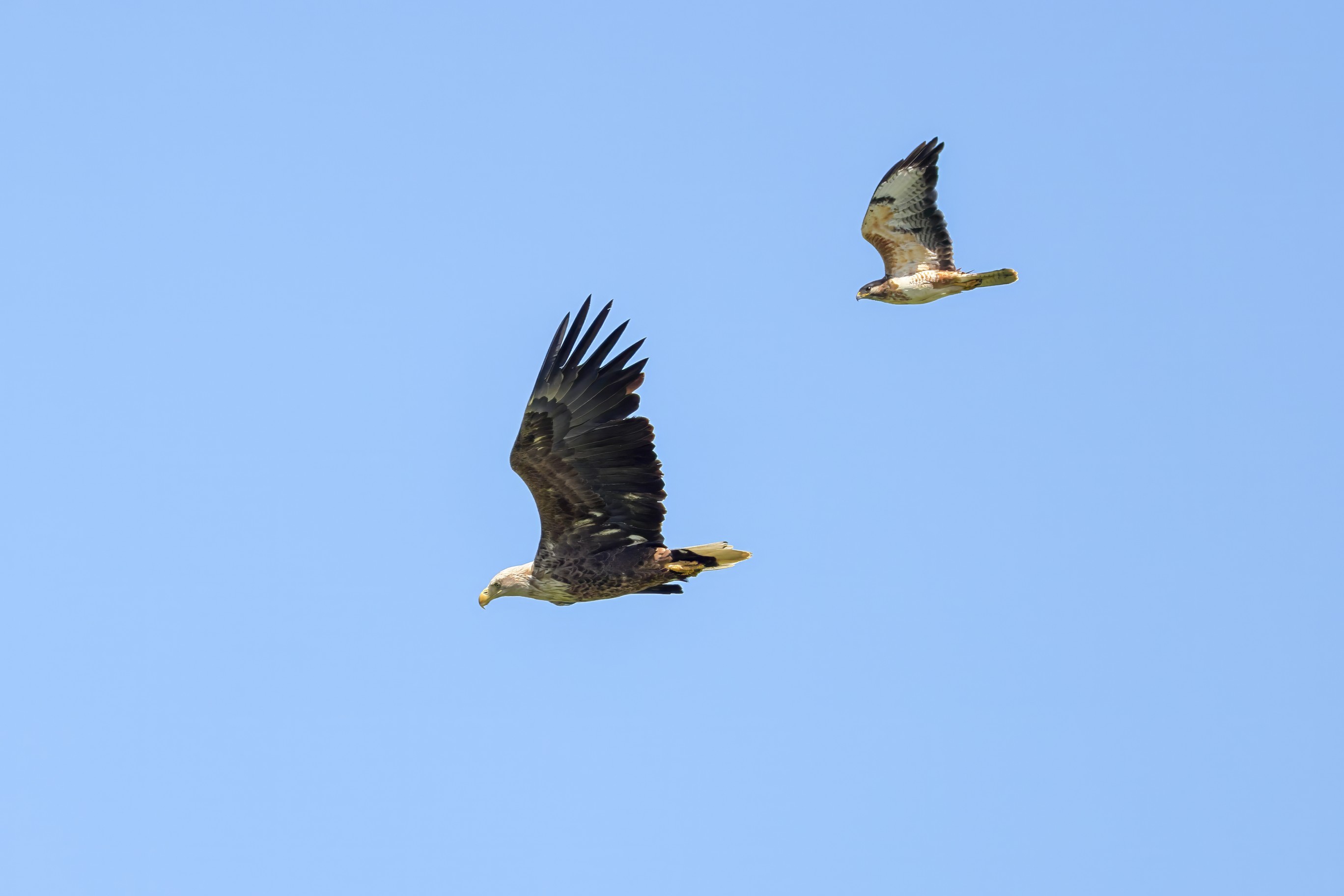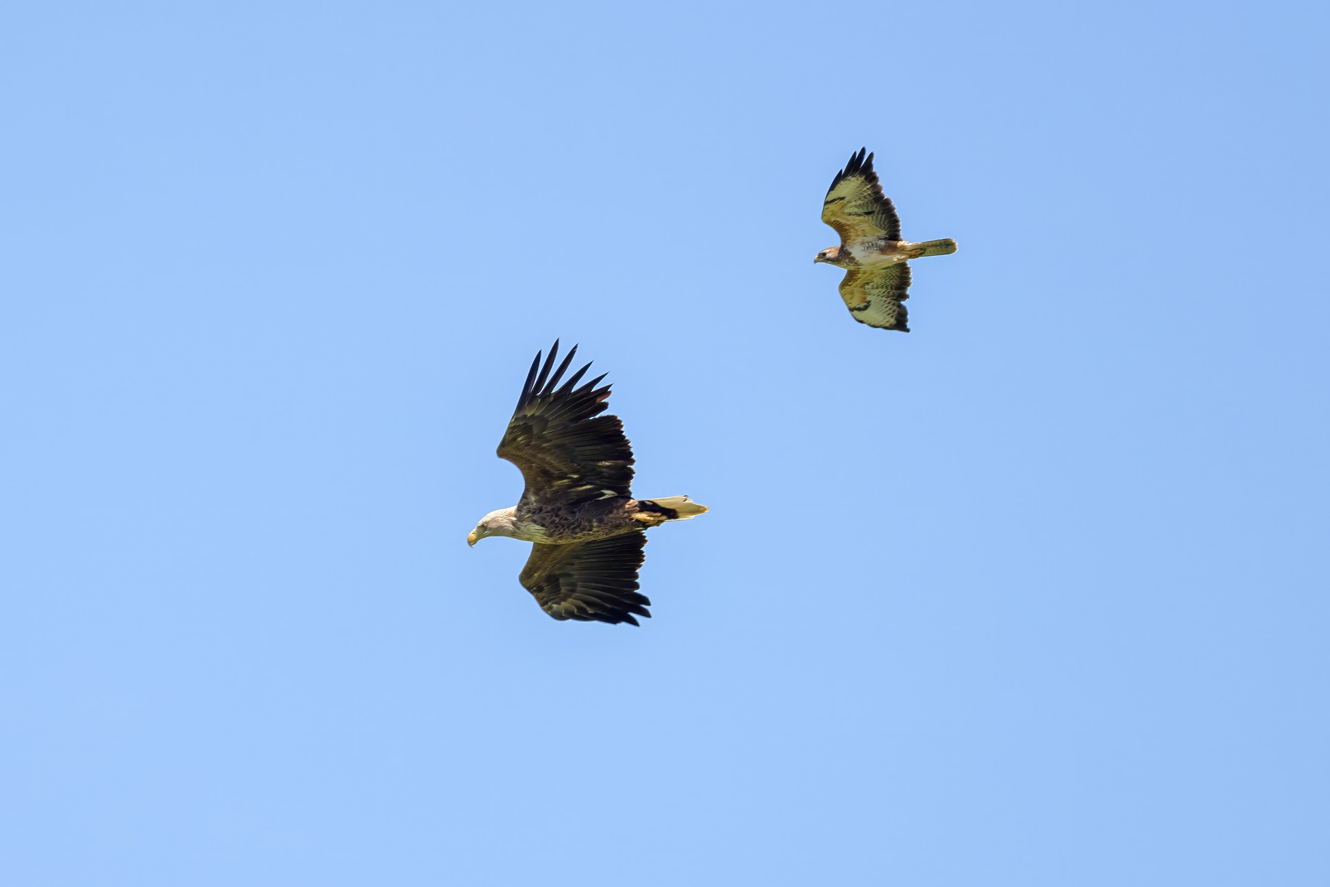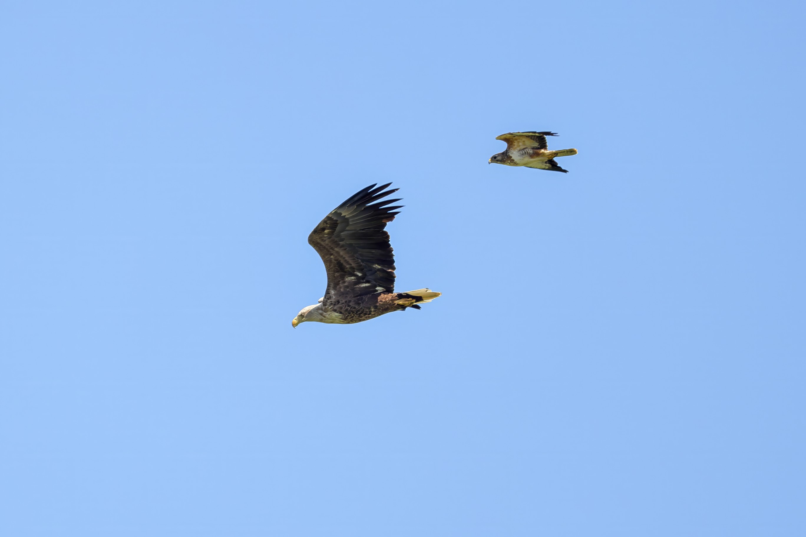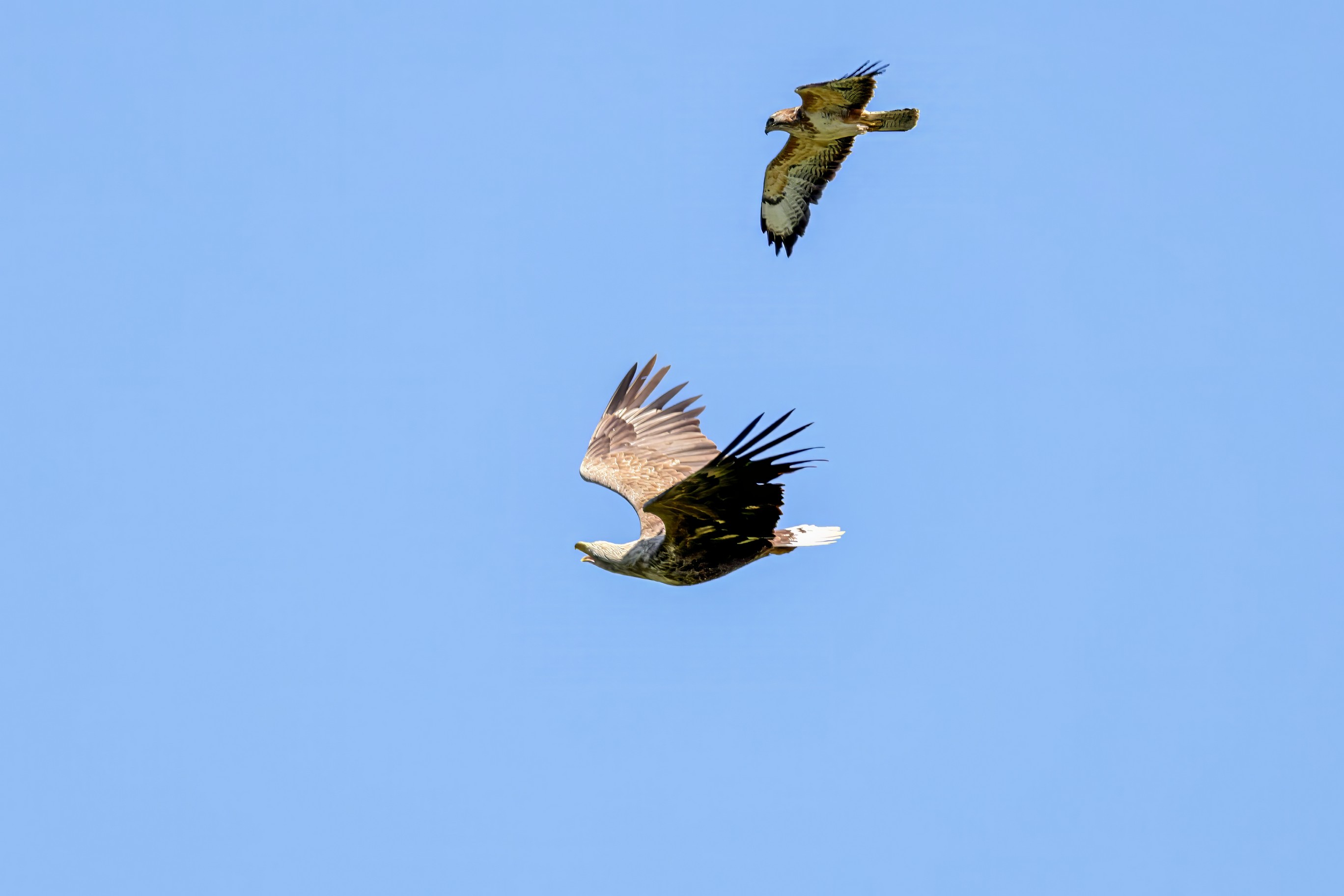 Rohrweihe und junger Rotmilan