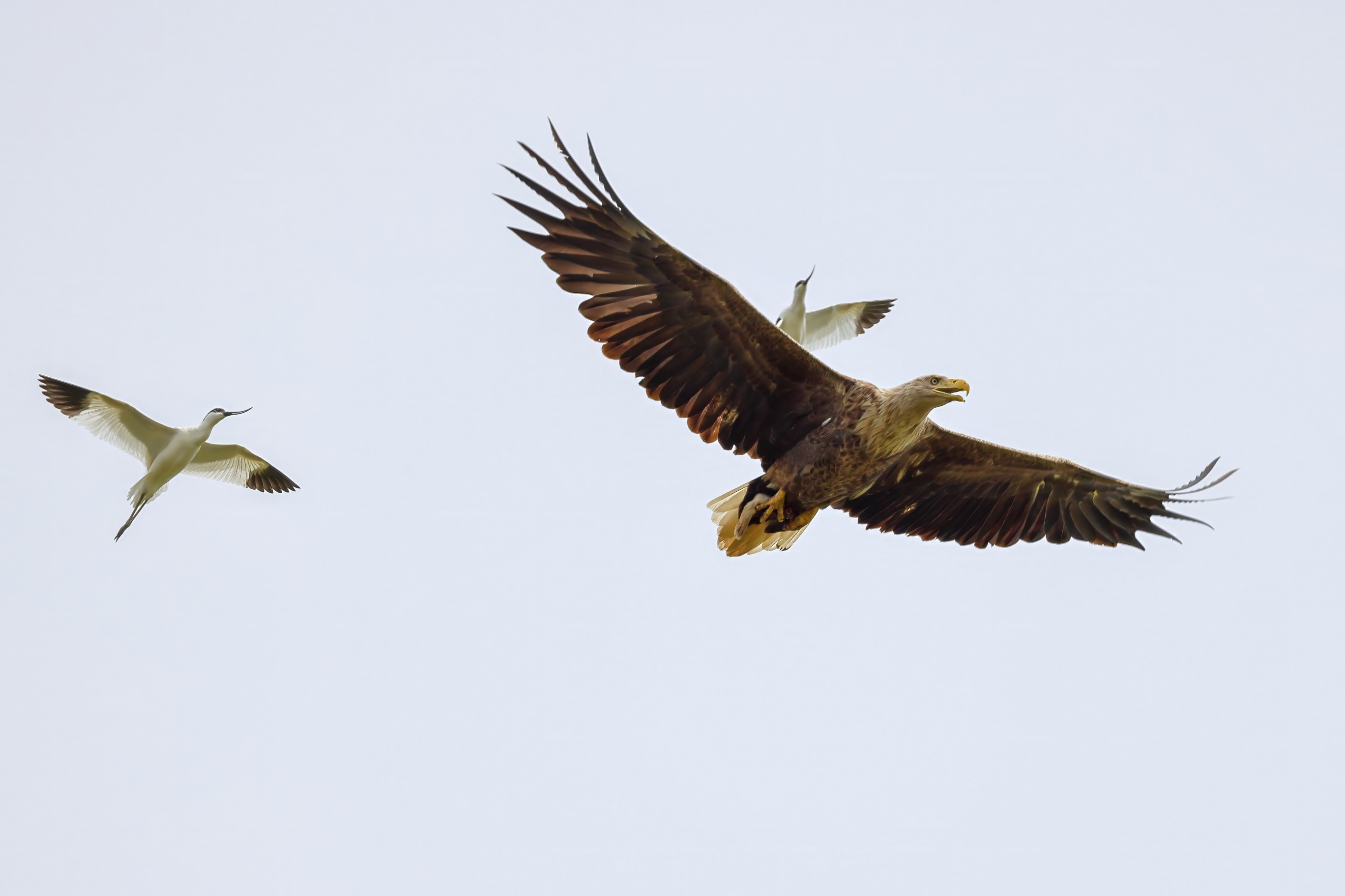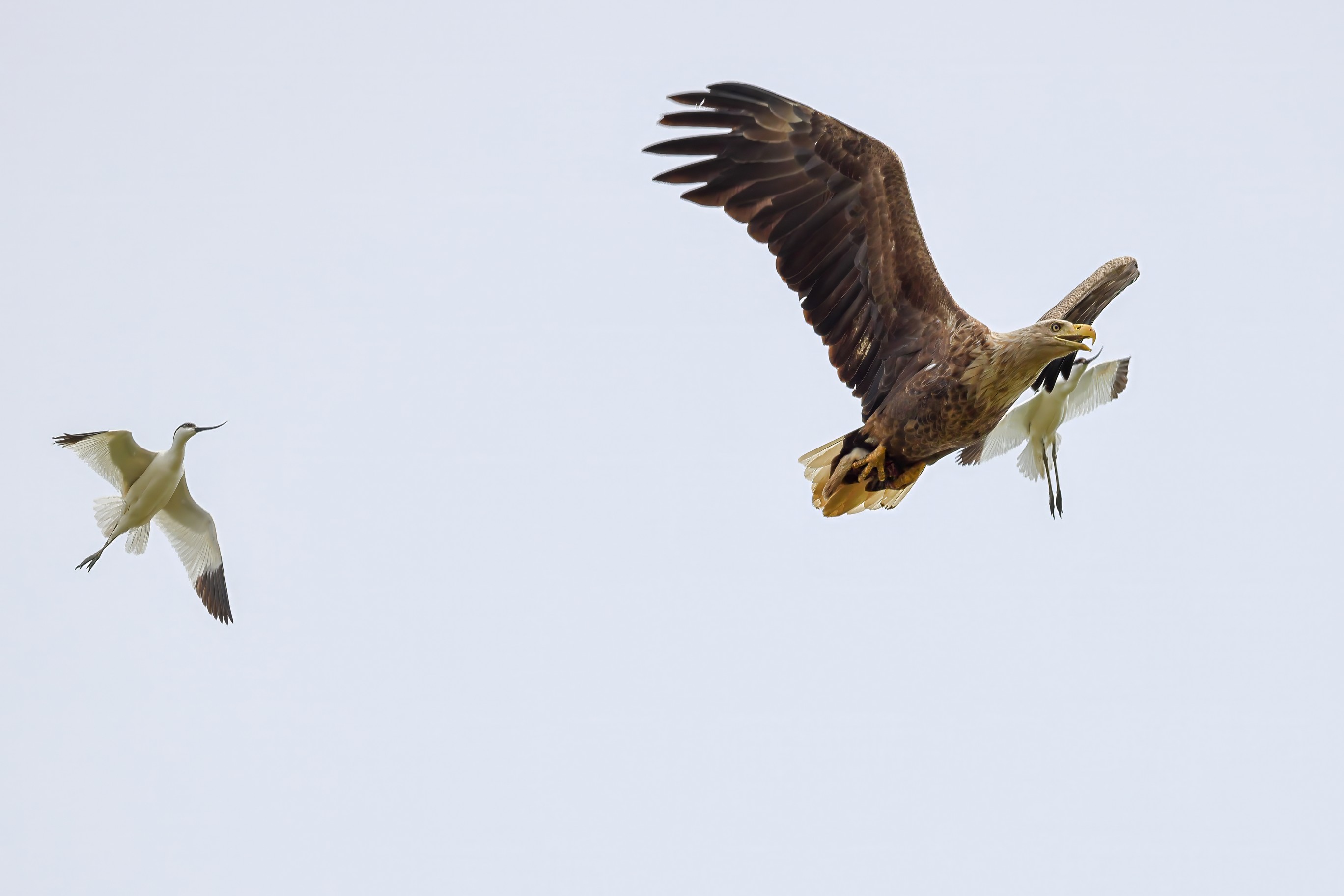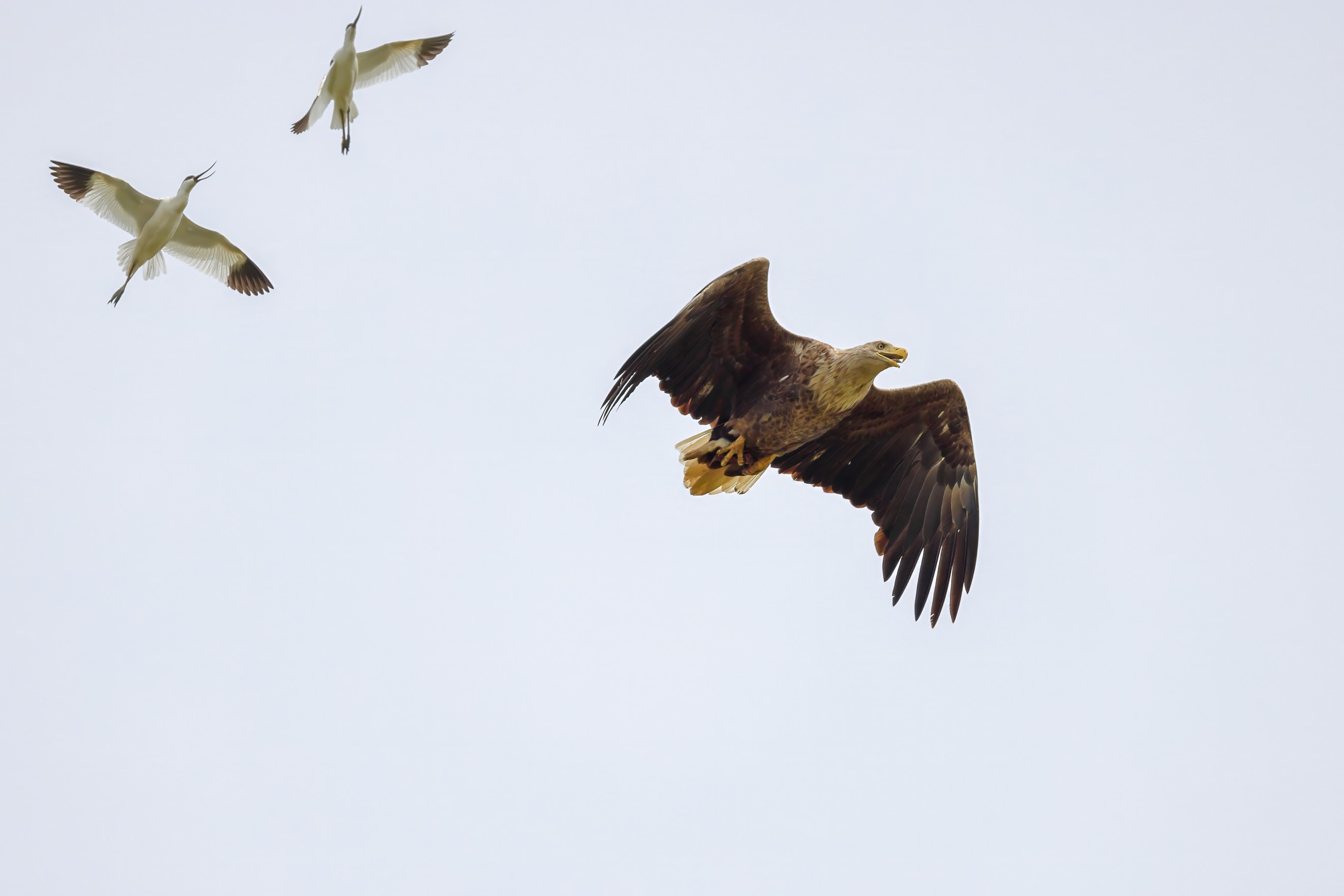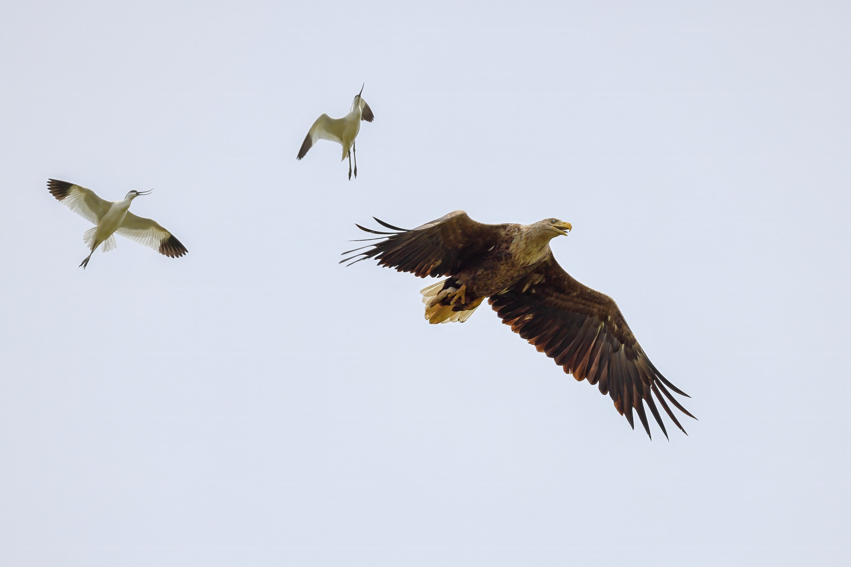 Beuteflüge und attackierende Säbelschnäbler