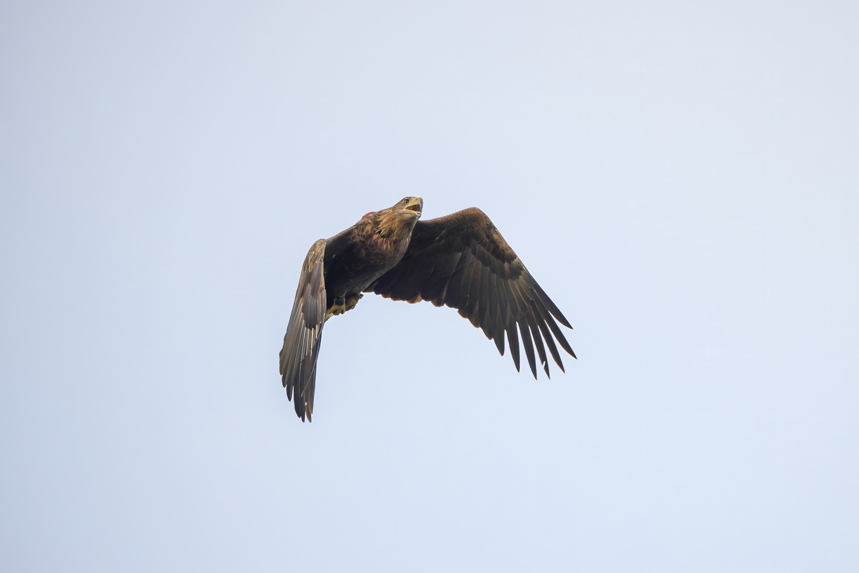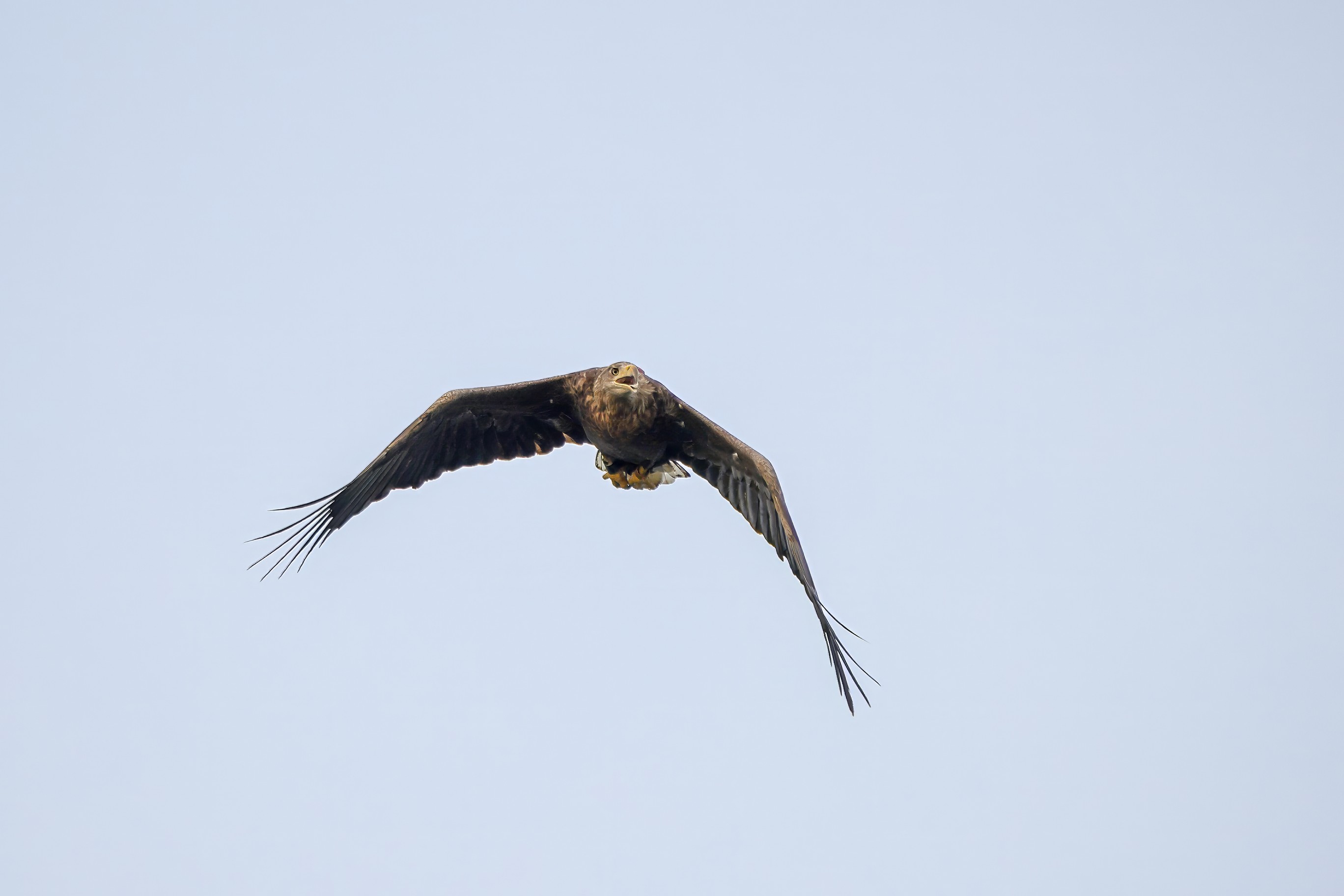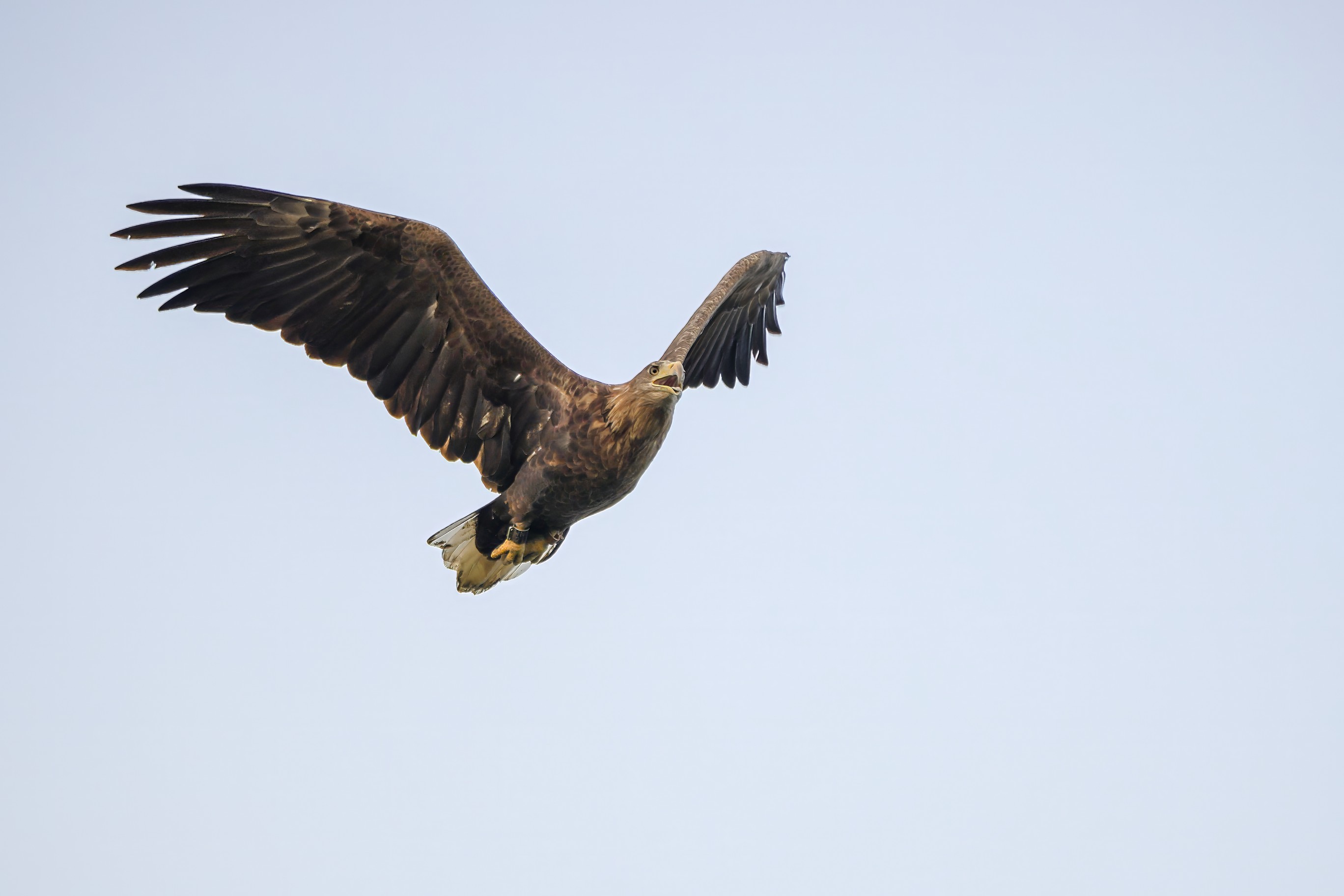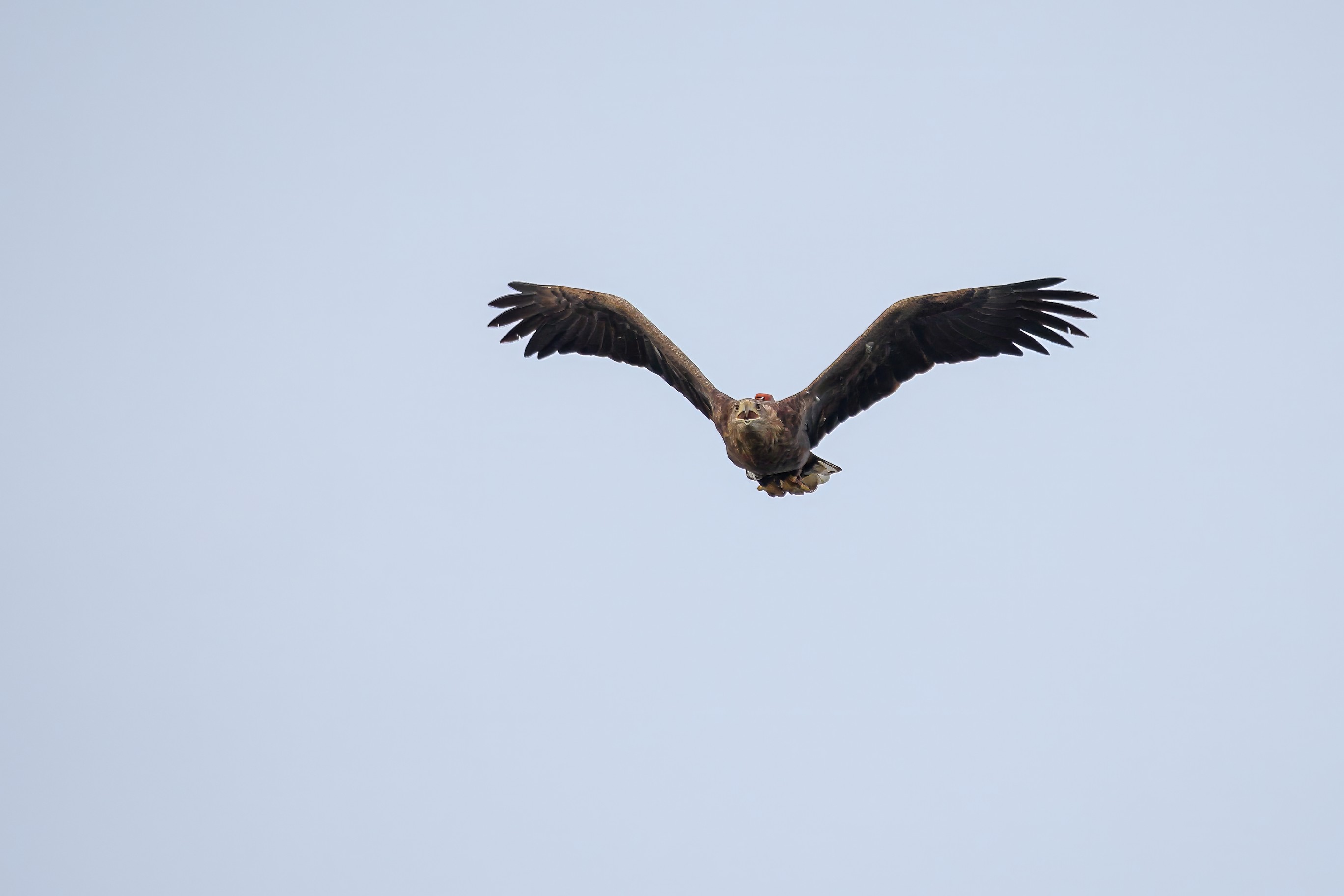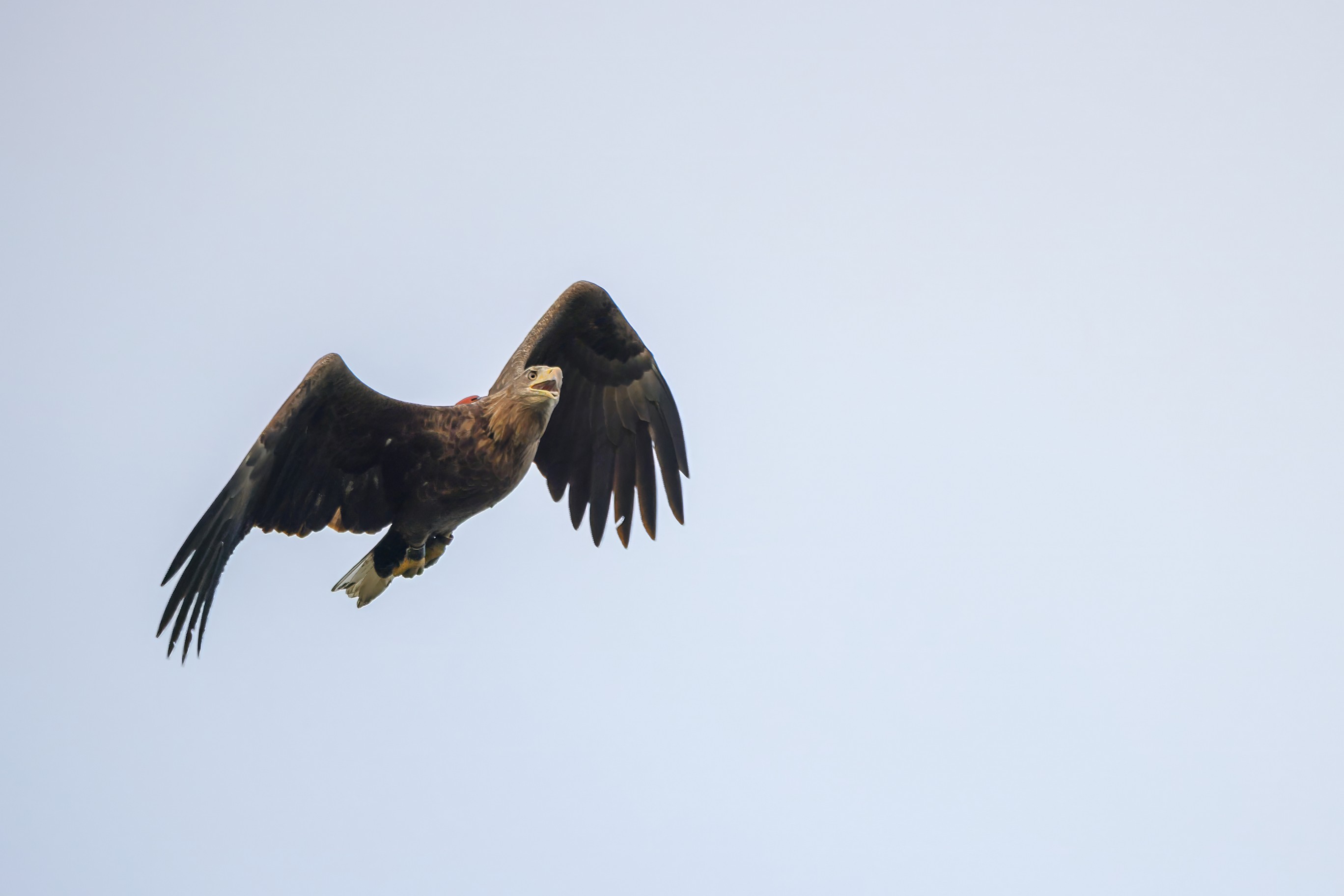 Ende Juni konnte das Seeadlerweibchen mit ihrem Nachwuchs gemeinsam von der Beobachtungshütte III, zur linken Seite in dem bevorzugten Baum am Gewässerrand, beobachtet werden. Zu dieser Zeit zeigte sich schon ein neuer männlicher Seeadler, der beidseitig beringt und mit einer rötlichen Besenderung ausgestattet und wohl dem dritten Kalenderjahres zuzuordnen ist. Anfänglich wurde er vom Seeadlerweibchen permanent verjagt. Er ließ sich über Wochen nicht davon beeindrucken und blieb im Habitat. Seit Mitte August konnte das Seeadlerweib und der neue Verehrer sehr häufig im gleichen Baum auf einer Warte sitzend und bei gemeinsamen Flügen beobachtet werden. Das neue Seeadlermännchen stammt nach mir bekannten Informationen aus dem Bereich Oostvaardersplassen Nationalpark Nieuw Land in den Niederlanden. Ab dem vierten bis fünften Lebensjahr setzt die Geschlechtsreife bei den Seeadlern ein und lässt somit auf eine Paarbildung zwischen den beiden hoffen, welches die Fortführung des Habitats auf der Bislicher Insel mit weiteren Reproduktionen der Seeadler gewährleisten könnte.