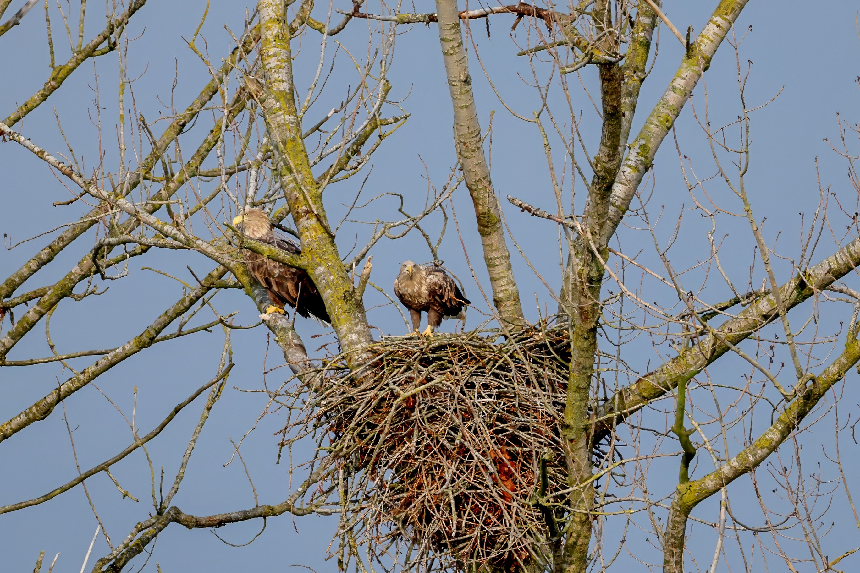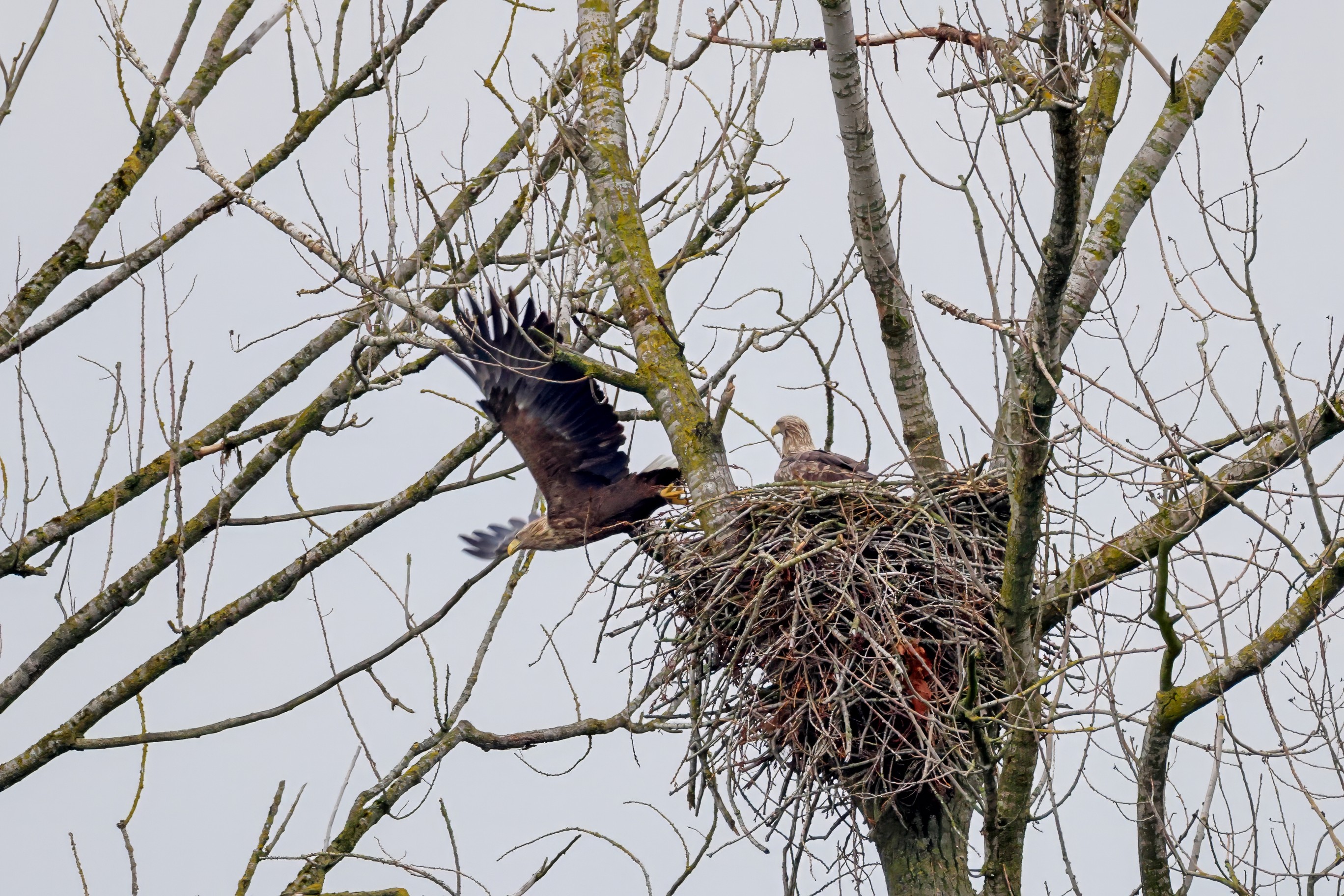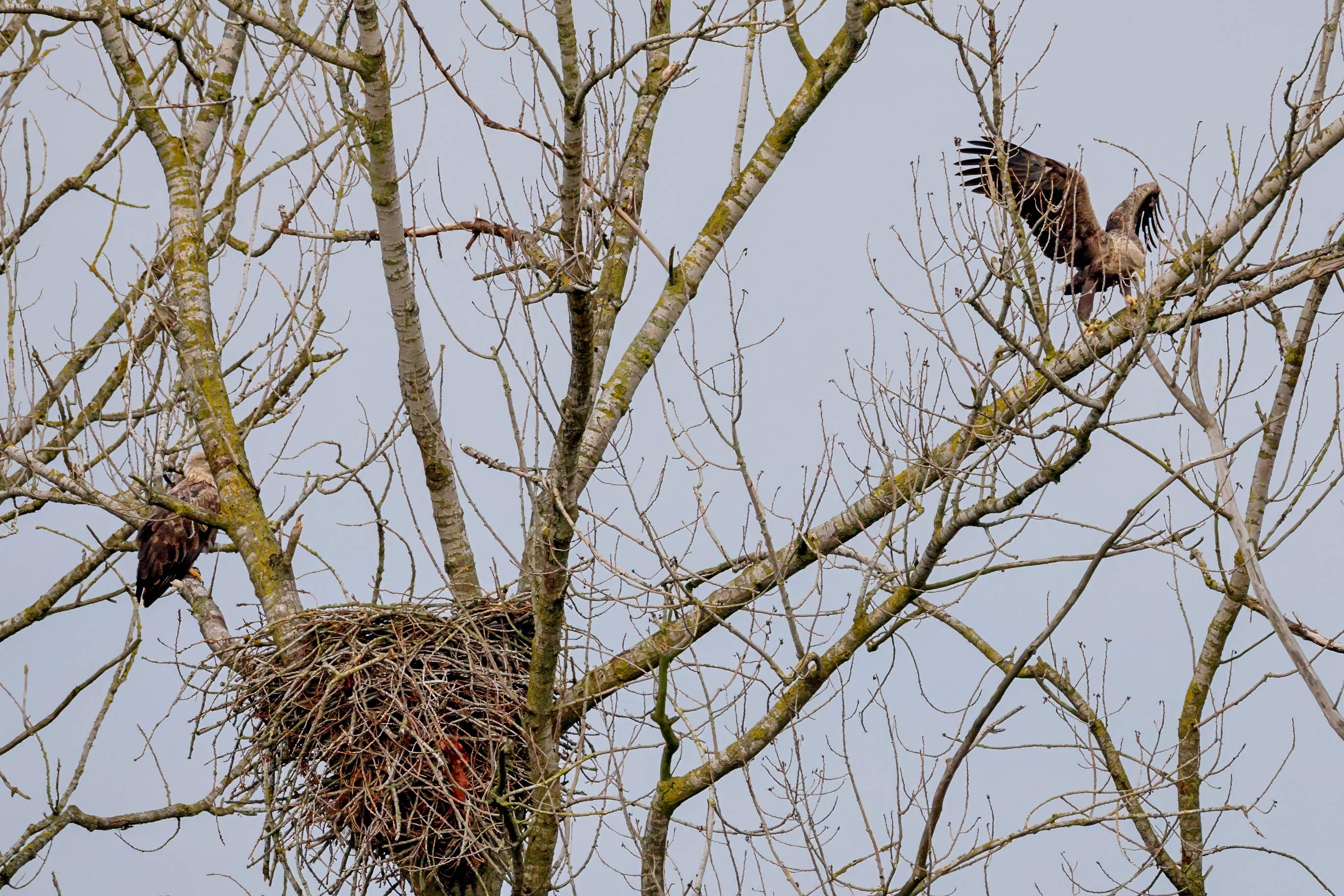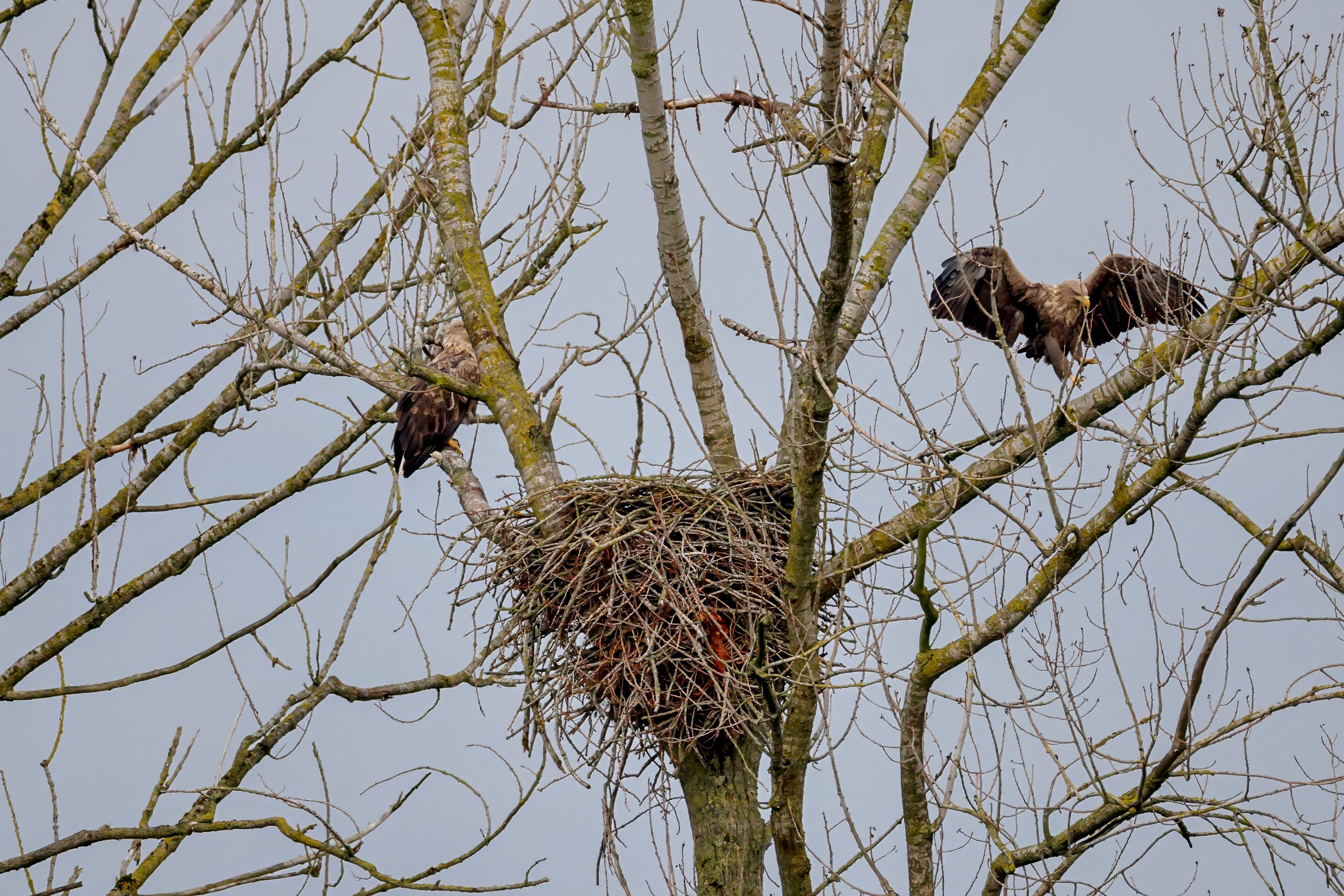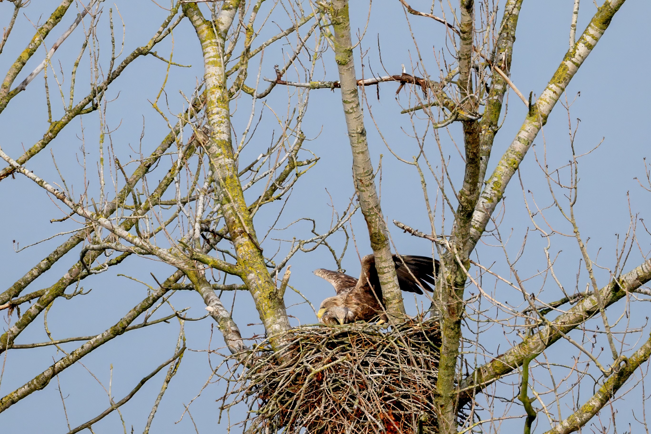 Währenddessen zeigen die adulten Seeadler im November eindrucksvoll ihre feste Partnerschaft. Gemeinsam arbeiten sie bereits an der Ausbesserung ihres Horstes – eine sorgfältige Vorbereitung auf das kommende Jahr.