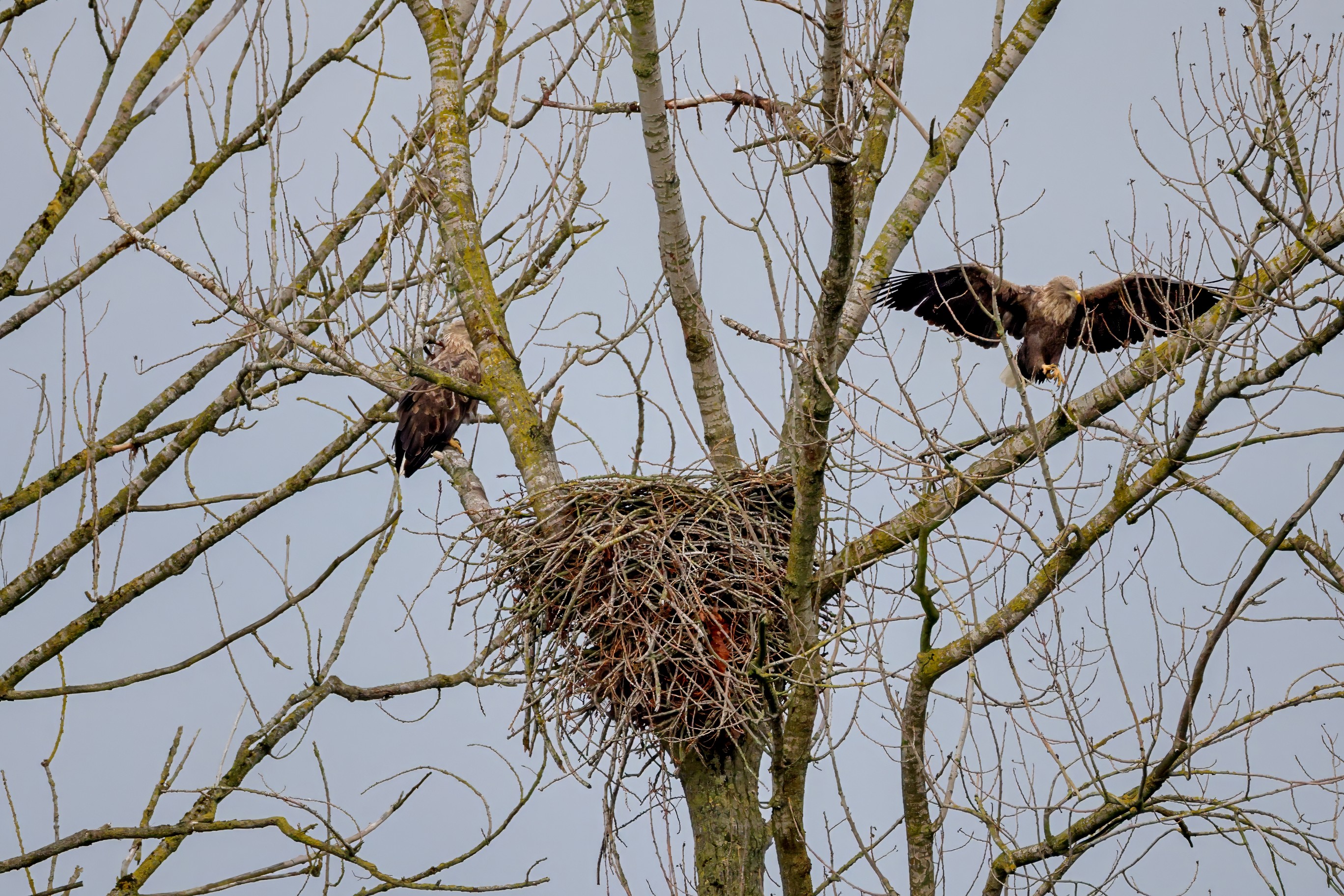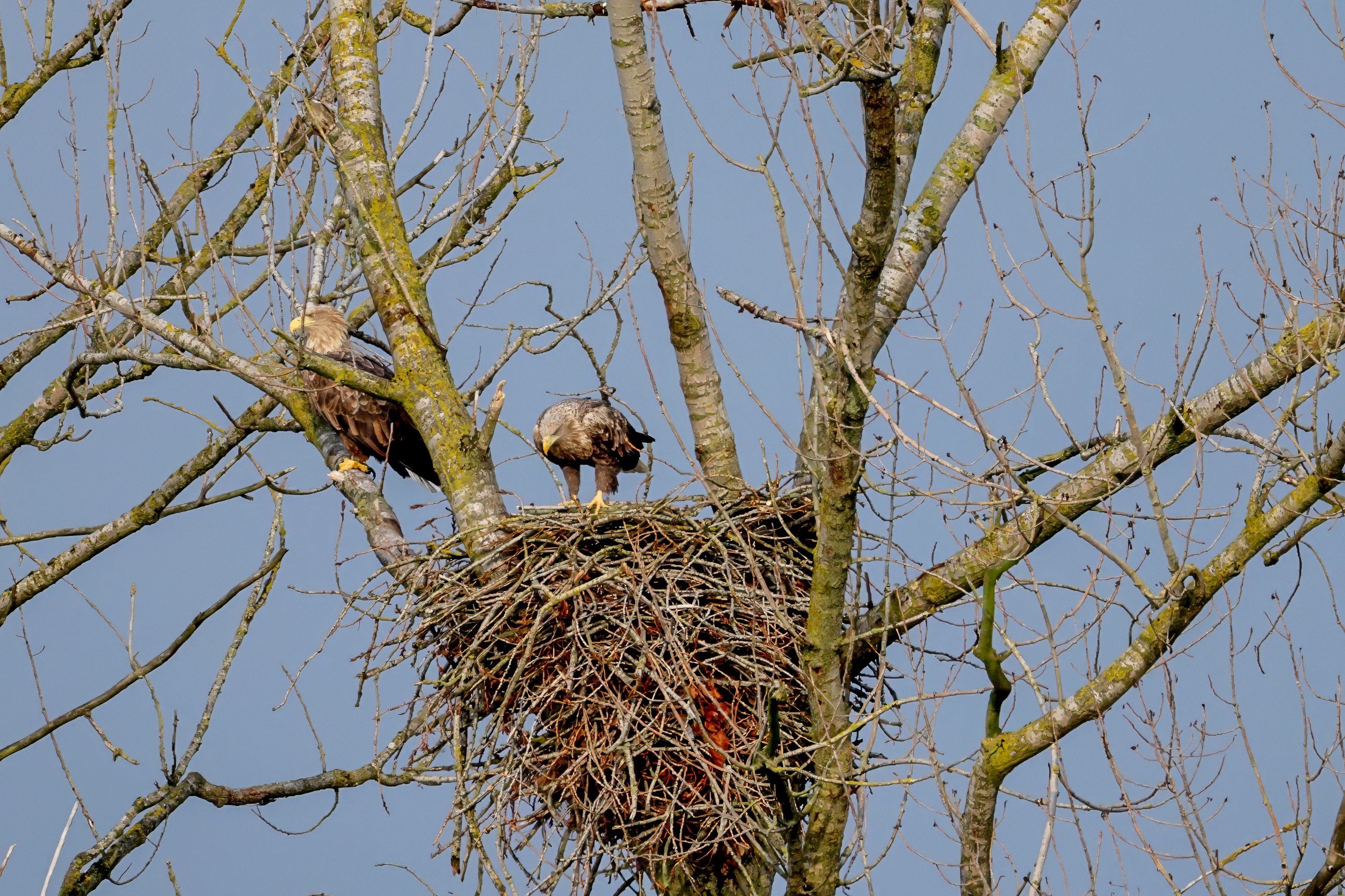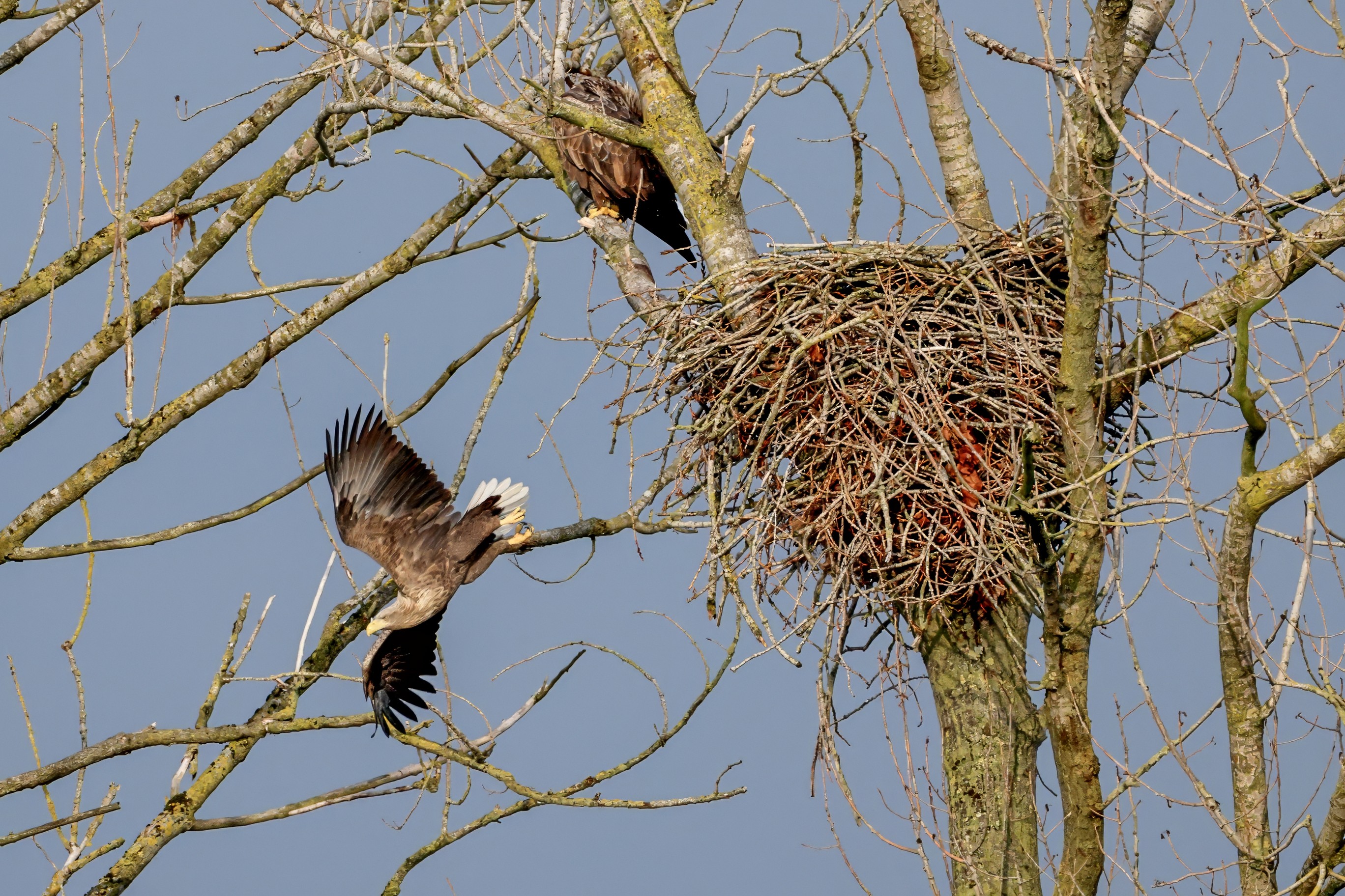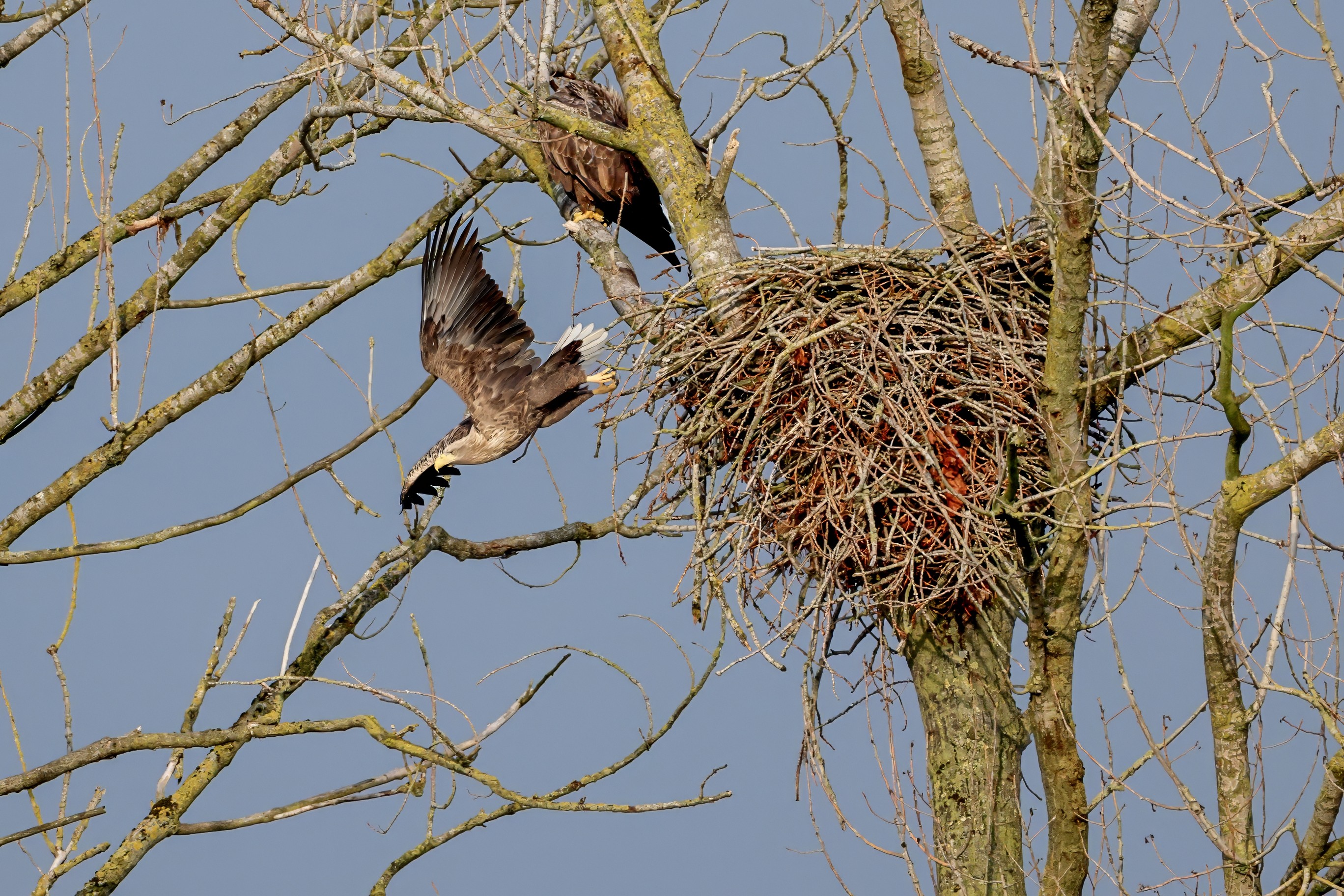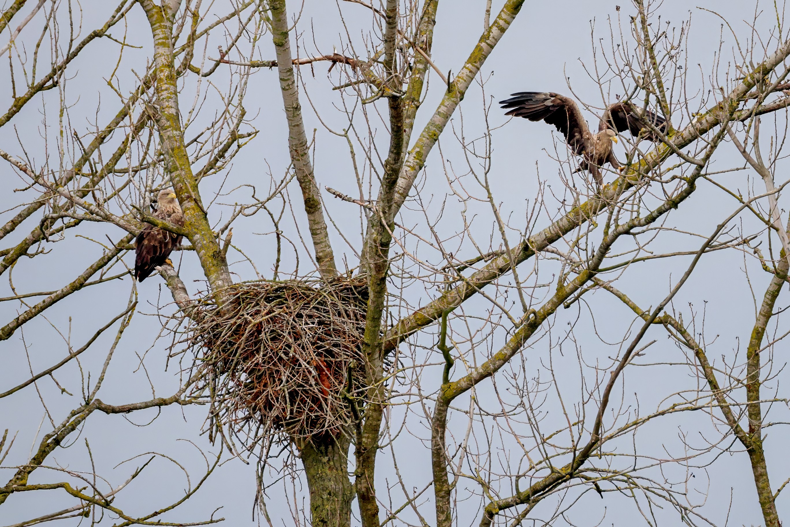 Währenddessen zeigen die adulten Seeadler im November eindrucksvoll ihre feste Partnerschaft. Gemeinsam arbeiten sie bereits an der Ausbesserung ihres Horstes – eine sorgfältige Vorbereitung auf das kommende Jahr.