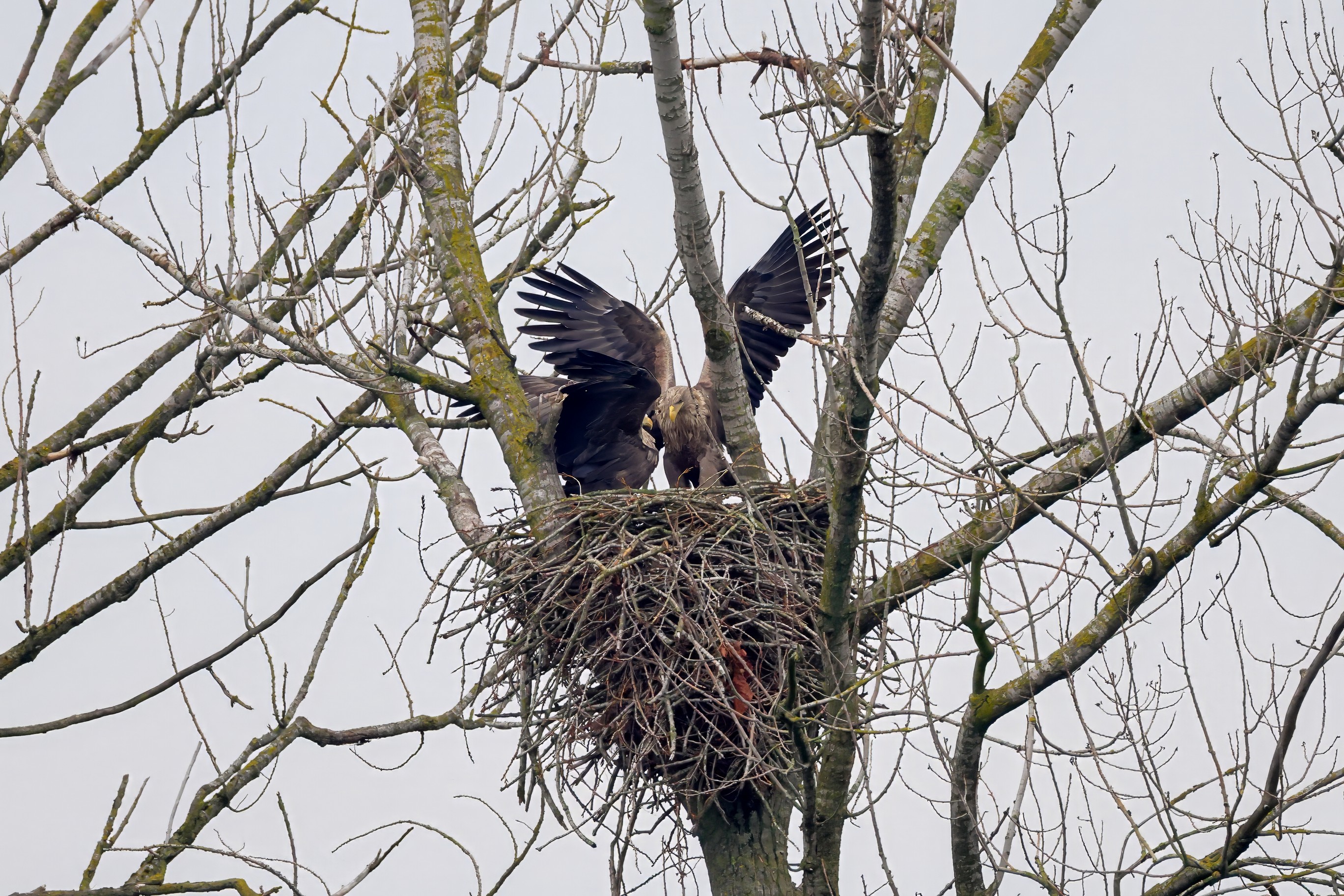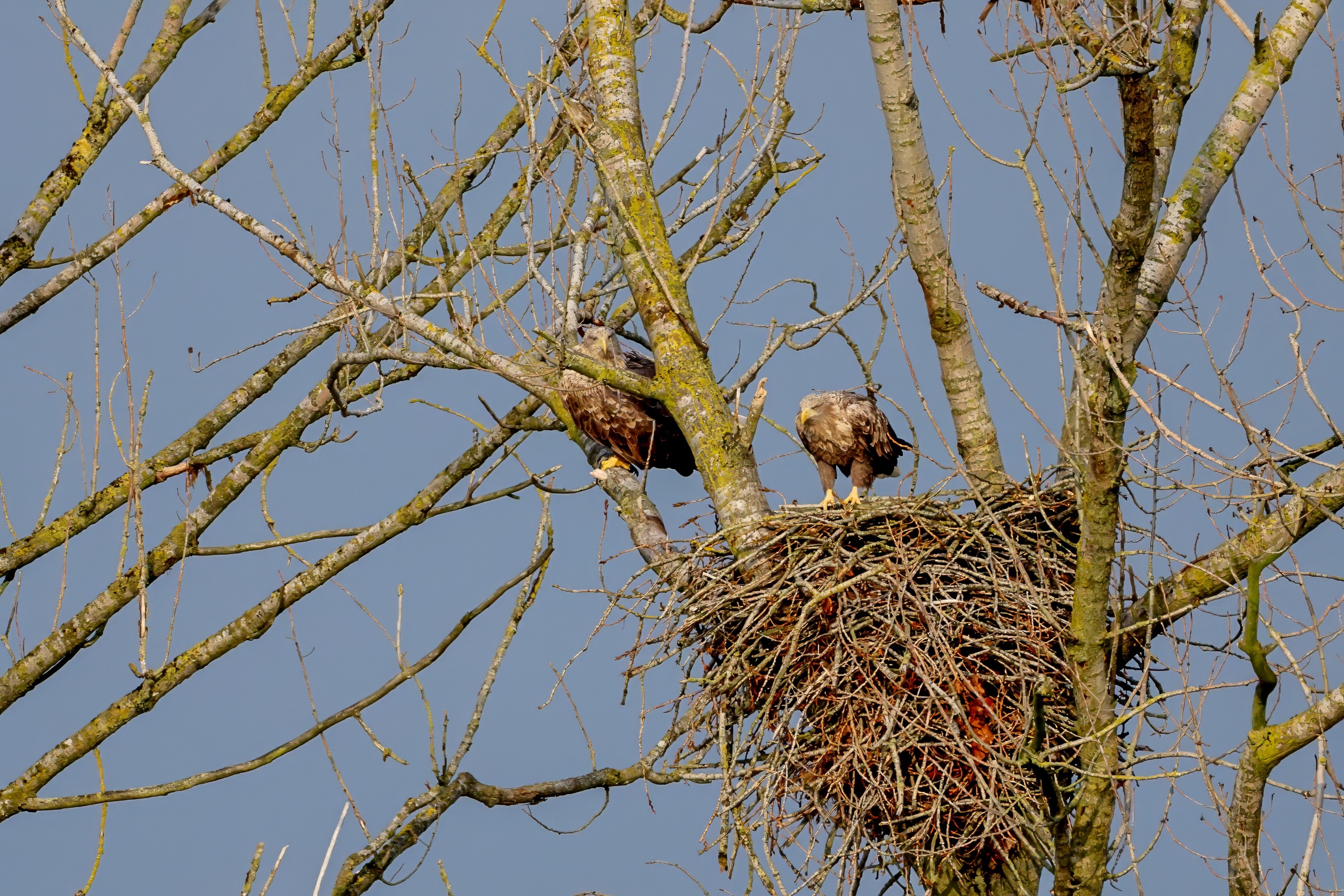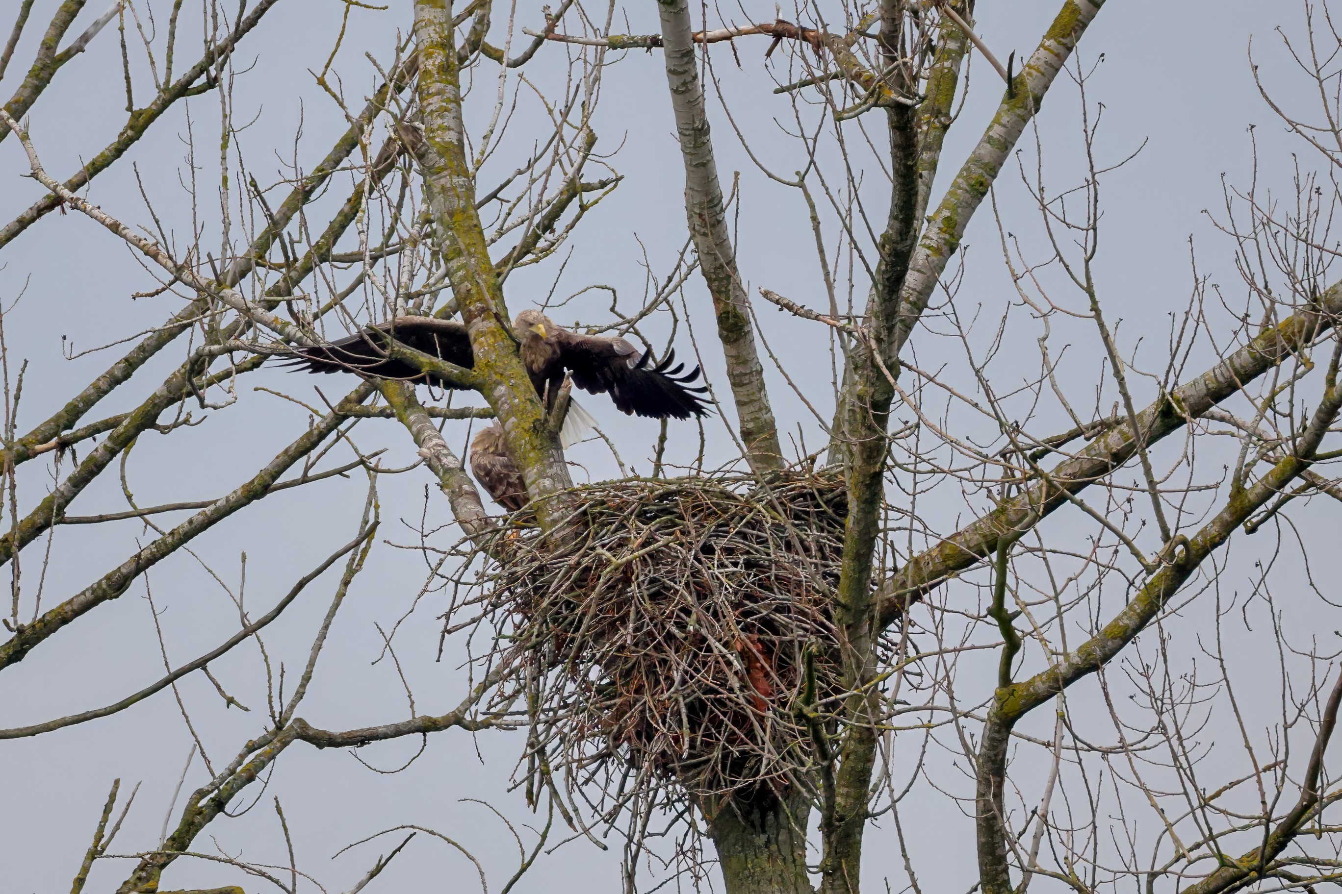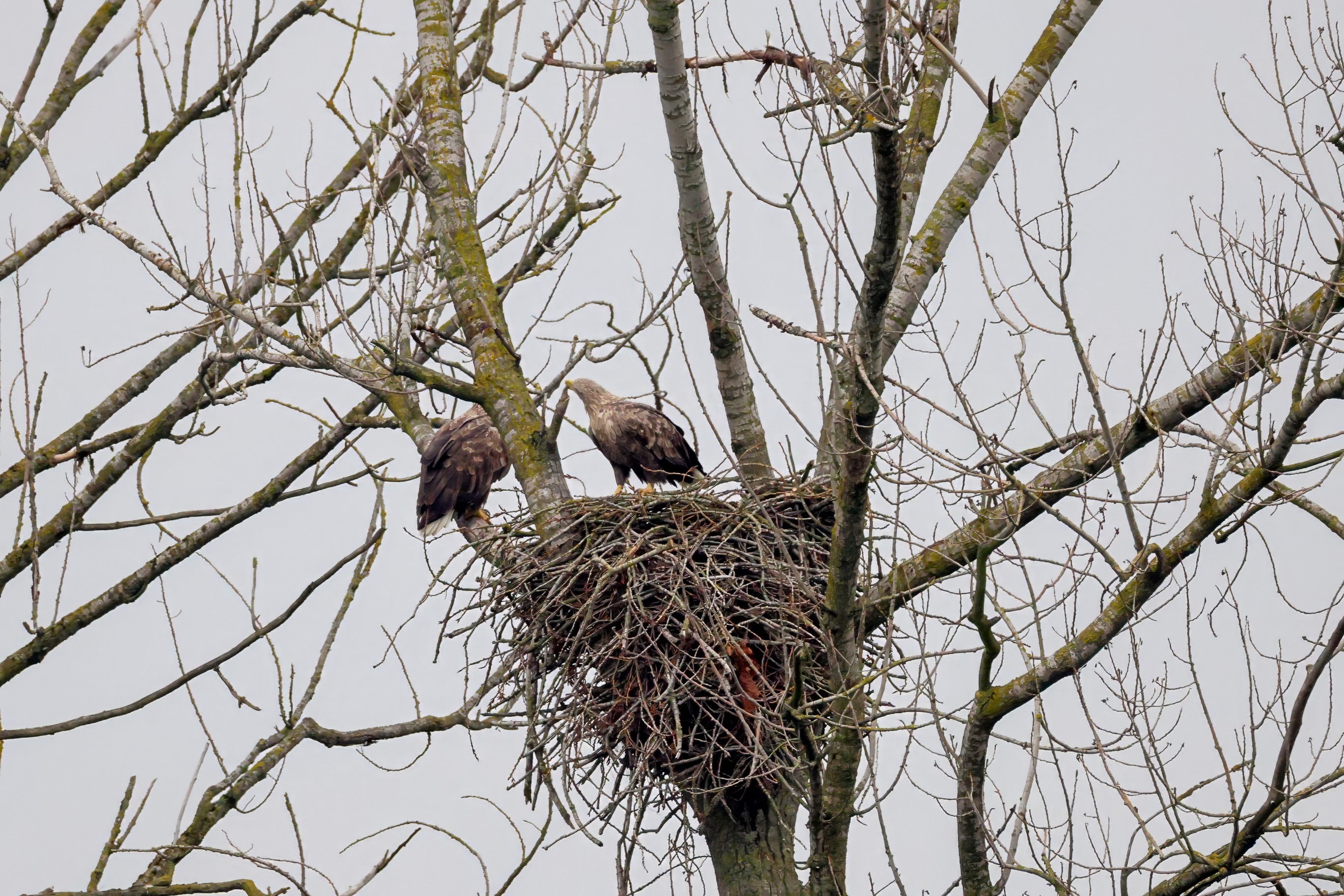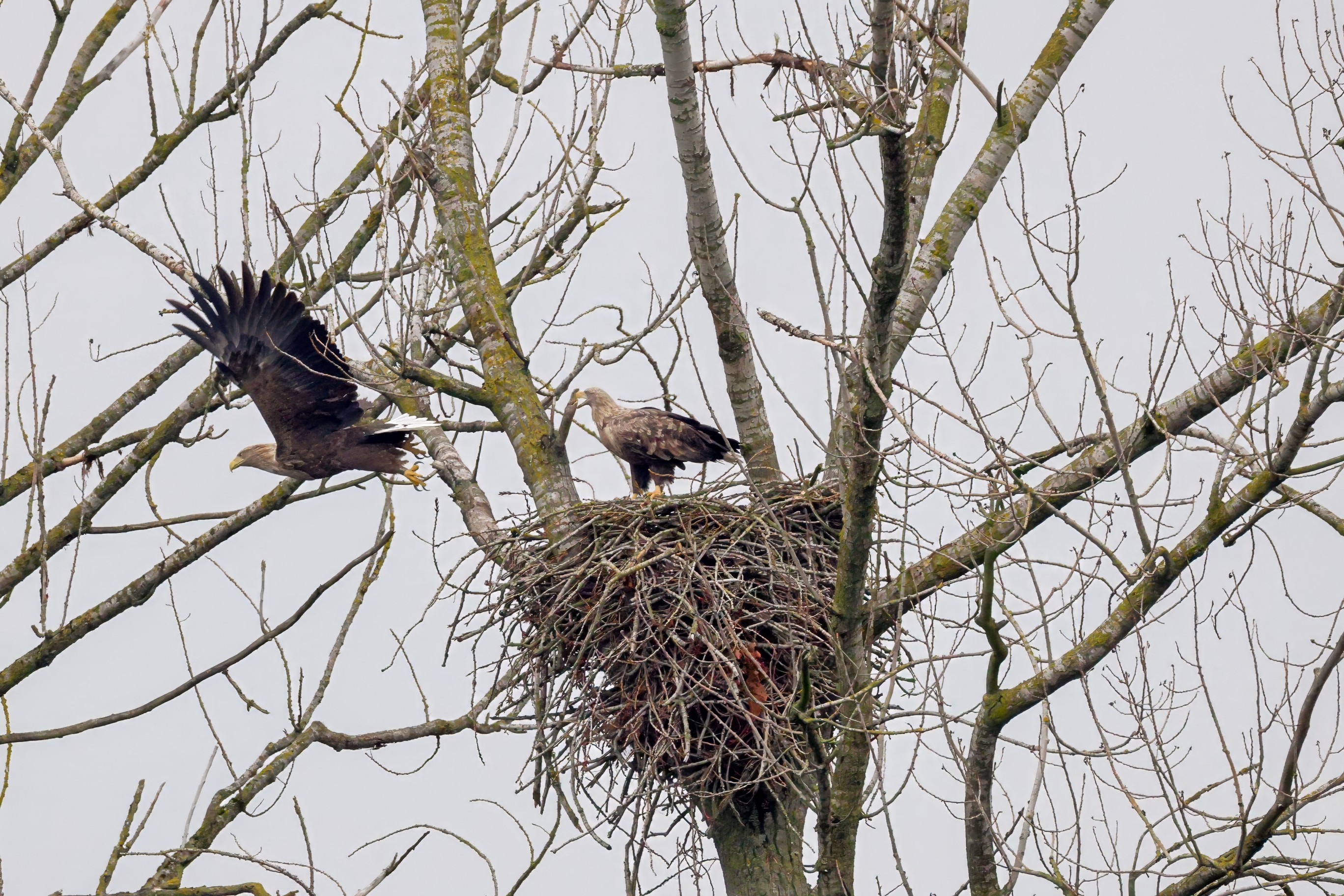 Währenddessen zeigen die adulten Seeadler im November eindrucksvoll ihre feste Partnerschaft. Gemeinsam arbeiten sie bereits an der Ausbesserung ihres Horstes – eine sorgfältige Vorbereitung auf das kommende Jahr.